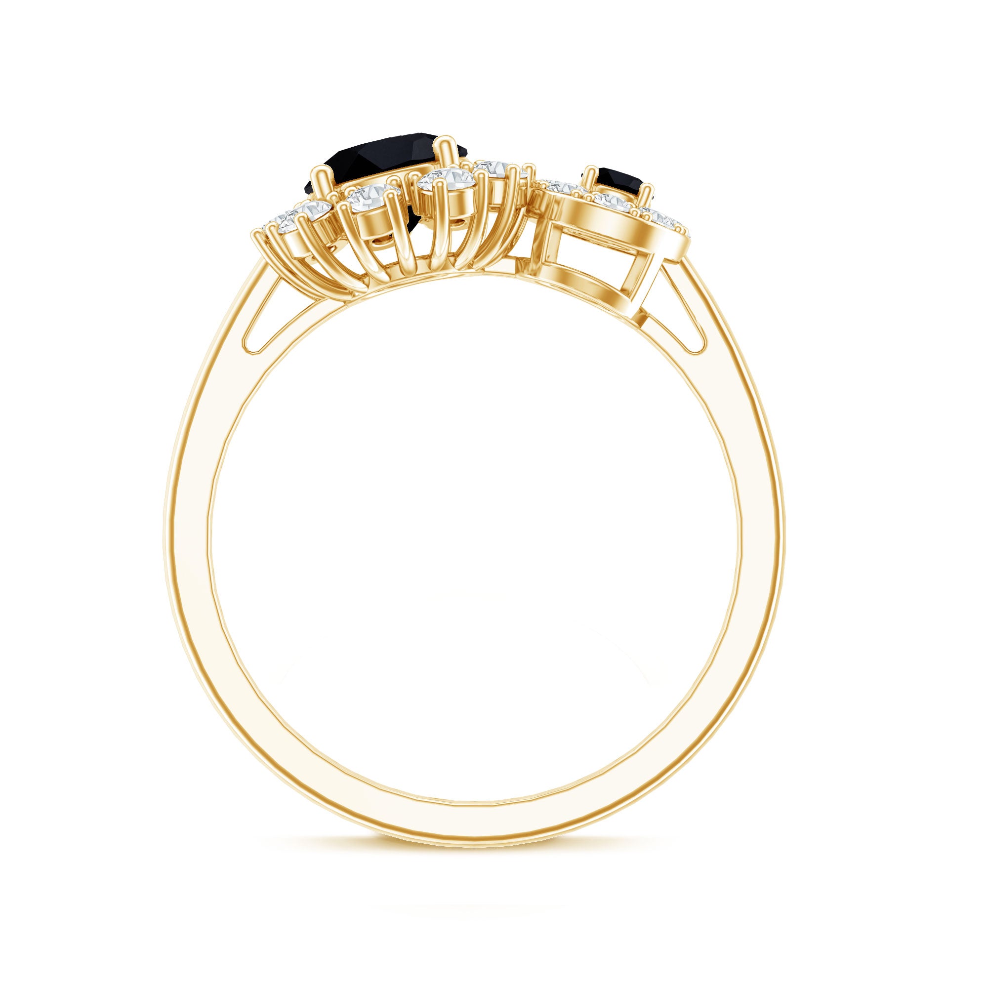 This ring style incorporates three sparkling lab-grown black diamonds that are embellished together. The triple gems of lab black diamond here shed upon the unique journey of a couple’s togetherness. Each of the three stones signifies the past, present, and future, respectively.