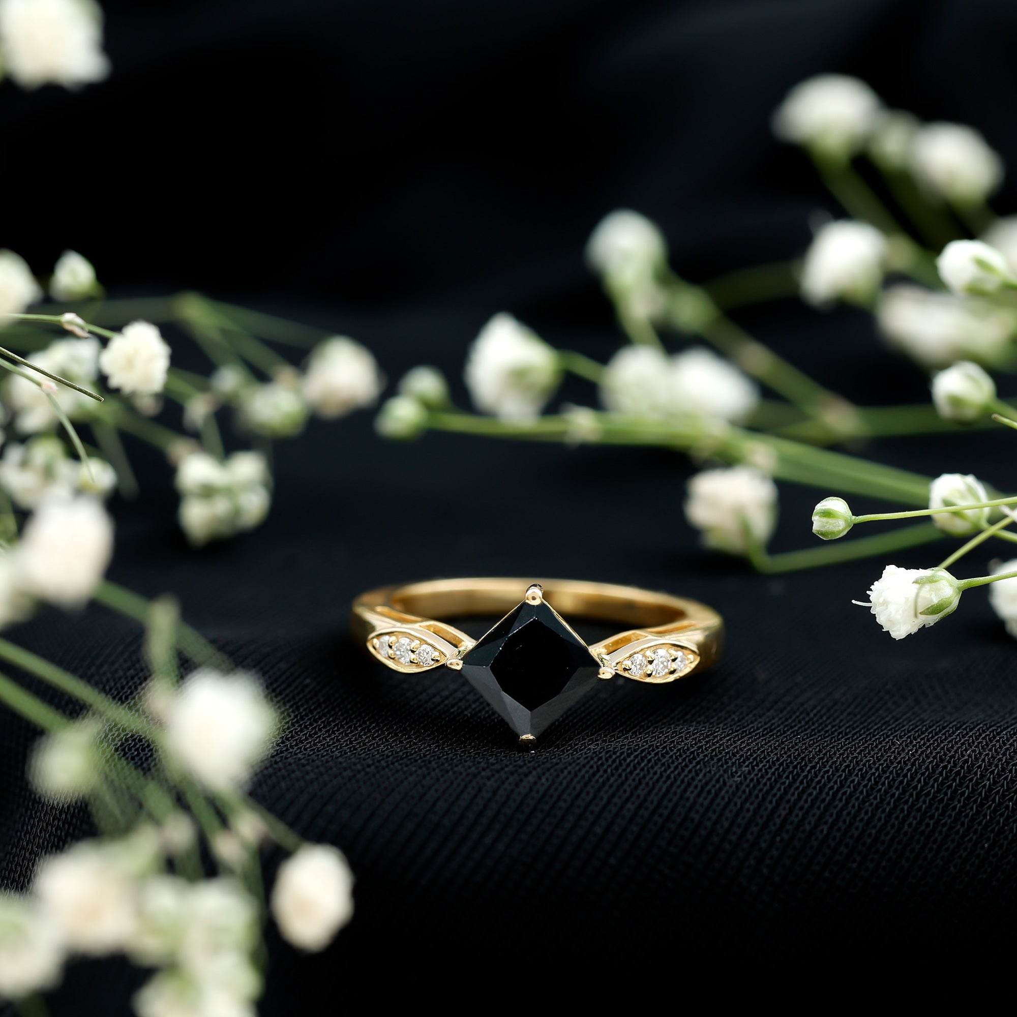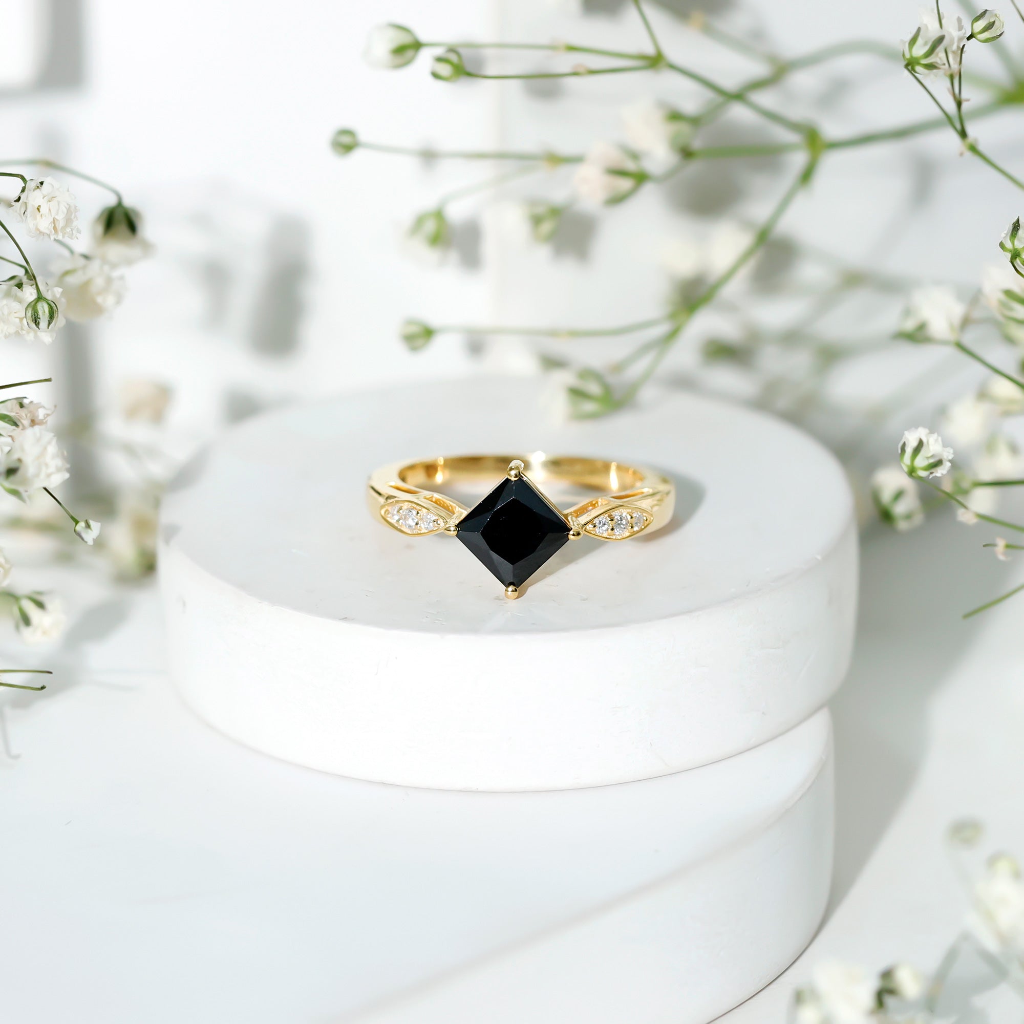 This style of ring is meant to speak old school couples, vintage style rings feature ornate designs that are symbolic of the Art Deco, Edwardian, and Victorian Eras. You’ll most likely come across antique designs that incorporate milgrain and filigree details, geometric patterns, or floral motifs that complement the exotic hue of lab black diamonds.