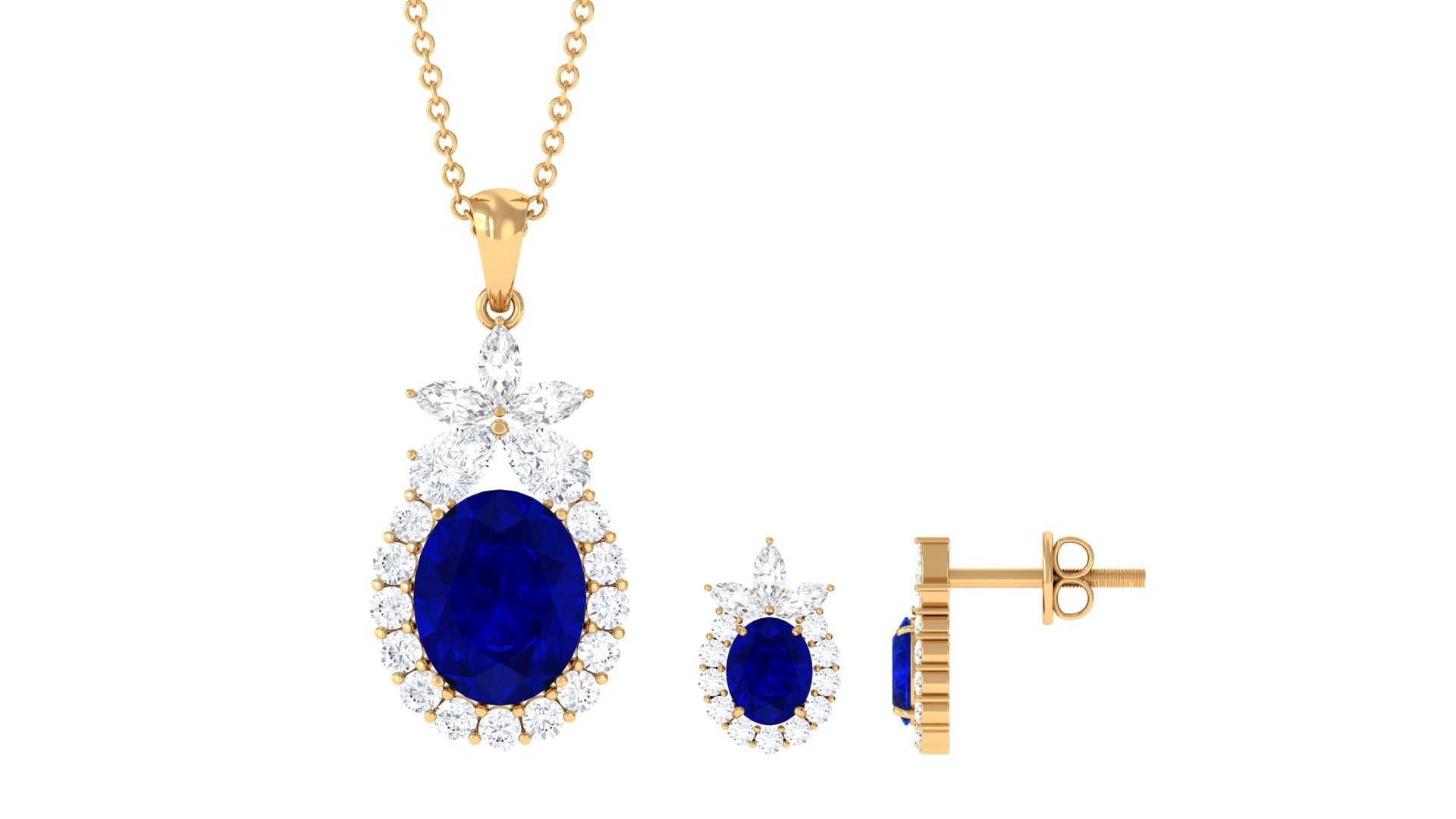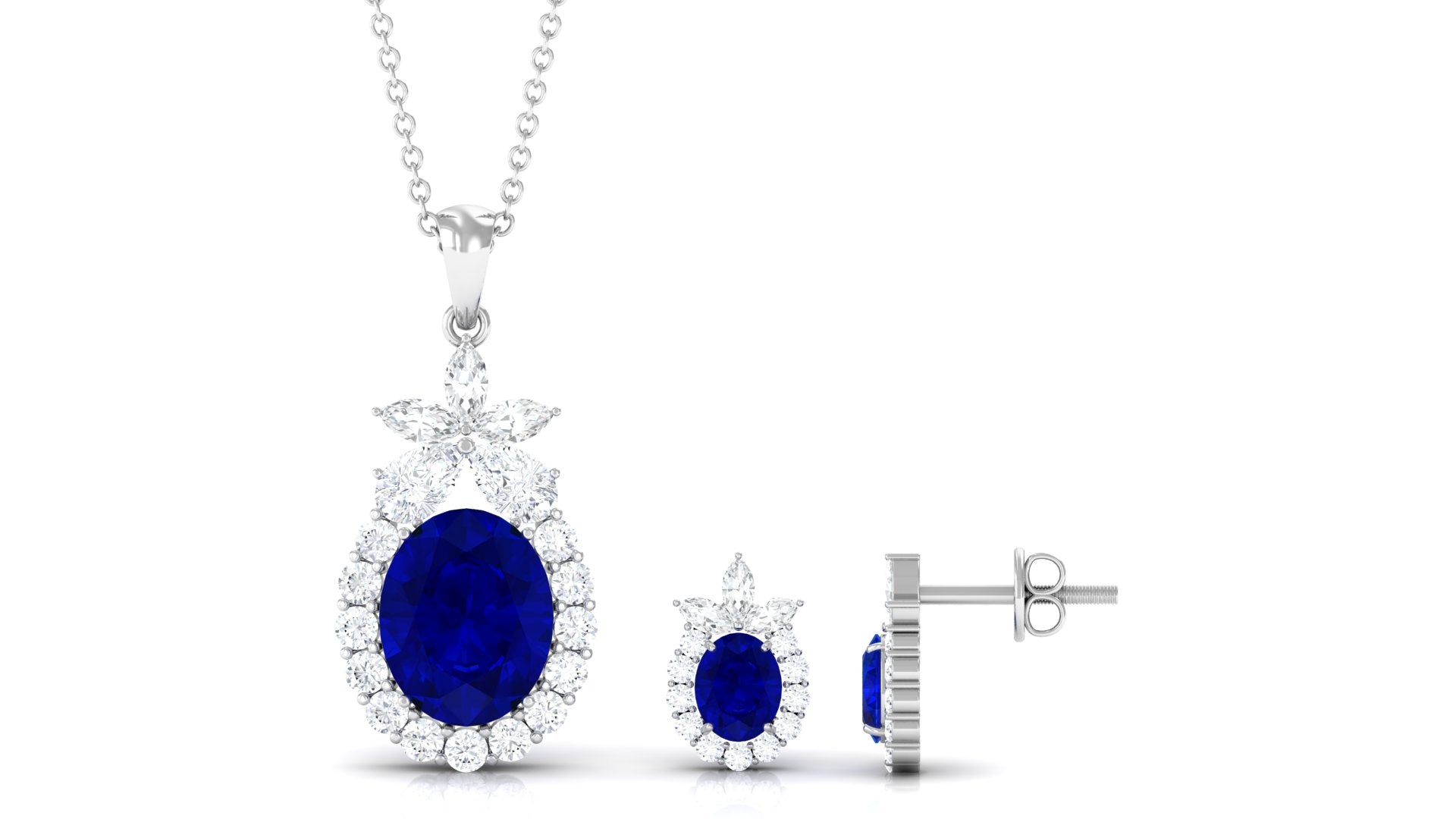 Product type: Lab-grown sapphire necklaces can be purchased as pendants or jewelry sets. Pendants feature lab-created sapphires on metal frames with chains. While the jewelry set has blue sapphire necklaces and pendants along with matching earrings of the same gemstone and shape.