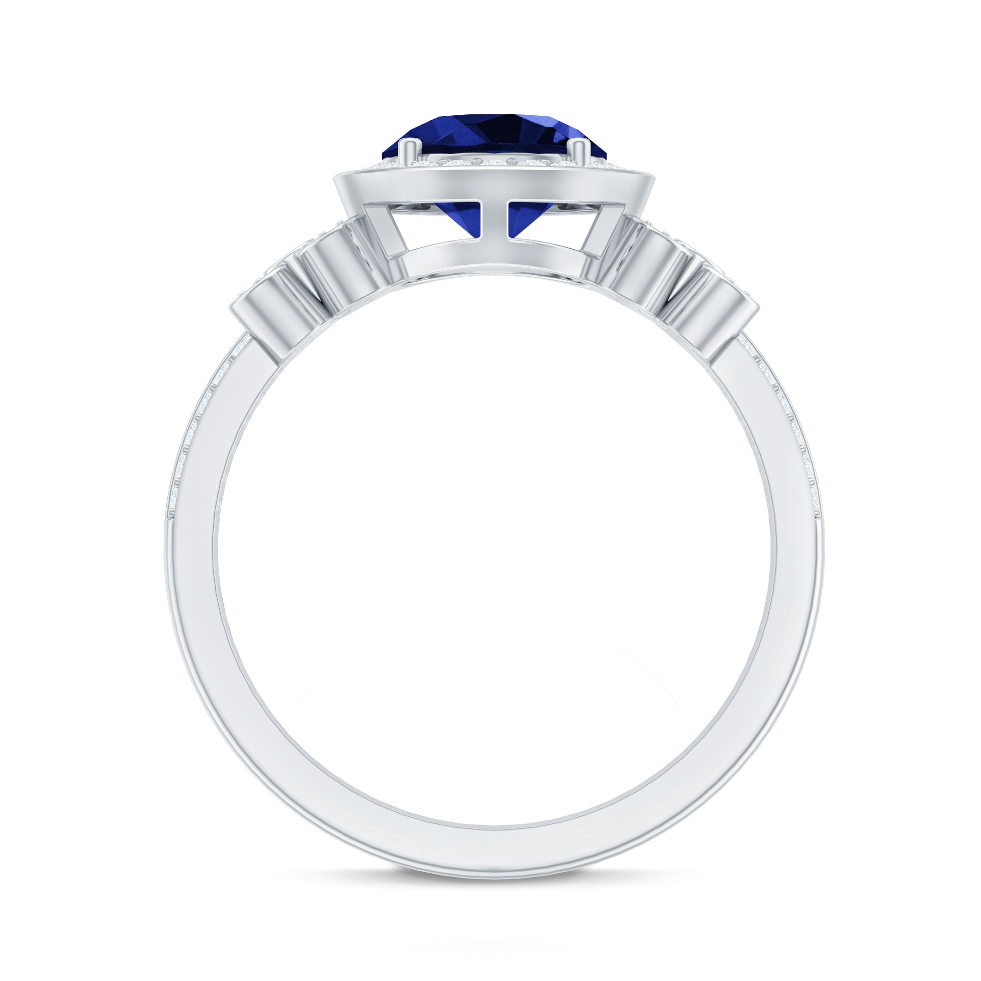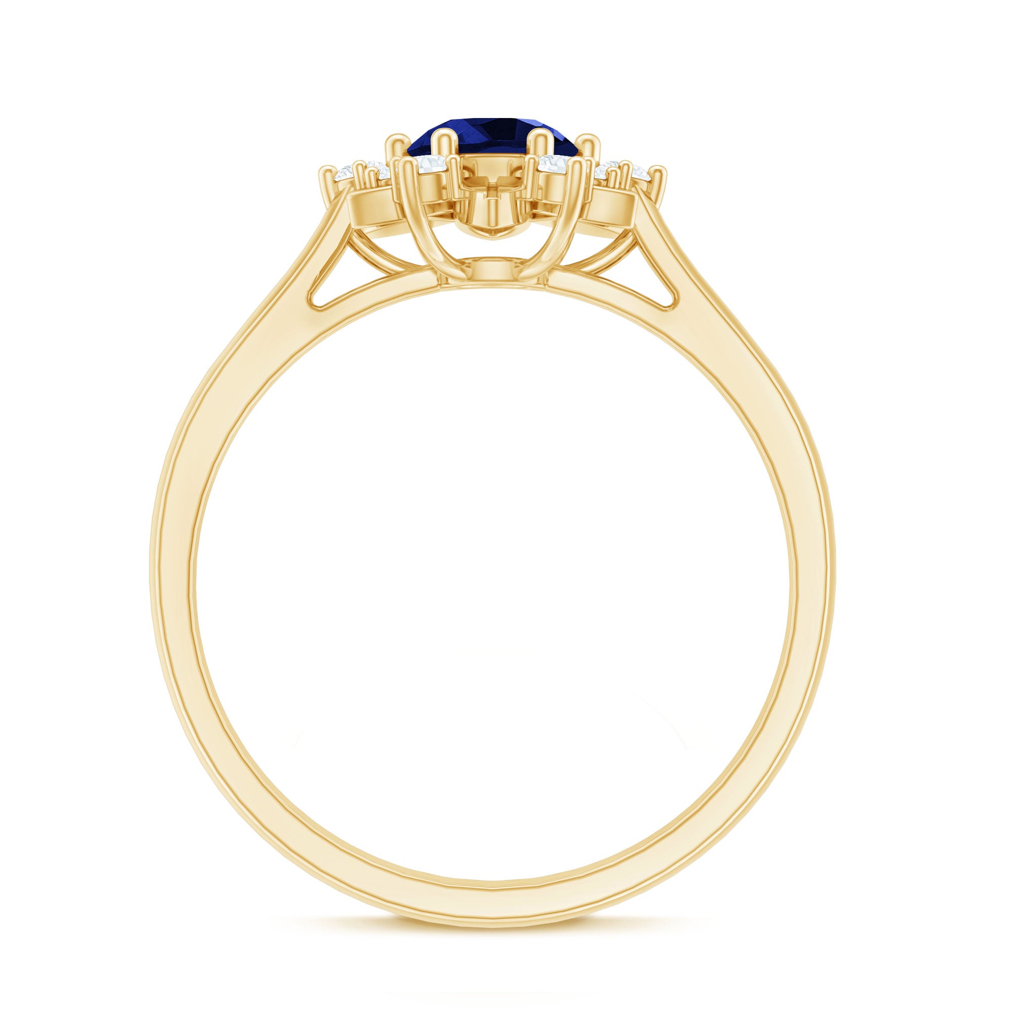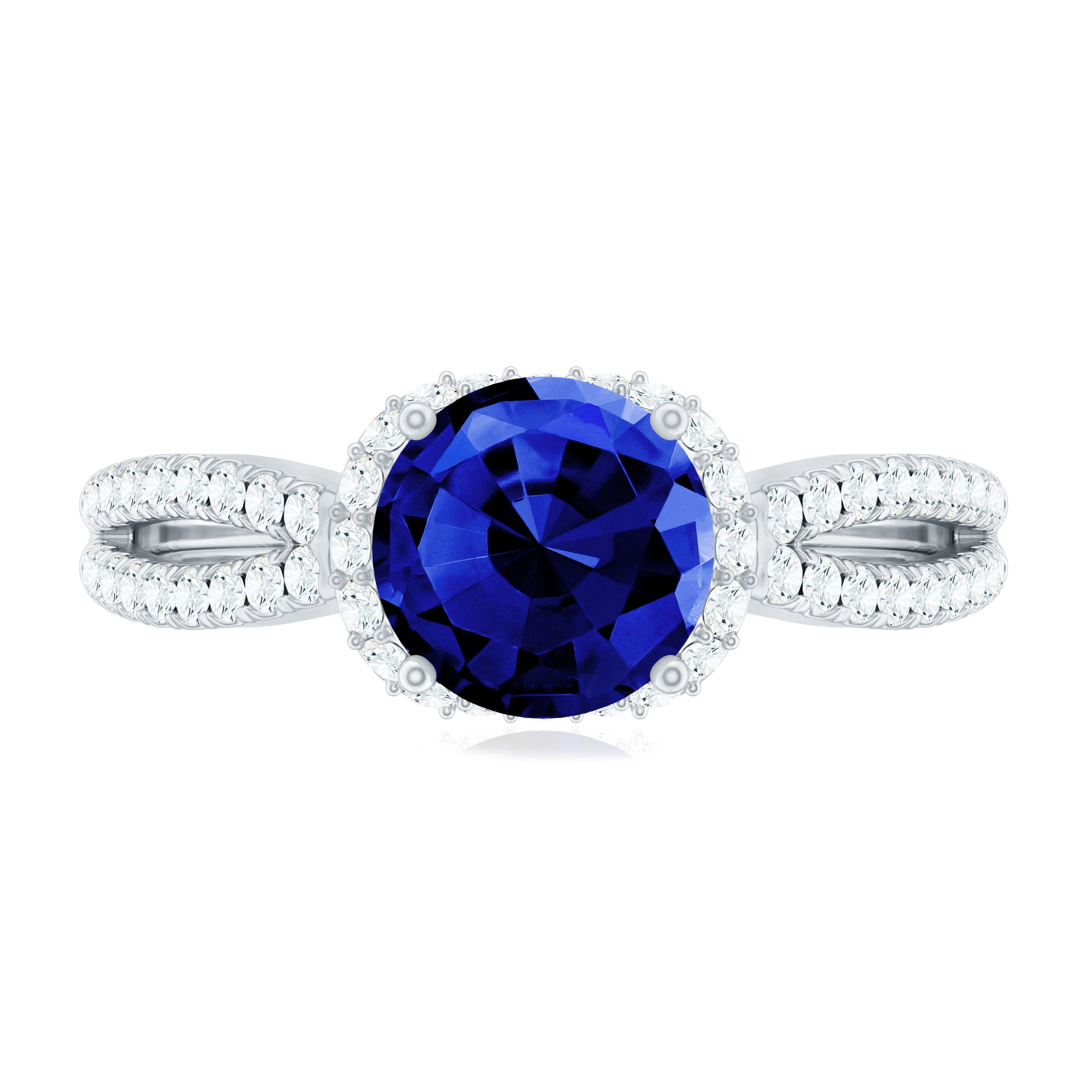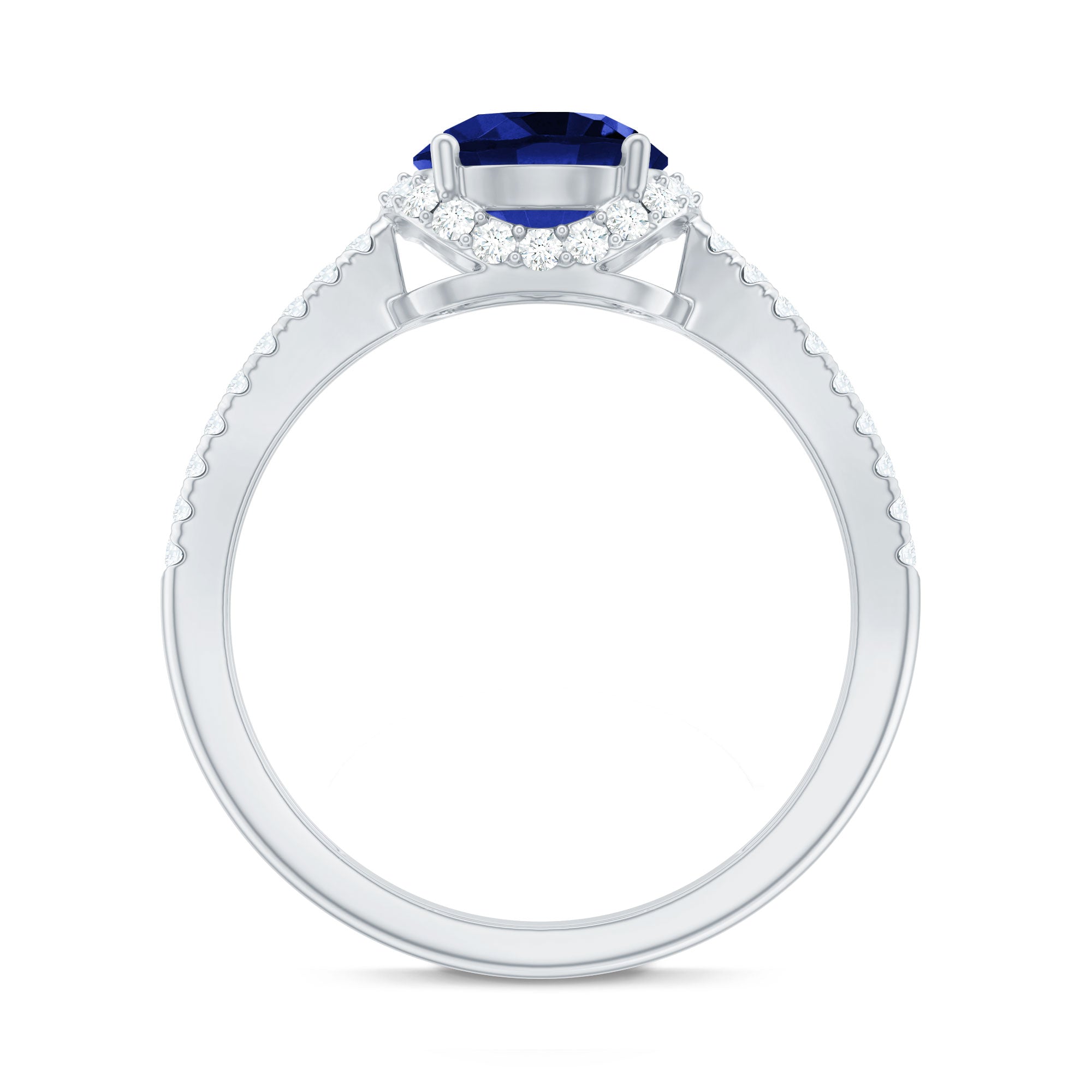 Halo Rings: Begin your new chapter of life with our Blue Sapphire Halo rings. Our eye-catching Blue Sapphire placed in the center and surrounded by small Moissanite stones giving it a magnified look. It fits perfectly with all your occasions as an ultimate symbol of elegance and luxury.