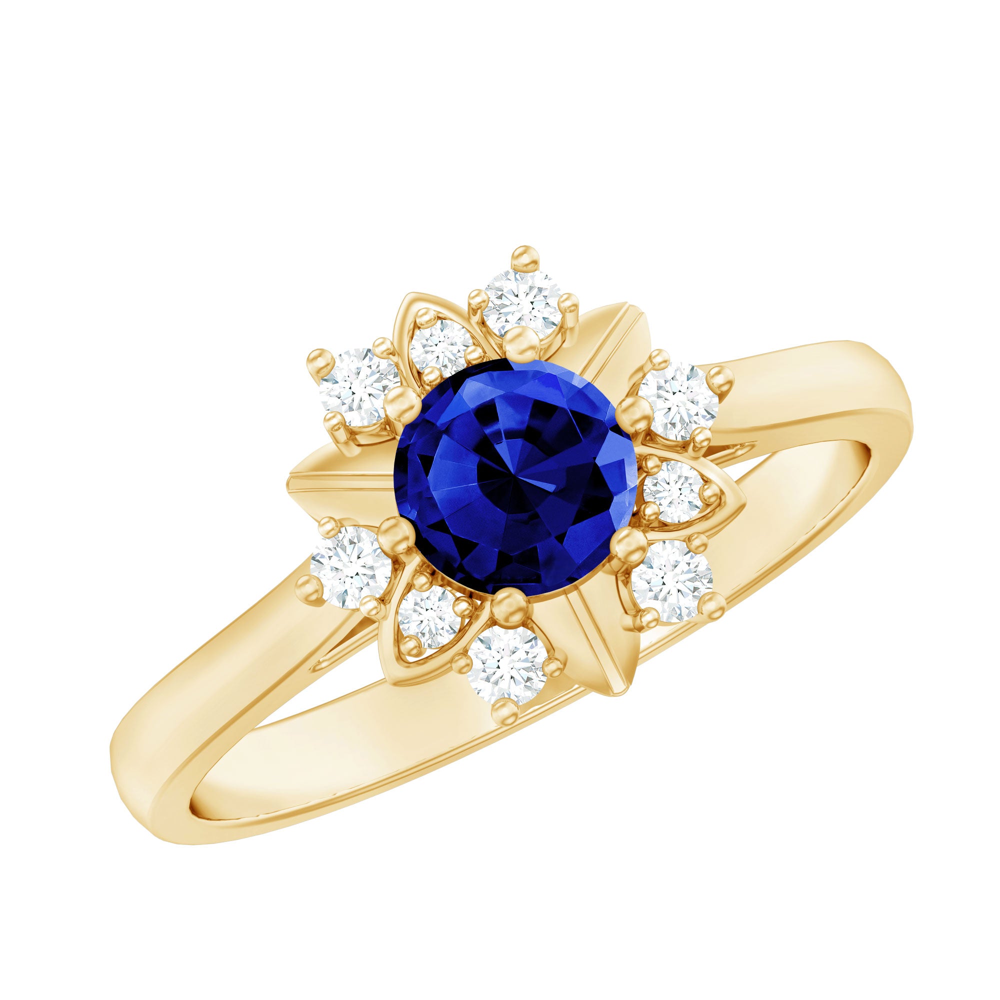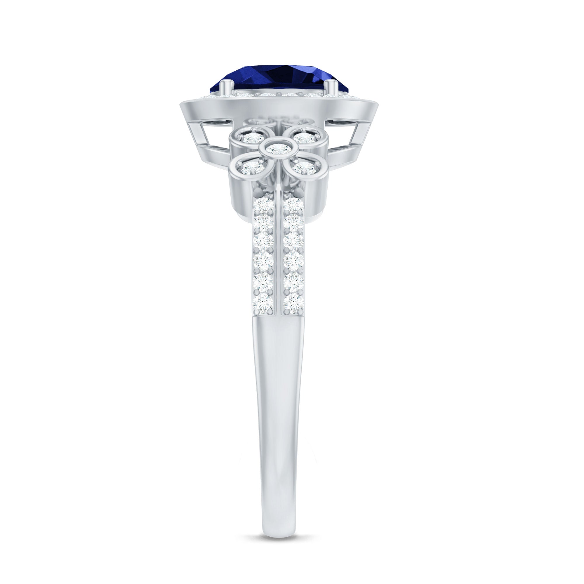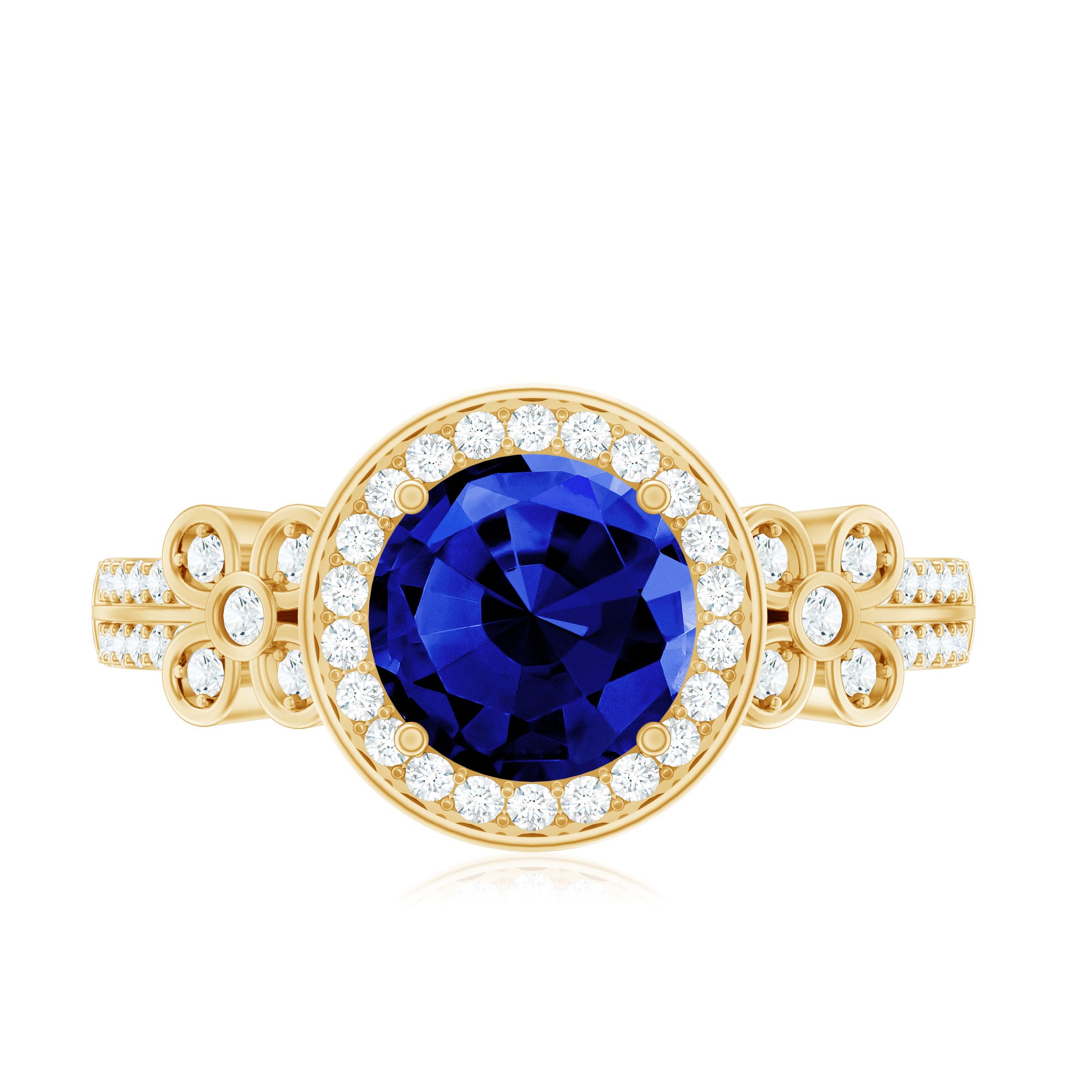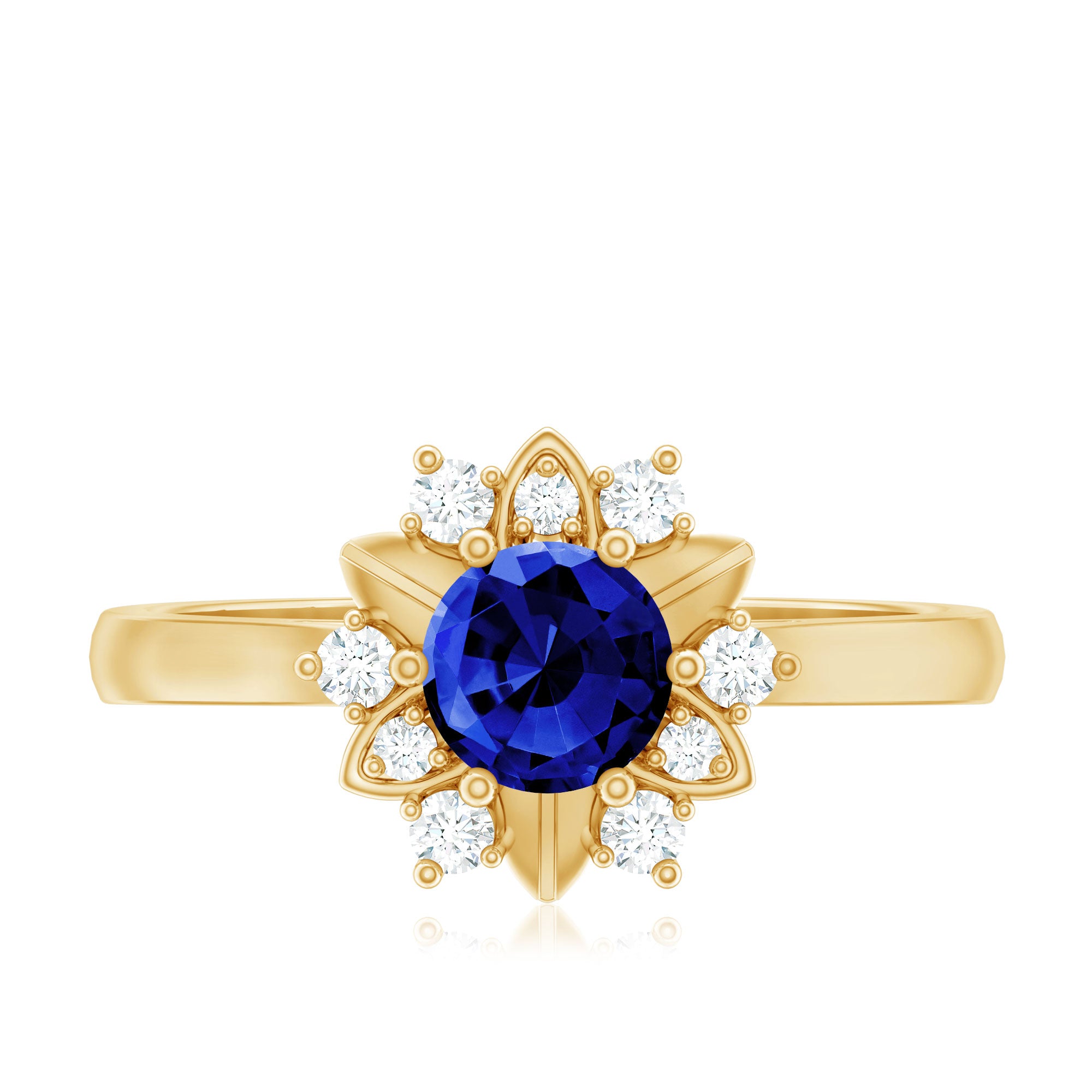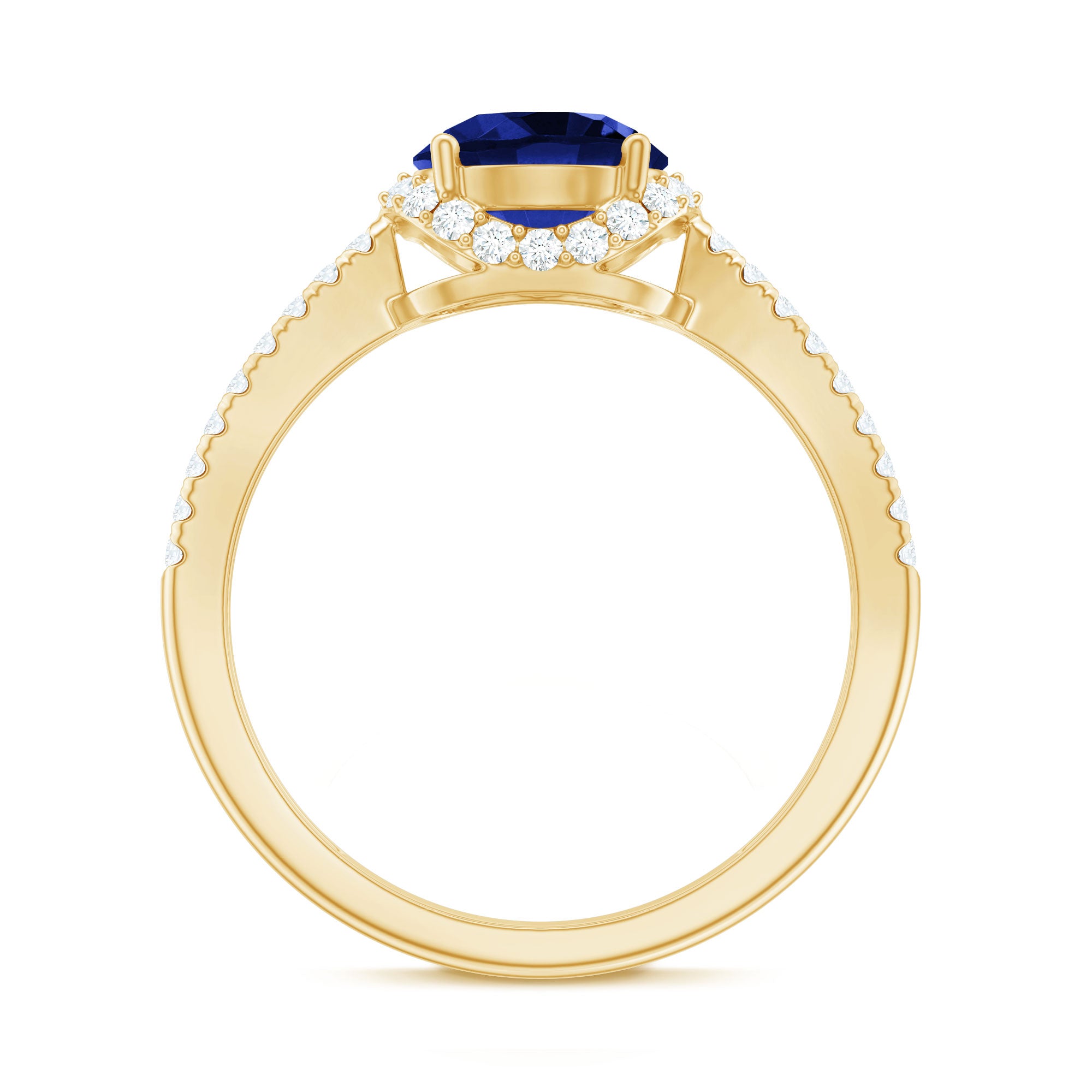 Halo Rings: Begin your new chapter of life with our Blue Sapphire Halo rings. Our eye-catching Blue Sapphire placed in the center and surrounded by small Moissanite stones giving it a magnified look. It fits perfectly with all your occasions as an ultimate symbol of elegance and luxury.