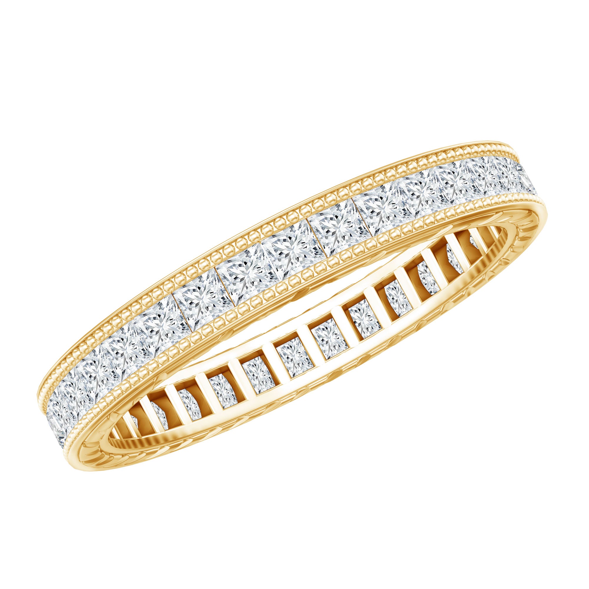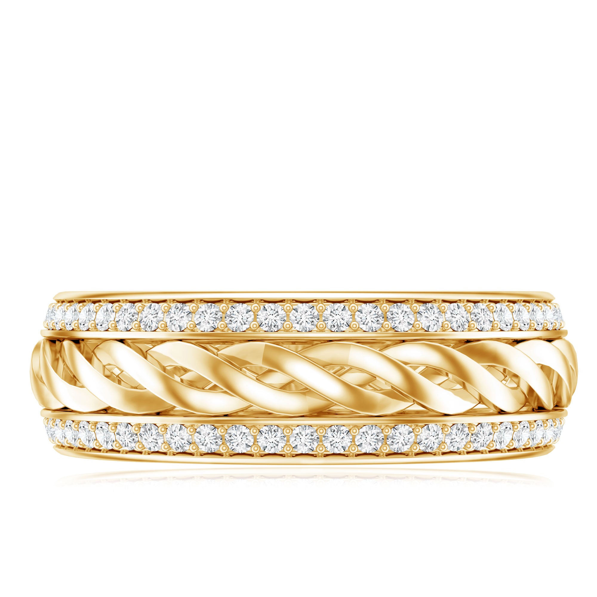 Clean gently with mild soap, warm water, and a soft brush. Avoid harsh chemicals. Remove rings during heavy lifting or intense activity to protect settings.