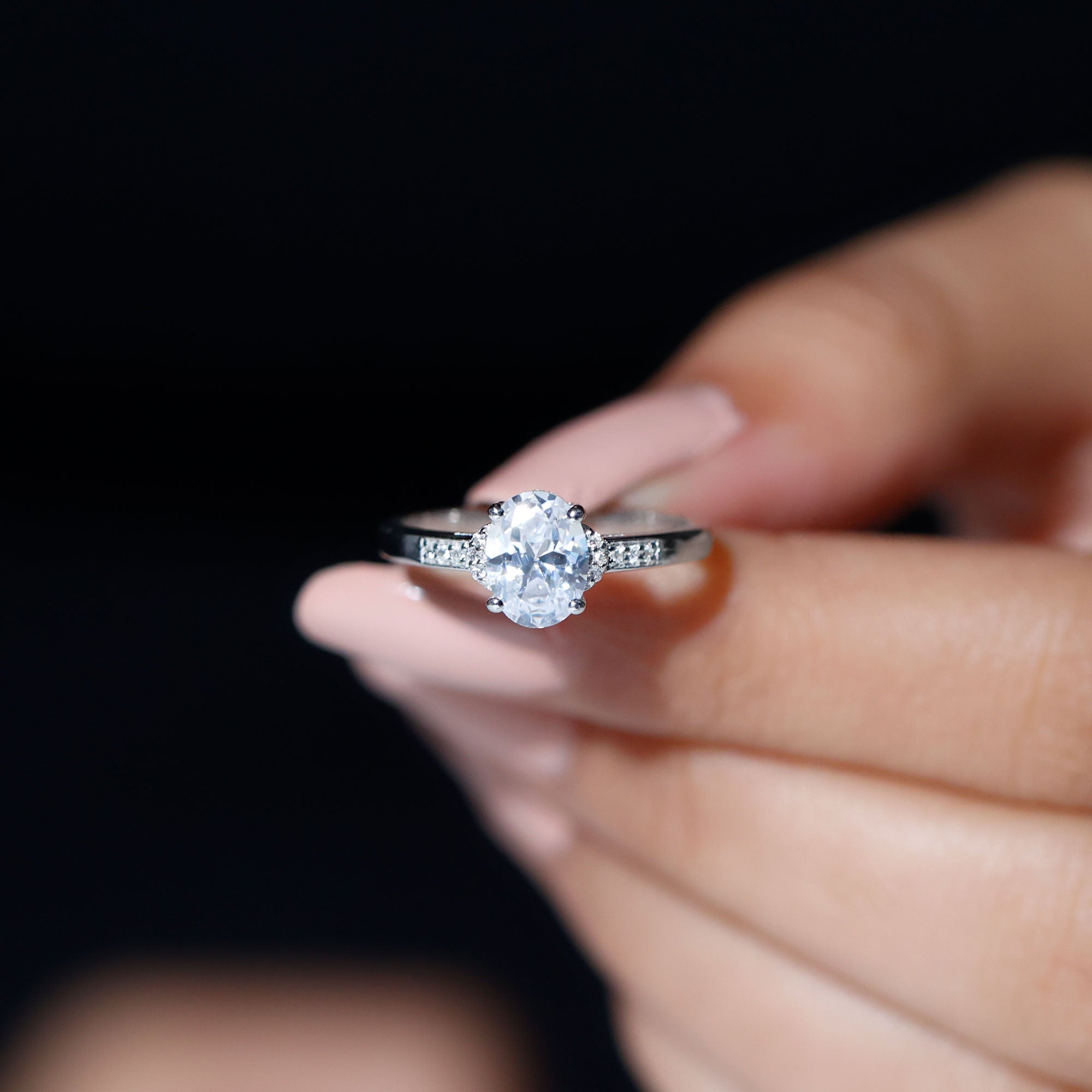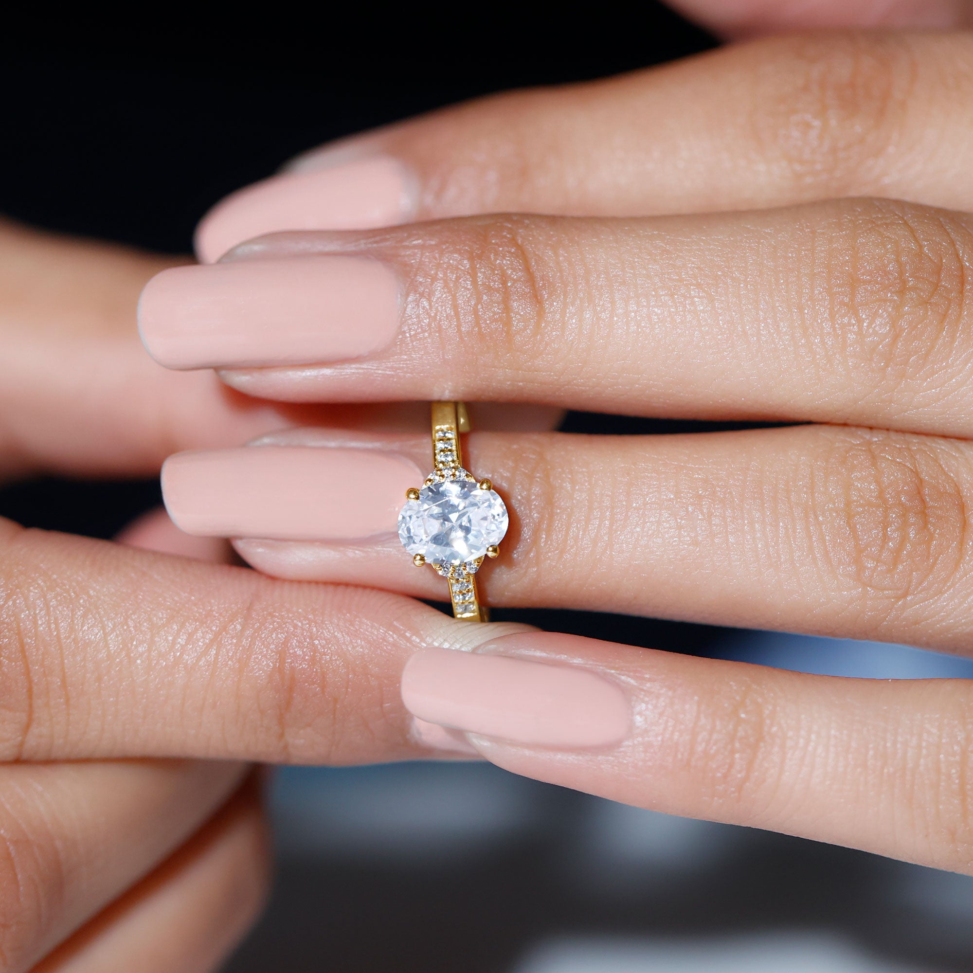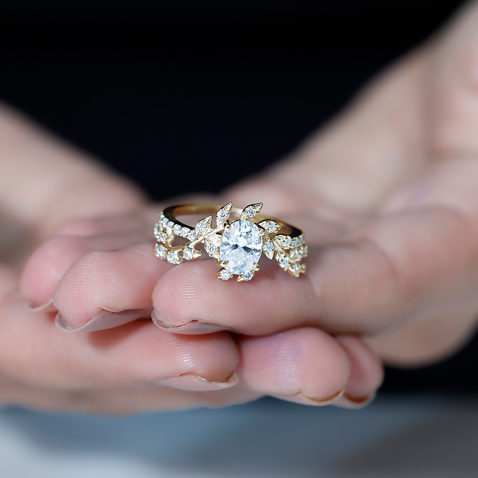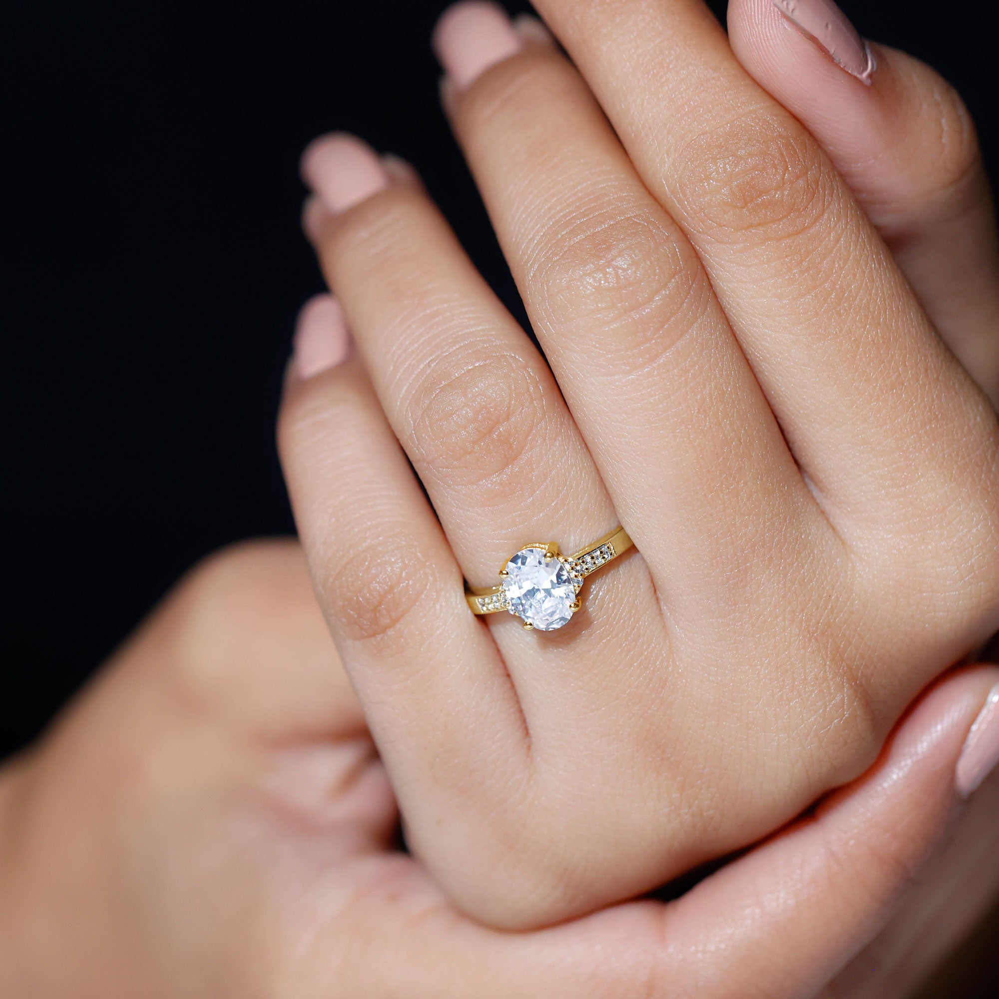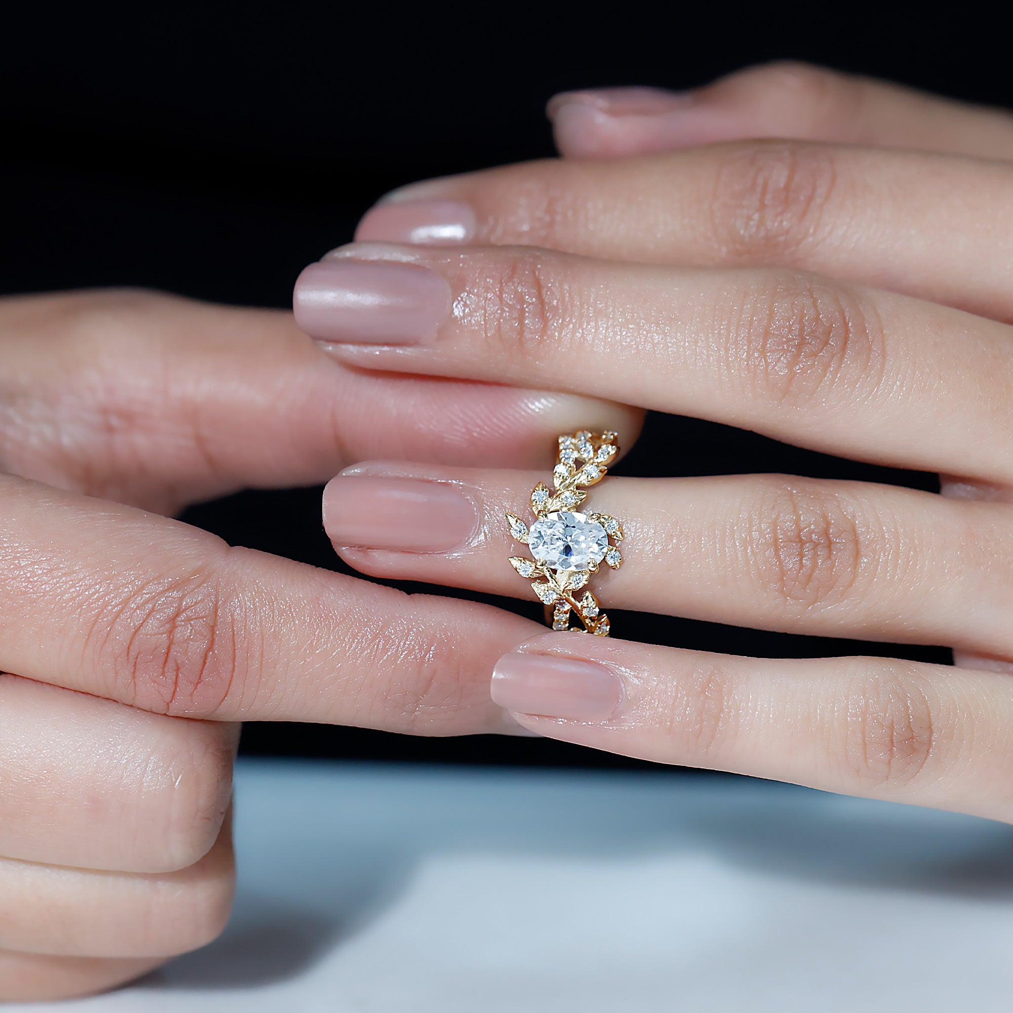 An oval-shaped diamond gives a long sleek look, perfect for people with small hands as it makes the finger look elongated and beautiful look. Due to its longer shape, an oval diamond appears larger than a round cut diamond even of the same carat weight. -