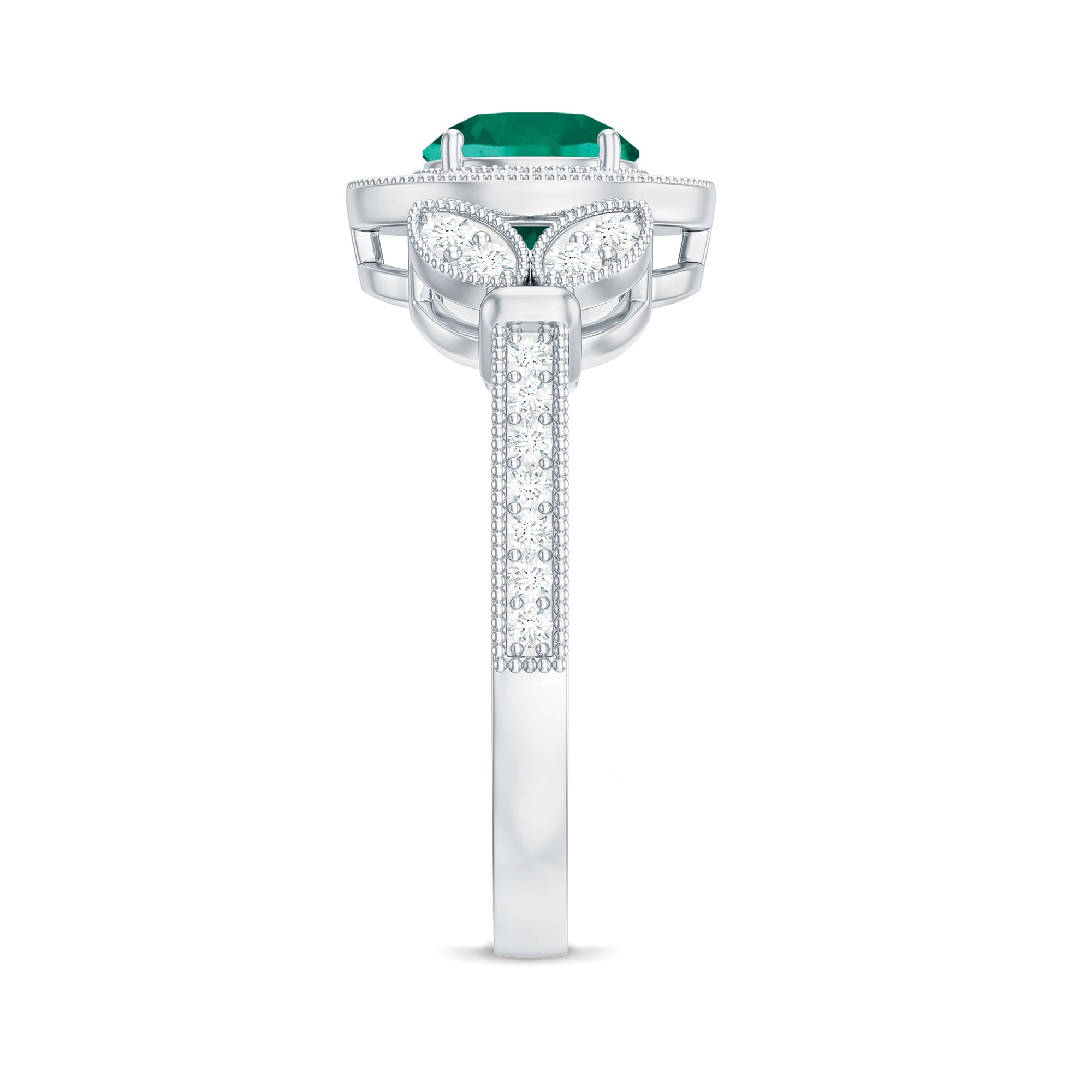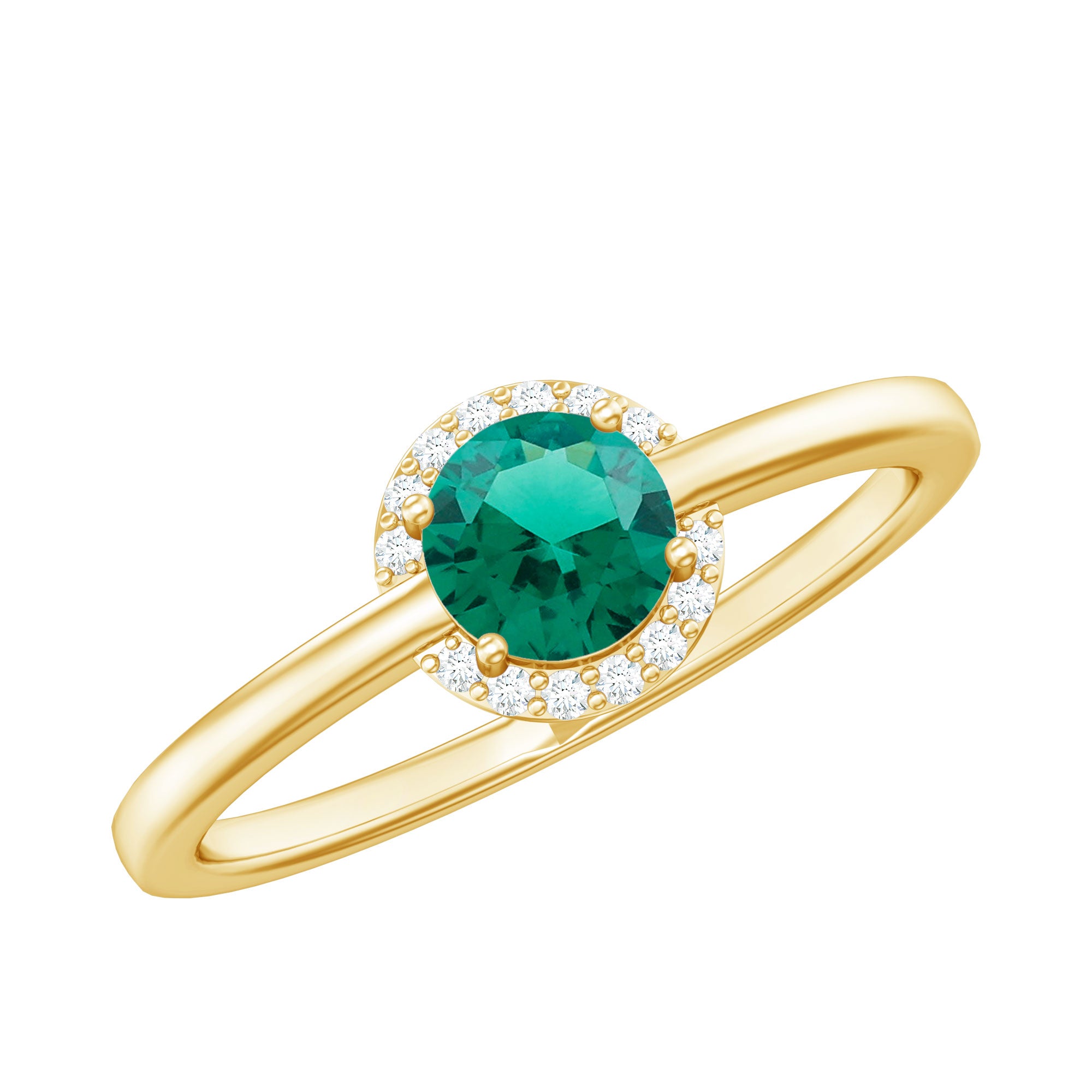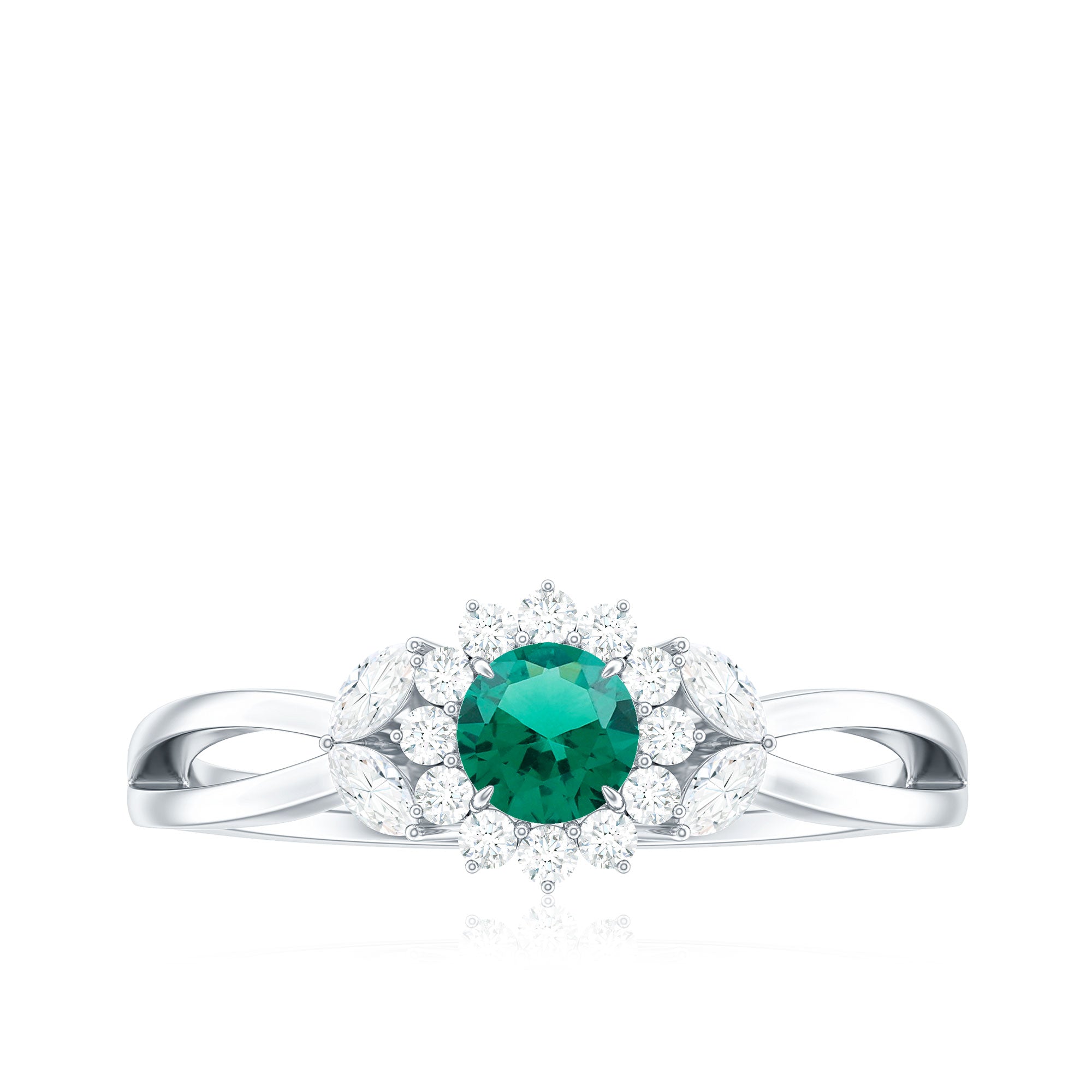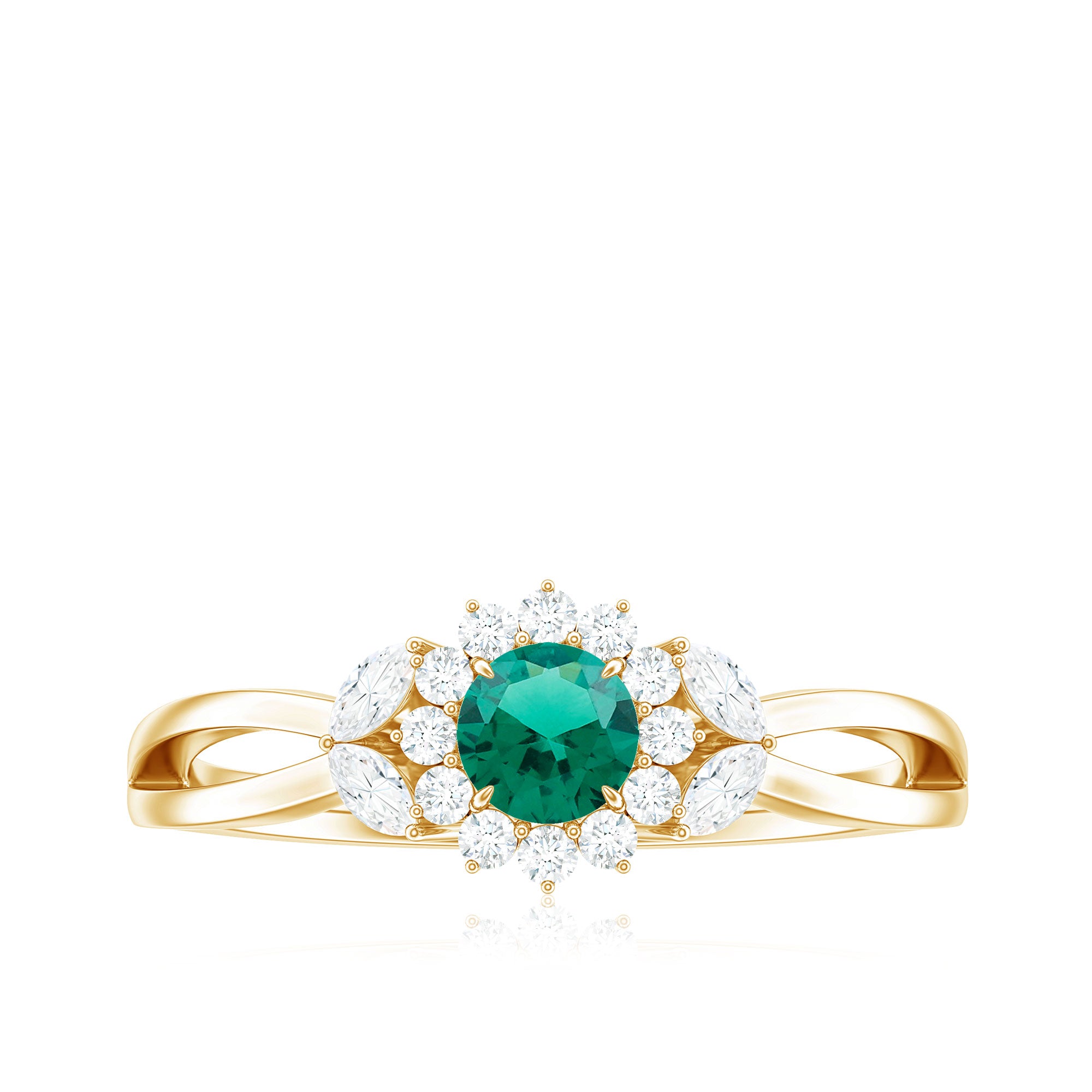 Like other gemstone engagement rings, lab created emerald engagement rings are crafted in almost all designs from timeless classics to stylish, trending styles. If you prefer to shine just with the elegance of emerald gemstone, then lab created emerald solitaire rings reflecting your bold identity can be a great choice. If looking for something unique and trending, then check our toi et moi lab created emerald engagement rings. Symbolising your soulful union with your partner, through two similar or different gemstones, this design stands out for its beauty. A more meaningful piece reflecting your love journey, is a three stone lab created emerald ring. It symbolizes the past, present, and future of your relationship. Vintage inspired lab created emerald engagement rings reflecting lab emeralds beauty in art deco settings are a unique choice of vintage charm lovers. Those looking for sparkling ring designs should check lab created emerald halo engagement rings that feature brilliant emeralds surrounded by smaller shining or other colored gemstone accents.