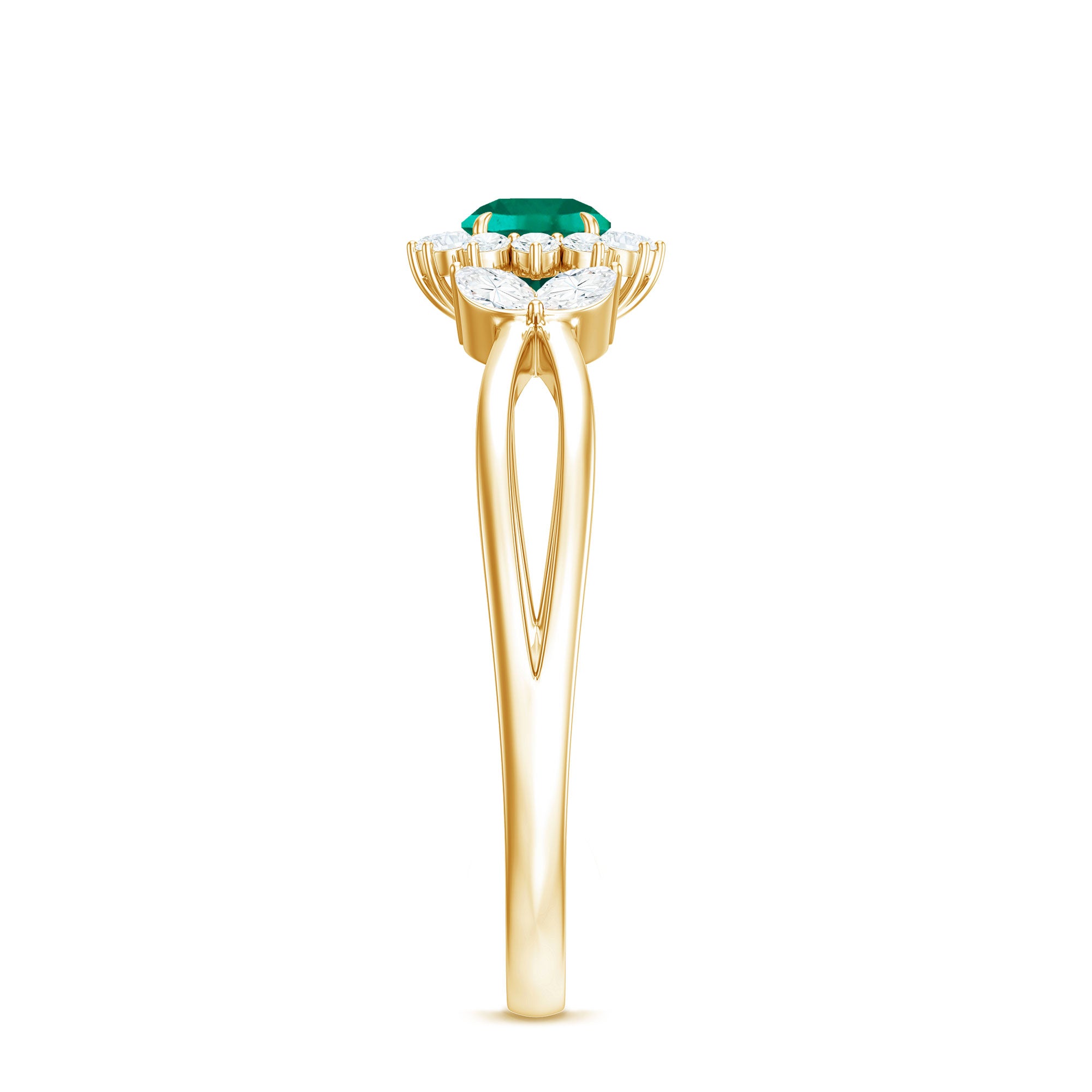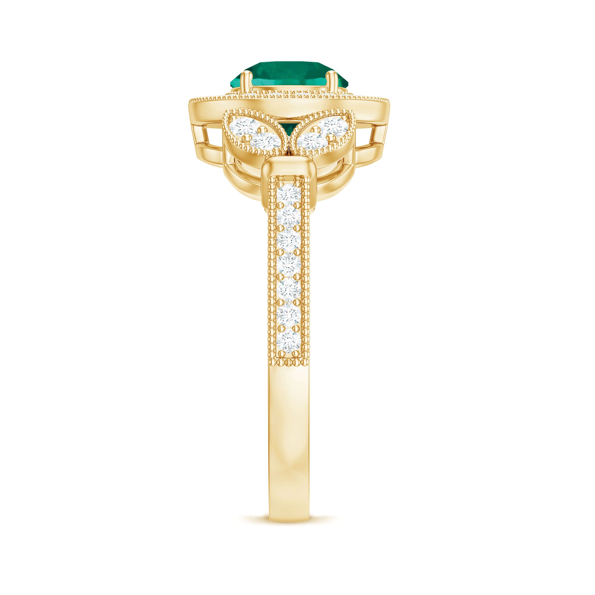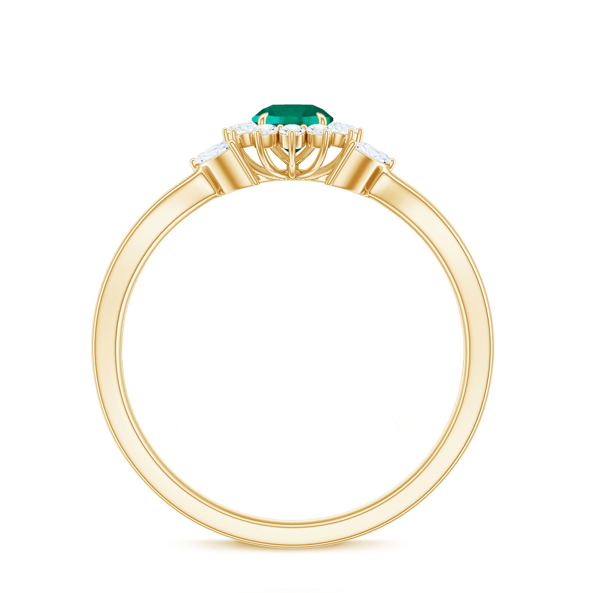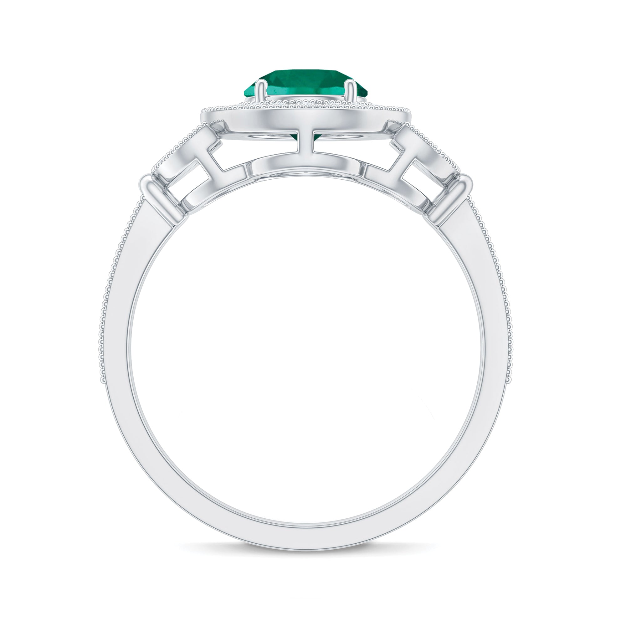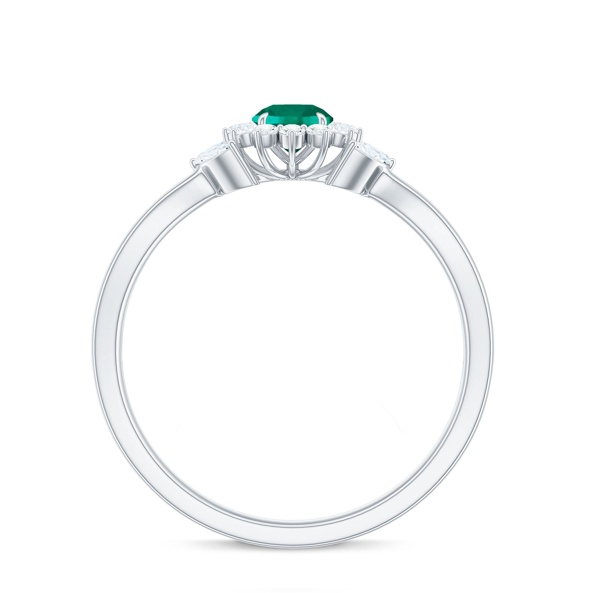 Like other gemstone engagement rings, lab created emerald engagement rings are crafted in almost all designs from timeless classics to stylish, trending styles. If you prefer to shine just with the elegance of emerald gemstone, then lab created emerald solitaire rings reflecting your bold identity can be a great choice. If looking for something unique and trending, then check our toi et moi lab created emerald engagement rings. Symbolising your soulful union with your partner, through two similar or different gemstones, this design stands out for its beauty. A more meaningful piece reflecting your love journey, is a three stone lab created emerald ring. It symbolizes the past, present, and future of your relationship. Vintage inspired lab created emerald engagement rings reflecting lab emeralds beauty in art deco settings are a unique choice of vintage charm lovers. Those looking for sparkling ring designs should check lab created emerald halo engagement rings that feature brilliant emeralds surrounded by smaller shining or other colored gemstone accents.
