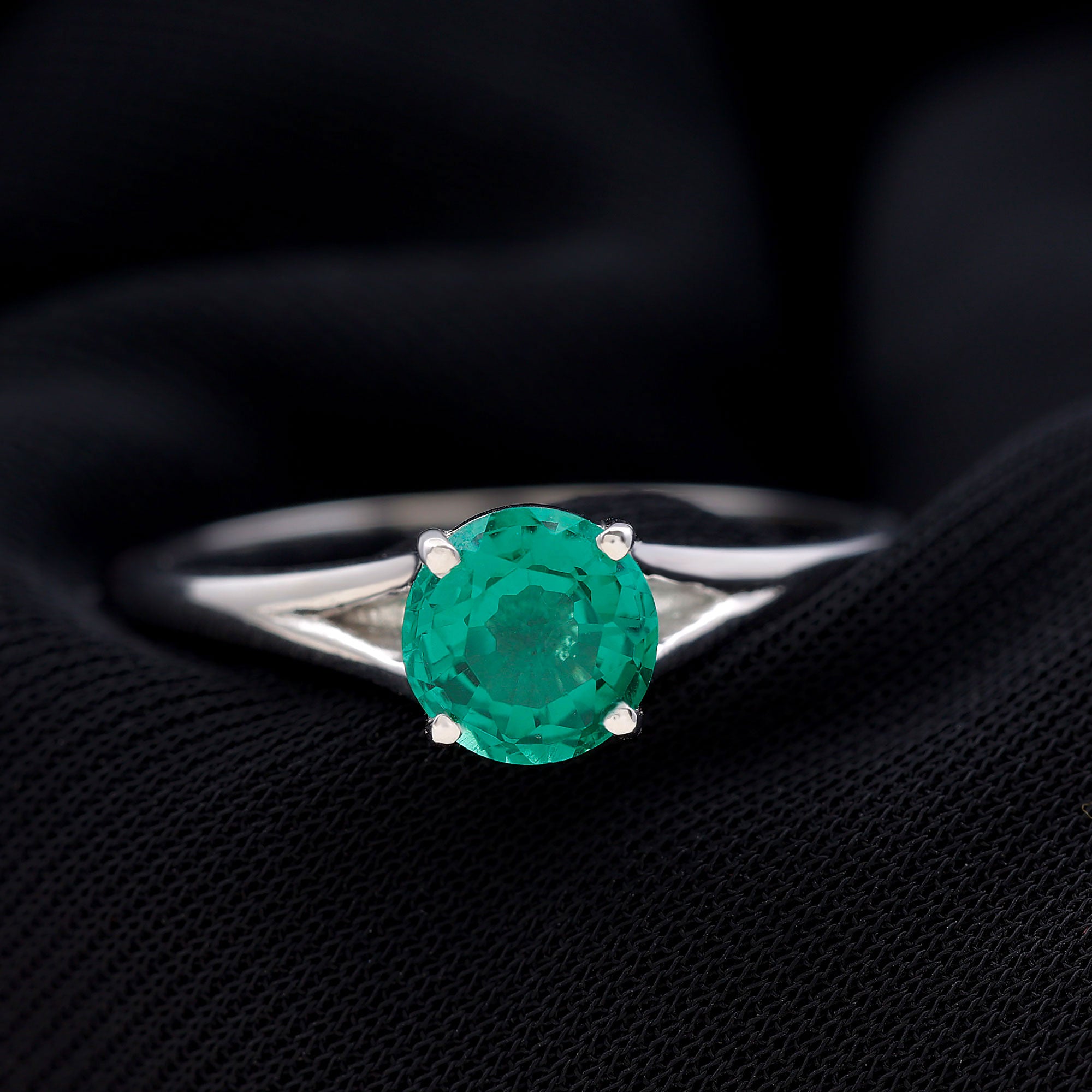 White gold, yellow gold, and silver all look beautiful with lab-created emeralds. The choice depends on personal taste, like yellow gold for traditional warmth and silver for stylish rings.