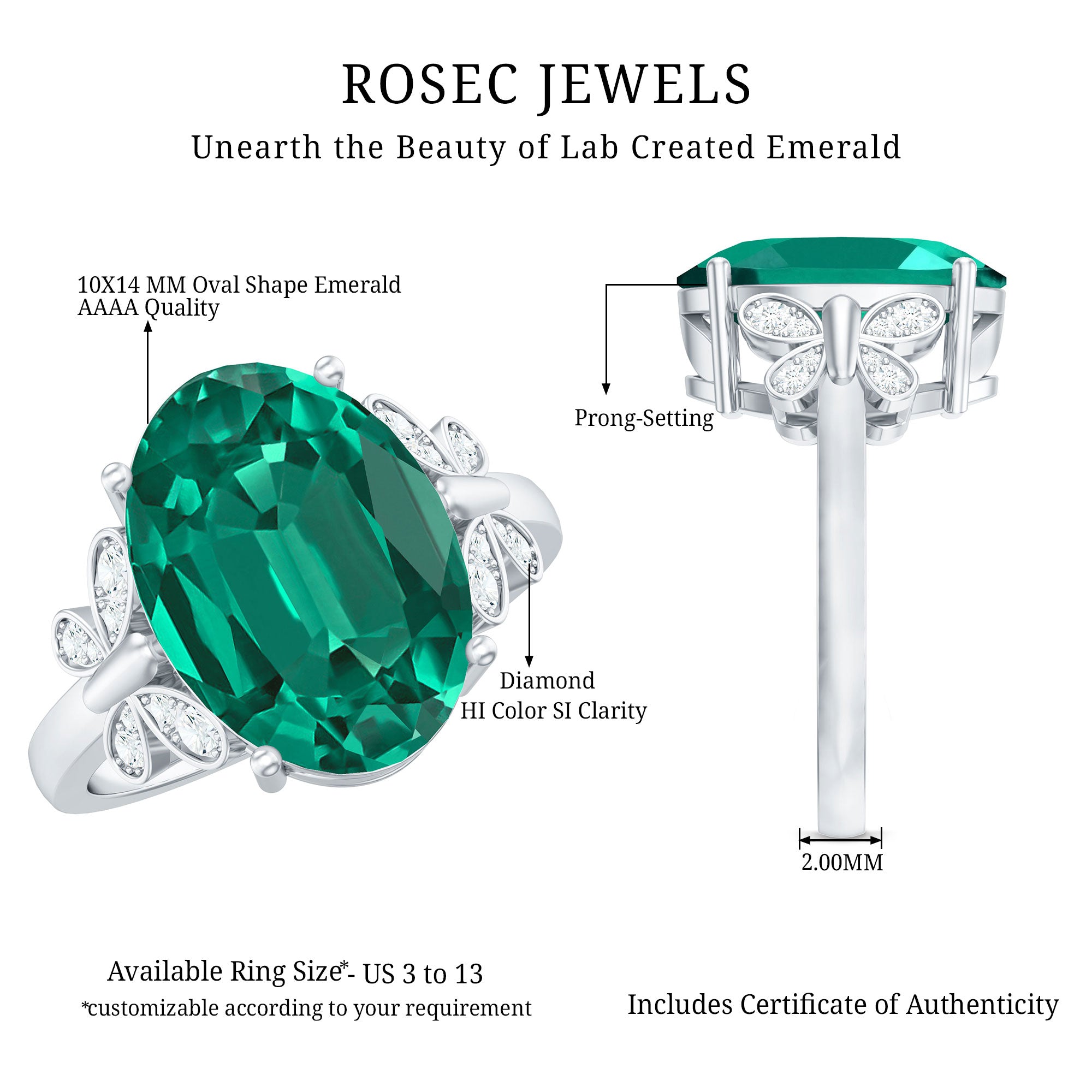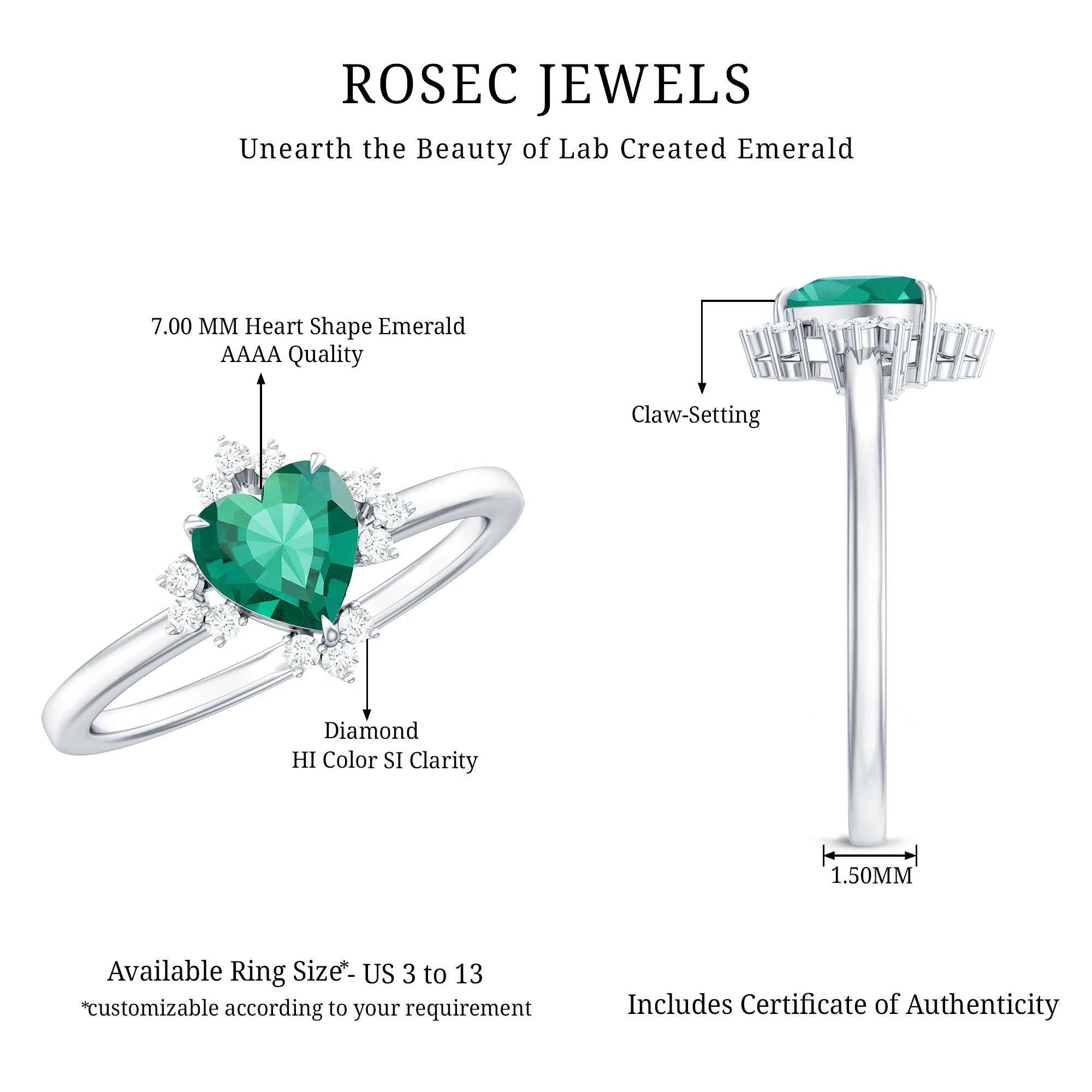 Rosec Jewels believes that every love story is different and should be presented with a unique symbol. Here are some more reasons for choosing our lab created emerald engagement rings: