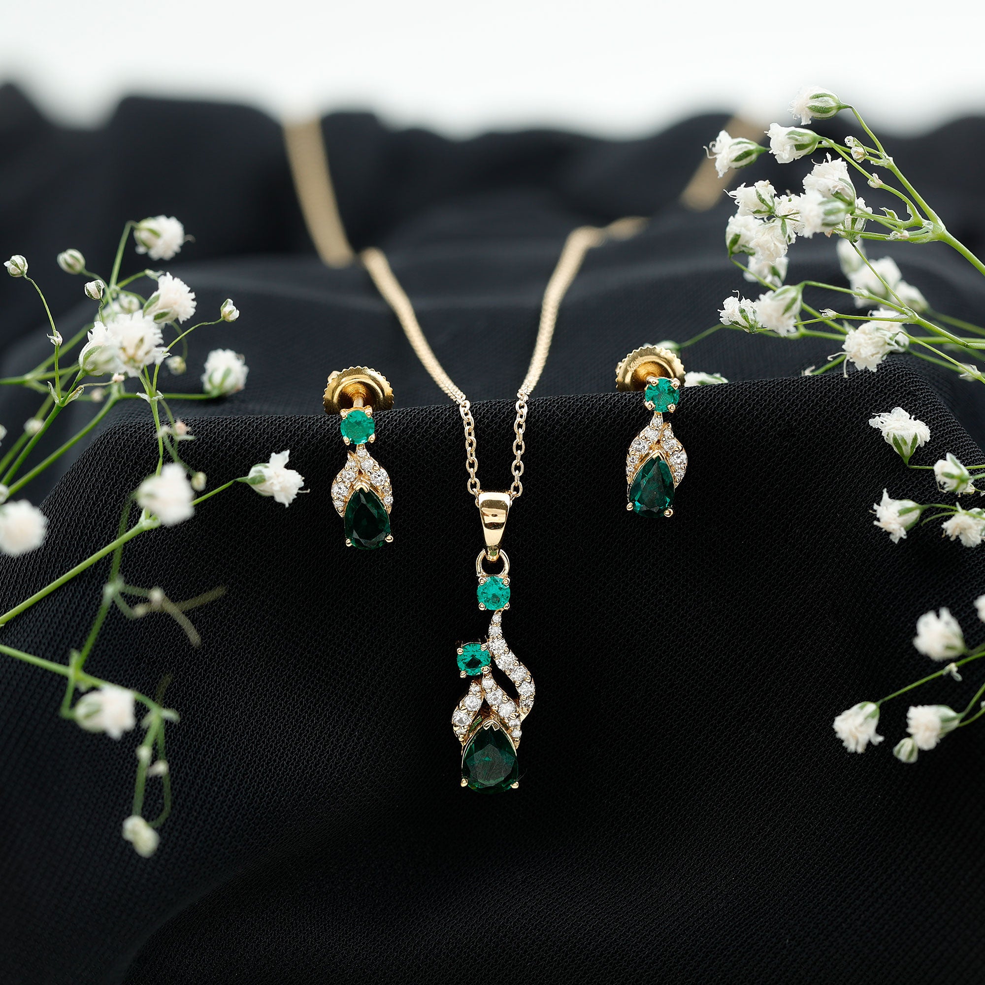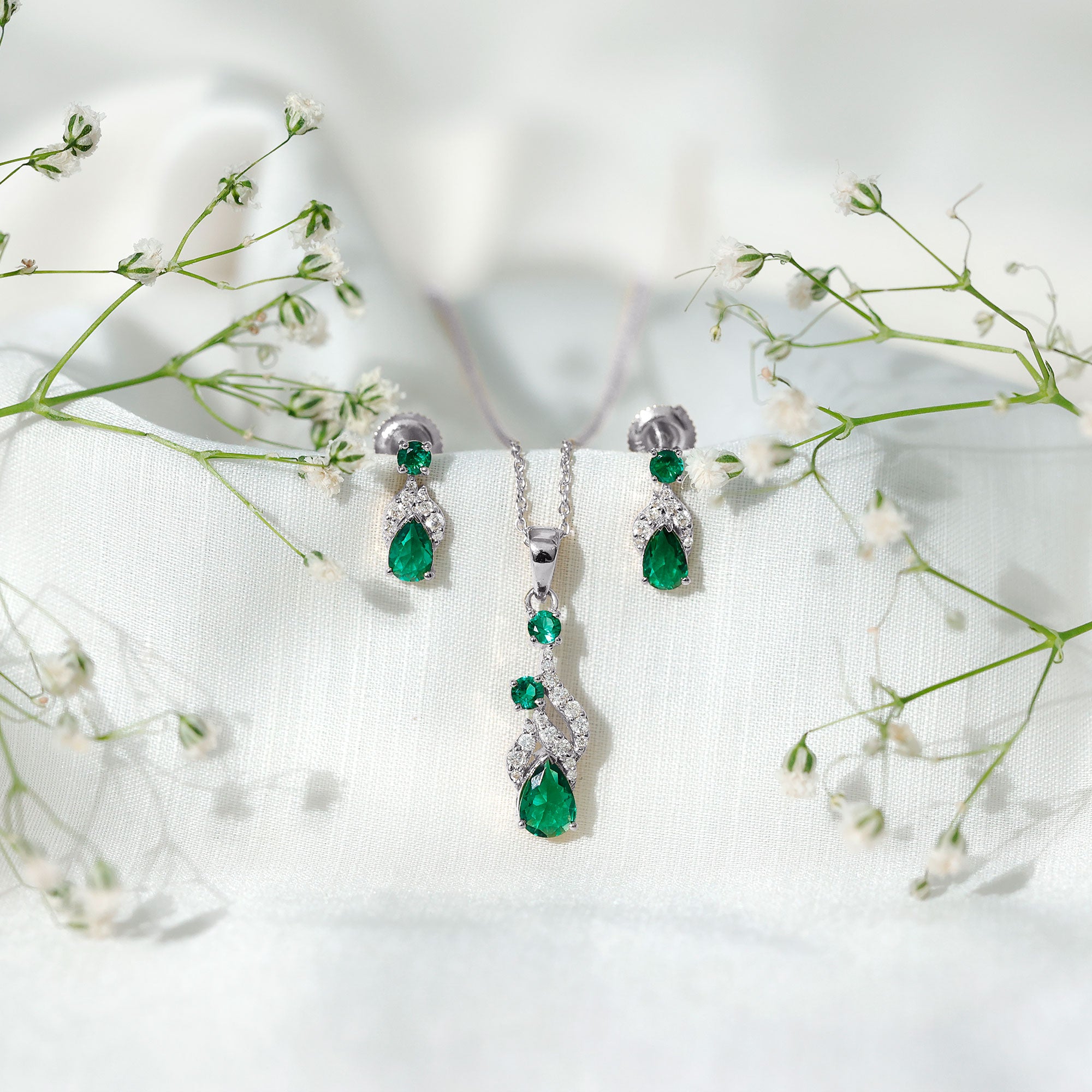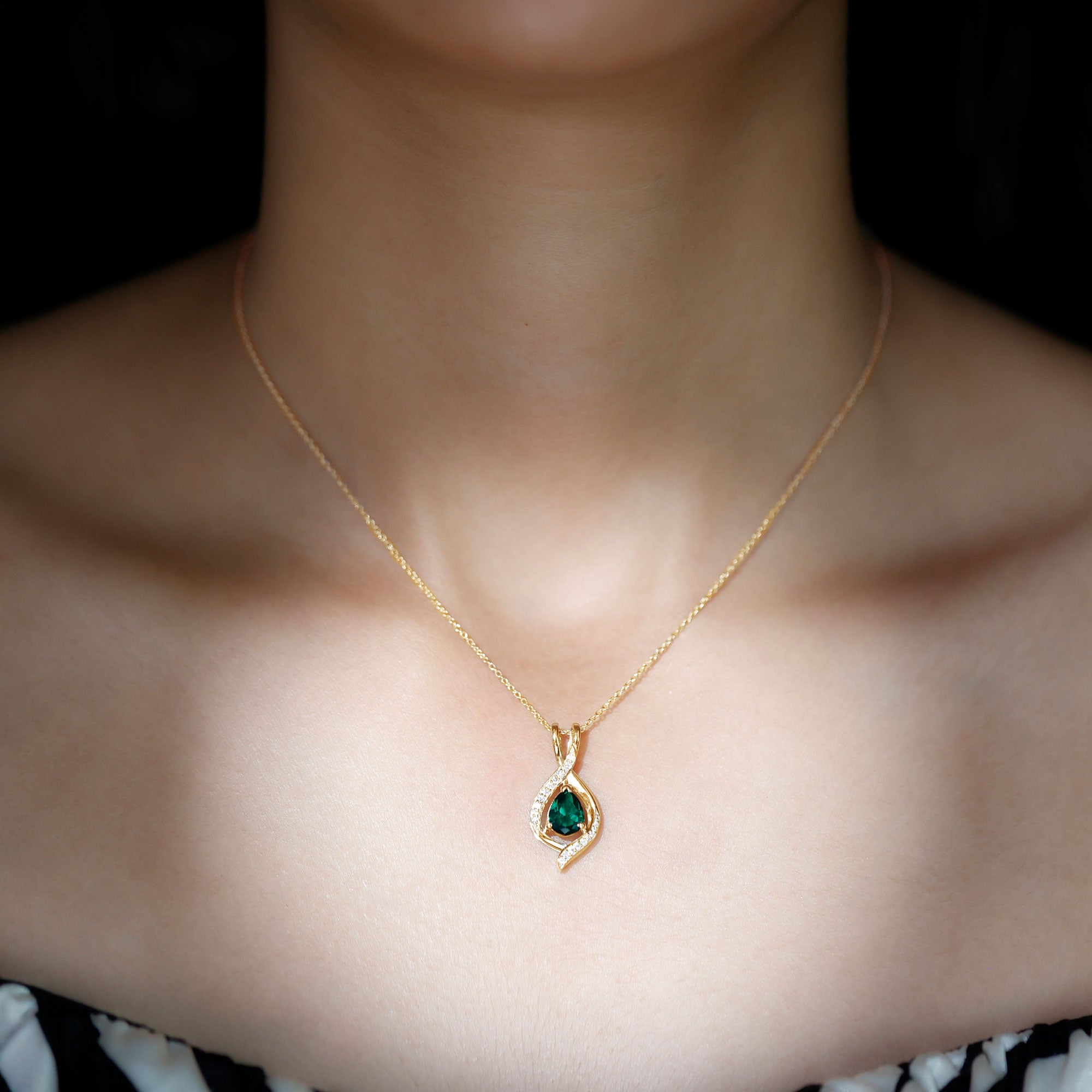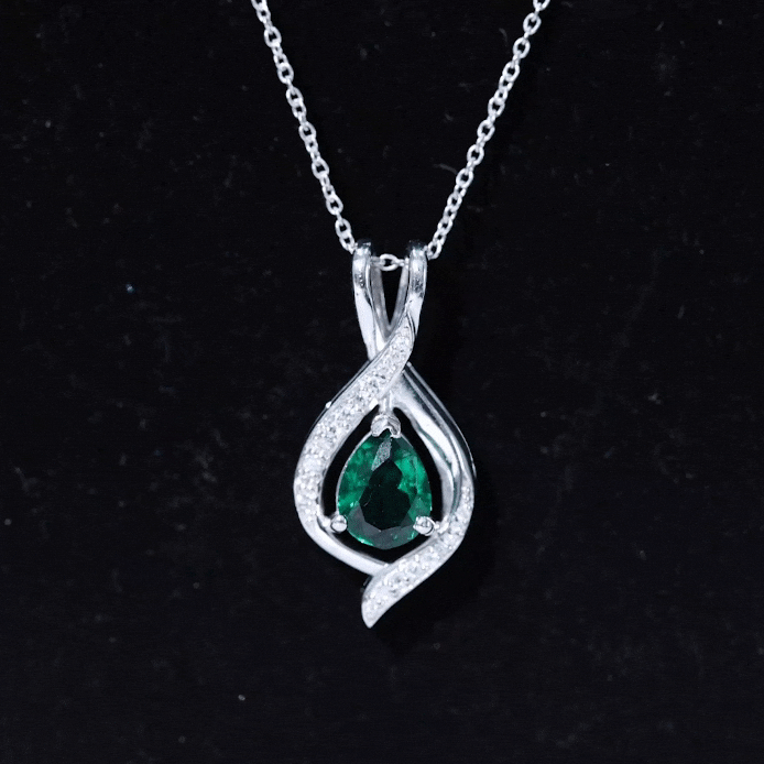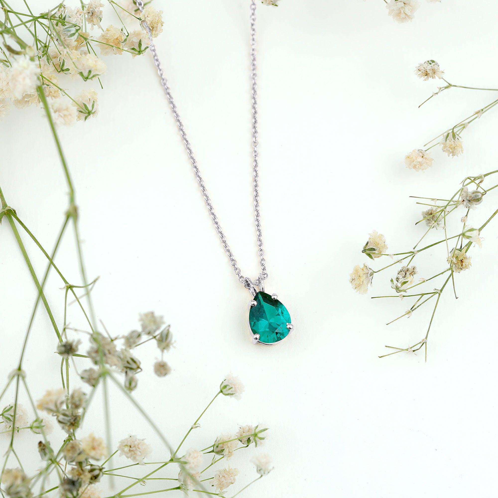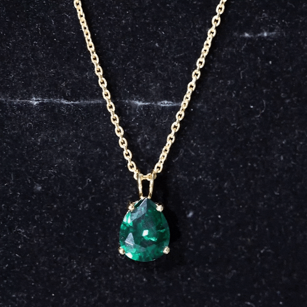 Emerald hanging from a chain shines as a drop in different shapes like pear, round and more in a lab created emerald pendant. While the dangle design fixed for to and fro motion draws attention with emeralds green hue. Dainty to large gemstones make this style perfect for special evenings and casual mornings.