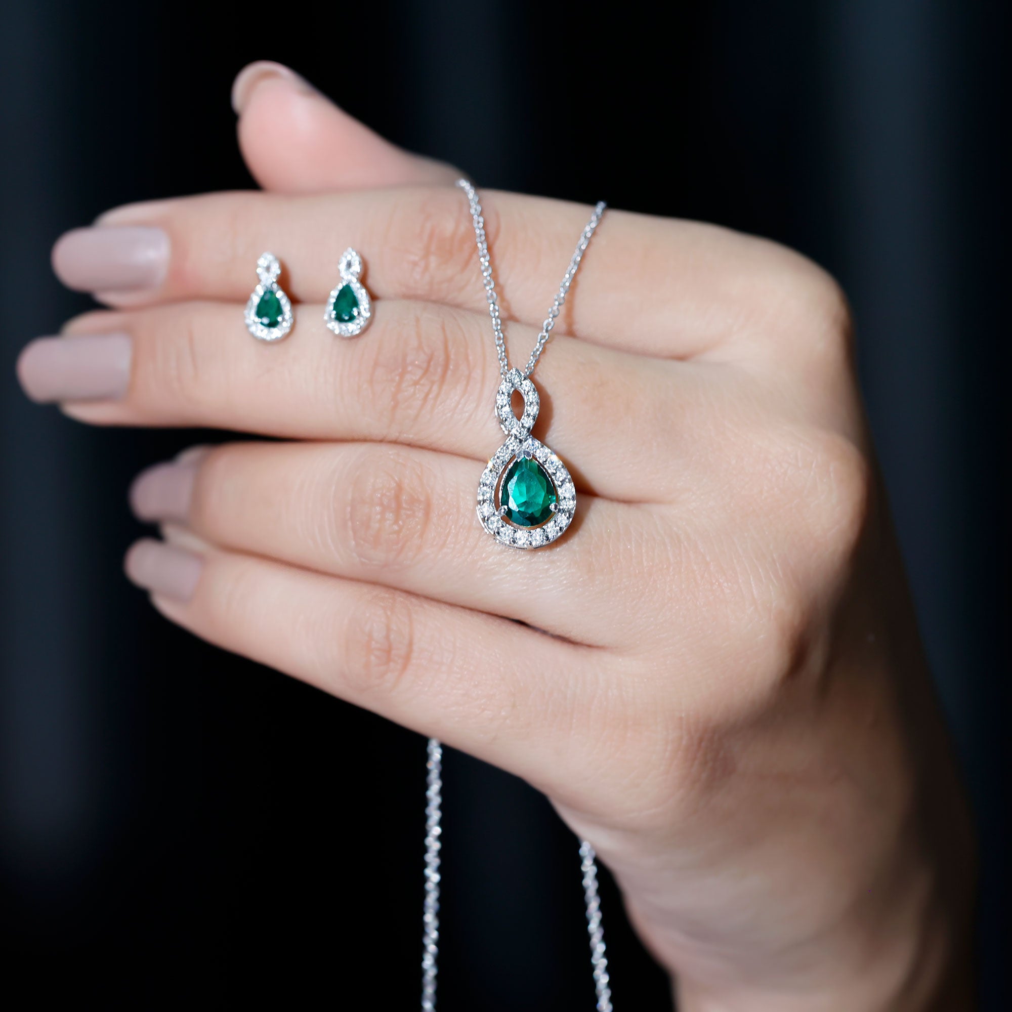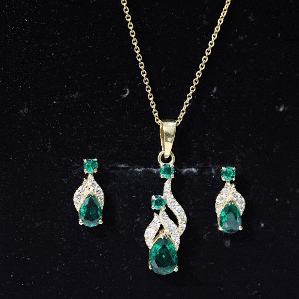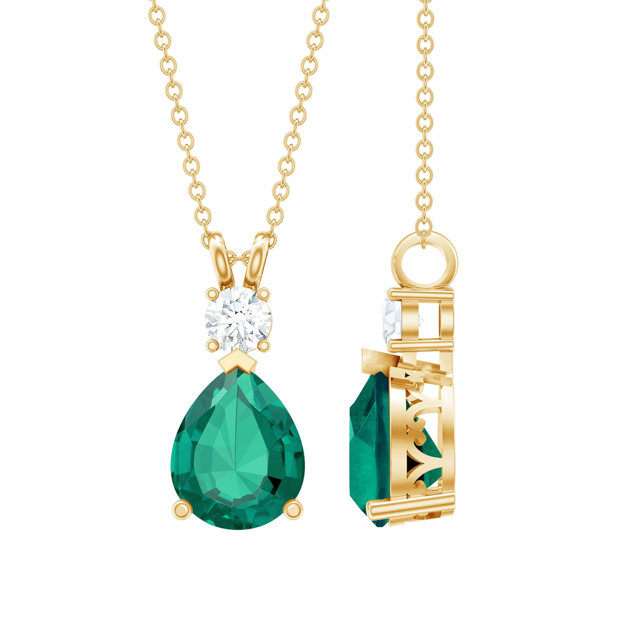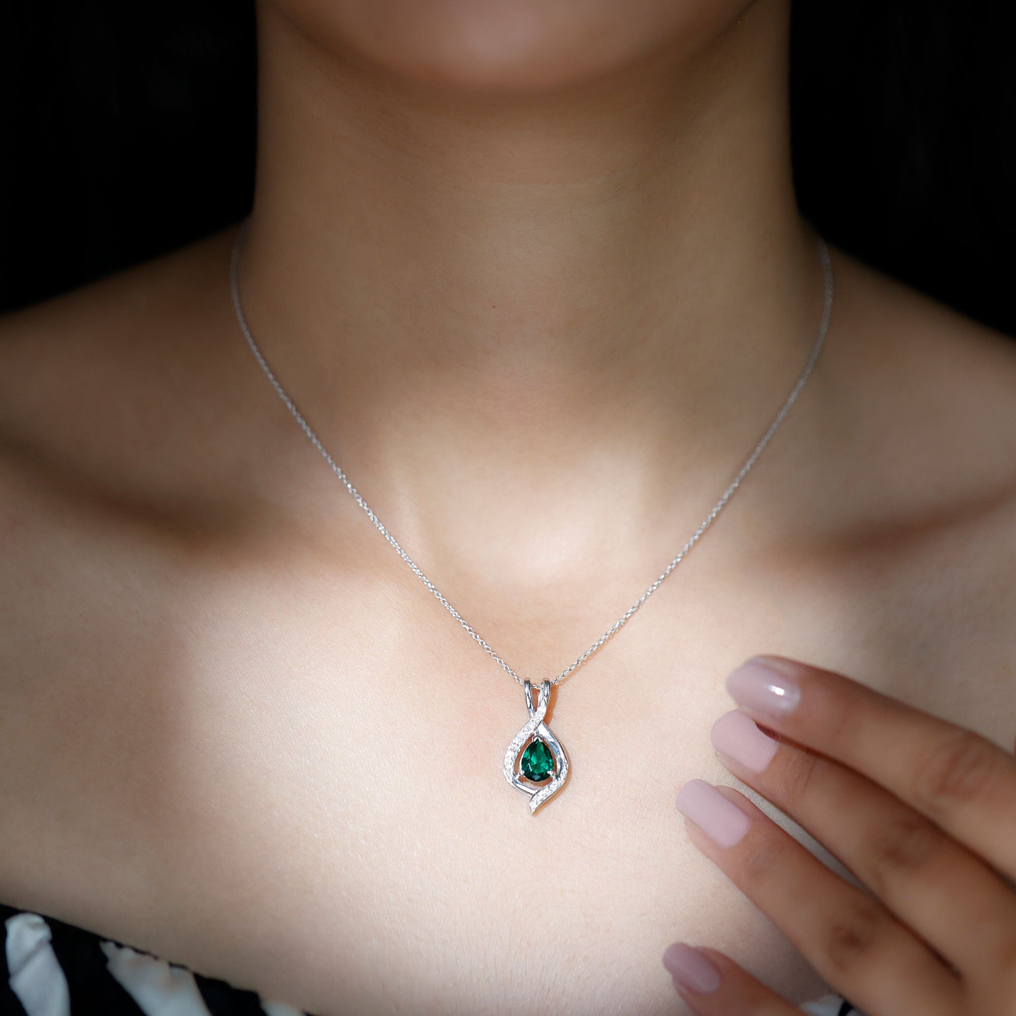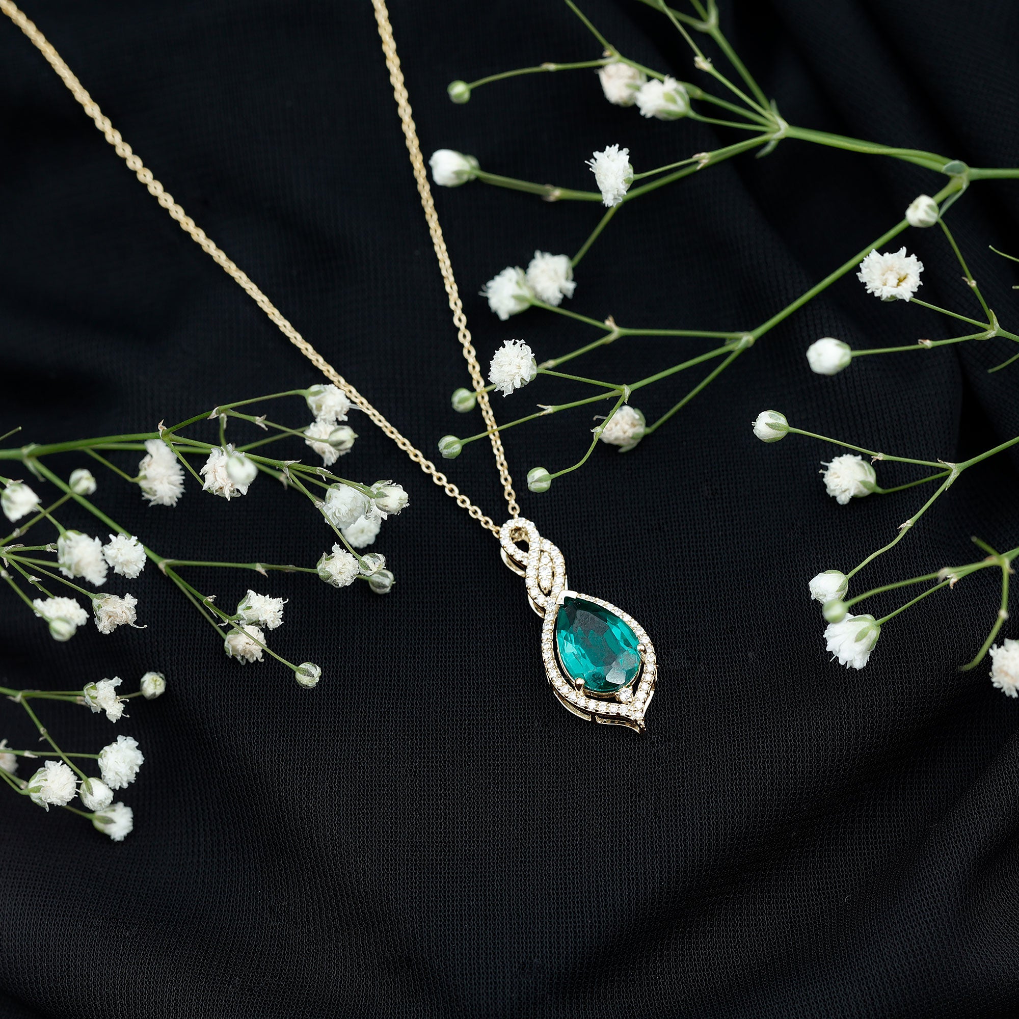 Emerald hanging from a chain shines as a drop in different shapes like pear, round and more in a lab created emerald pendant. While the dangle design fixed for to and fro motion draws attention with emeralds green hue. Dainty to large gemstones make this style perfect for special evenings and casual mornings.