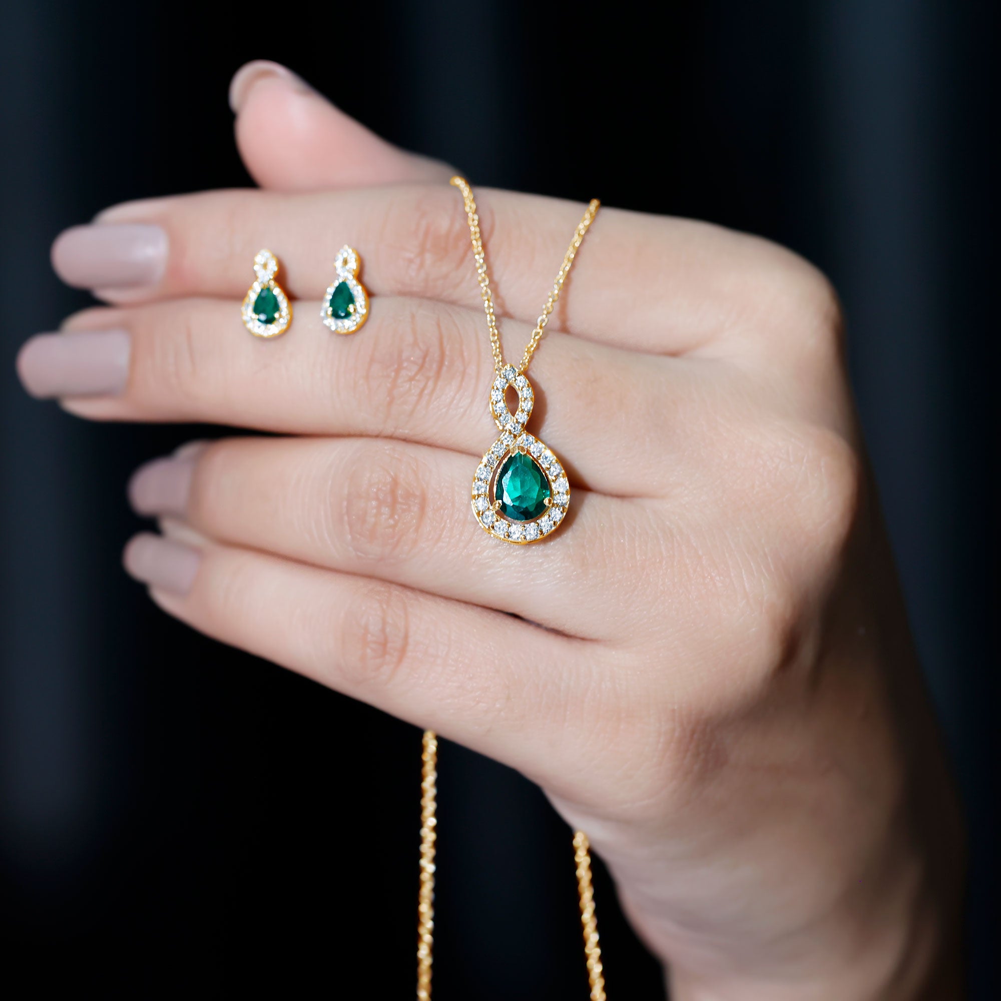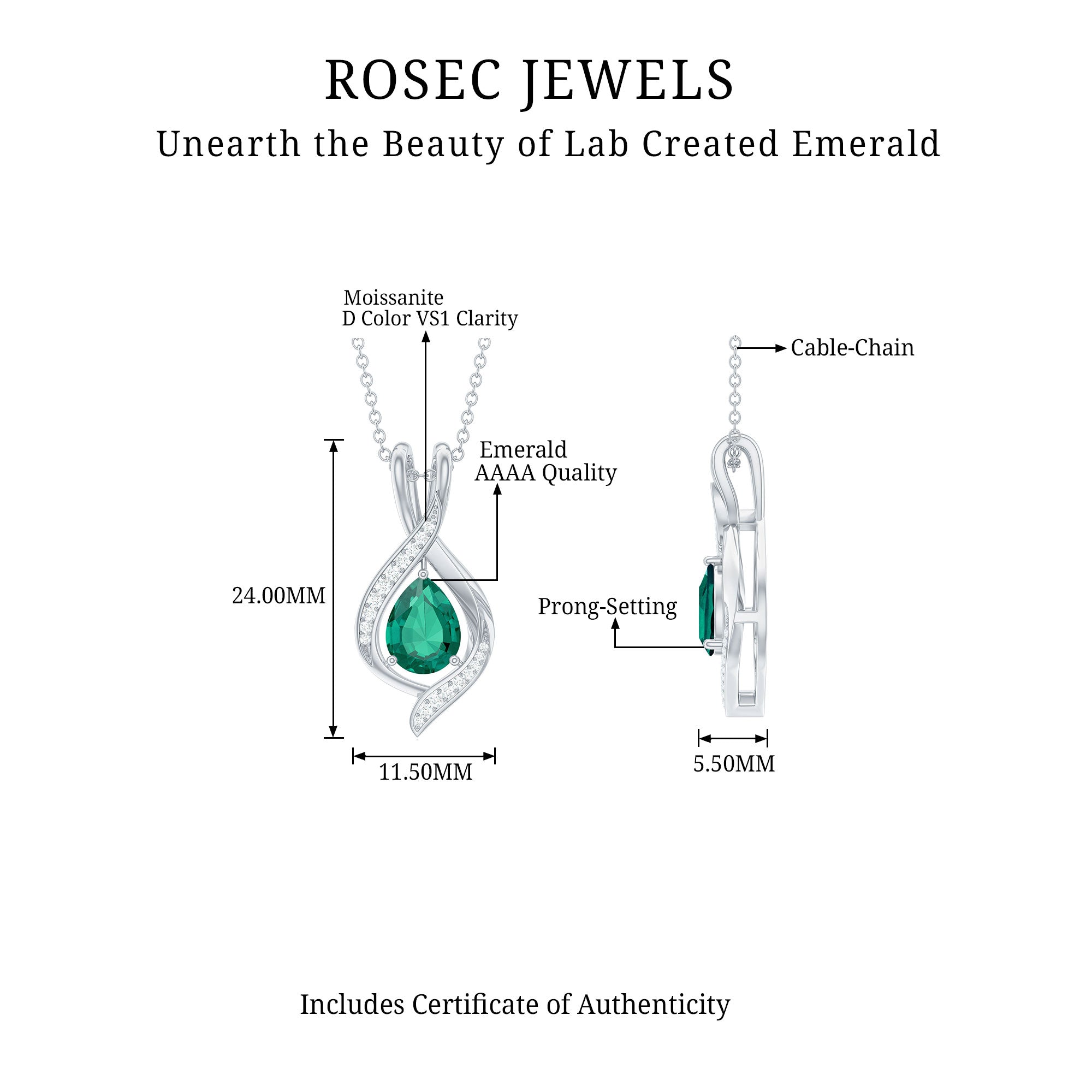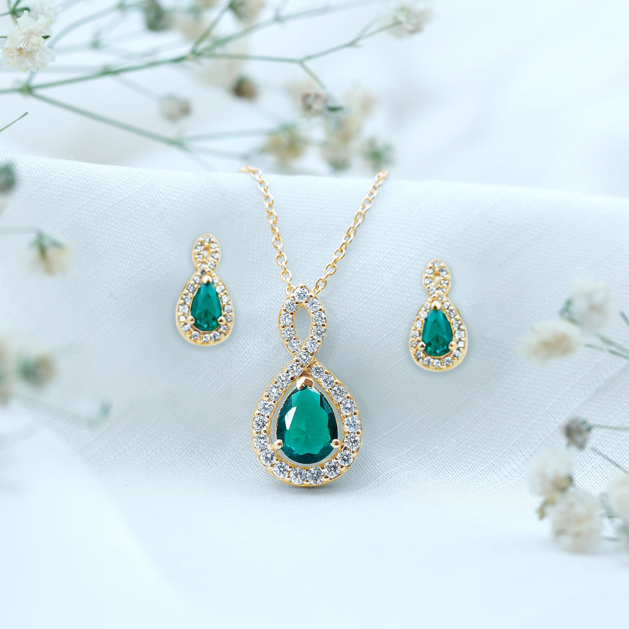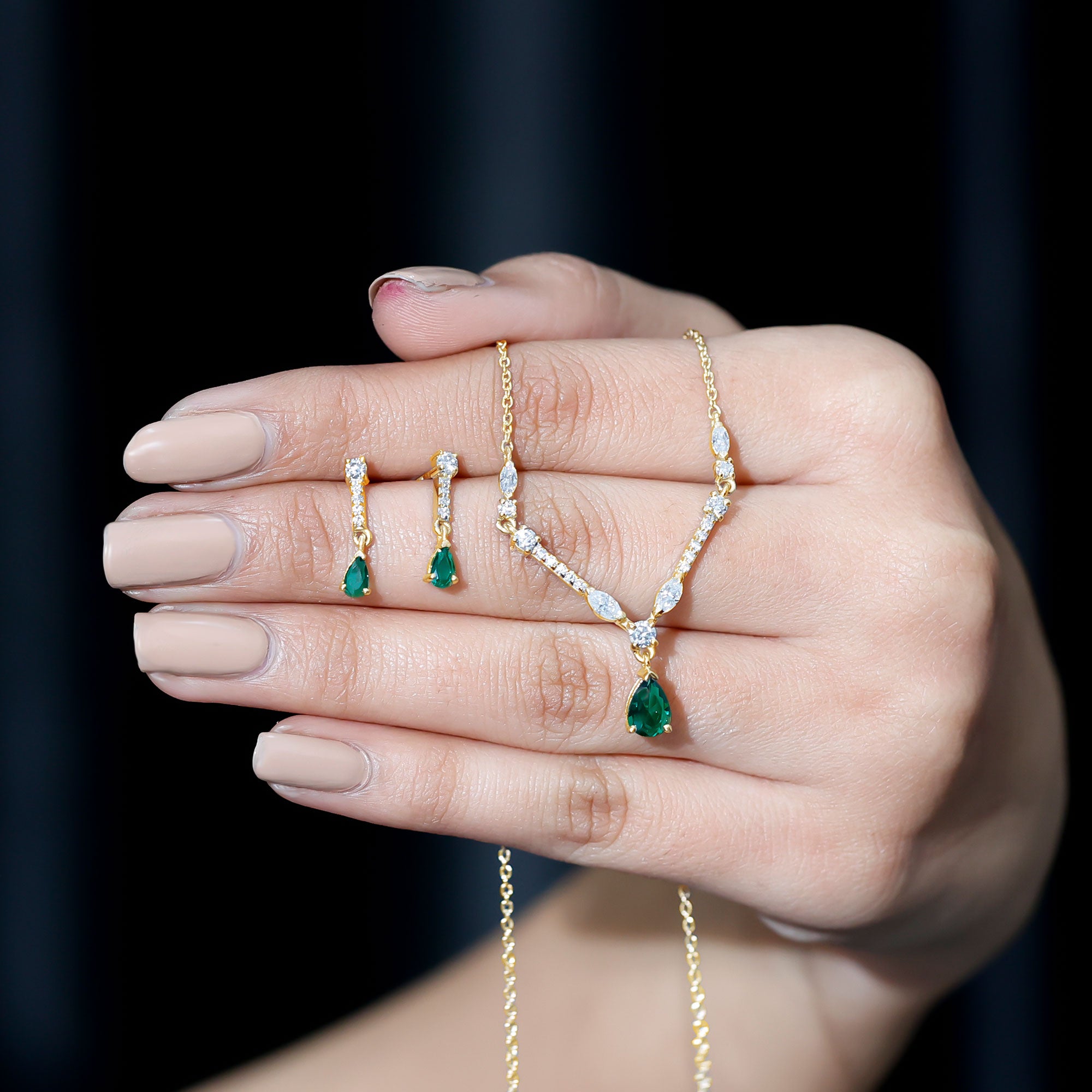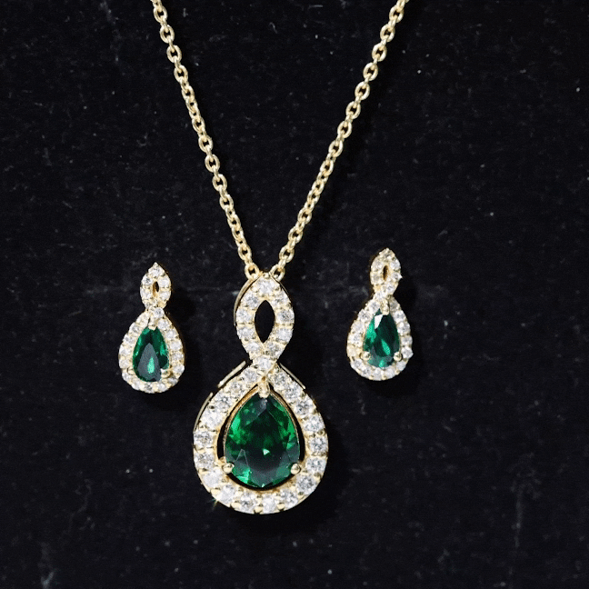 Emerald hanging from a chain shines as a drop in different shapes like pear, round and more in a lab created emerald pendant. While the dangle design fixed for to and fro motion draws attention with emeralds green hue. Dainty to large gemstones make this style perfect for special evenings and casual mornings.