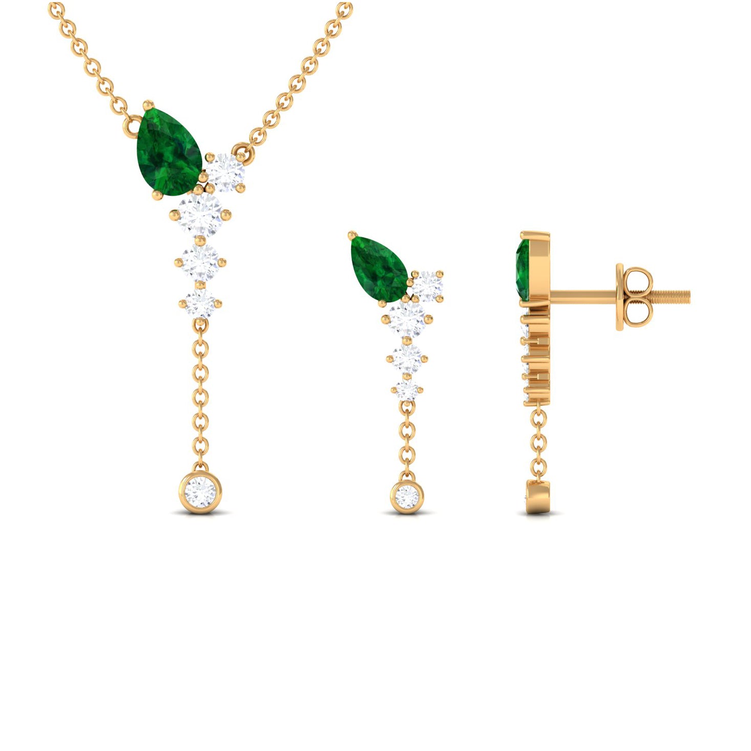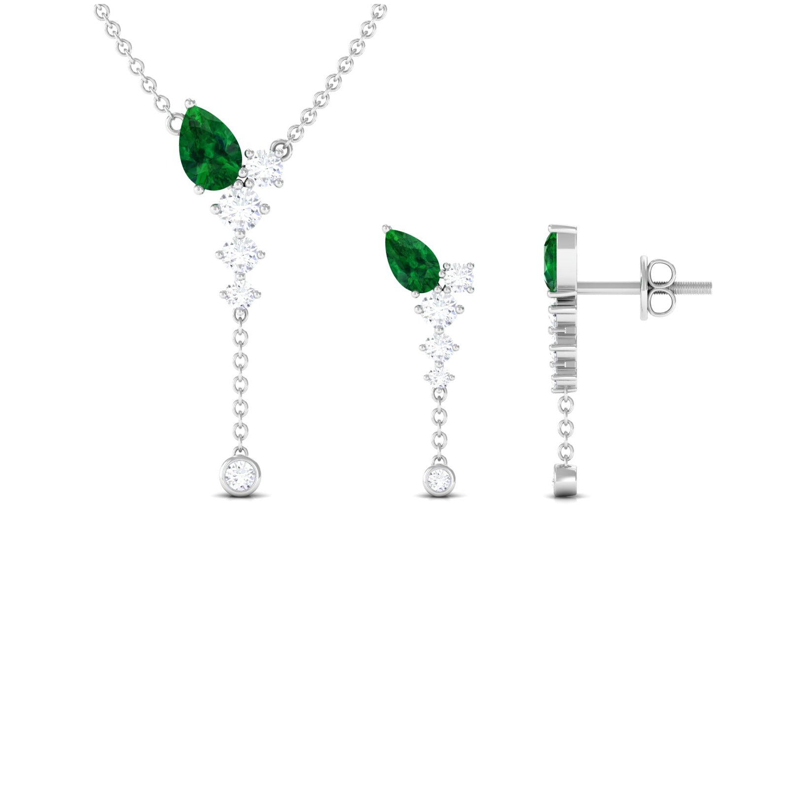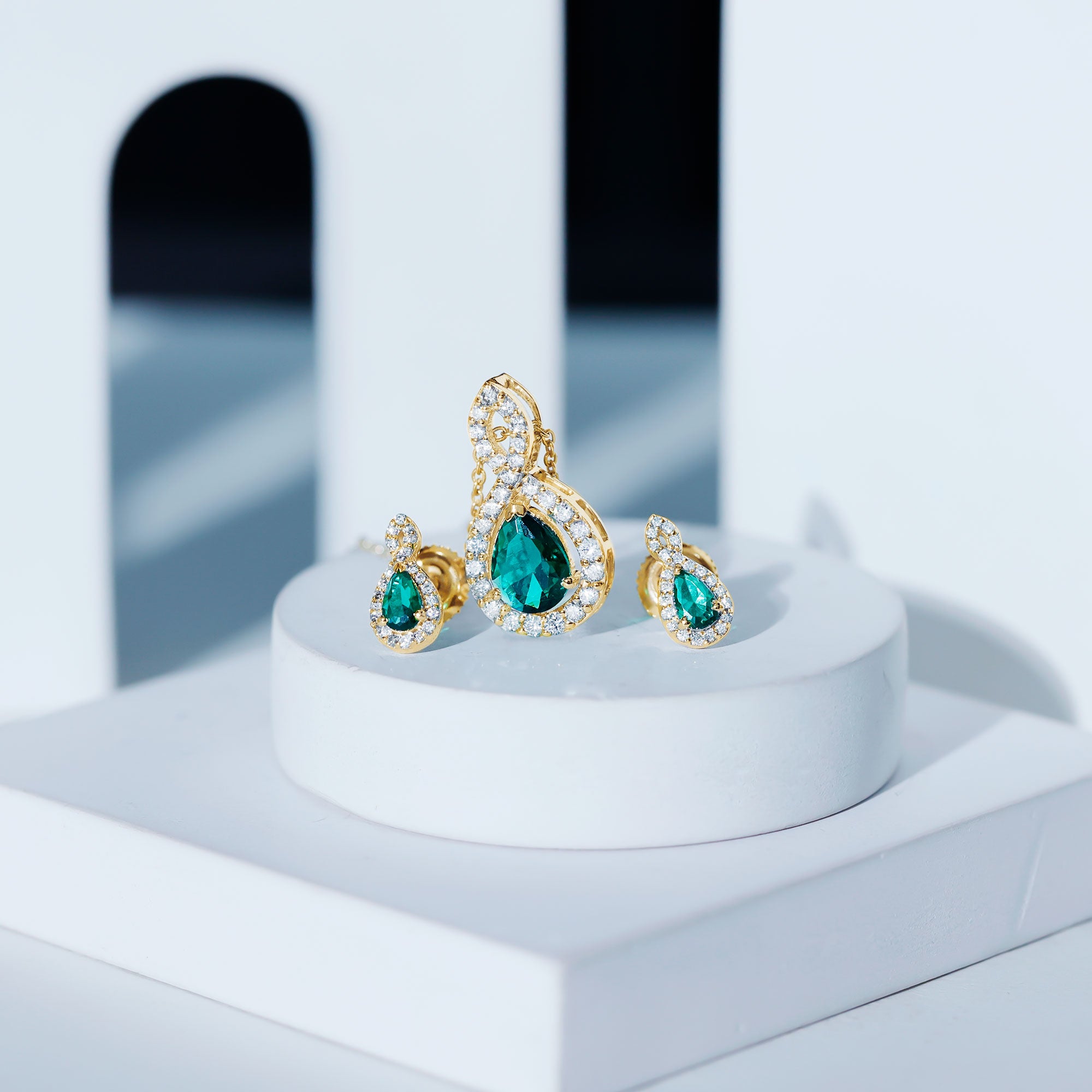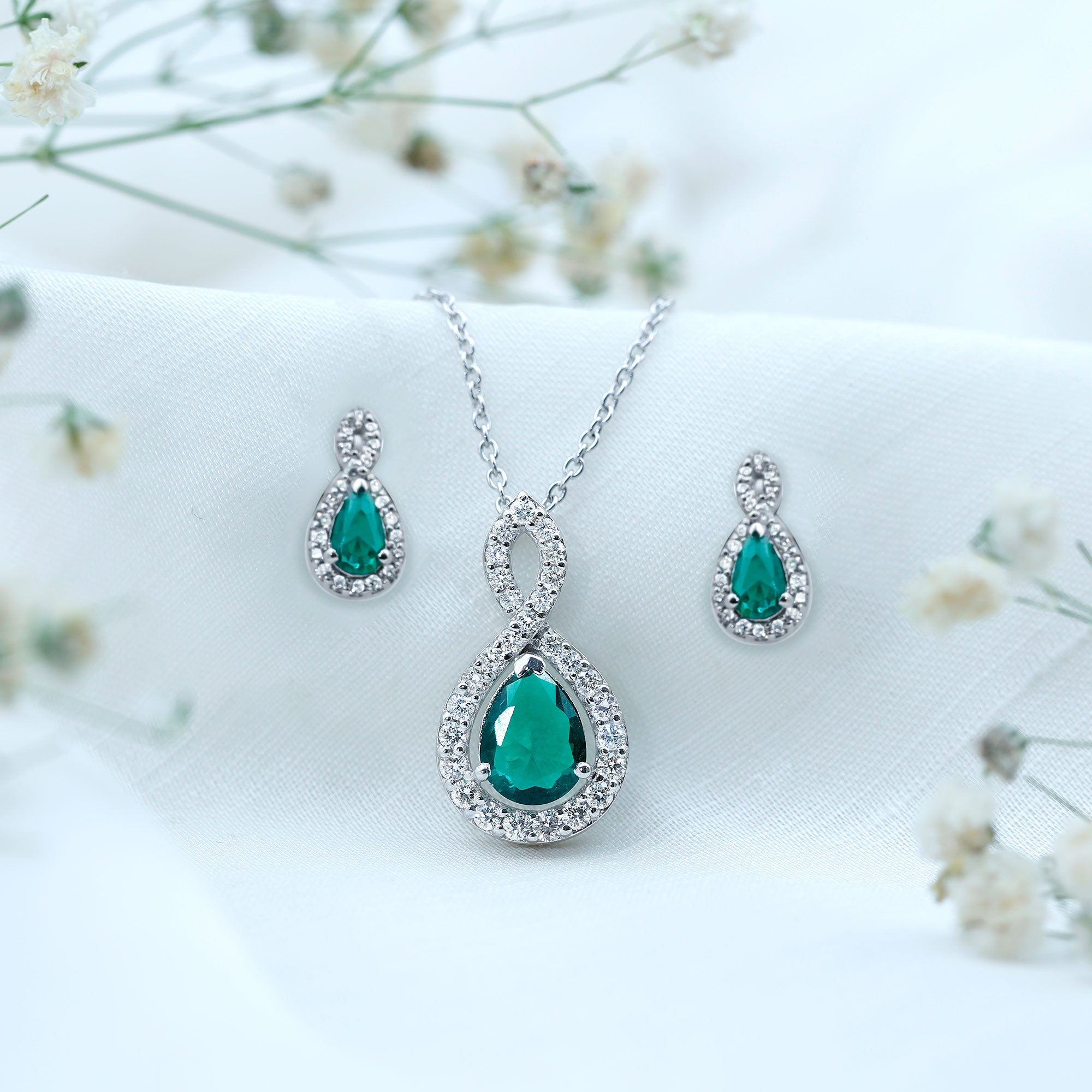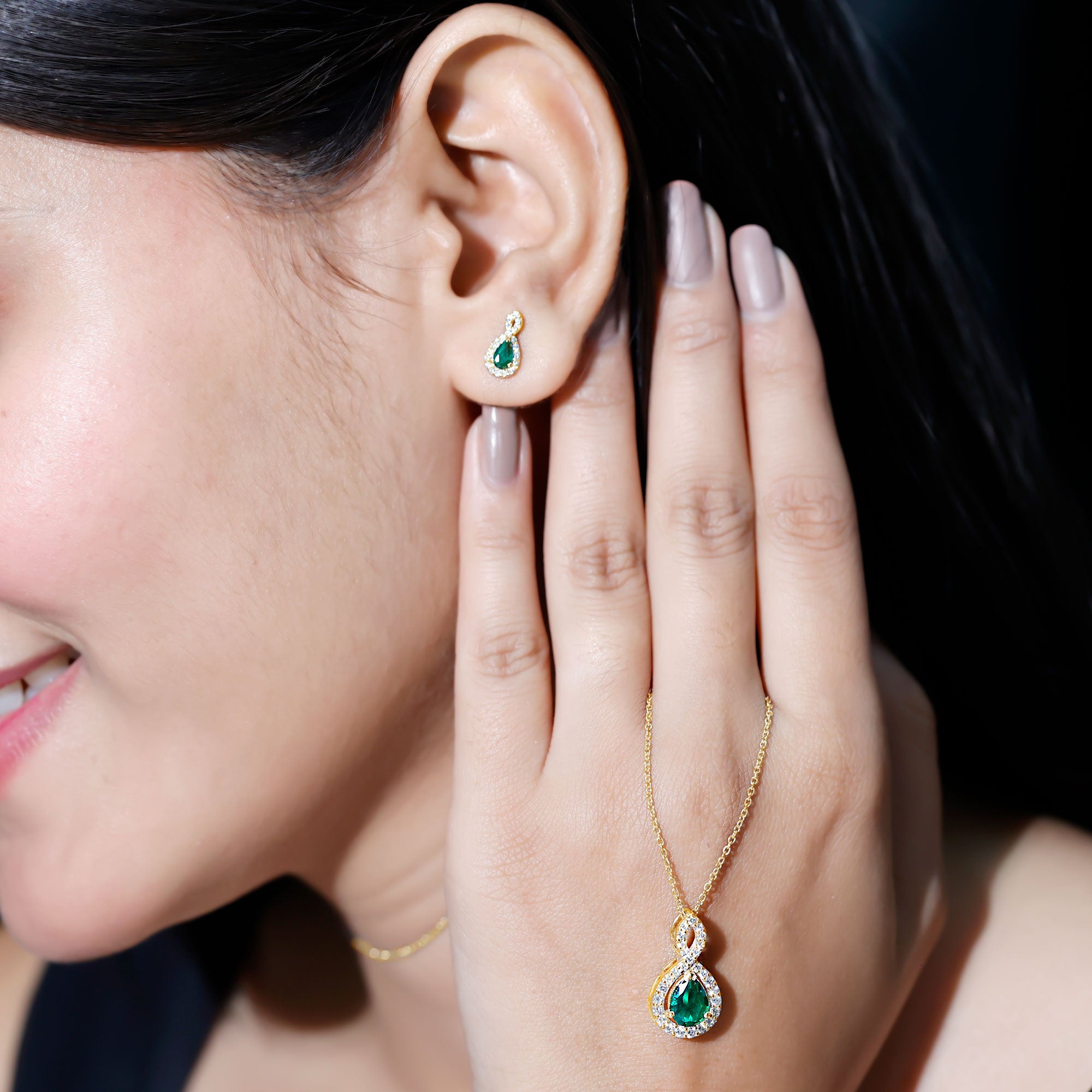 Emerald hanging from a chain shines as a drop in different shapes like pear, round and more in a lab created emerald pendant. While the dangle design fixed for to and fro motion draws attention with emeralds green hue. Dainty to large gemstones make this style perfect for special evenings and casual mornings.
