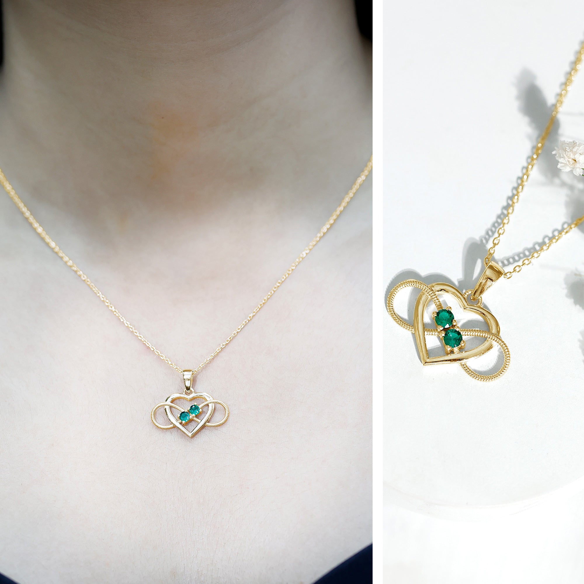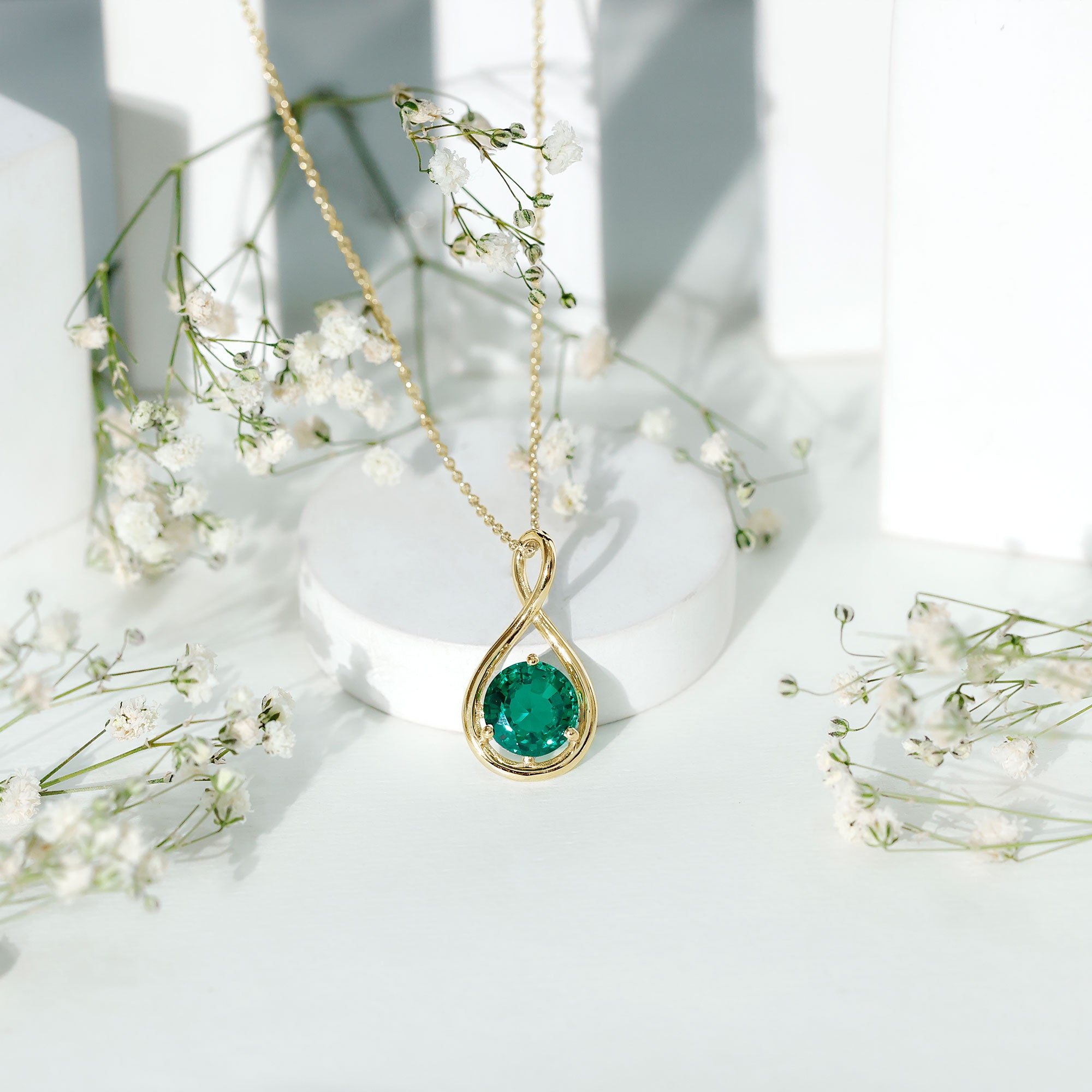 Symbolizing endless love, eternity lab emerald necklaces are timeless and meaningful jewel pieces. This elegant design features continuous gemstones on a circular metallic frame.