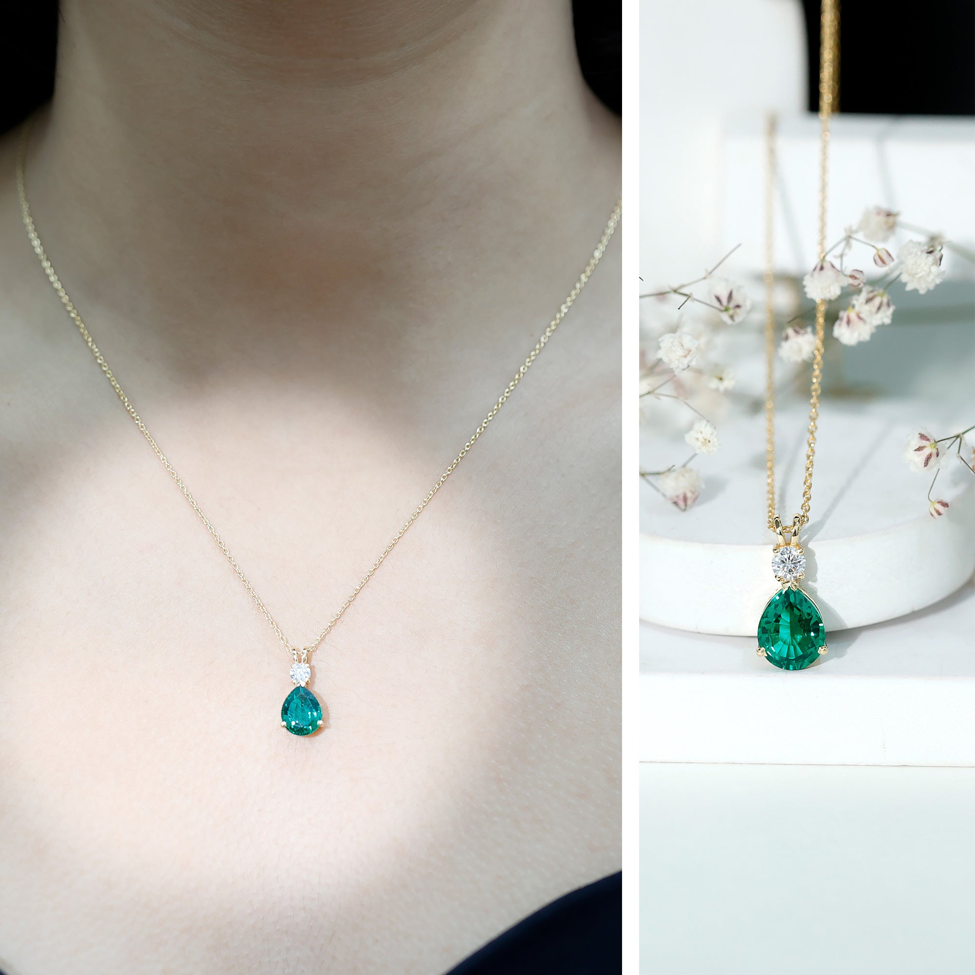 Lab grown emerald necklaces are for those who love understated and simple beauty. The subtle emerald detail makes it wearable daily. These necklaces can be easily layered on different occasions.