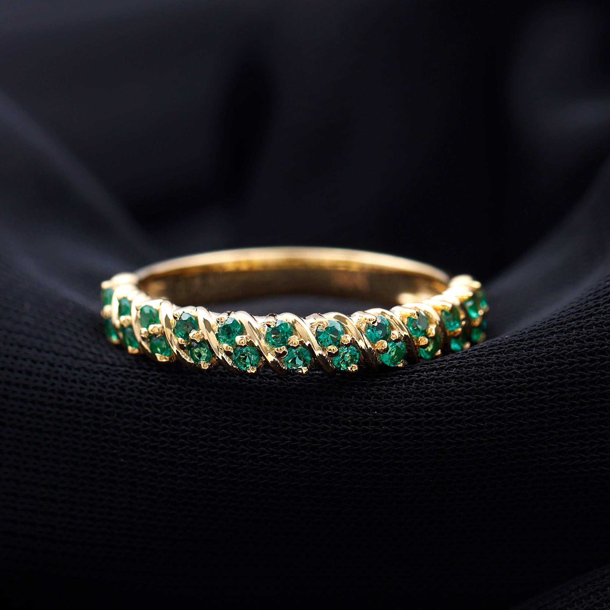 Embrace the allure of the natural world with this heartwarming Eternity Ring. This captivating ring captures the delicate beauty of eternal love, with lab grown emeralds encircling the entire band. The eternity design symbolizes the everlasting love of you two. Meticulously crafted with high-quality lab-grown emeralds, these rings are perfect for styling and represent everlasting love. You can wear it on your own or stack it with an engagement ring.
