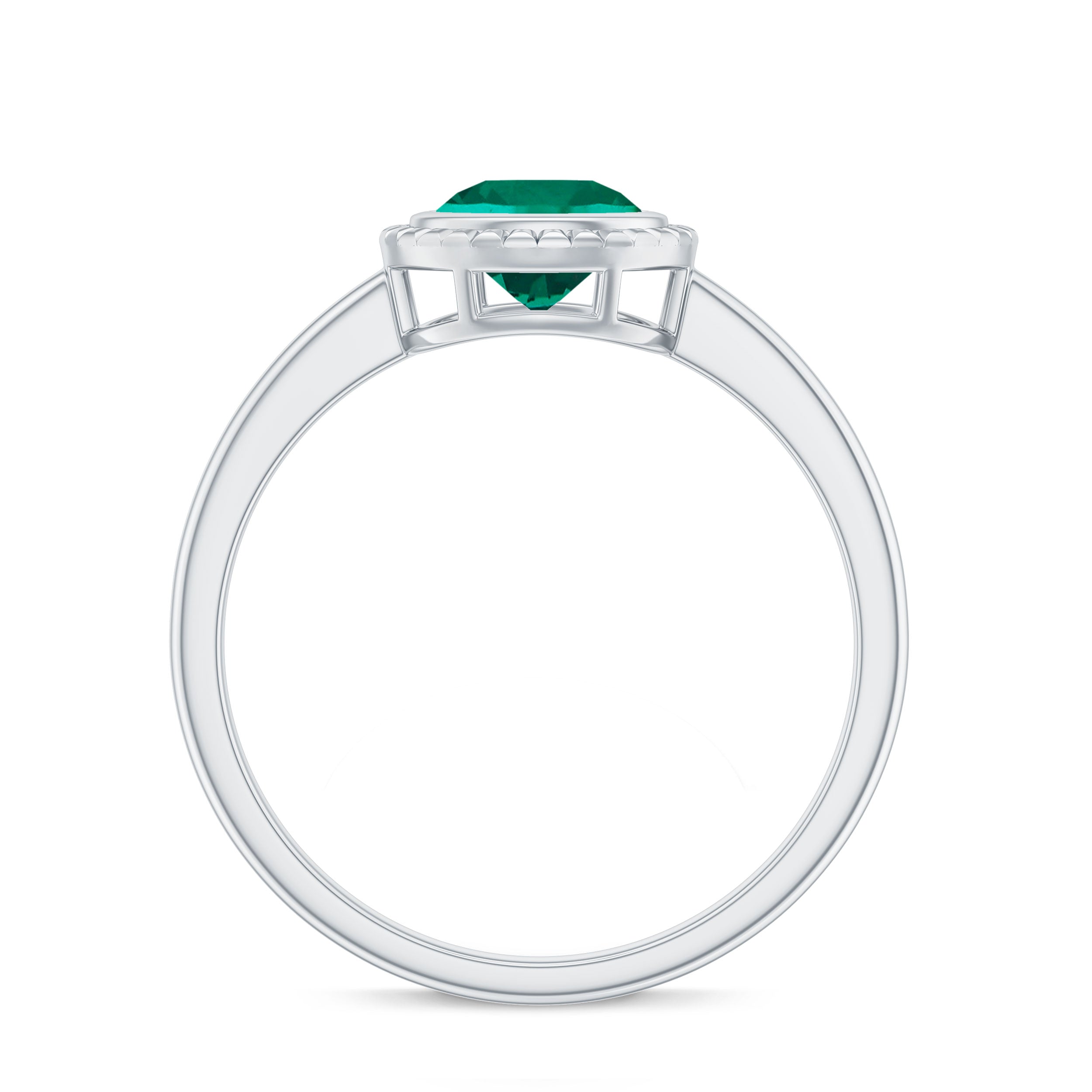 This mesmerizing lab created emerald Solitaire Ring is a harmonious blend of simplicity and sophistication. At its heart, a solitaire Lab Grown Emerald gemstone shines as a symbol of your love's brilliance, adding a touch of understated elegance. It's a representation of enduring commitment, where love takes center stage, and the beauty of your partnership shines through effortlessly.Halo Engagement Rings
