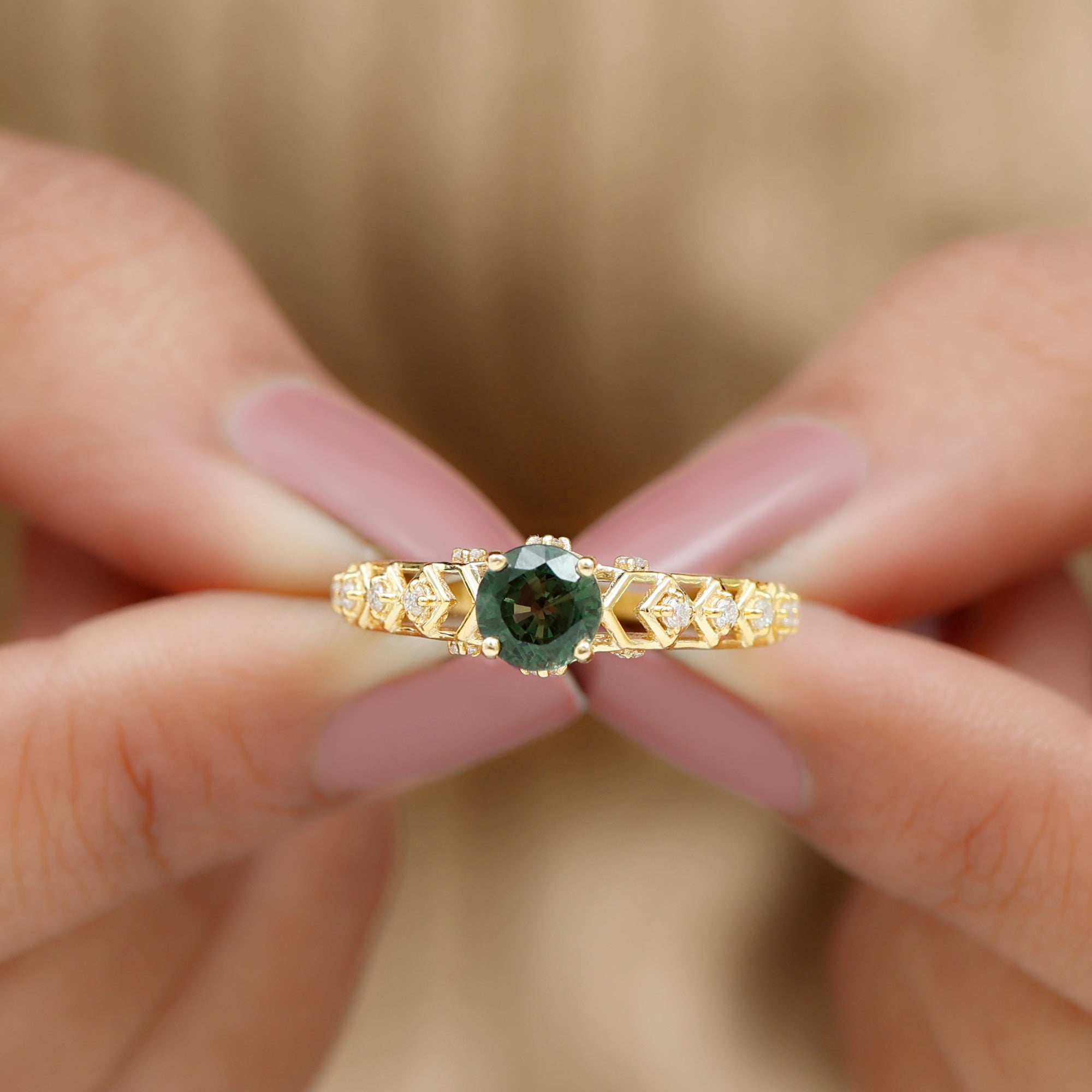 A green ring represents your green choice. Lab created green sapphire rings reflect your inner soul that admires nature and its beauty. Ethically and eco-friendly, these rings are unique and elegant traditional rings with a refreshing touch.