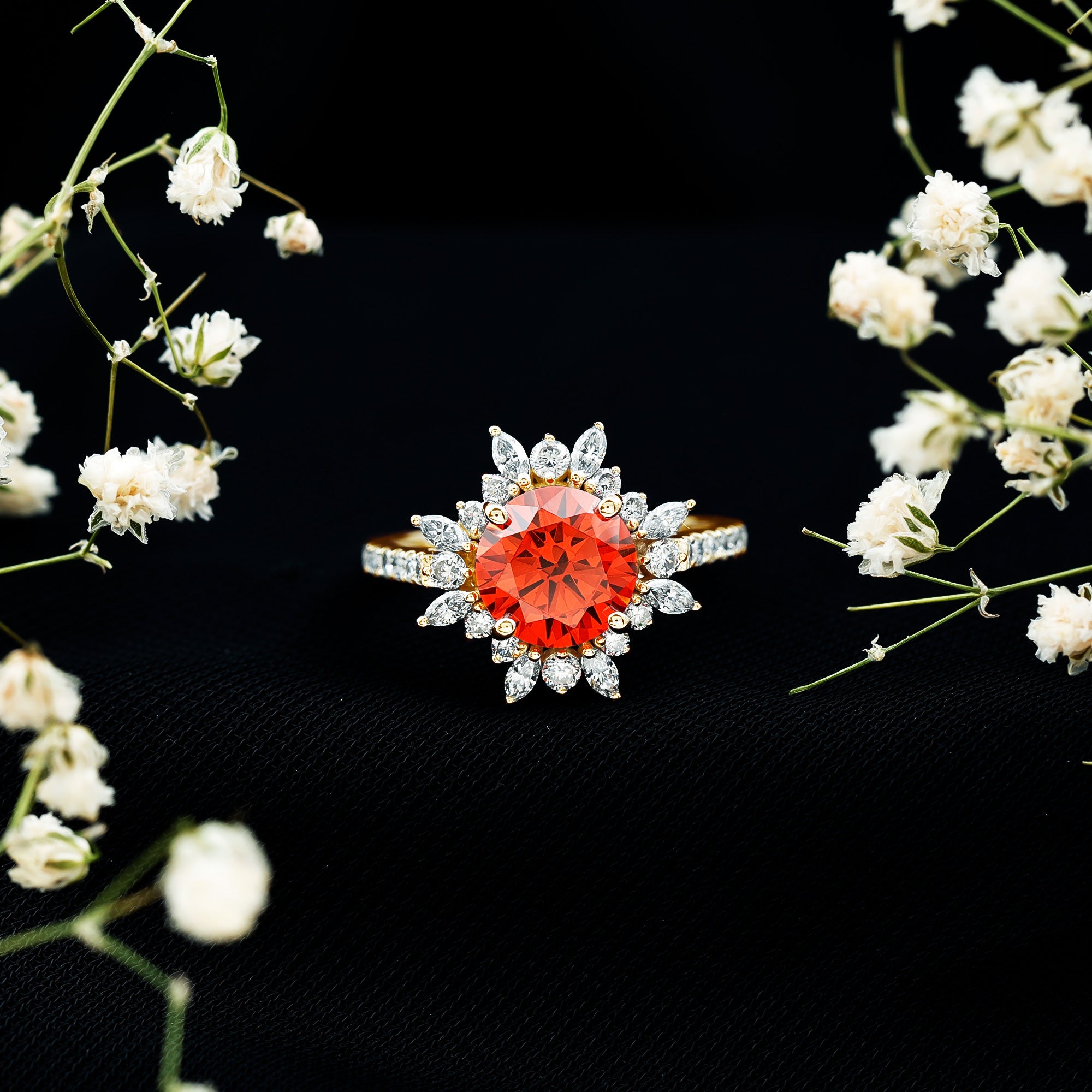 Lab Orange Sapphire Halo Rings