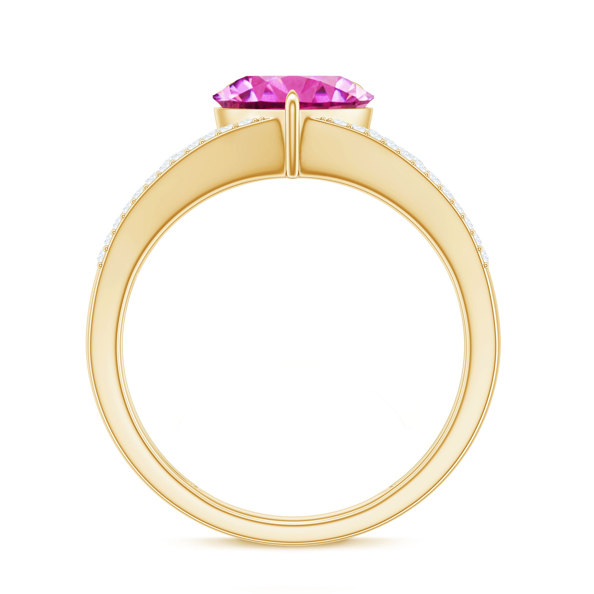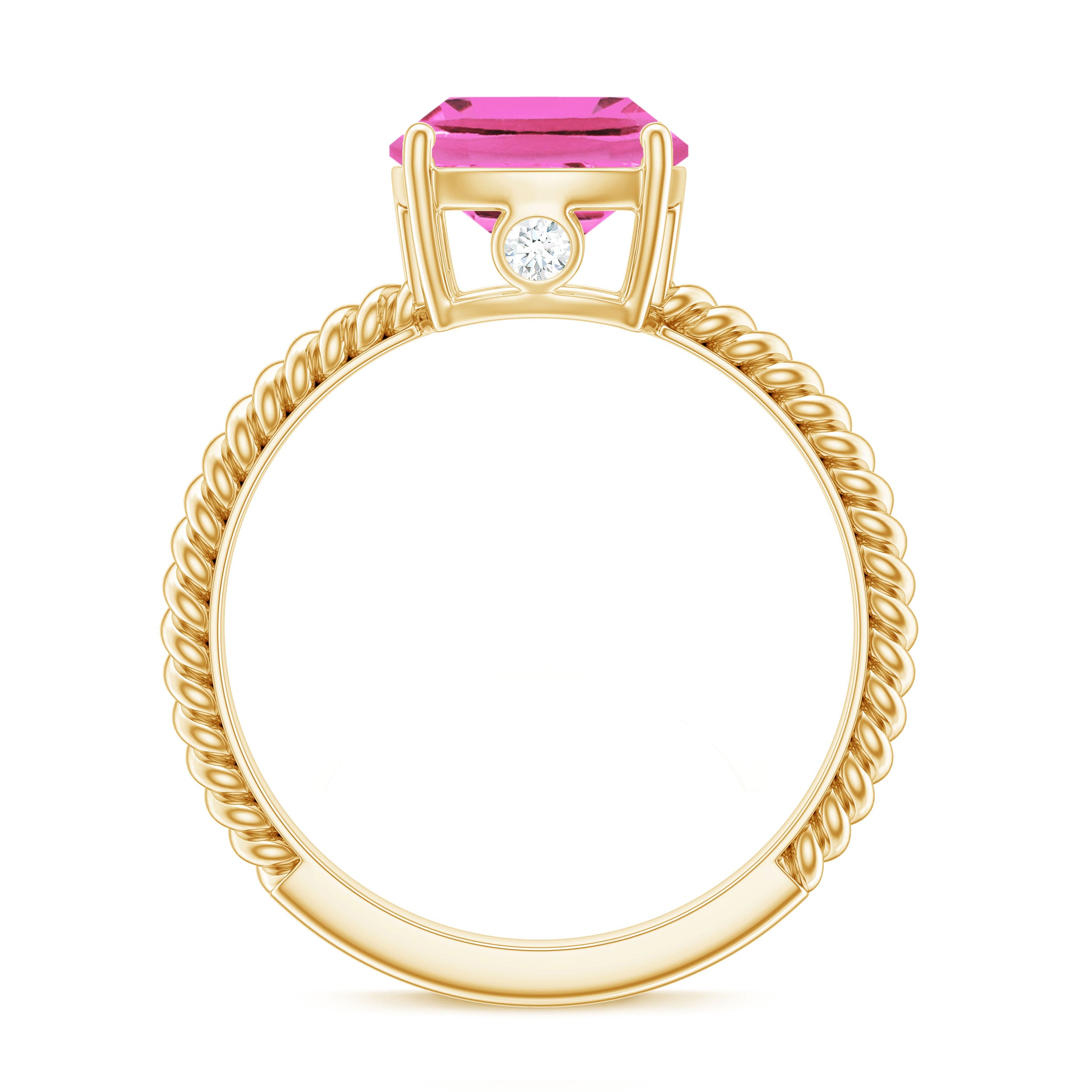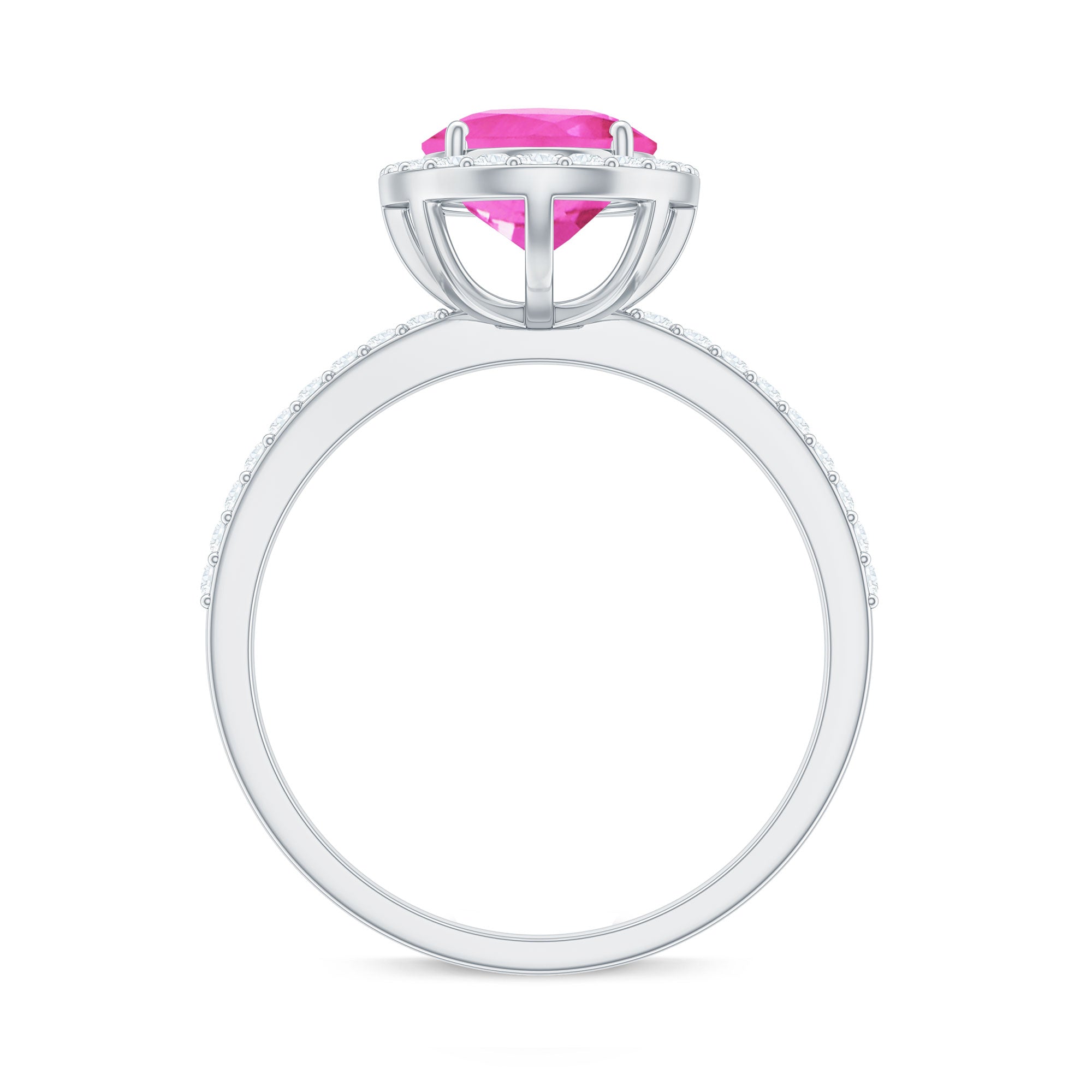 Popular settings for lab created pink sapphire rings are prong for maximum sparkle, bezel, channel, bar for maximum protection, and halo for endless brilliance.