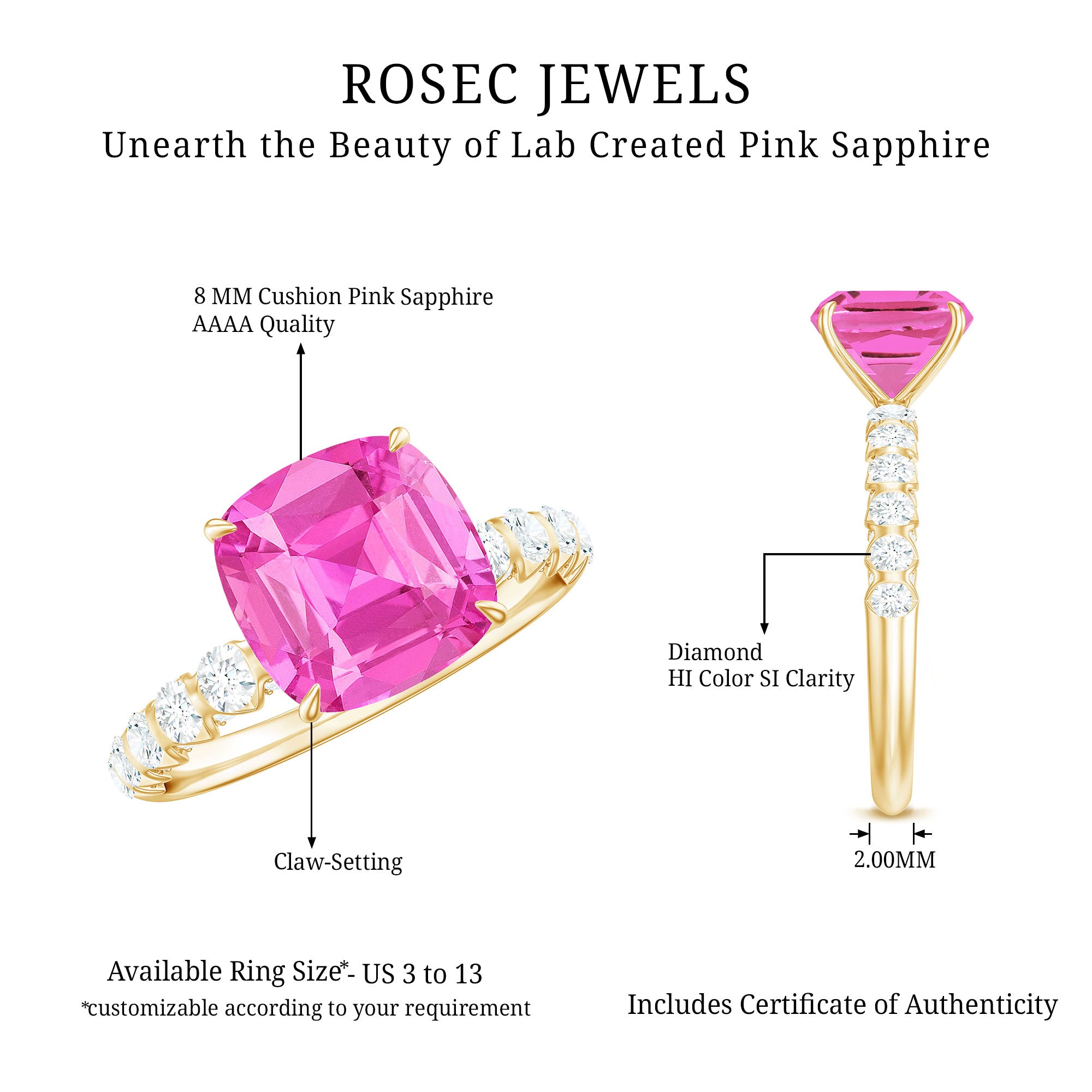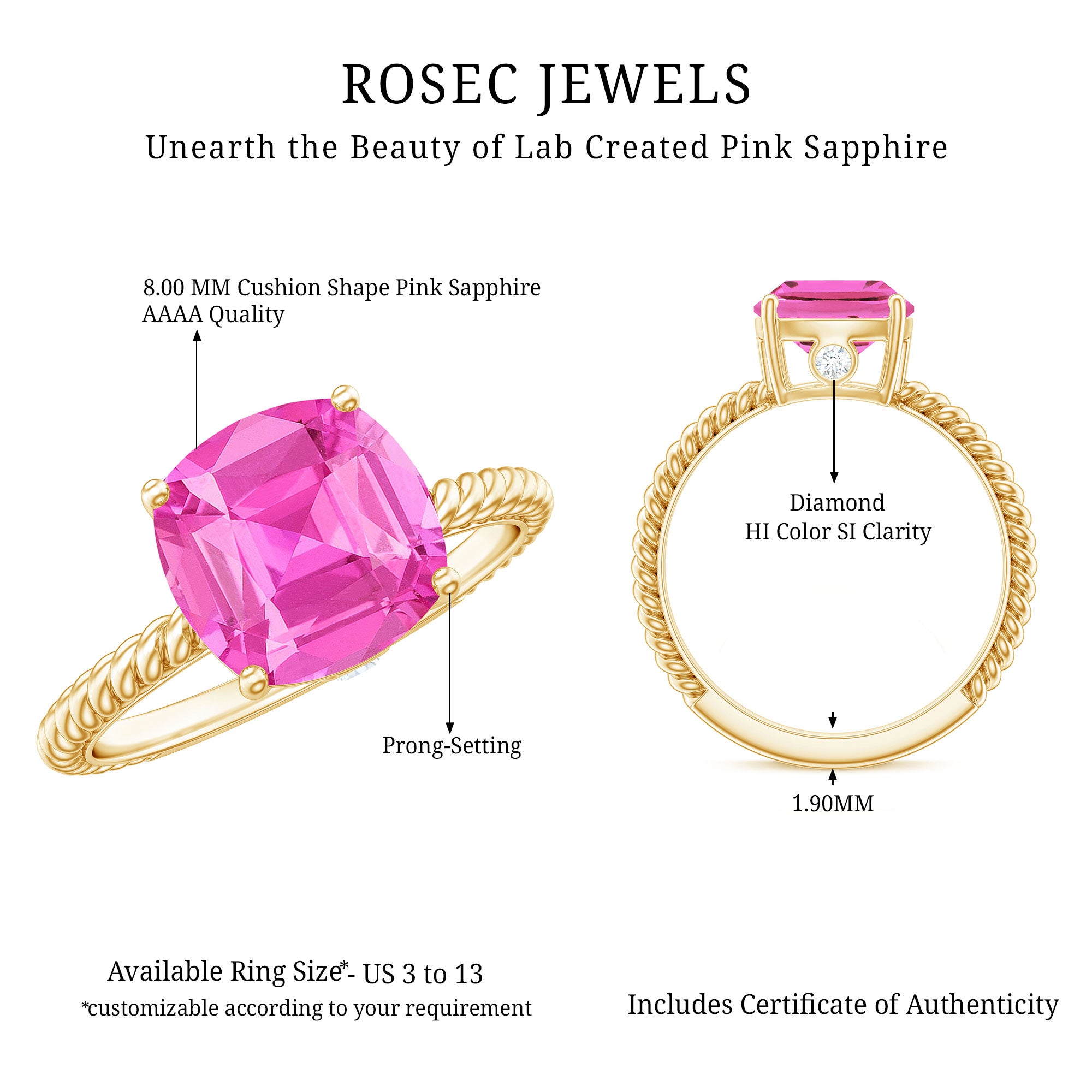 • Impressive rank of lab grown pink sapphires on Moh’s scale of hardness reflects their strong and durable nature. These qualities make lab pink sapphire rings a good choice as an everyday wear accessory.