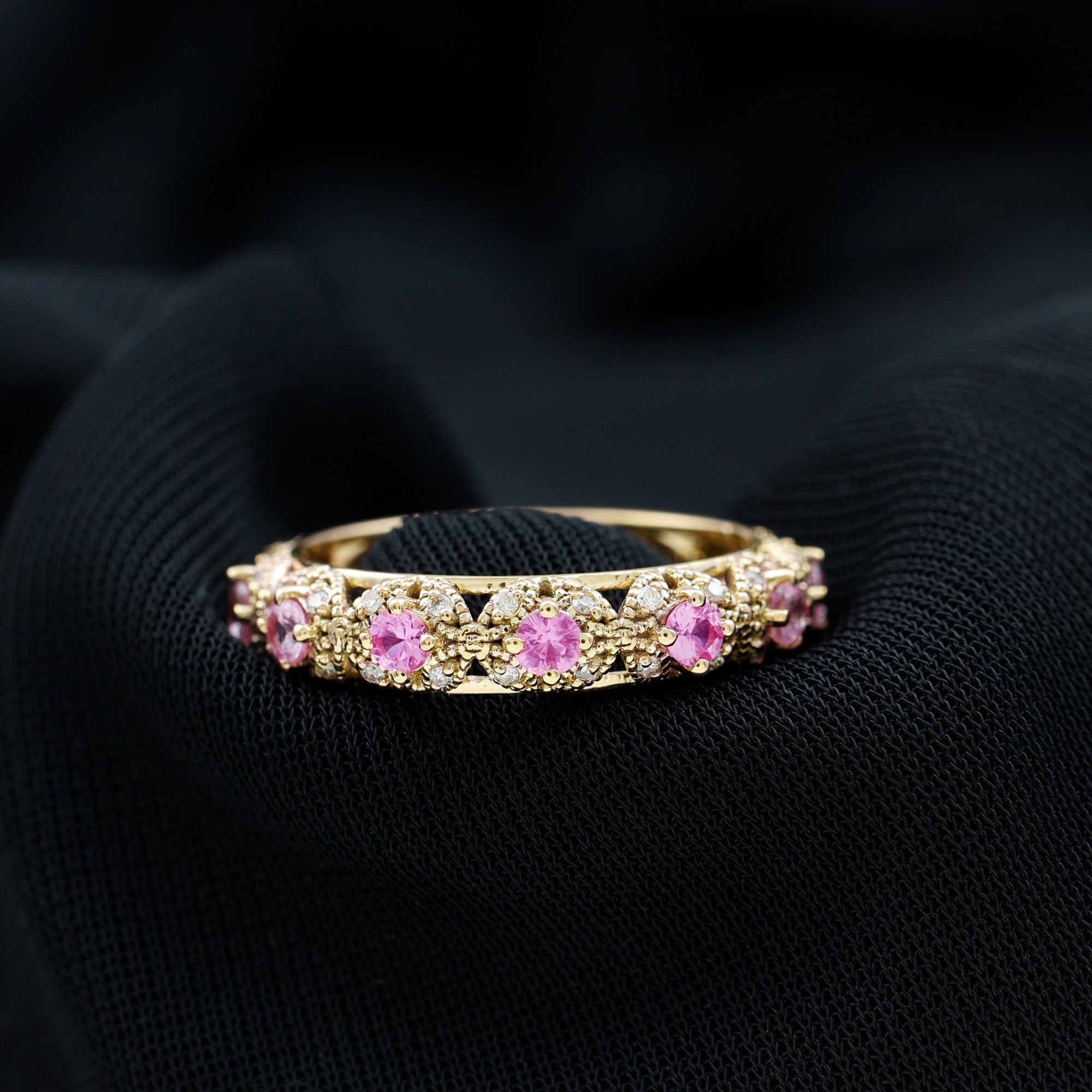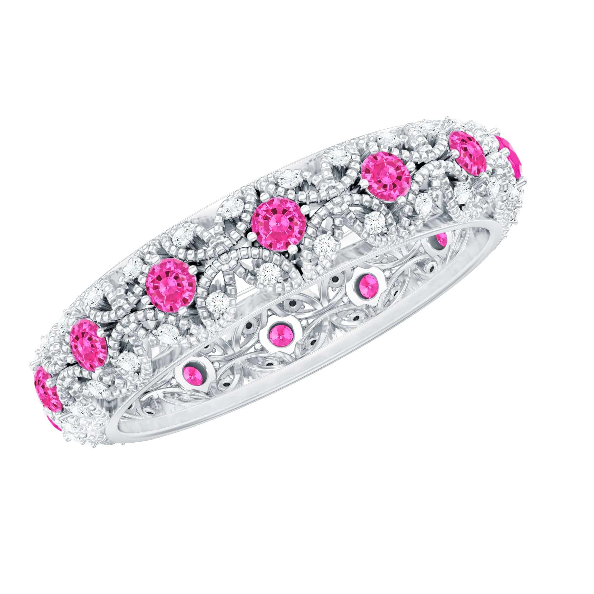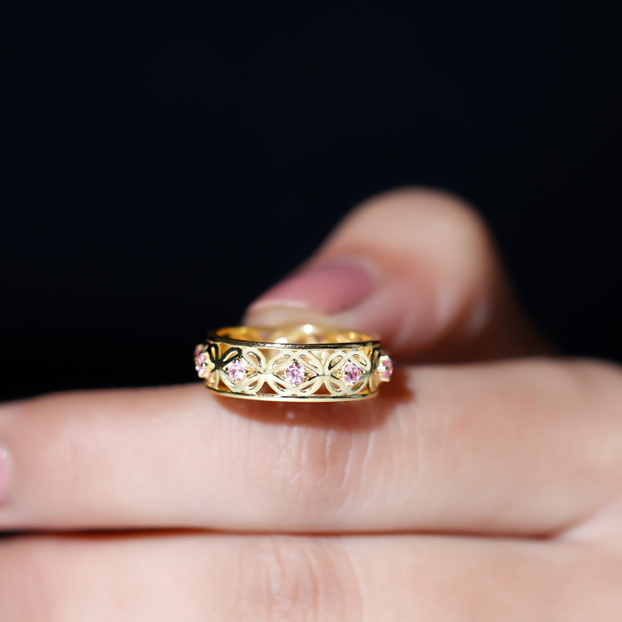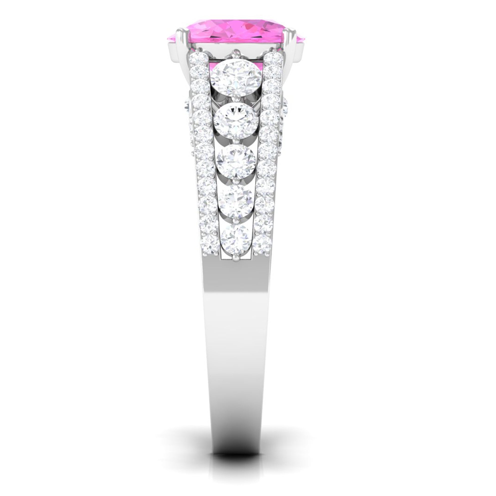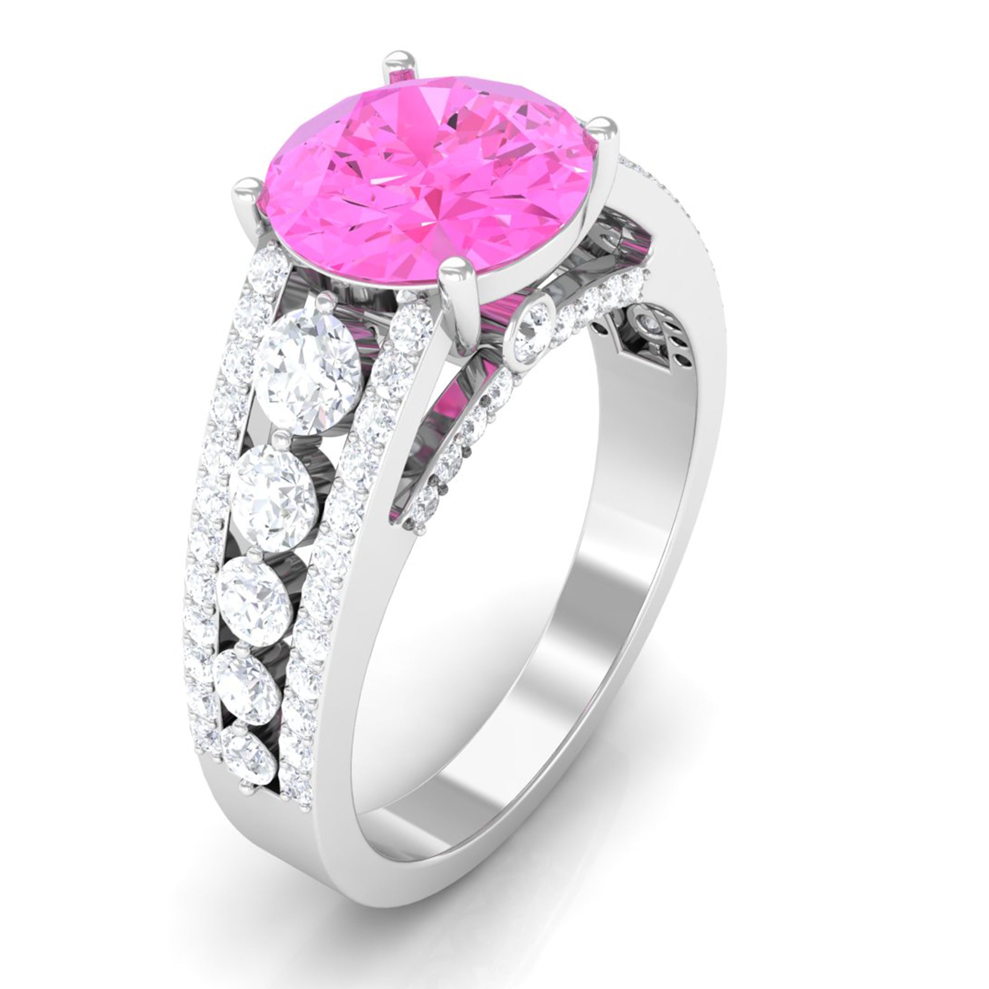 • Beautiful lab pink sapphire gemstone with its soft and romantic color, offers a lovely touch to the ring. The delicate pink hue of these gems in various settings makes them a perfect gift for someone special.