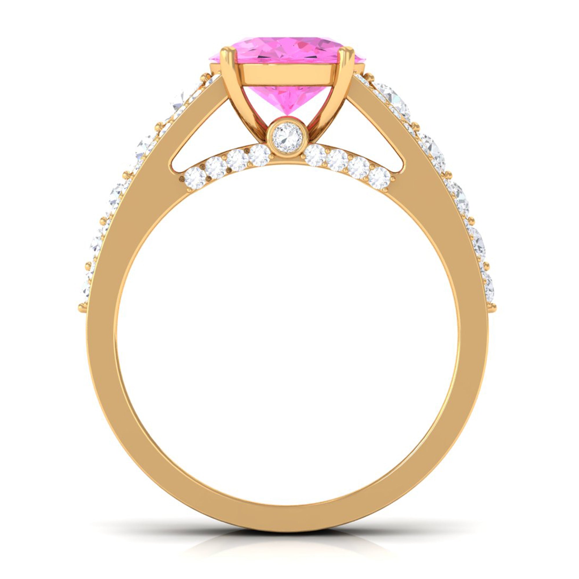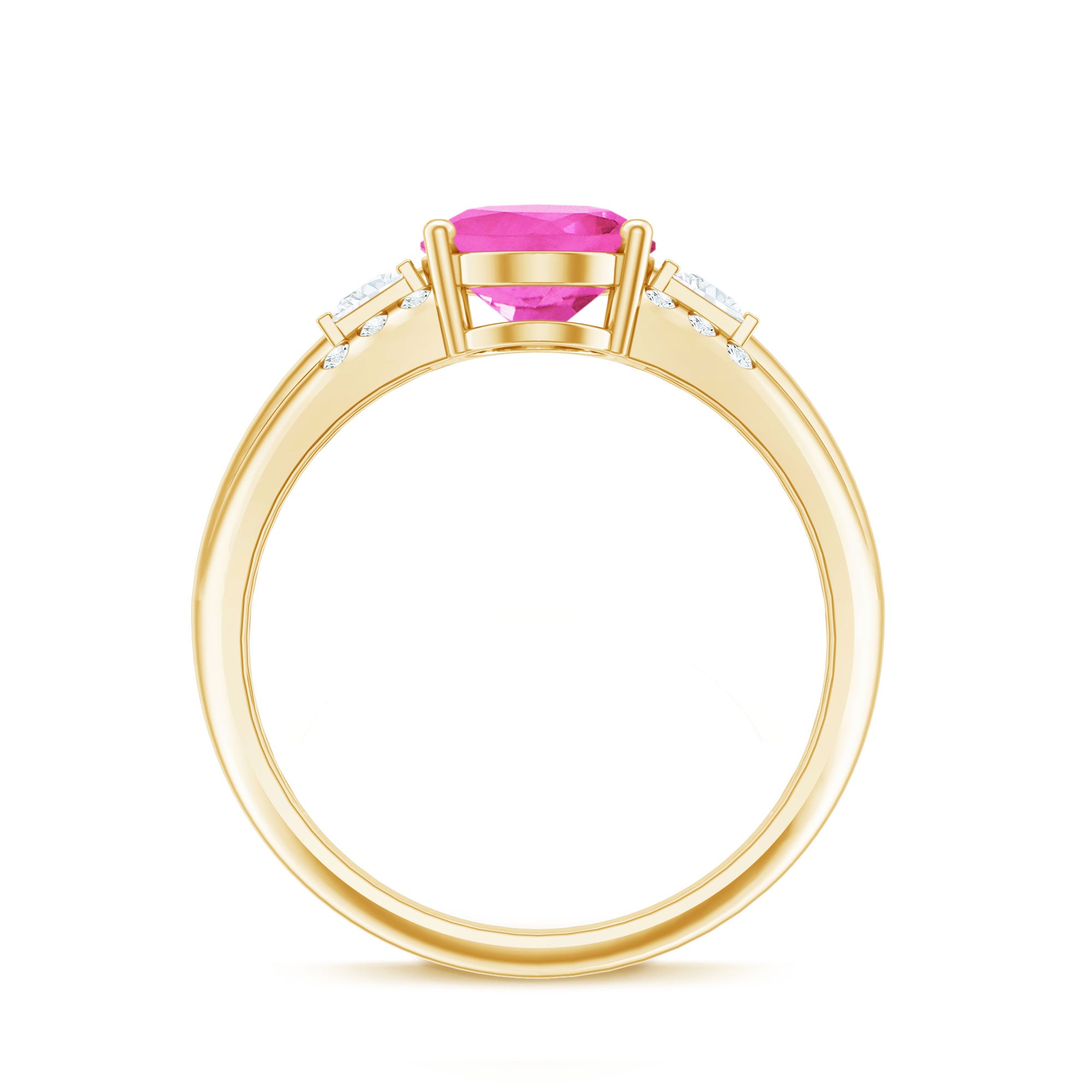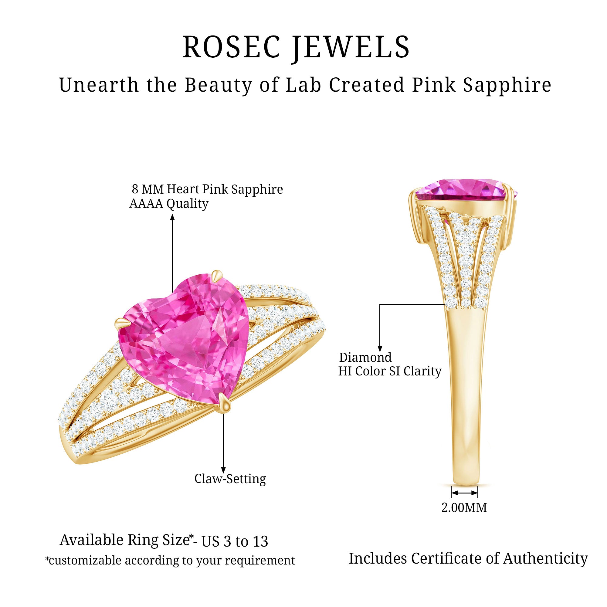Lab created pink sapphire rings feature eco-friendly pink sapphire gems in different shapes and styles, making the heart of the design. These man made gemstones in the ring’s center are ethically sourced and identical to natural pink sapphire gemstones in every aspect, be it chemical, physical, or optical.