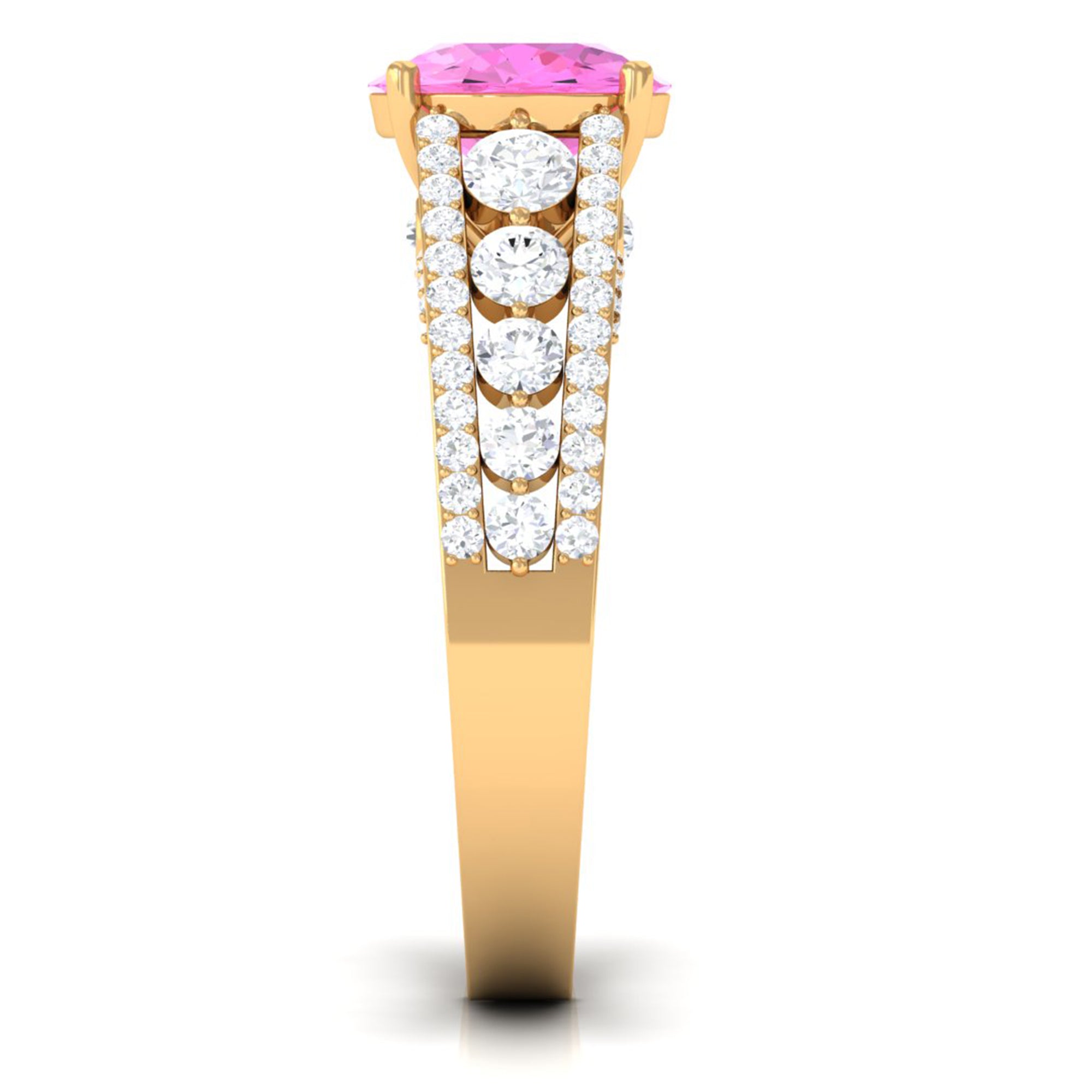 Lab created pink sapphire engagement rings and wedding rings are special jewel pieces that allow you to embrace luxury without compromising. Trending gemstone shapes are accentuated with other precious or semi-precious stones, transforming these designs into future heirloom jewels.