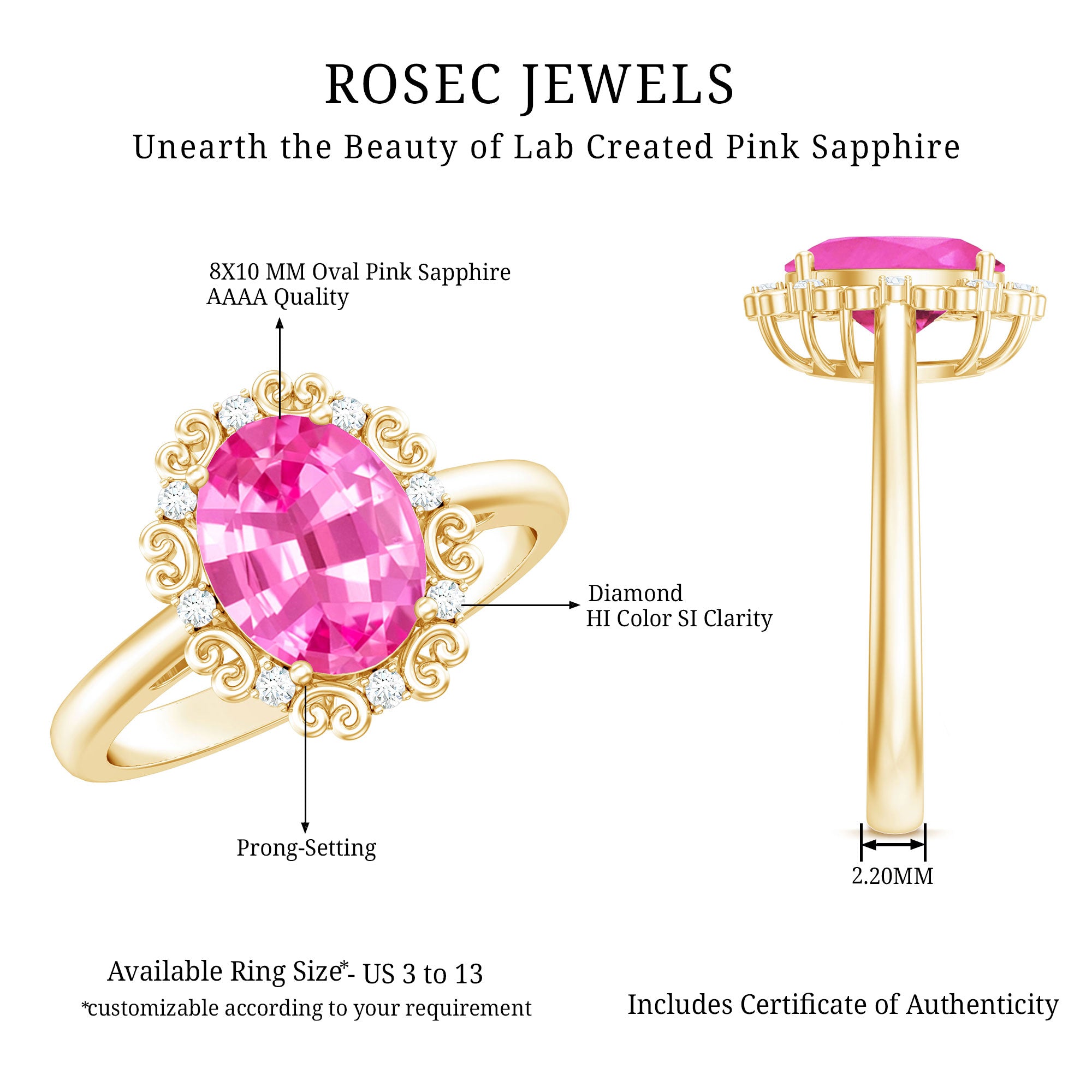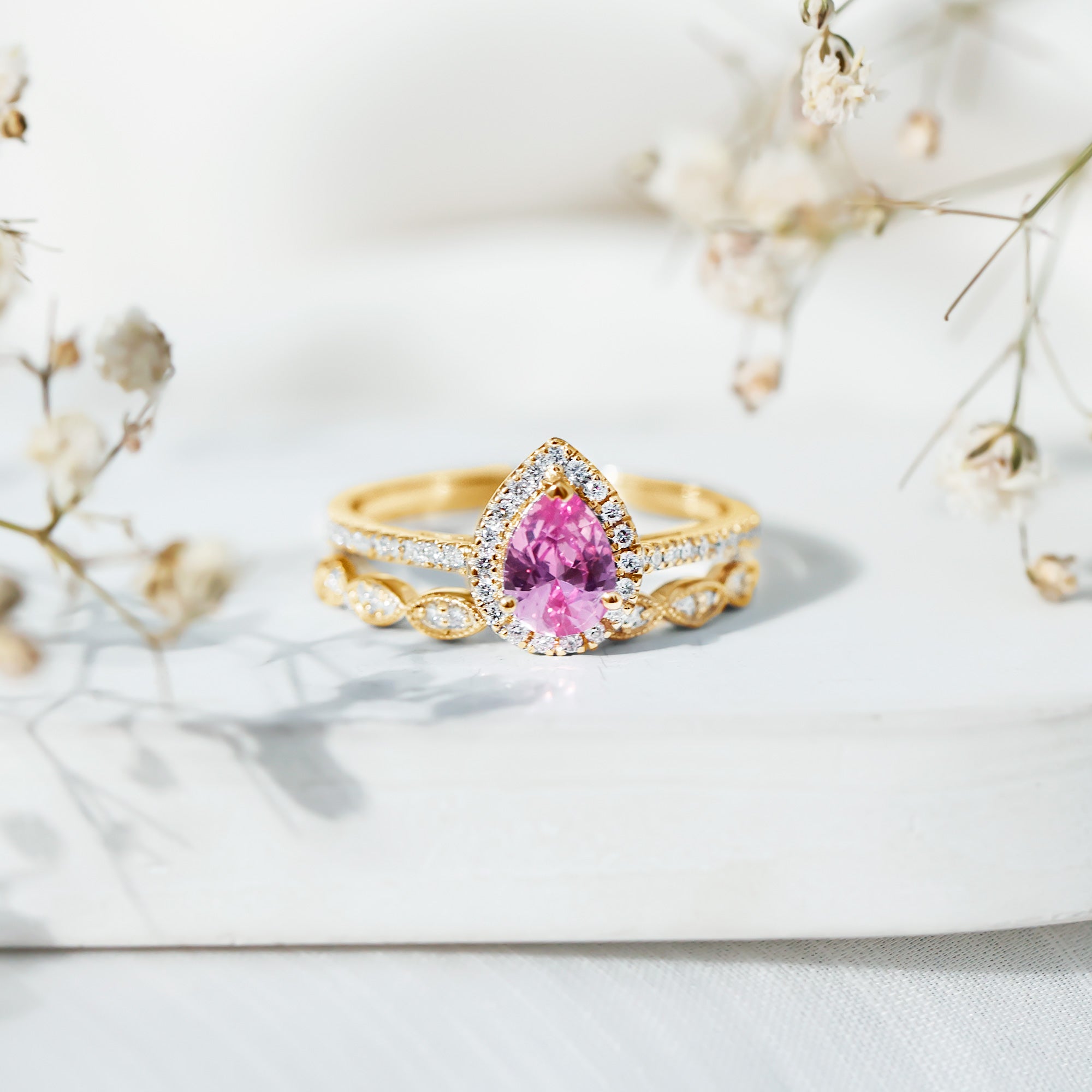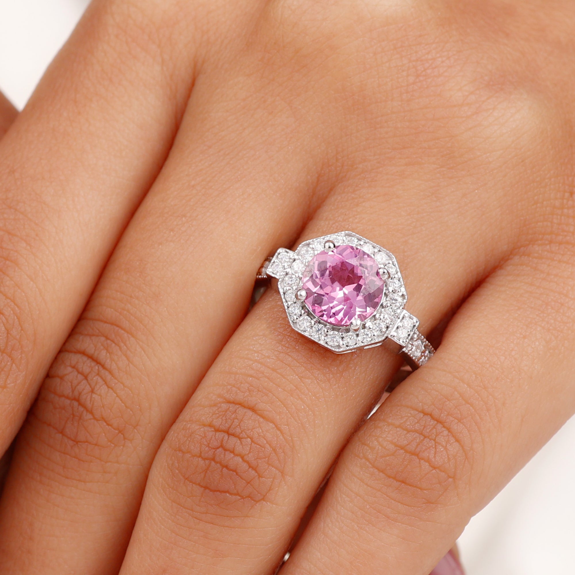 If you love classic ring pieces with a stylish touch then you must check our vintage inspired lab created pink sapphire rings in solitaire and halo styles. Different gemstone shapes and metal settings give each piece a unique story to tell.