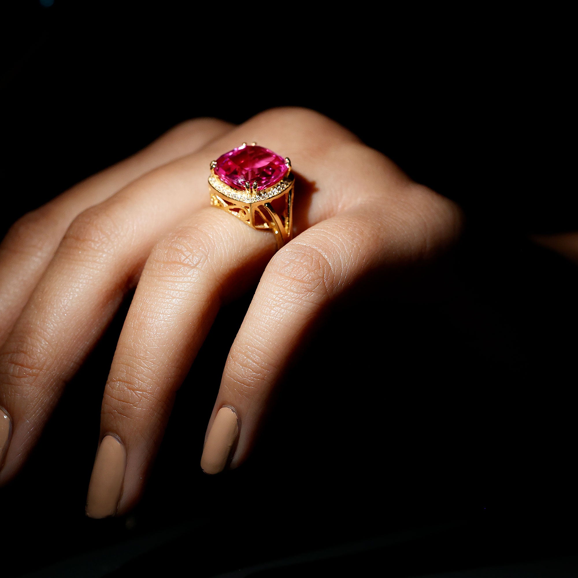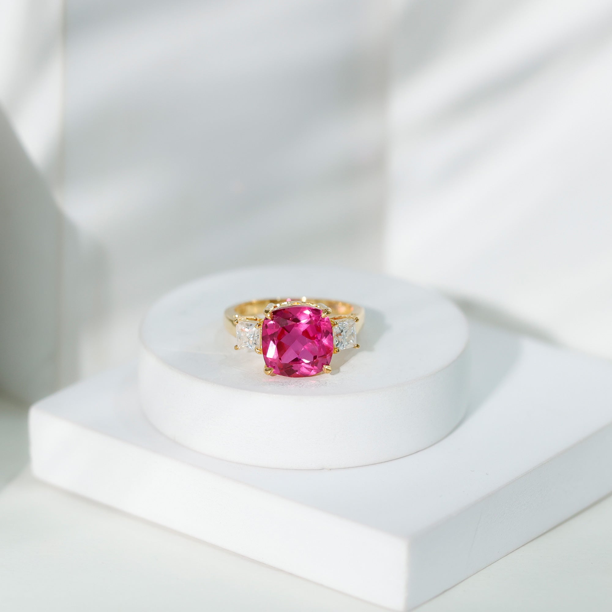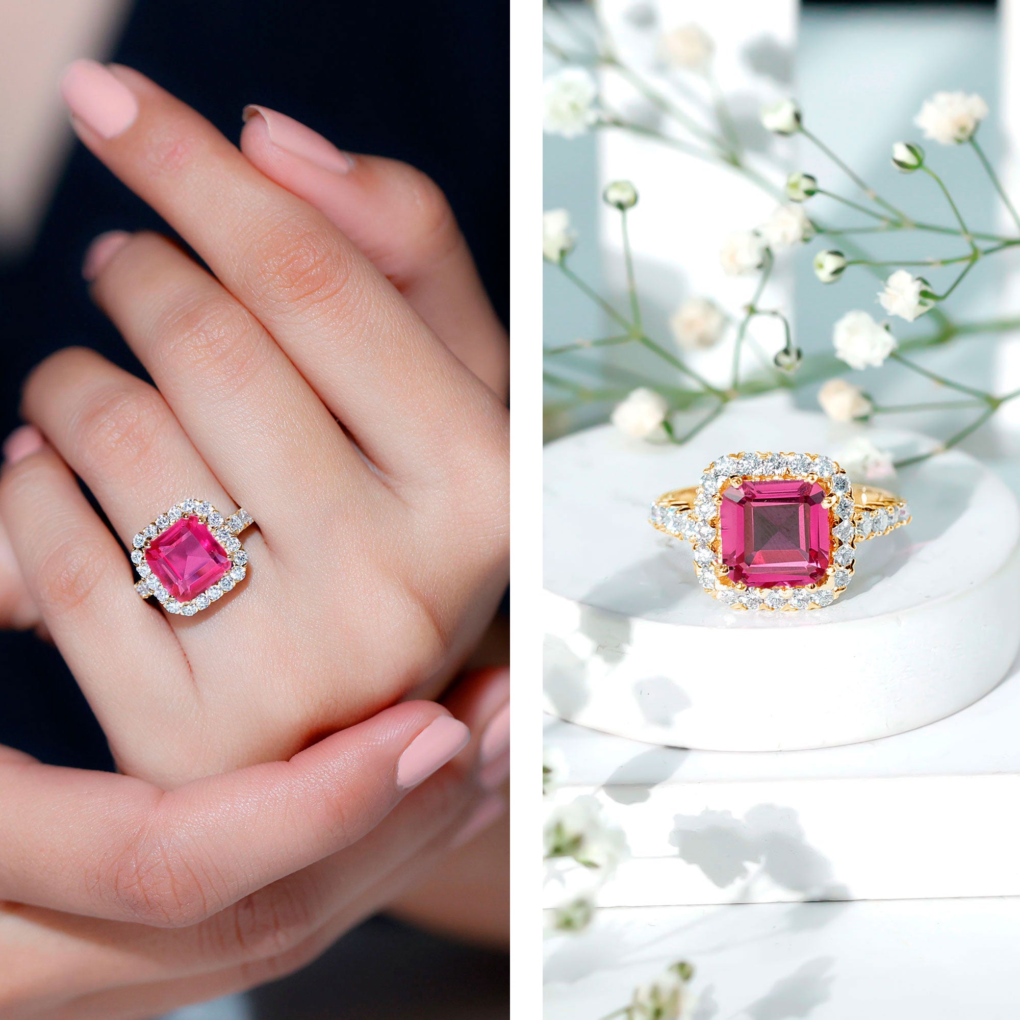 Loved created sapphires, but looking for an alternative with some soft and romantic pink hue? Then, lab pink tourmaline rings can be your choice. Pink tourmaline gems fascinate viewers with their gentle and feminine energy. These rings, symbolizing emotional healing and self-love, are the first choice of delicate and whimsical charm lovers. Lab cultured pink tourmaline rings are available in all styles and are perfect for all occasions, too.