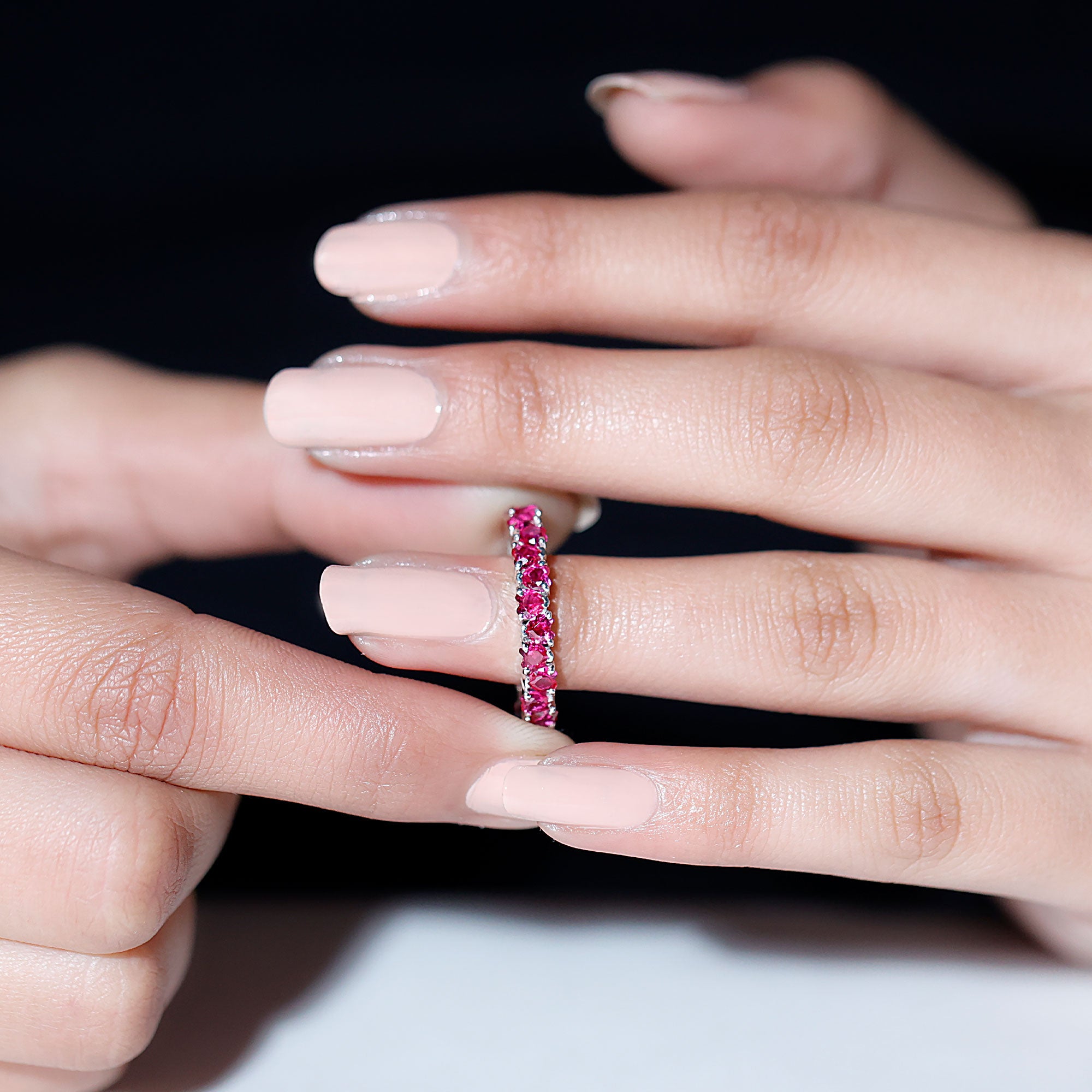 A two-stone lab-grown pink sapphire ring or a dainty design can be a great option as a promise ring. Another trending and meaningful way to express love and commitment is with minimal lab-created pink sapphire rings.