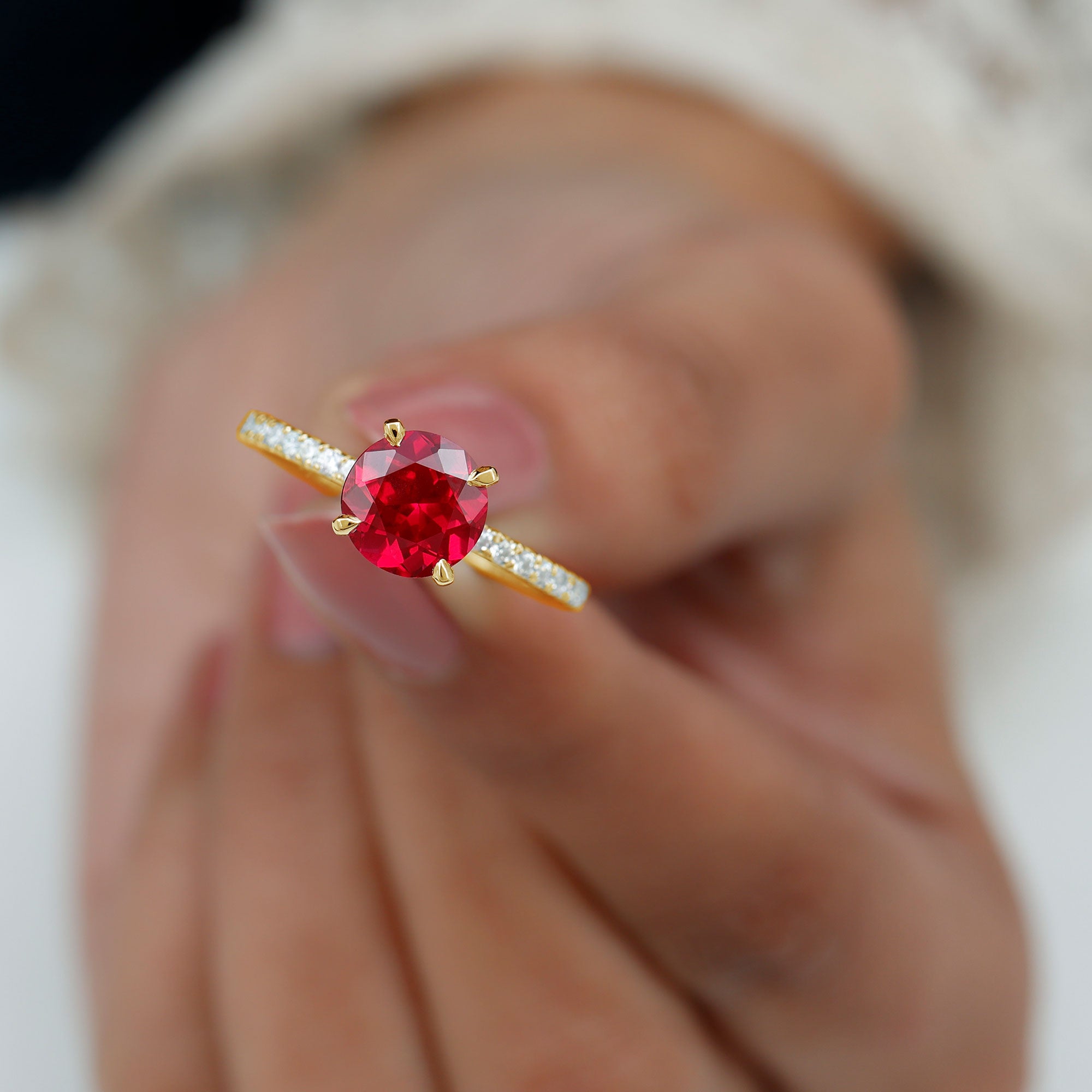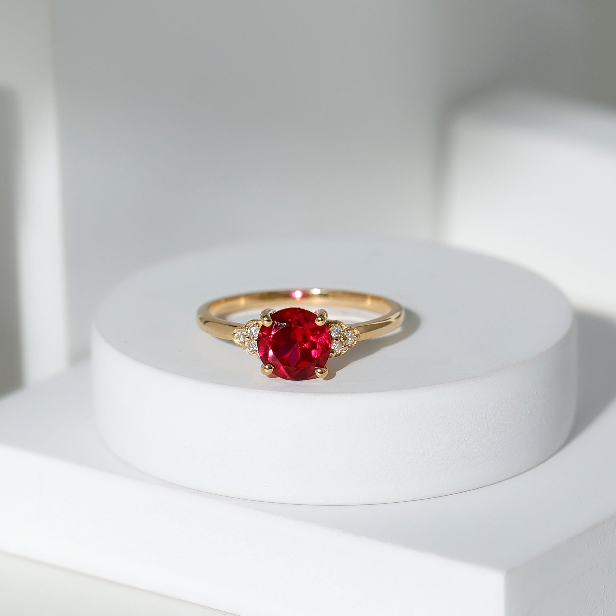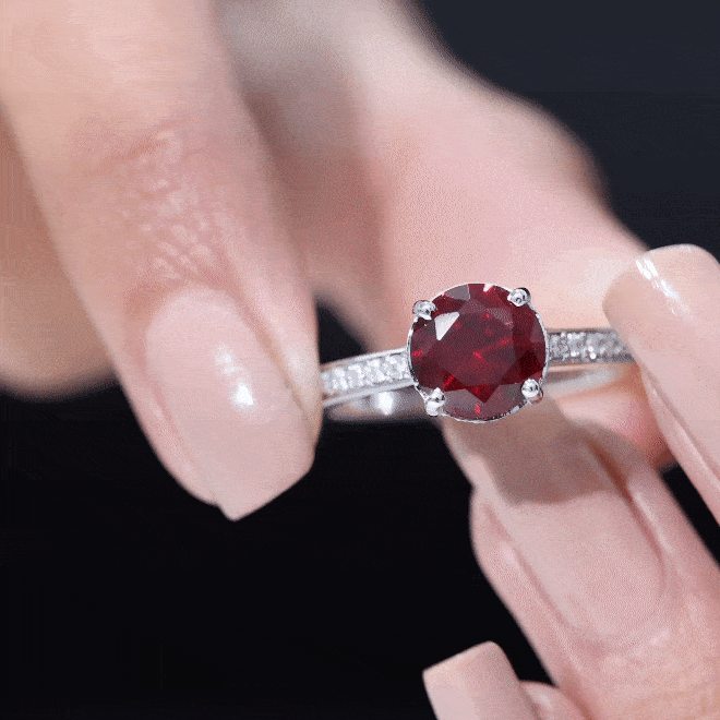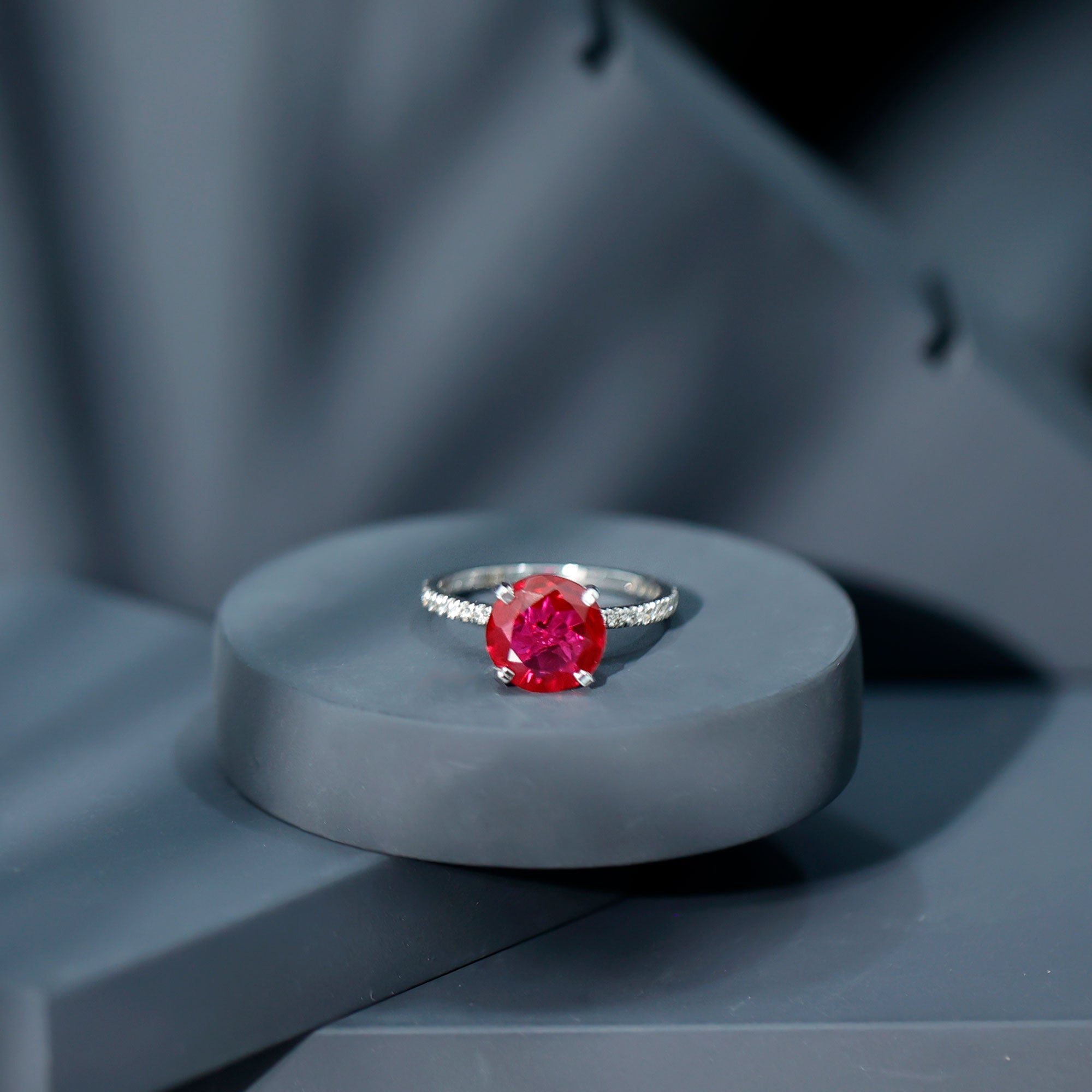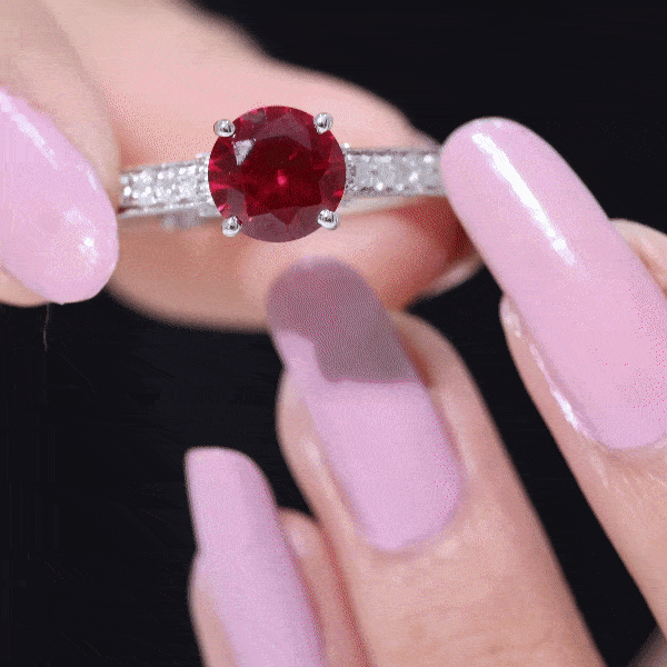 The vivid, deep red color is very popular for its rich, intense hue and clarity in lab ruby engagement rings.