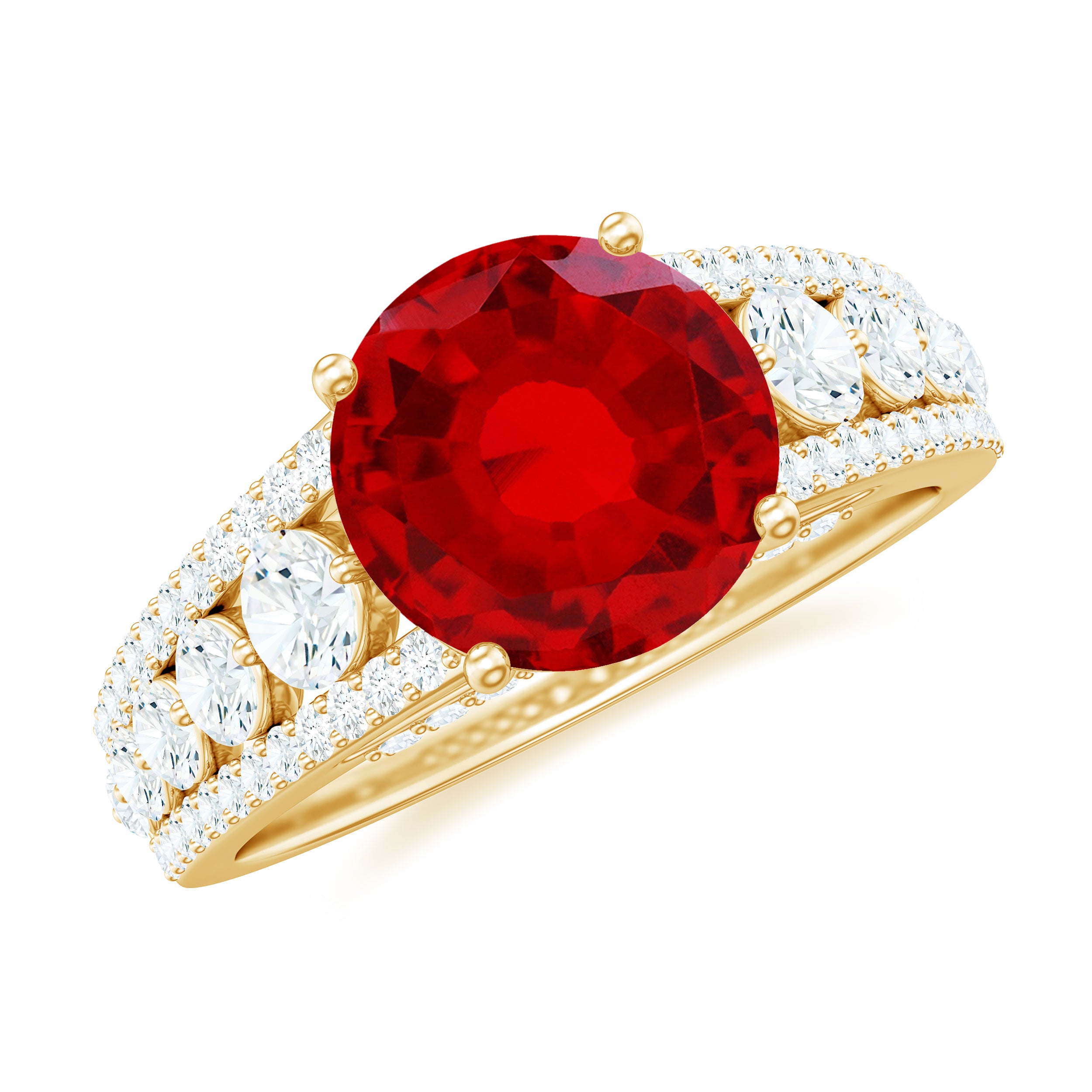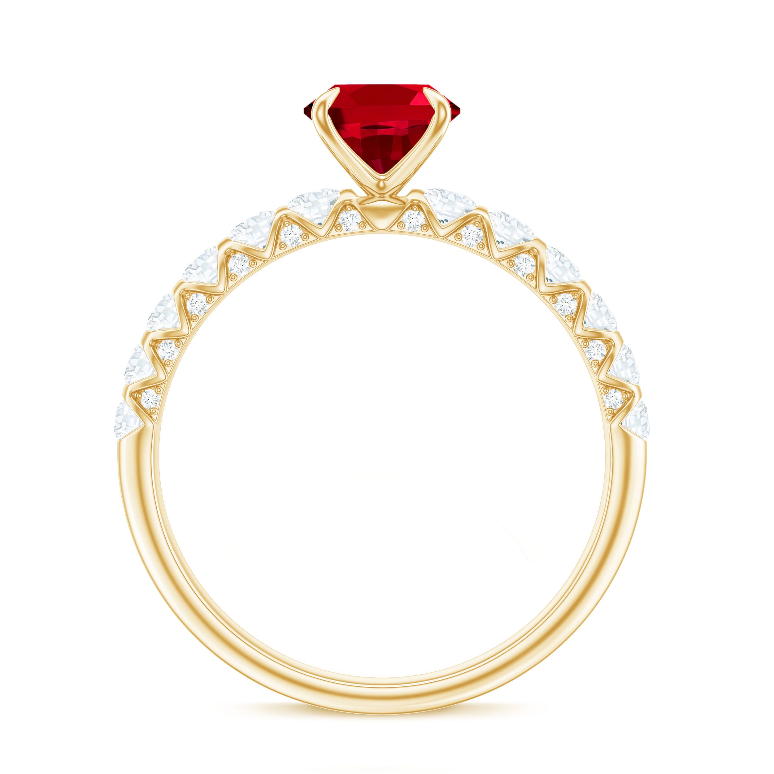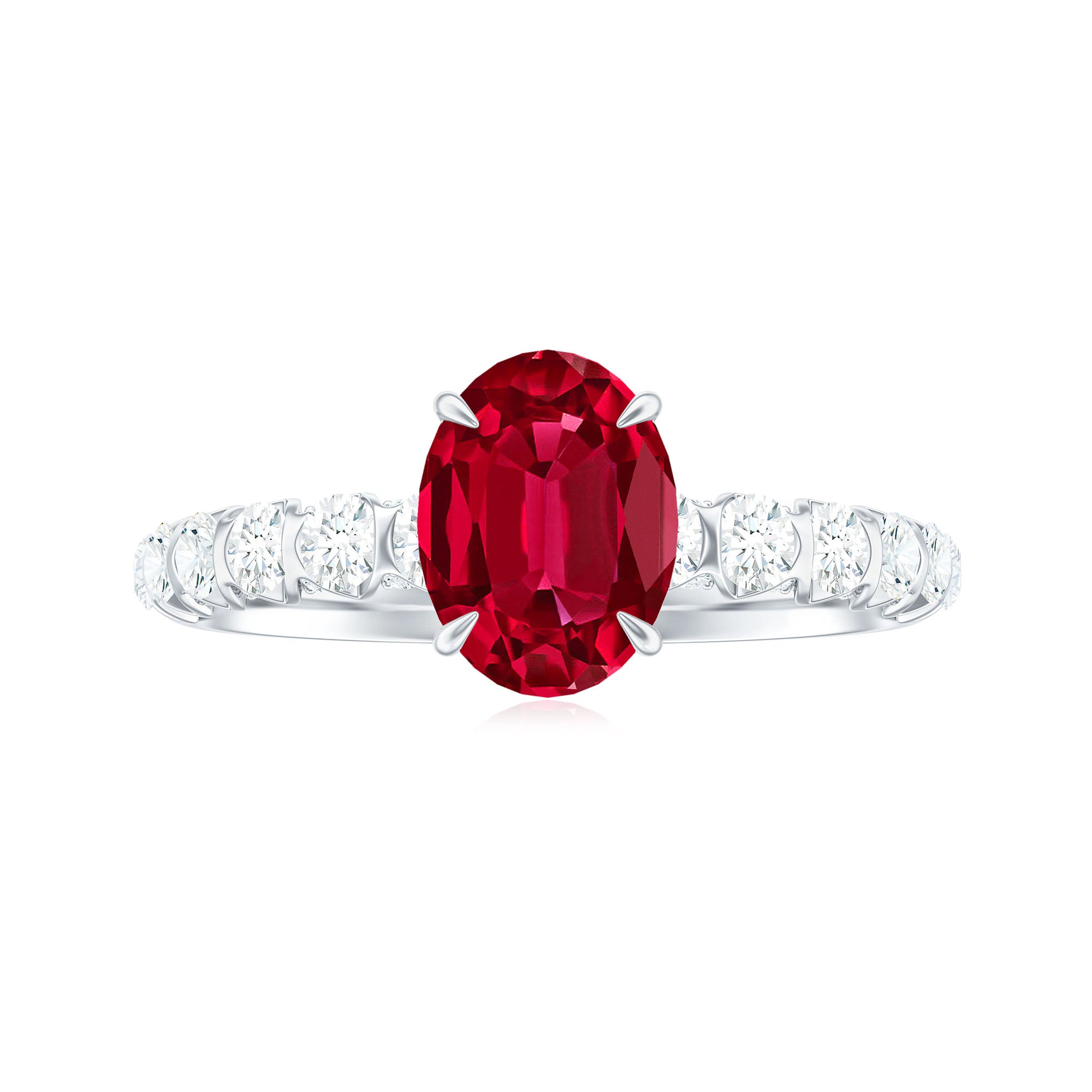The vivid, deep red color is very popular for its rich, intense hue and clarity in lab ruby engagement rings.