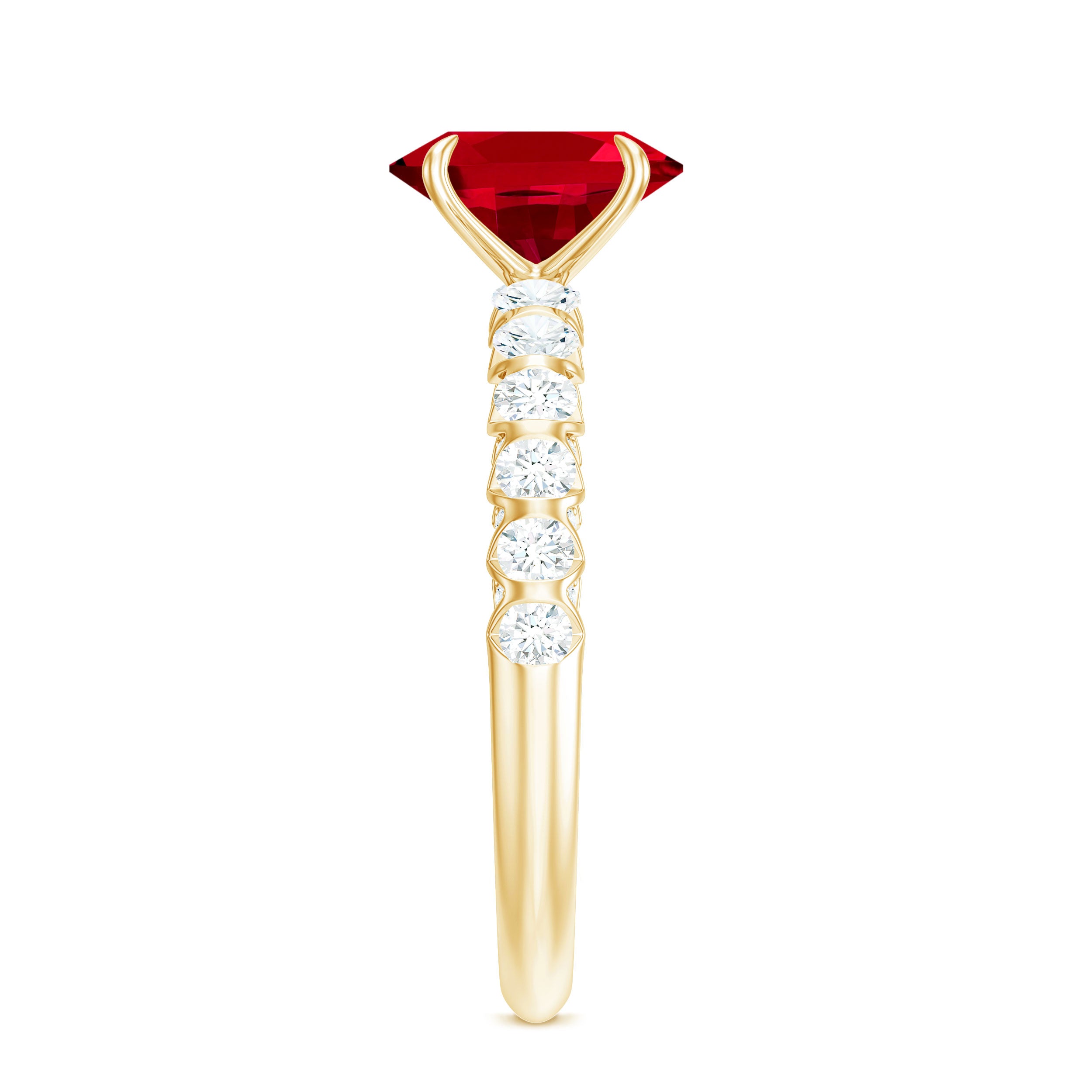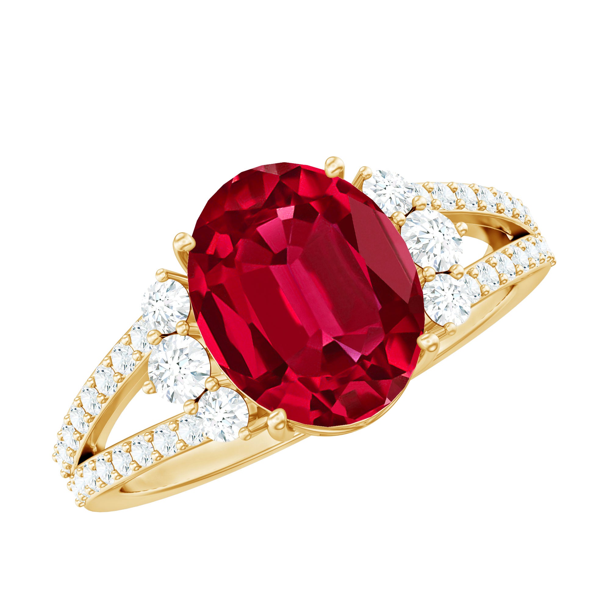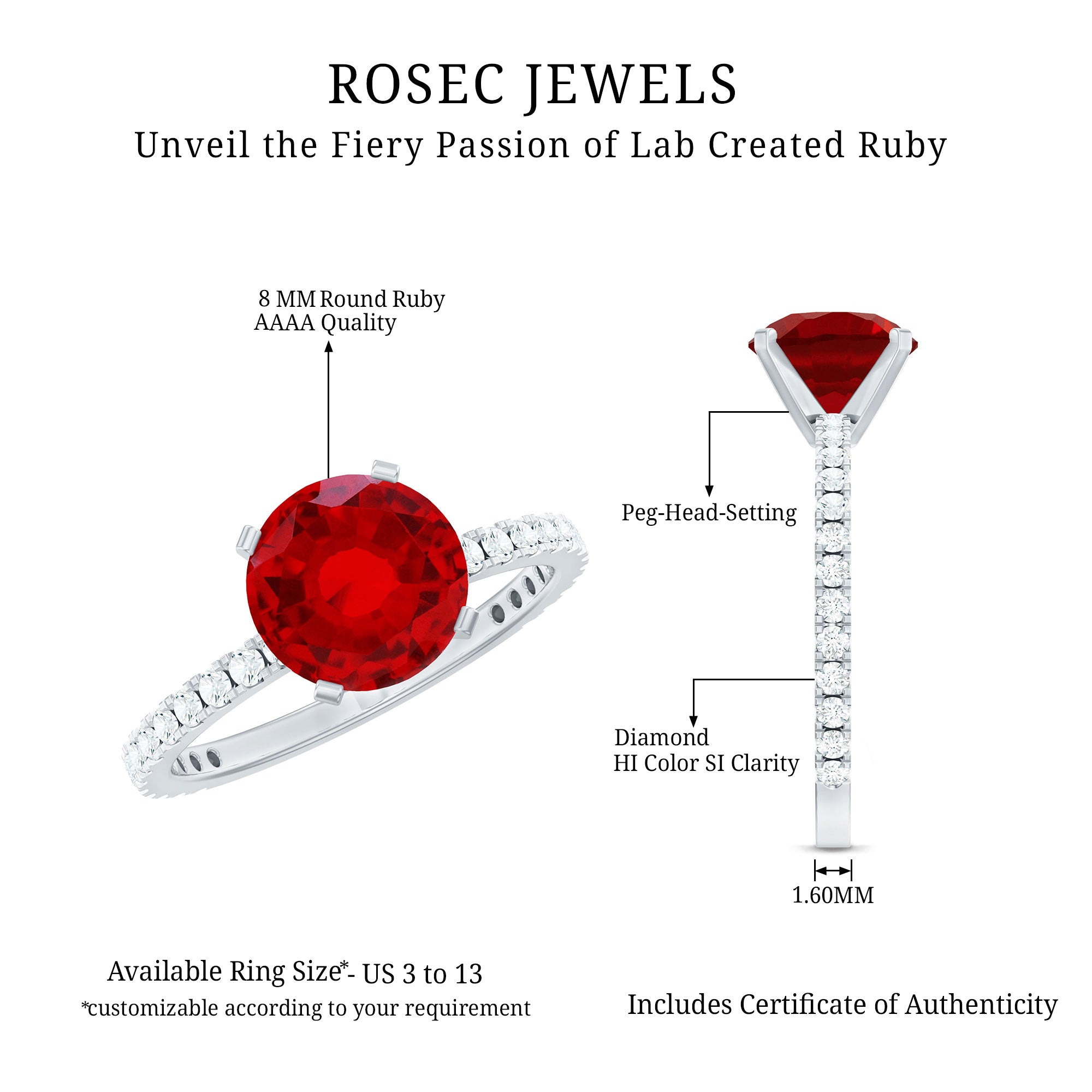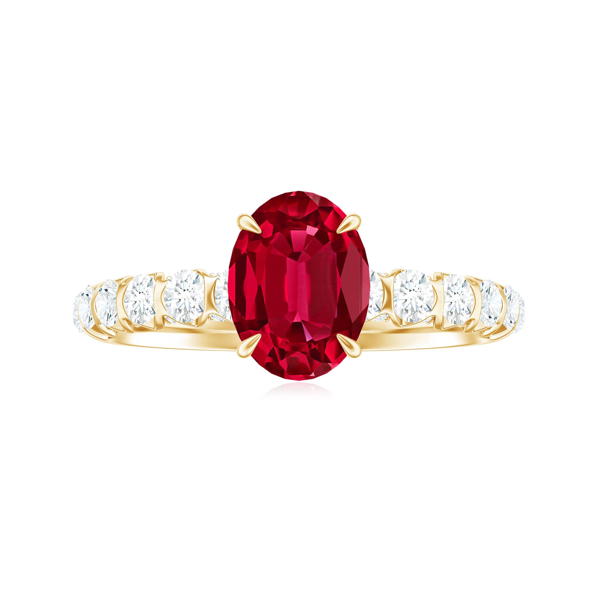 The vivid, deep red color is very popular for its rich, intense hue and clarity in lab ruby engagement rings.