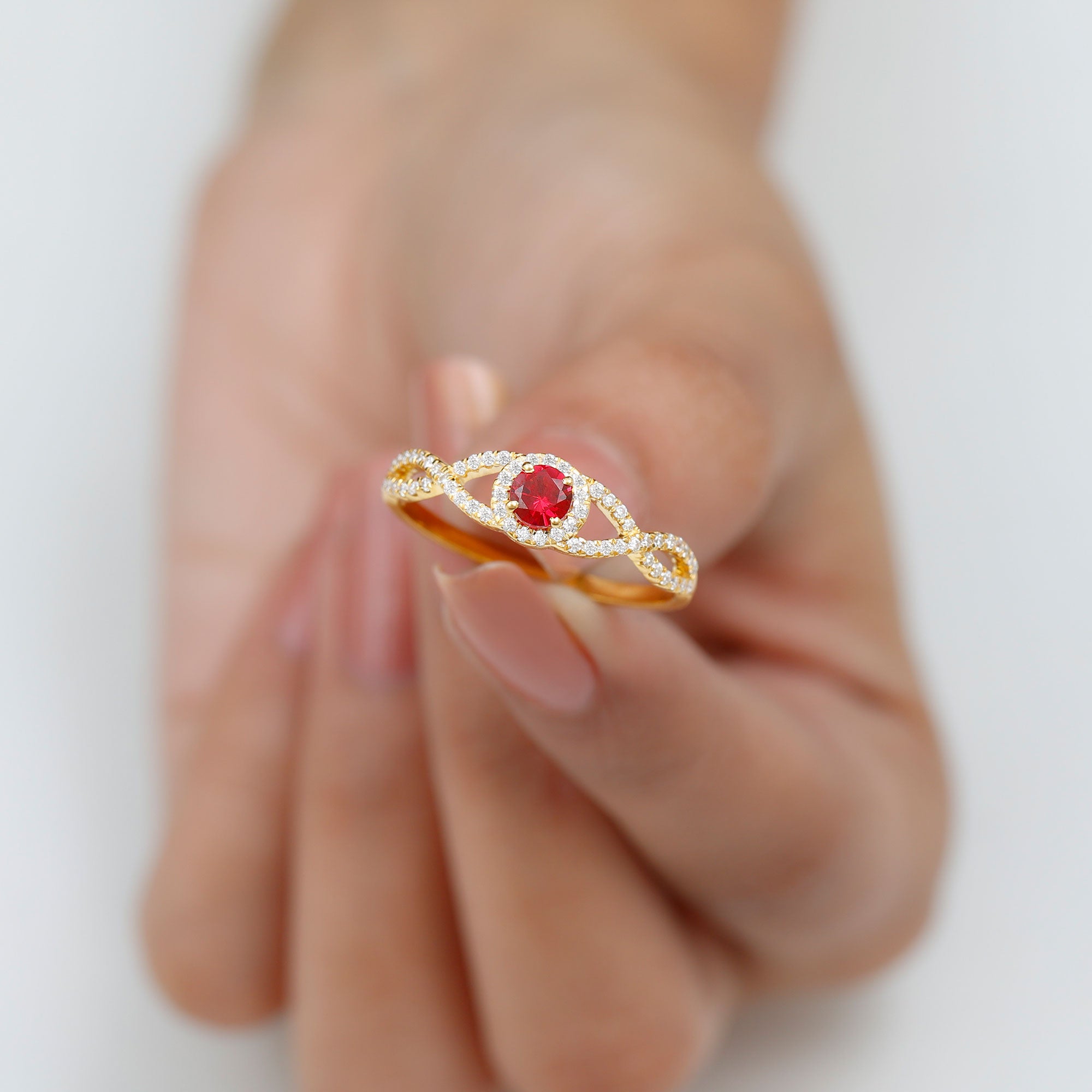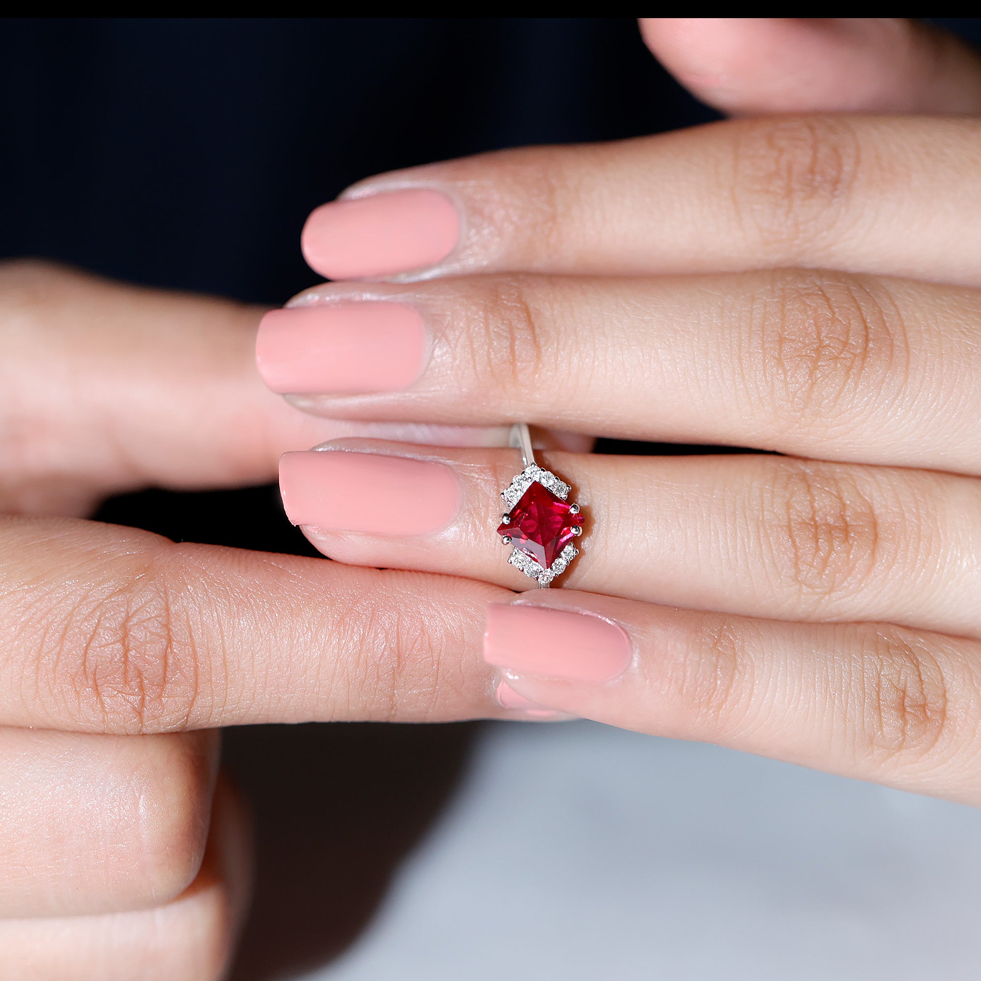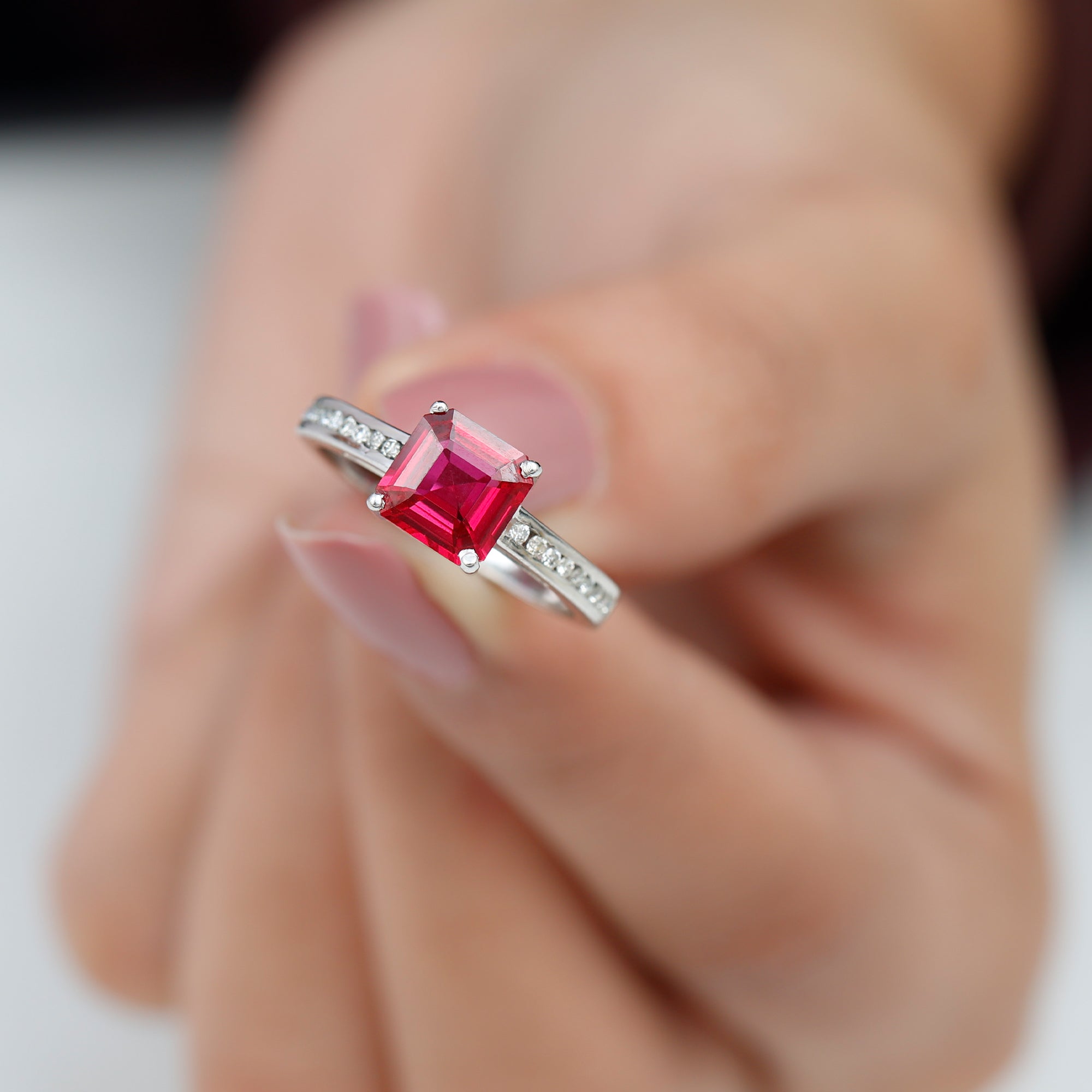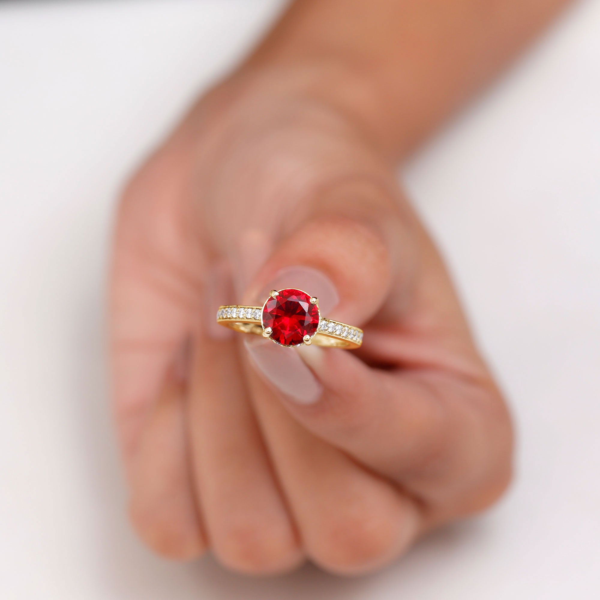 Minimal Ruby Engagement Rings: These lab created ruby rings featuring clean lines, thin bands, dainty stones are for elegance and style lovers. Vibrant ruby with understated charm in this ring becomes an ideal choice as everyday wear piece.