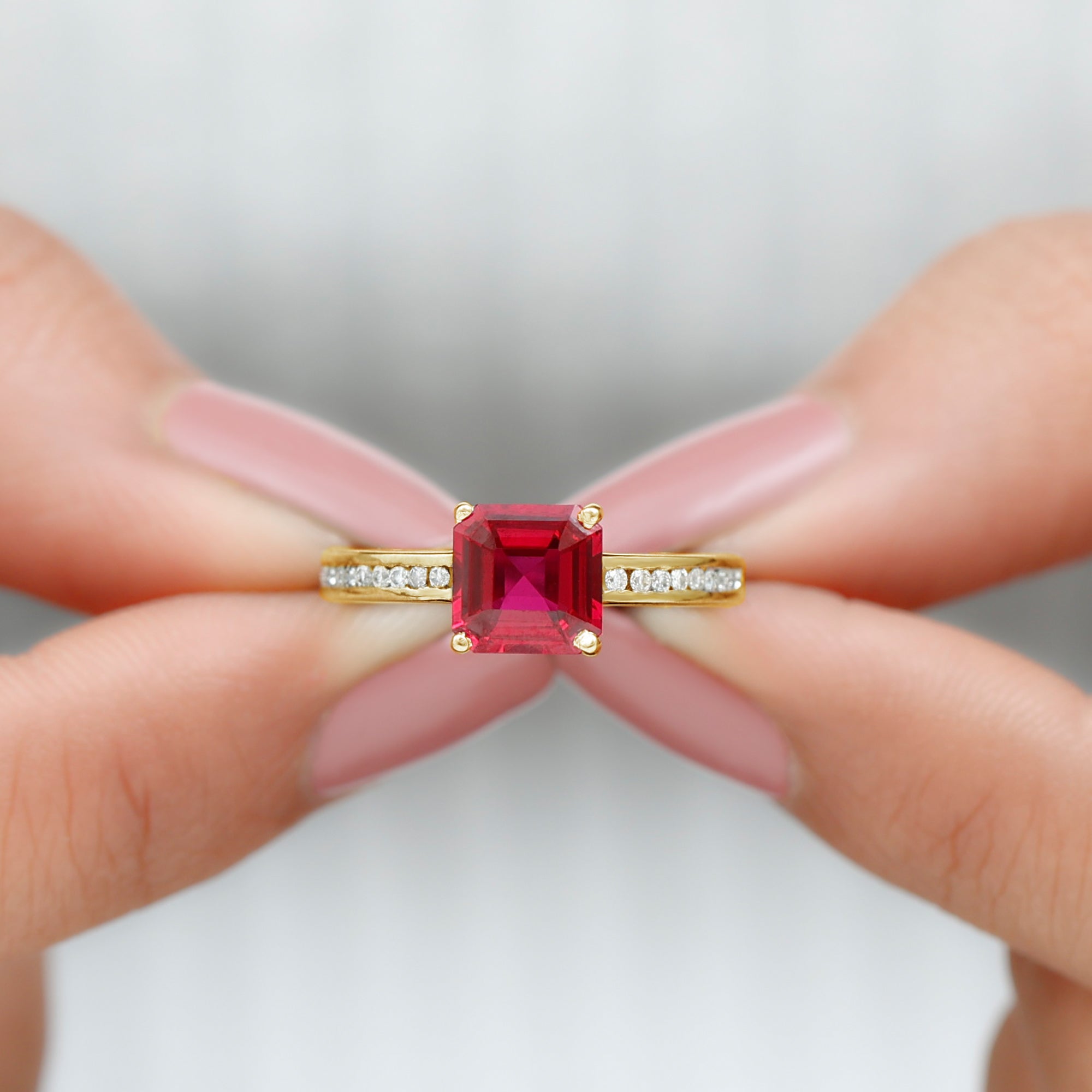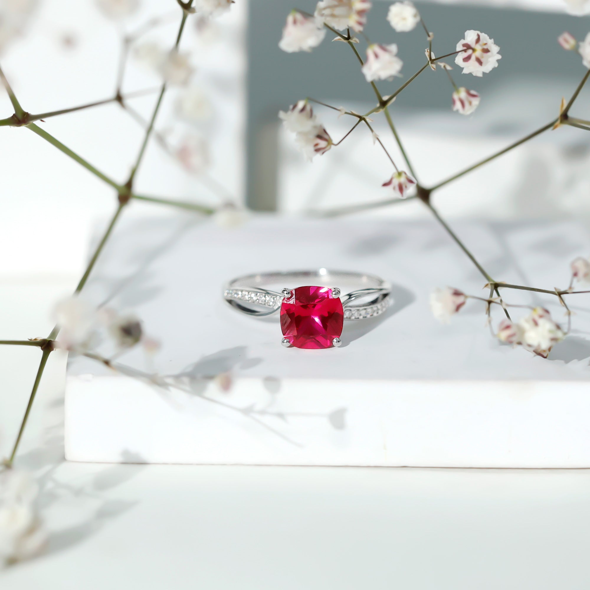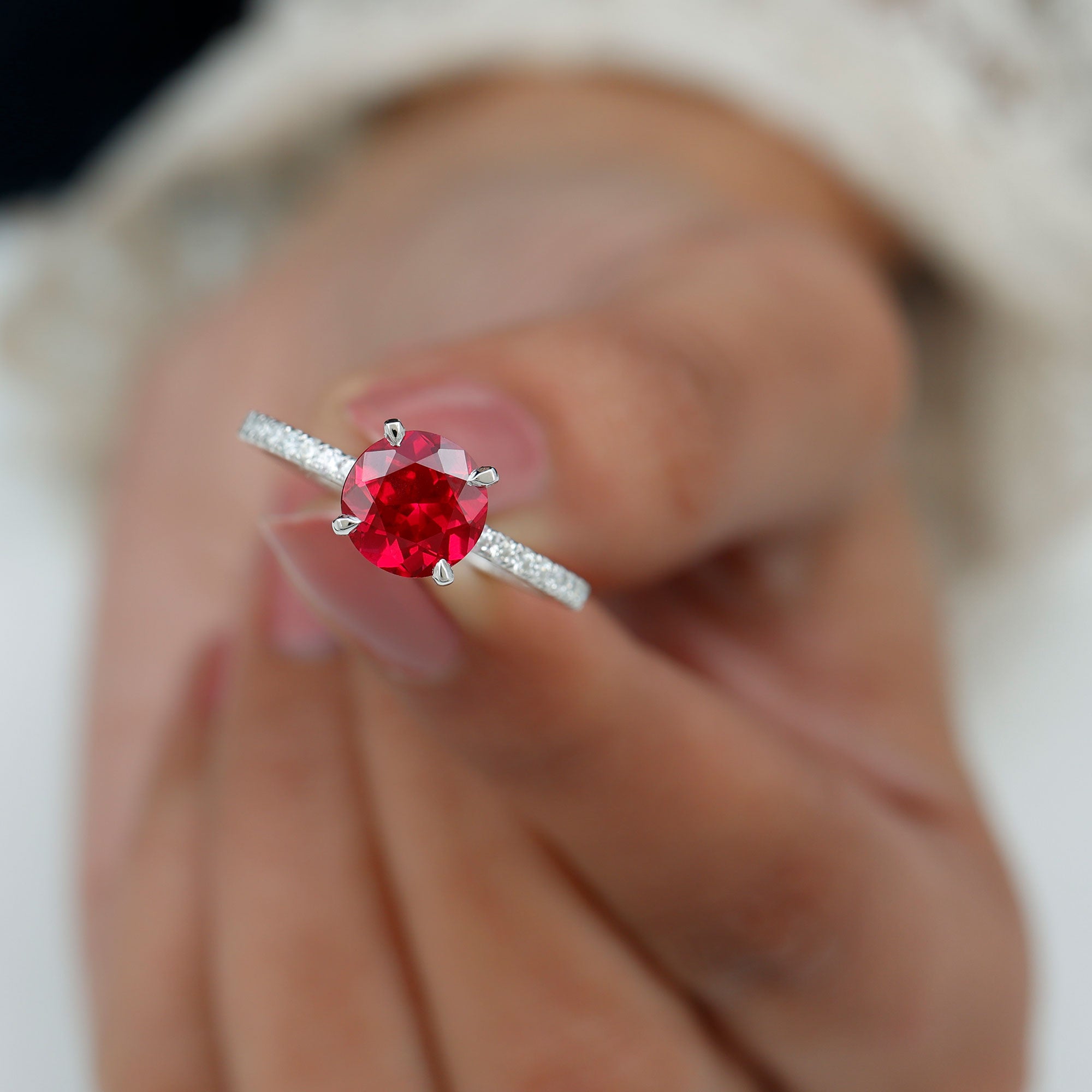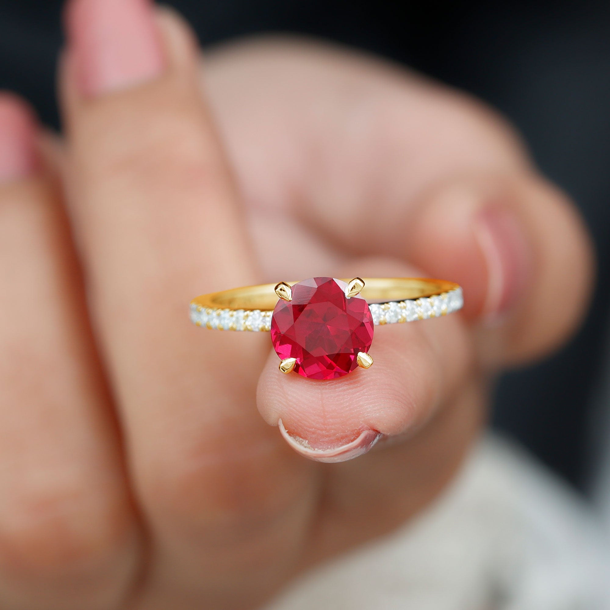 Minimal Ruby Engagement Rings: These lab created ruby rings featuring clean lines, thin bands, dainty stones are for elegance and style lovers. Vibrant ruby with understated charm in this ring becomes an ideal choice as everyday wear piece.