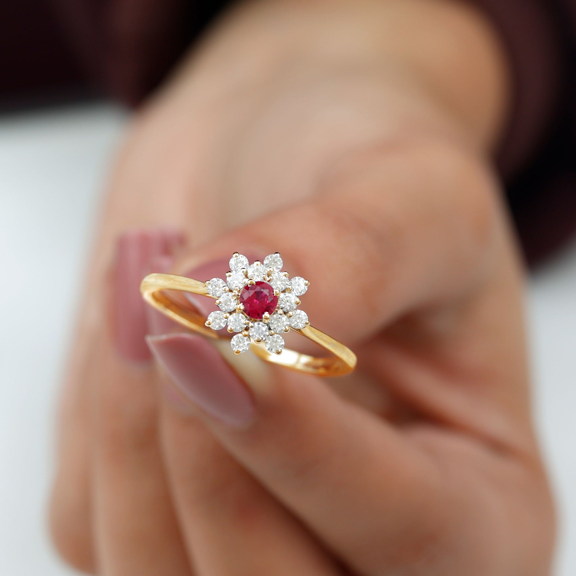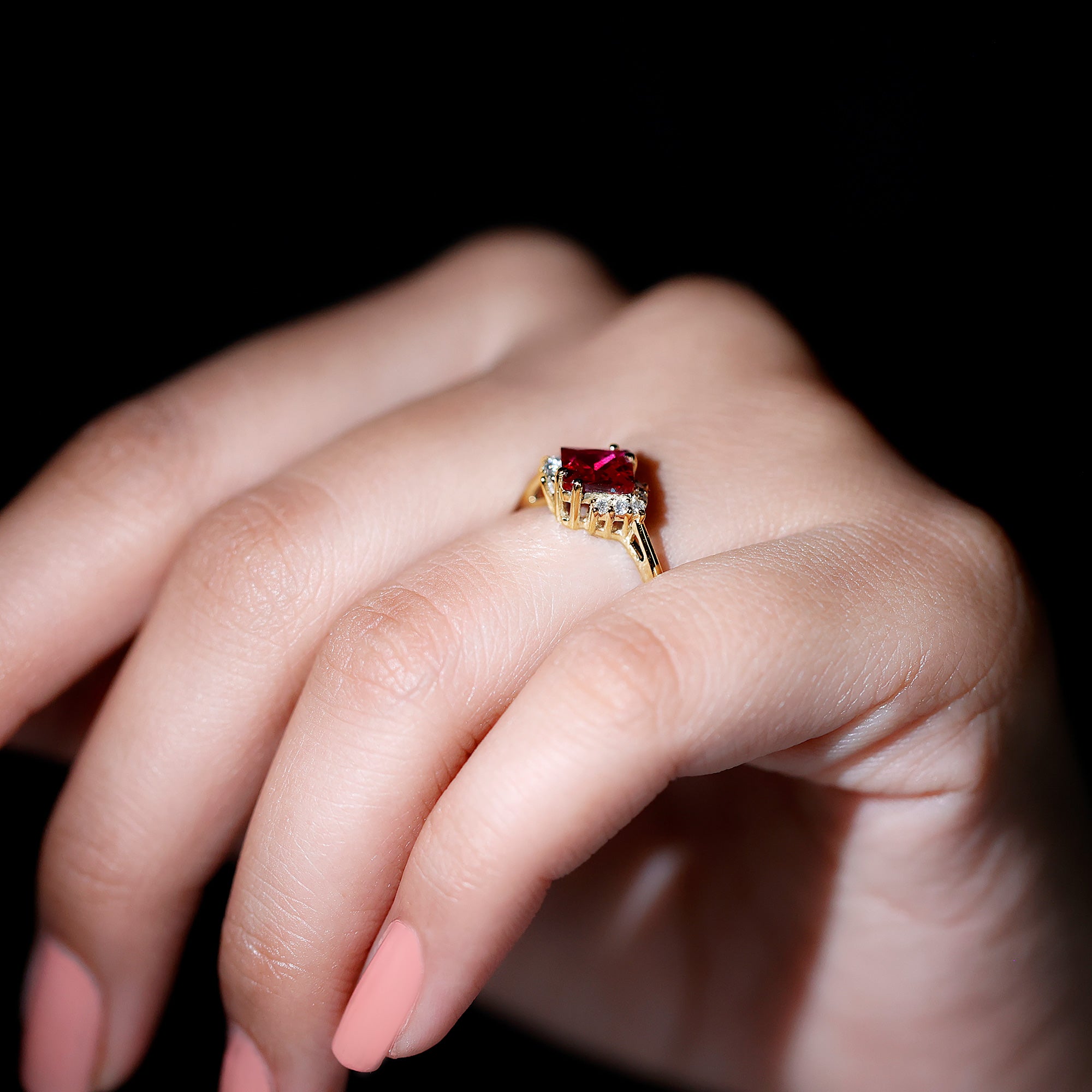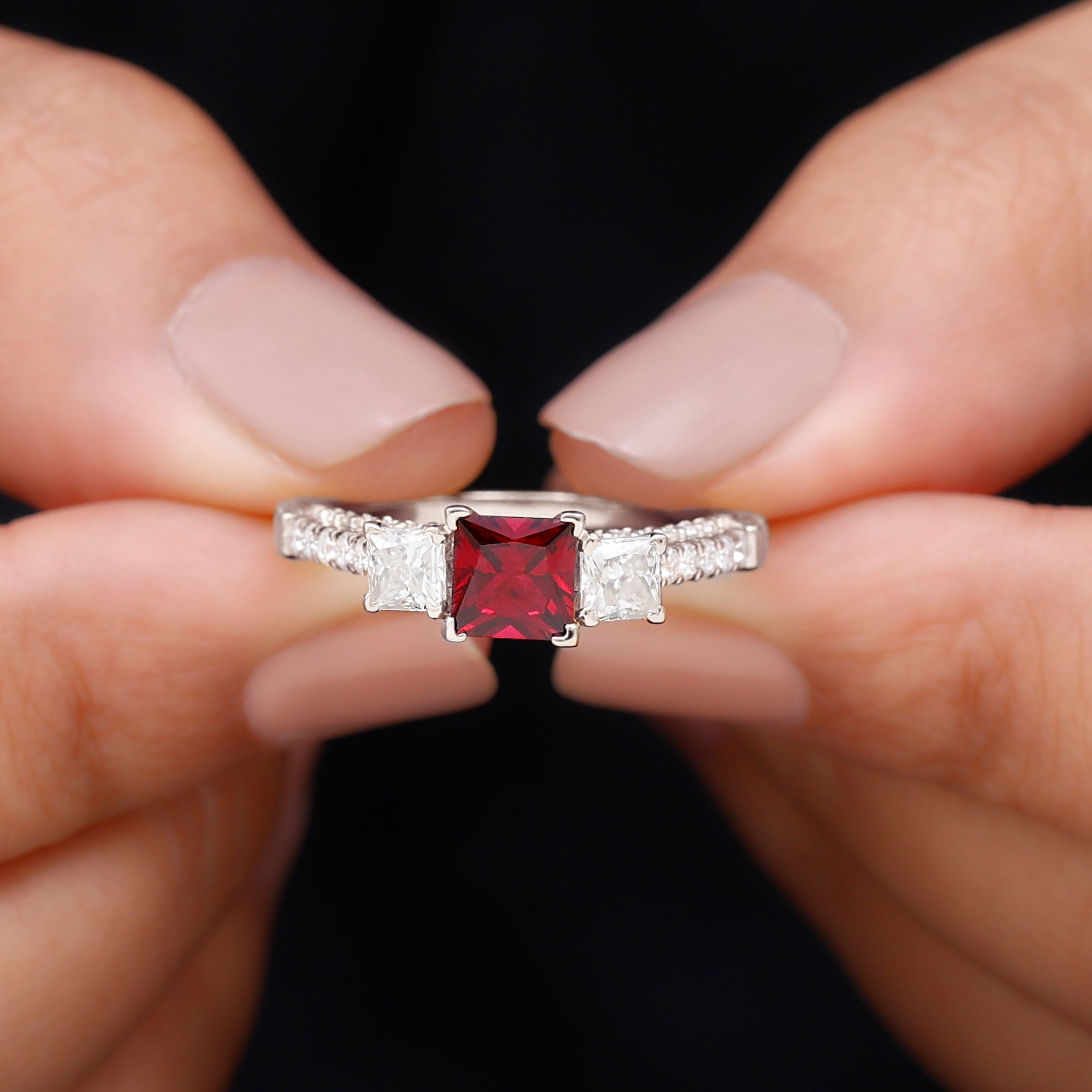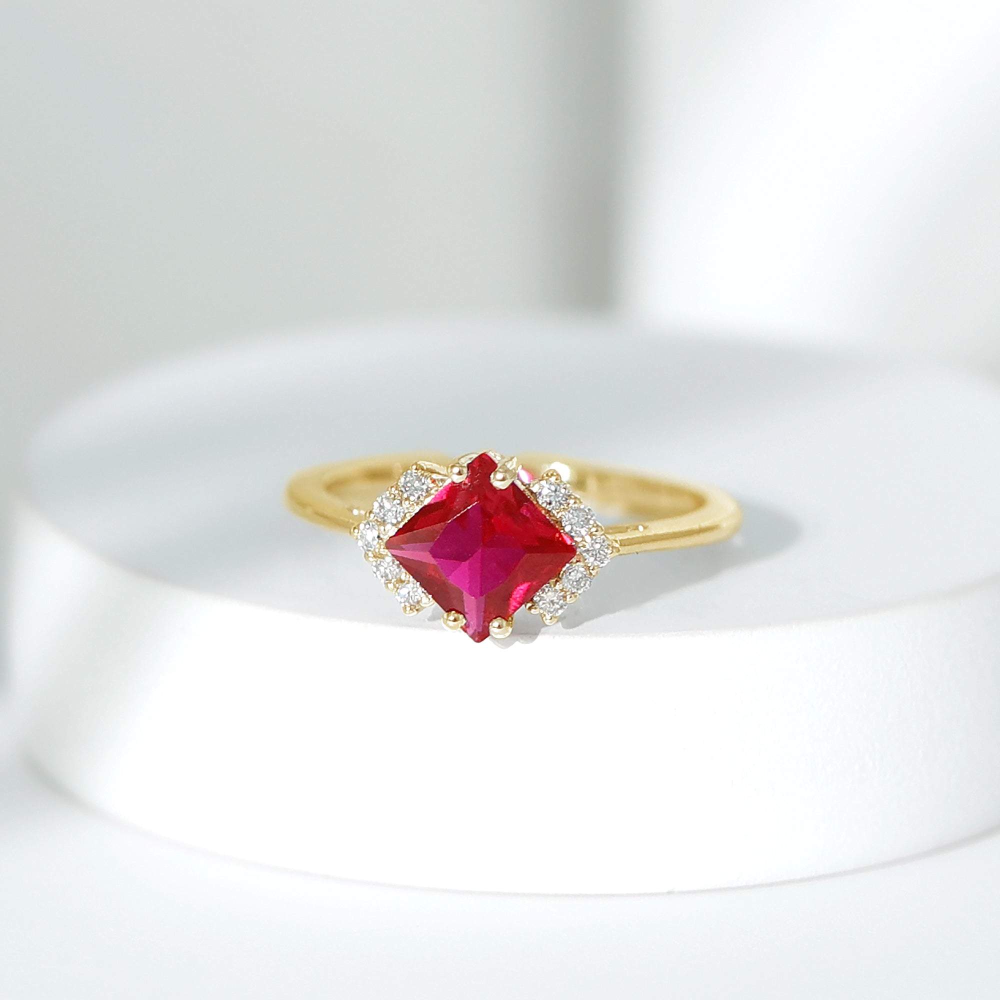Minimal Ruby Engagement Rings: These lab created ruby rings featuring clean lines, thin bands, dainty stones are for elegance and style lovers. Vibrant ruby with understated charm in this ring becomes an ideal choice as everyday wear piece.