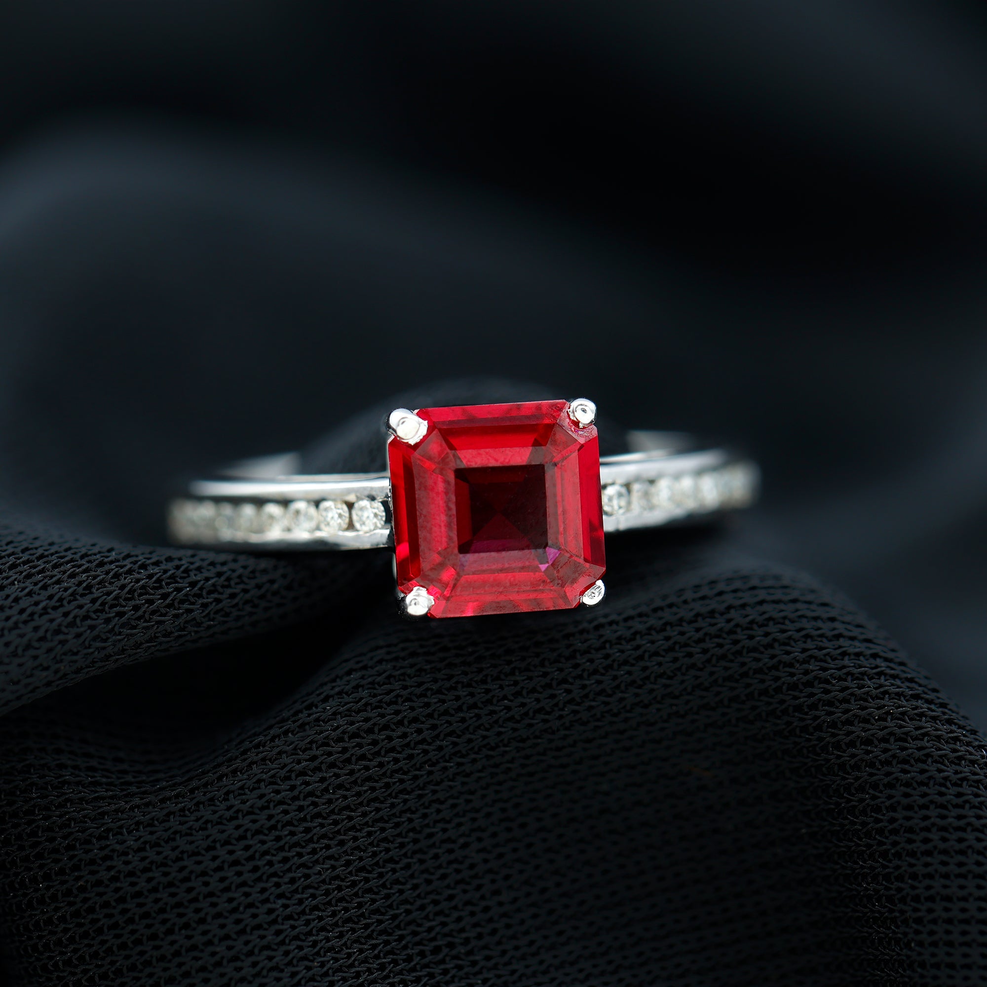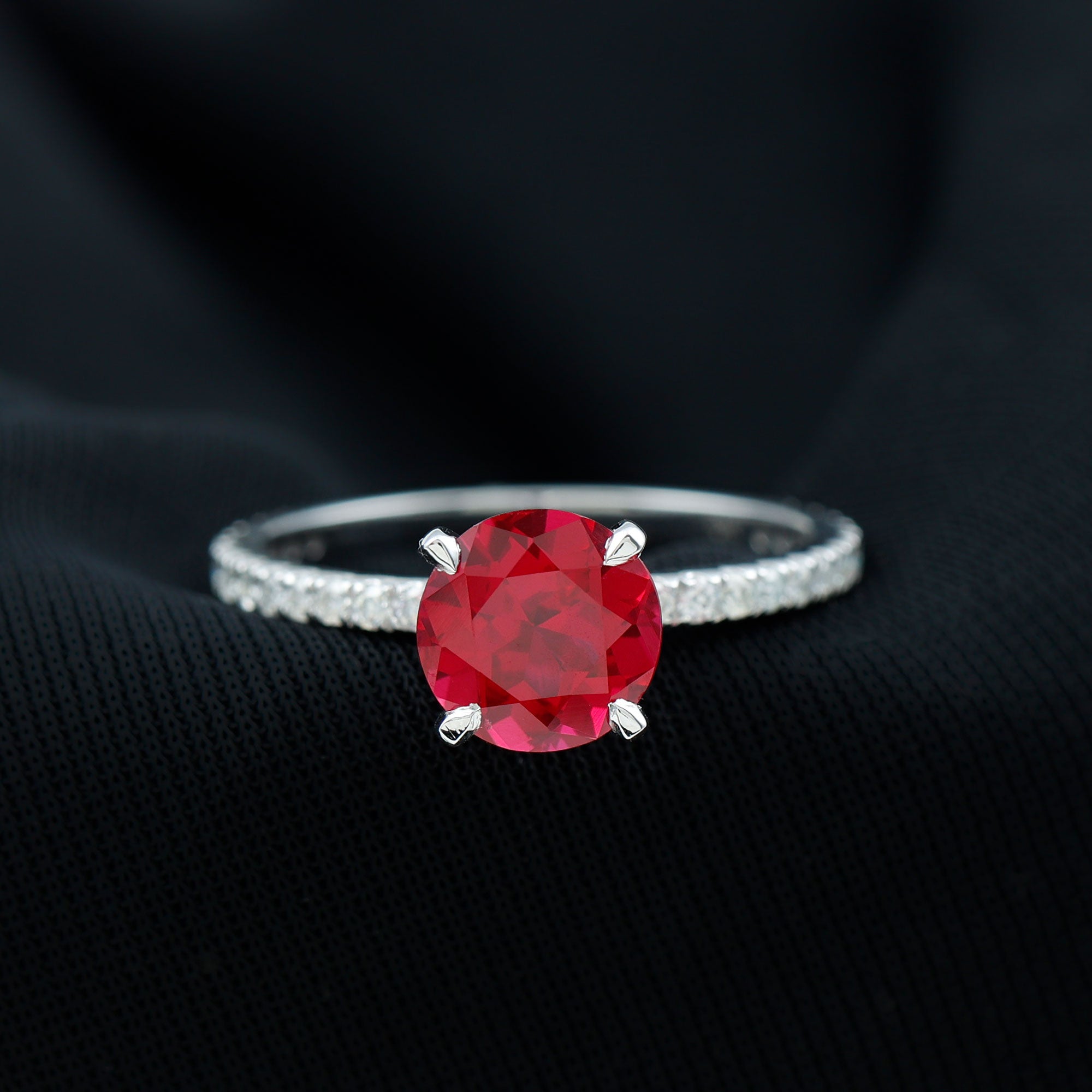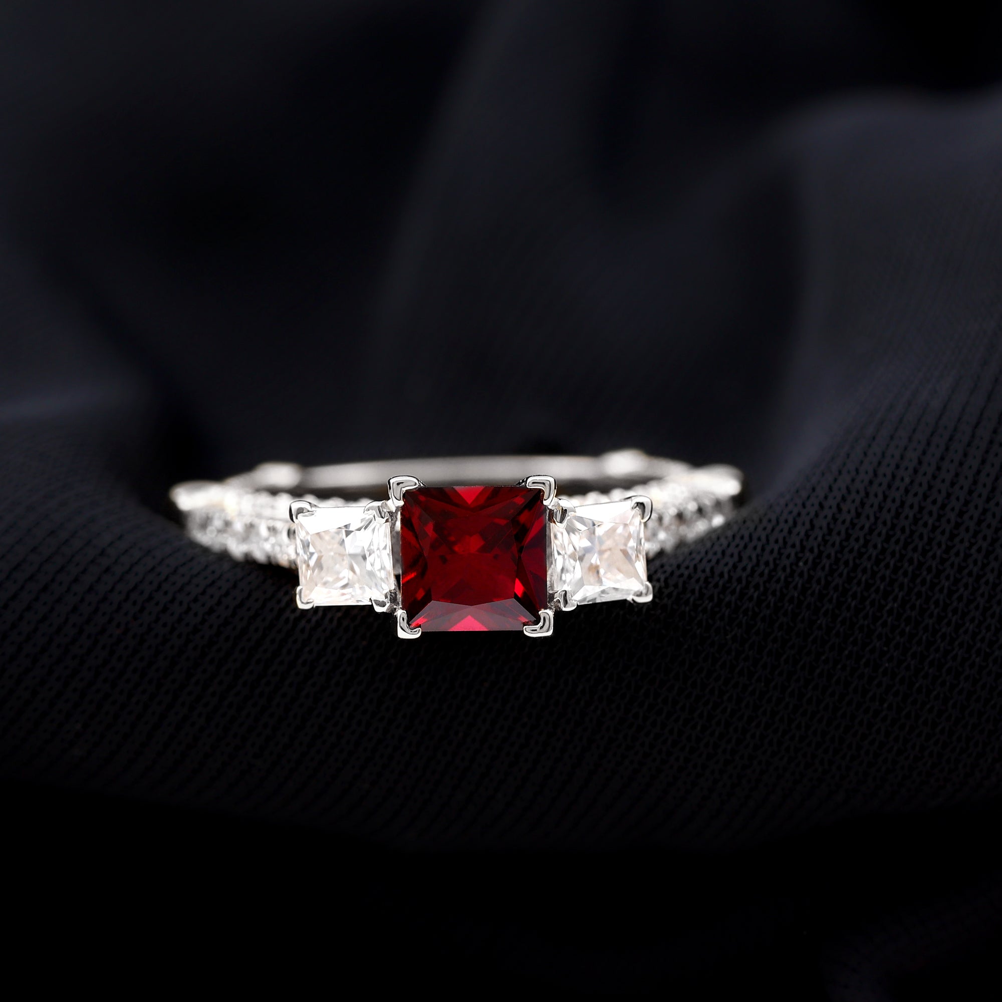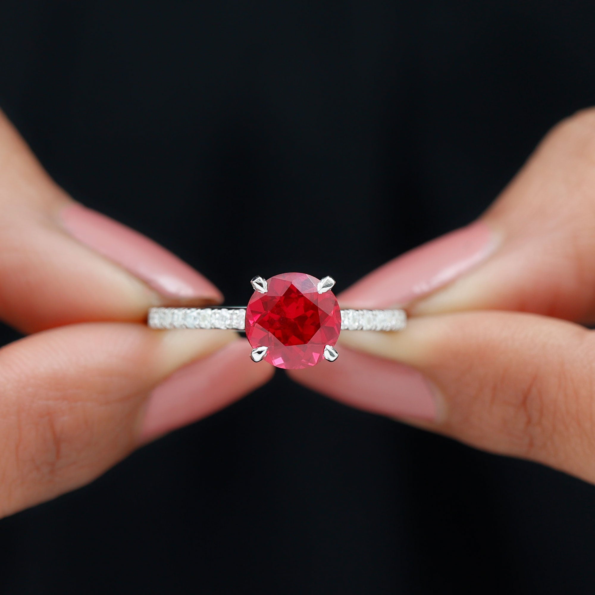 Minimal Ruby Engagement Rings: These lab created ruby rings featuring clean lines, thin bands, dainty stones are for elegance and style lovers. Vibrant ruby with understated charm in this ring becomes an ideal choice as everyday wear piece.