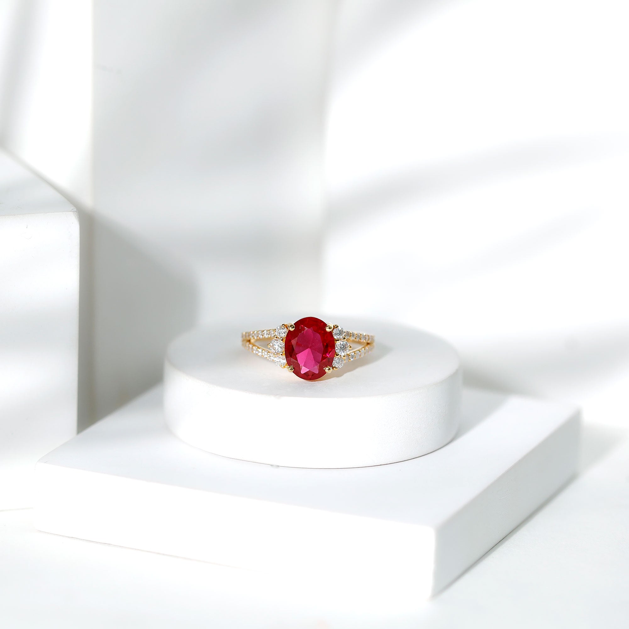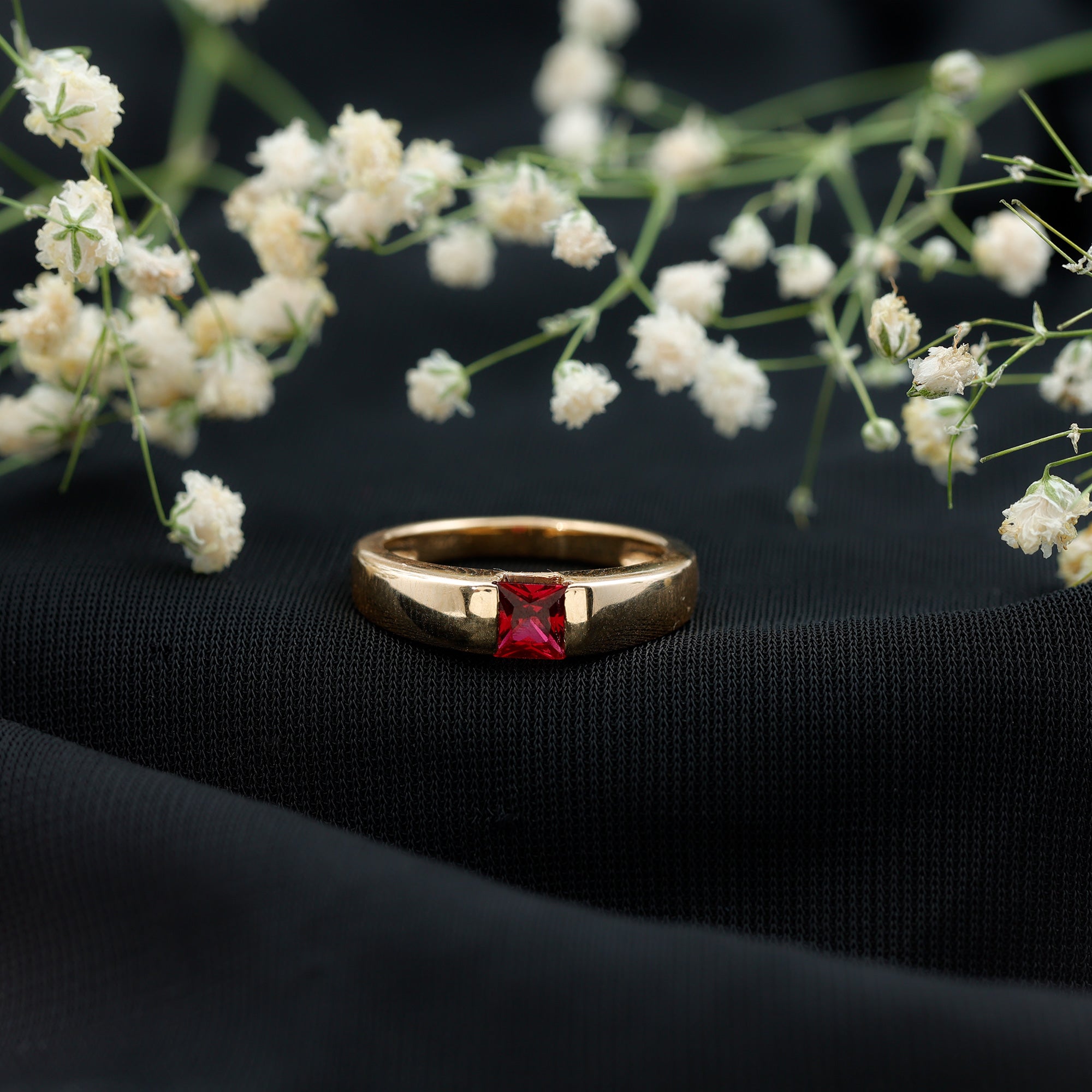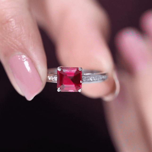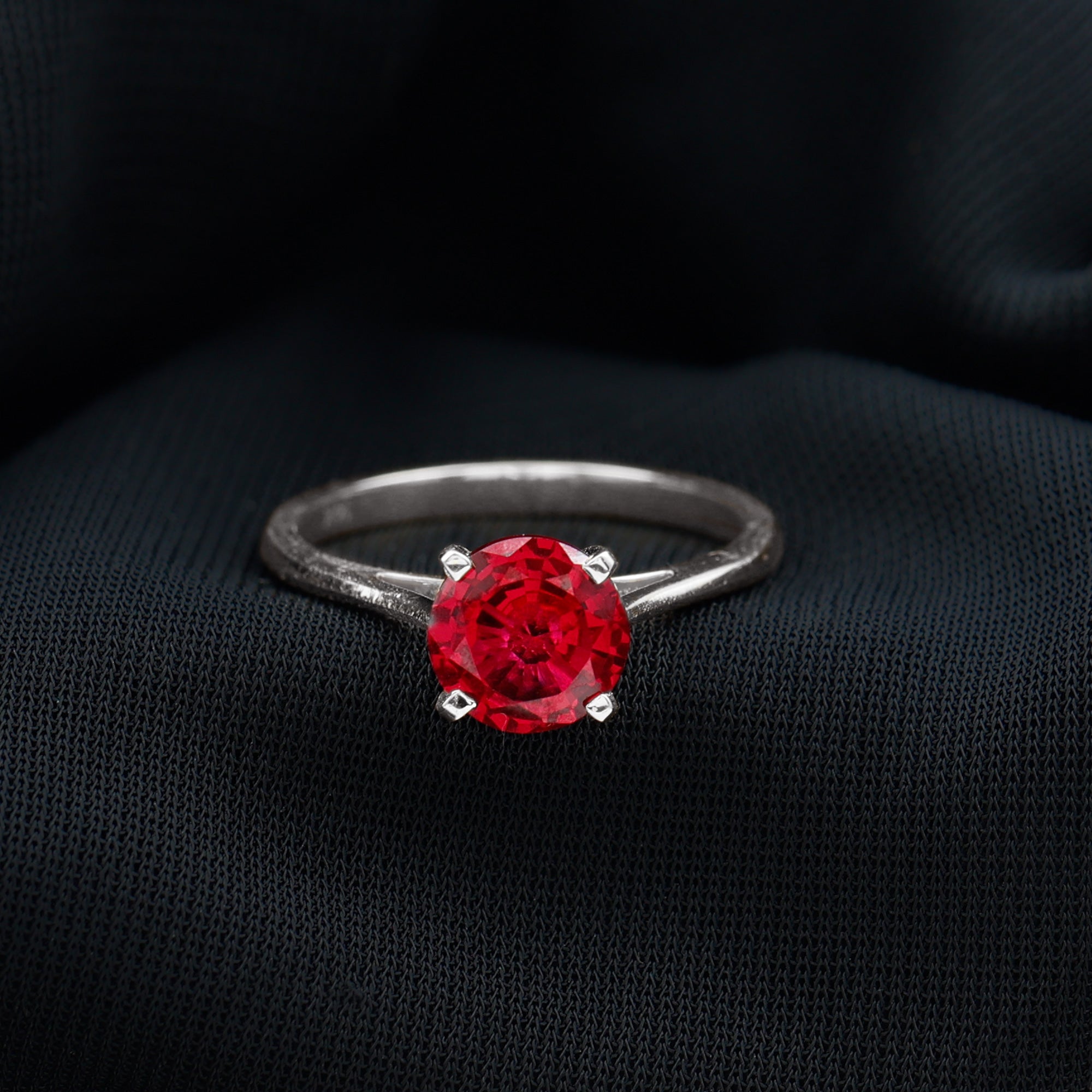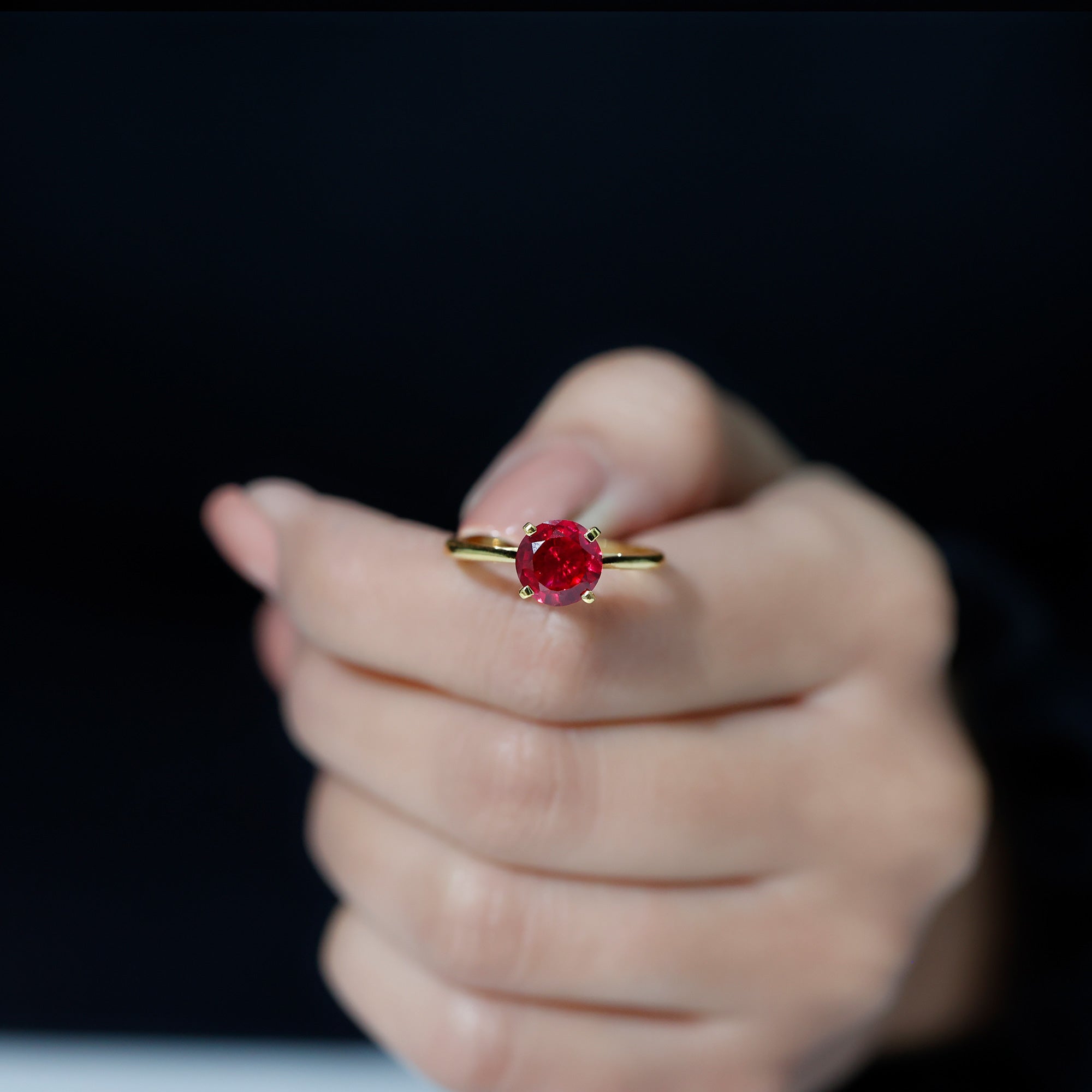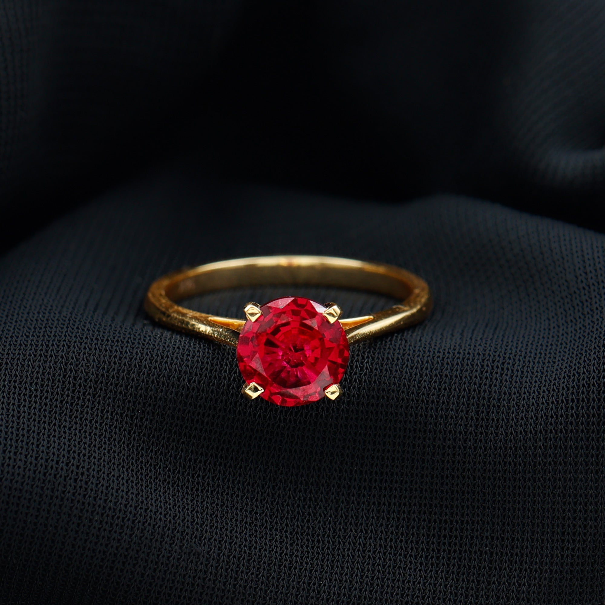 Solitaire Ruby Rings: Featuring a single stunning lab-grown ruby in the center in different shapes like classic round, oval to trending emerald and princess cut. The ruby gemstone is solely responsible for the beauty of the ring, no other stones or distractions, just pure, elegance of a solitaire.
