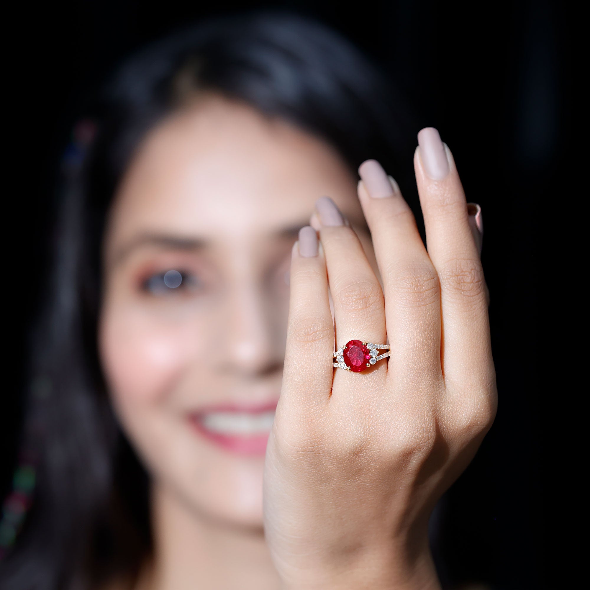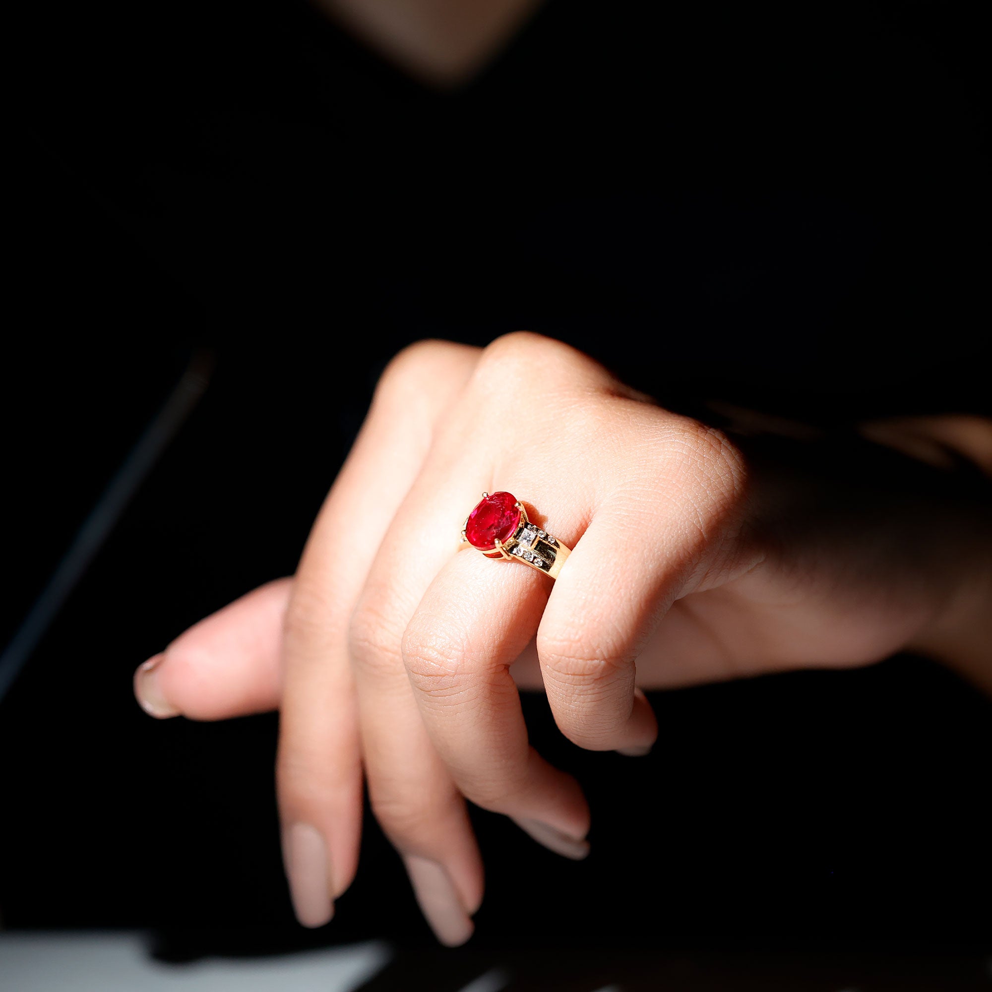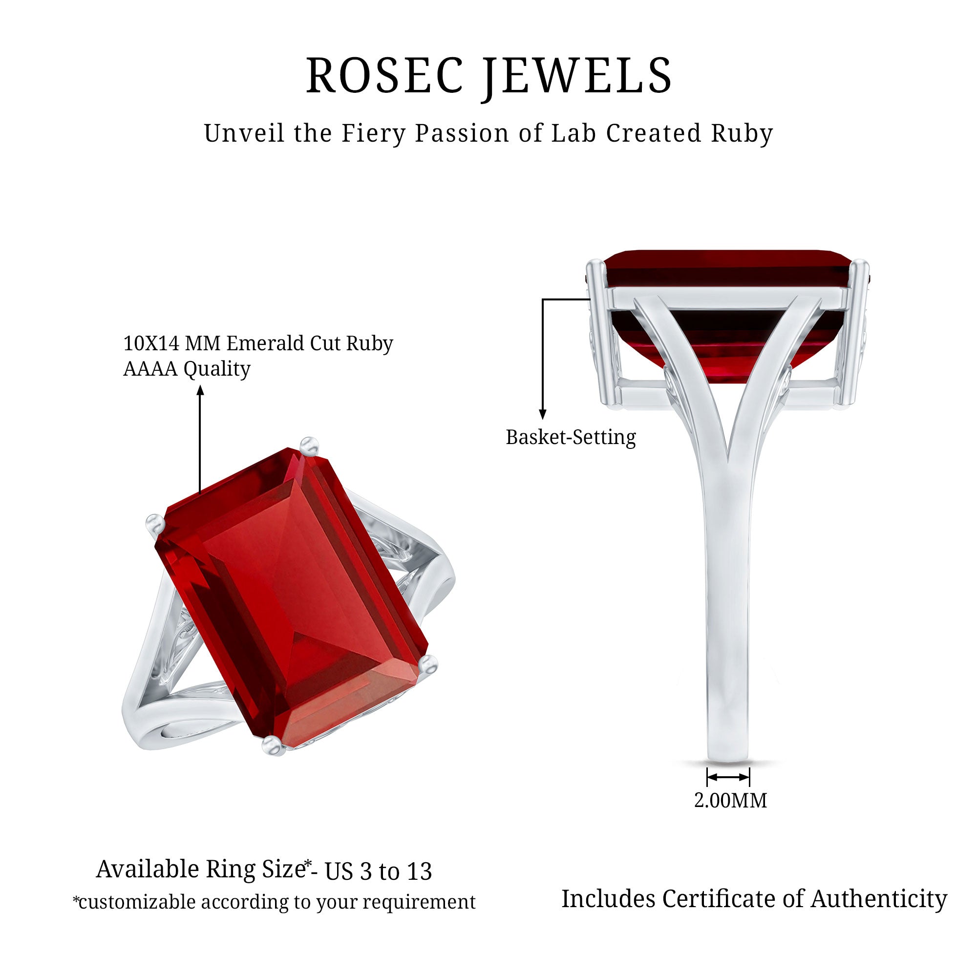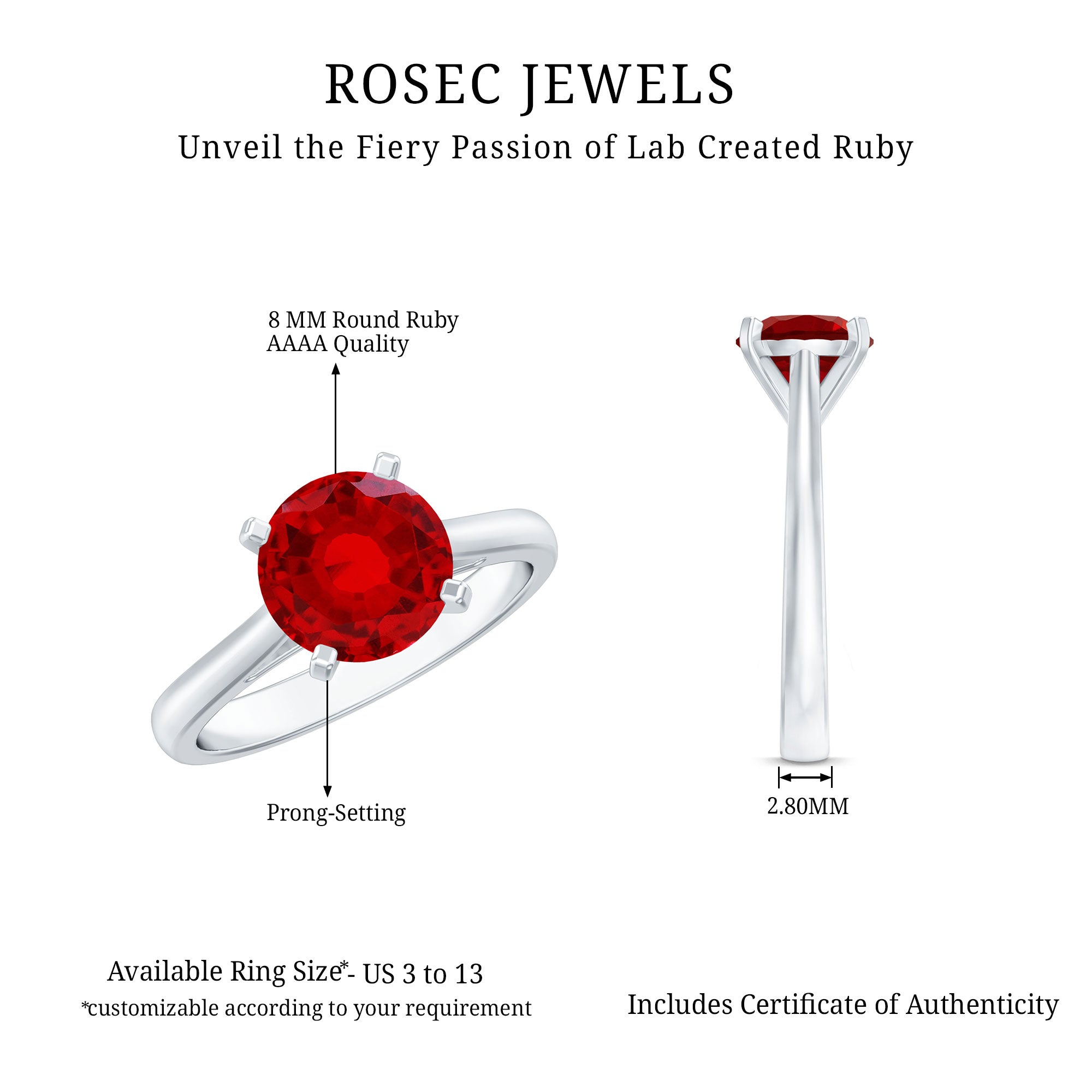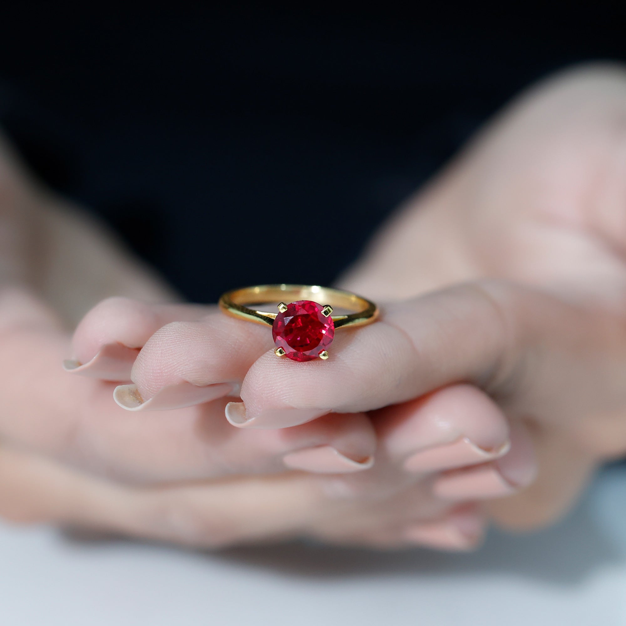 Solitaire Ruby Rings: Featuring a single stunning lab-grown ruby in the center in different shapes like classic round, oval to trending emerald and princess cut. The ruby gemstone is solely responsible for the beauty of the ring, no other stones or distractions, just pure, elegance of a solitaire.