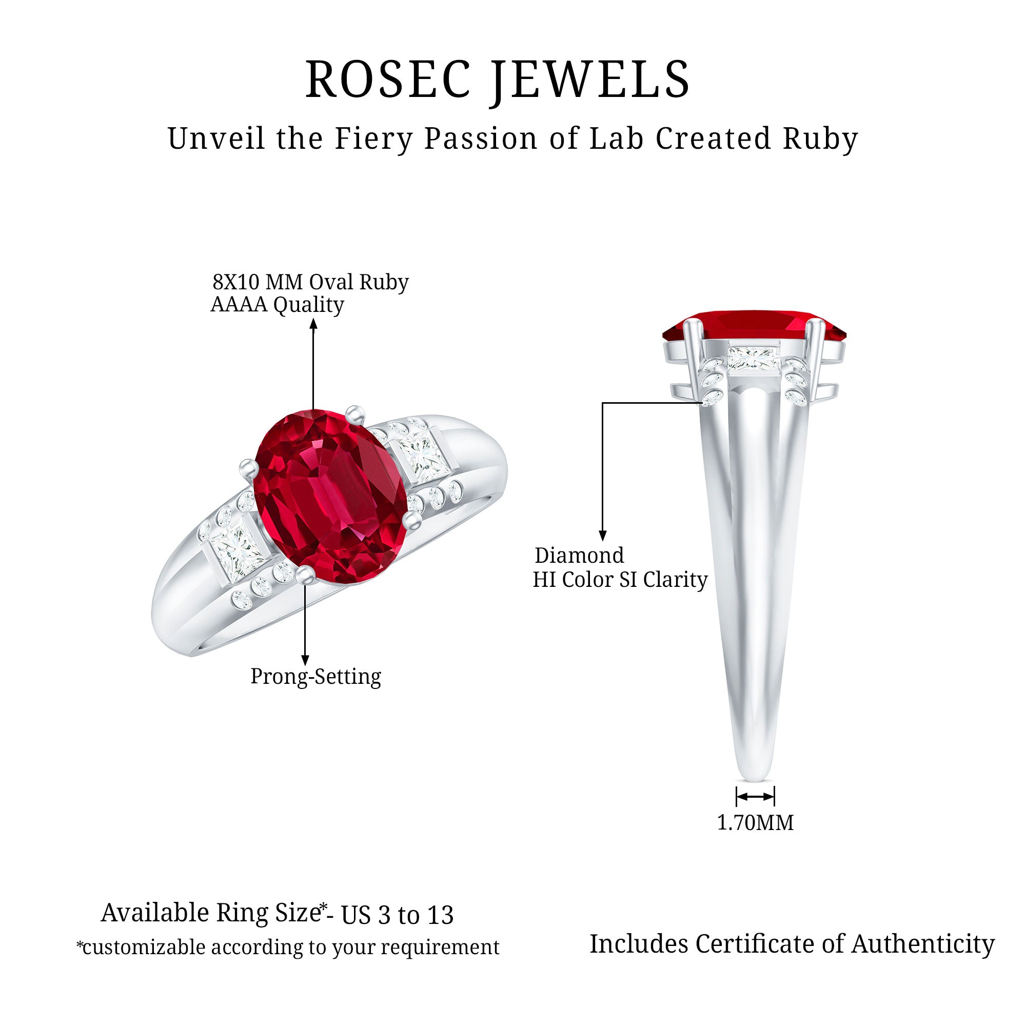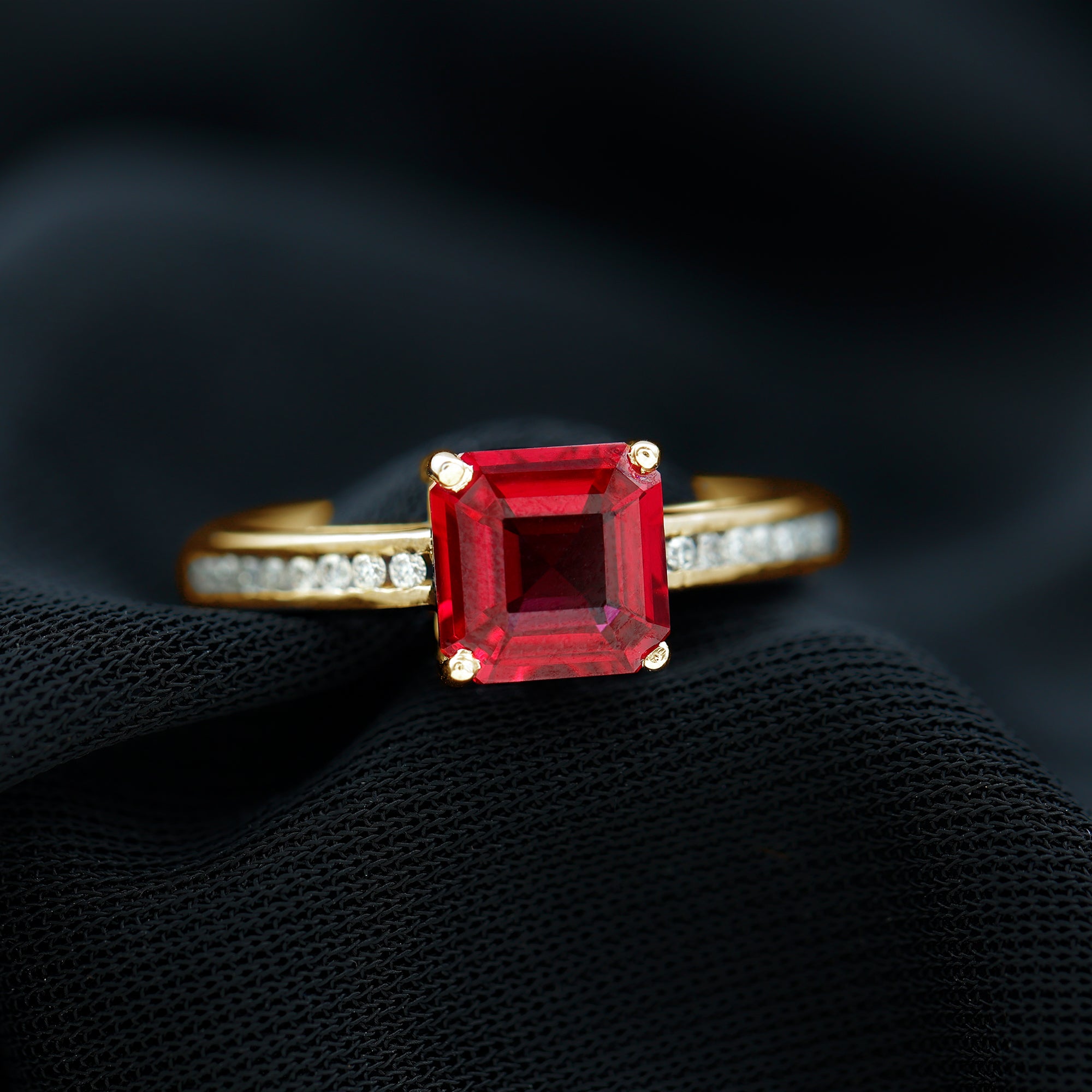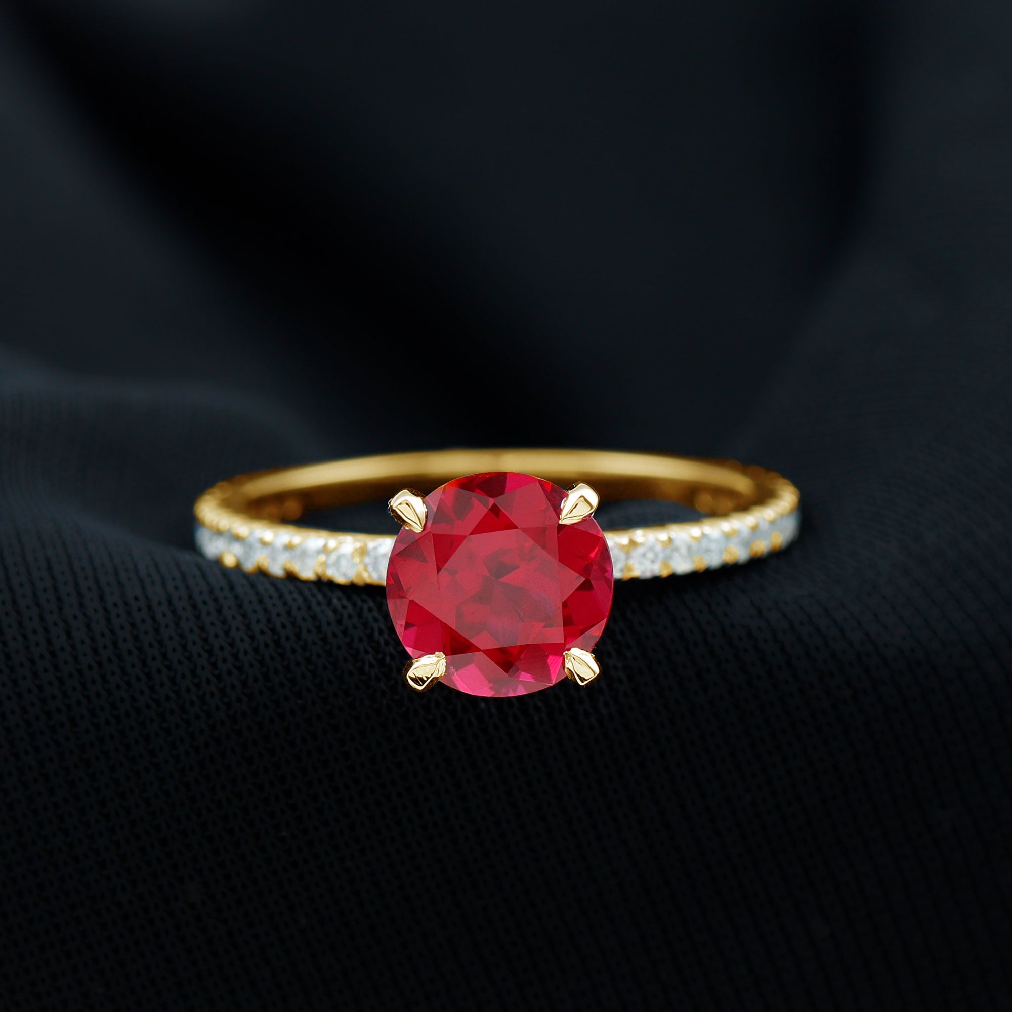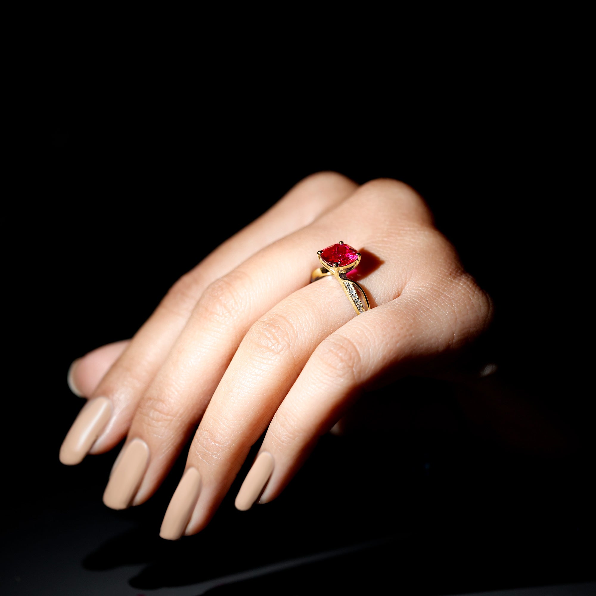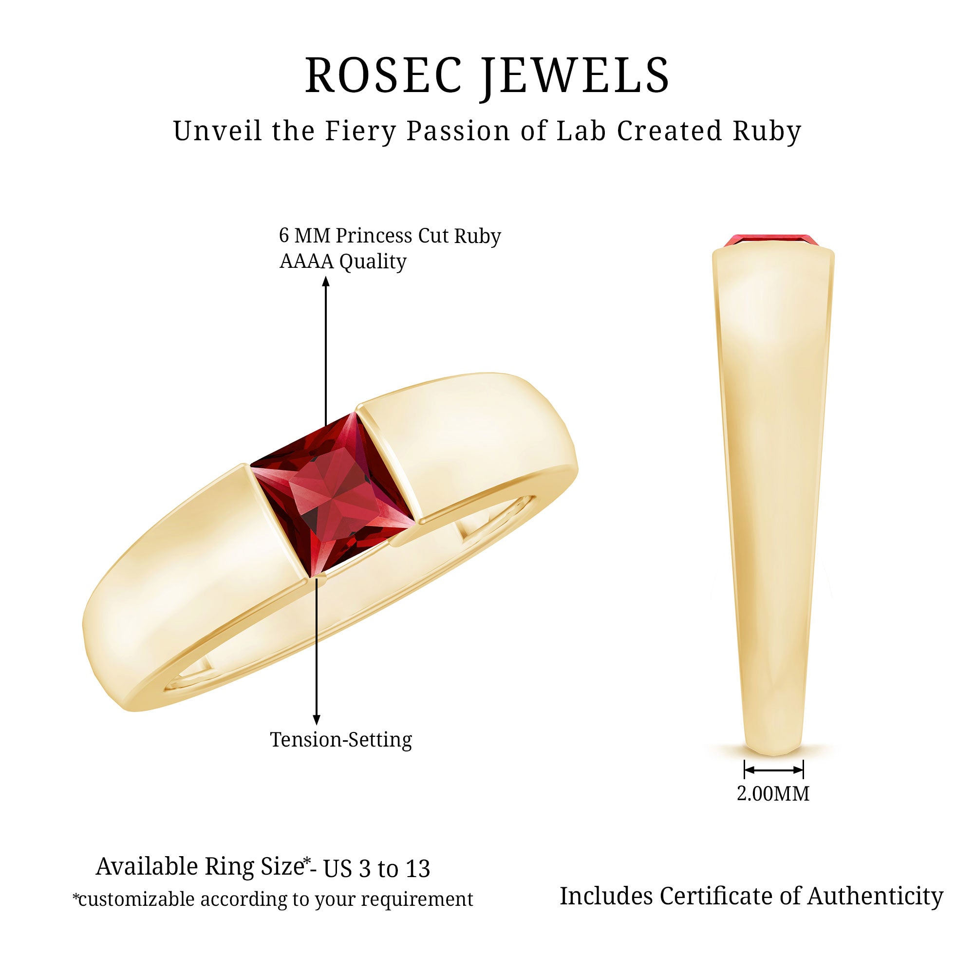 Solitaire Ruby Rings: Featuring a single stunning lab-grown ruby in the center in different shapes like classic round, oval to trending emerald and princess cut. The ruby gemstone is solely responsible for the beauty of the ring, no other stones or distractions, just pure, elegance of a solitaire.