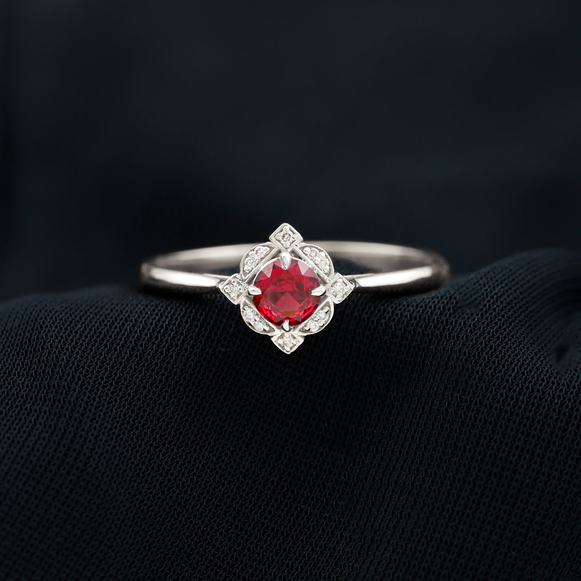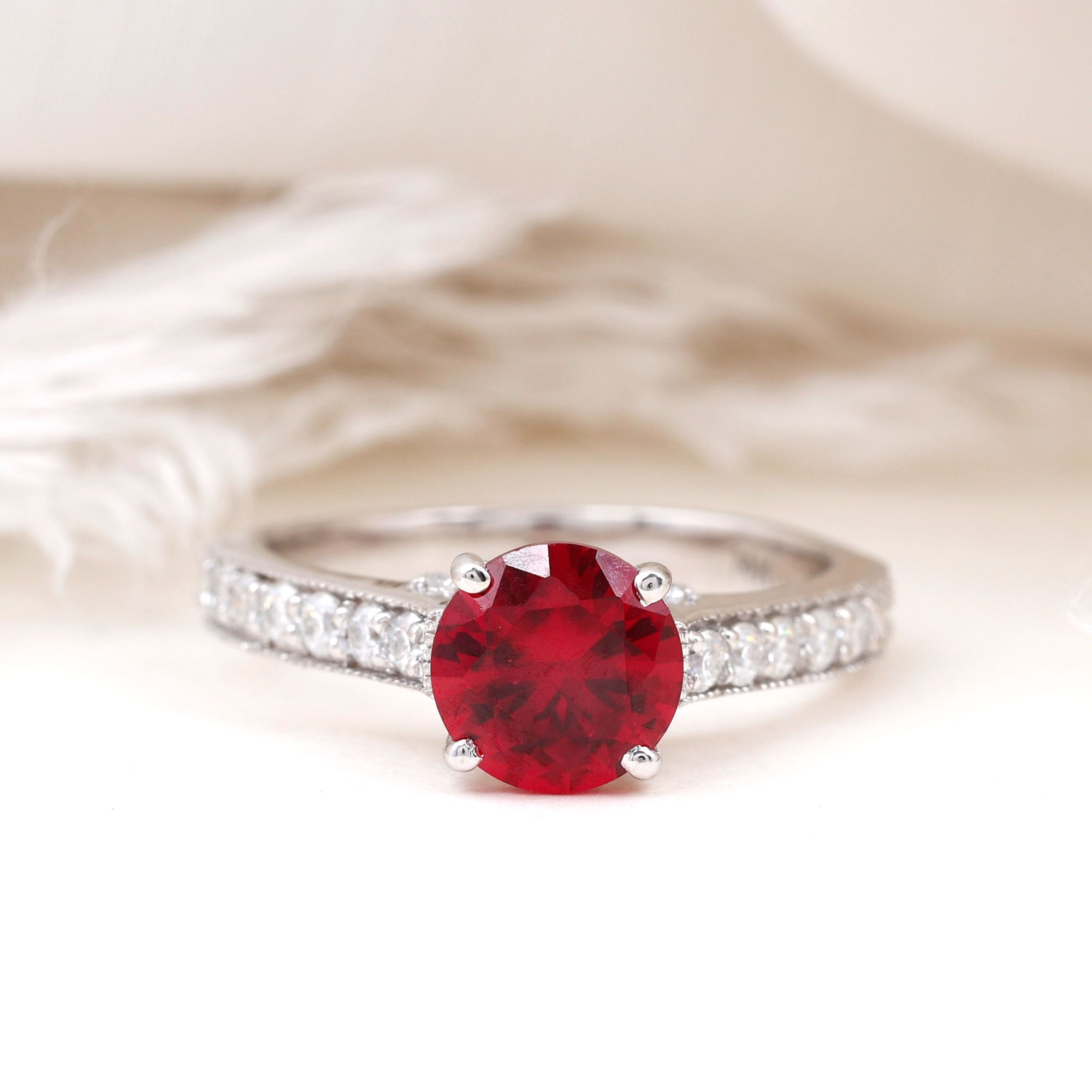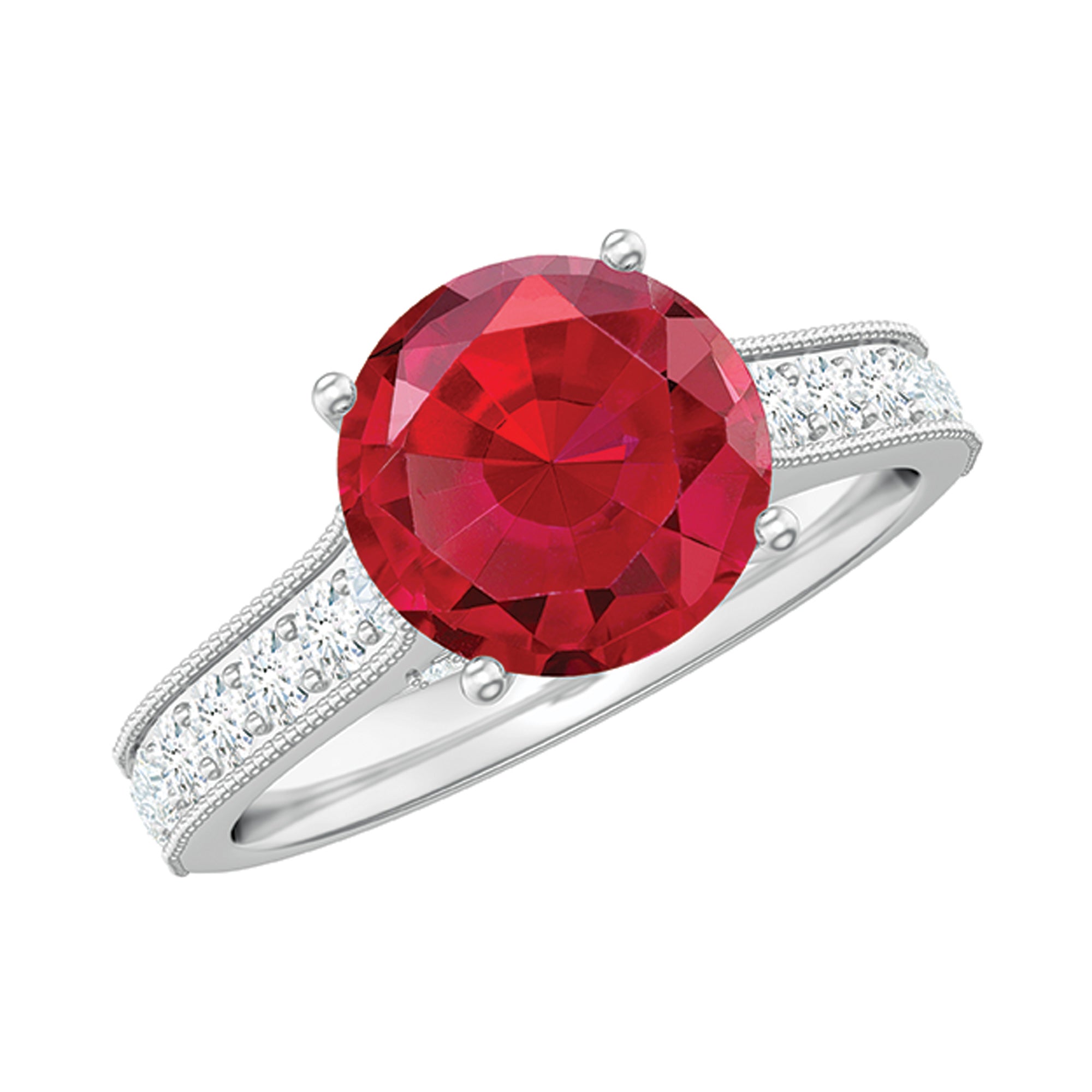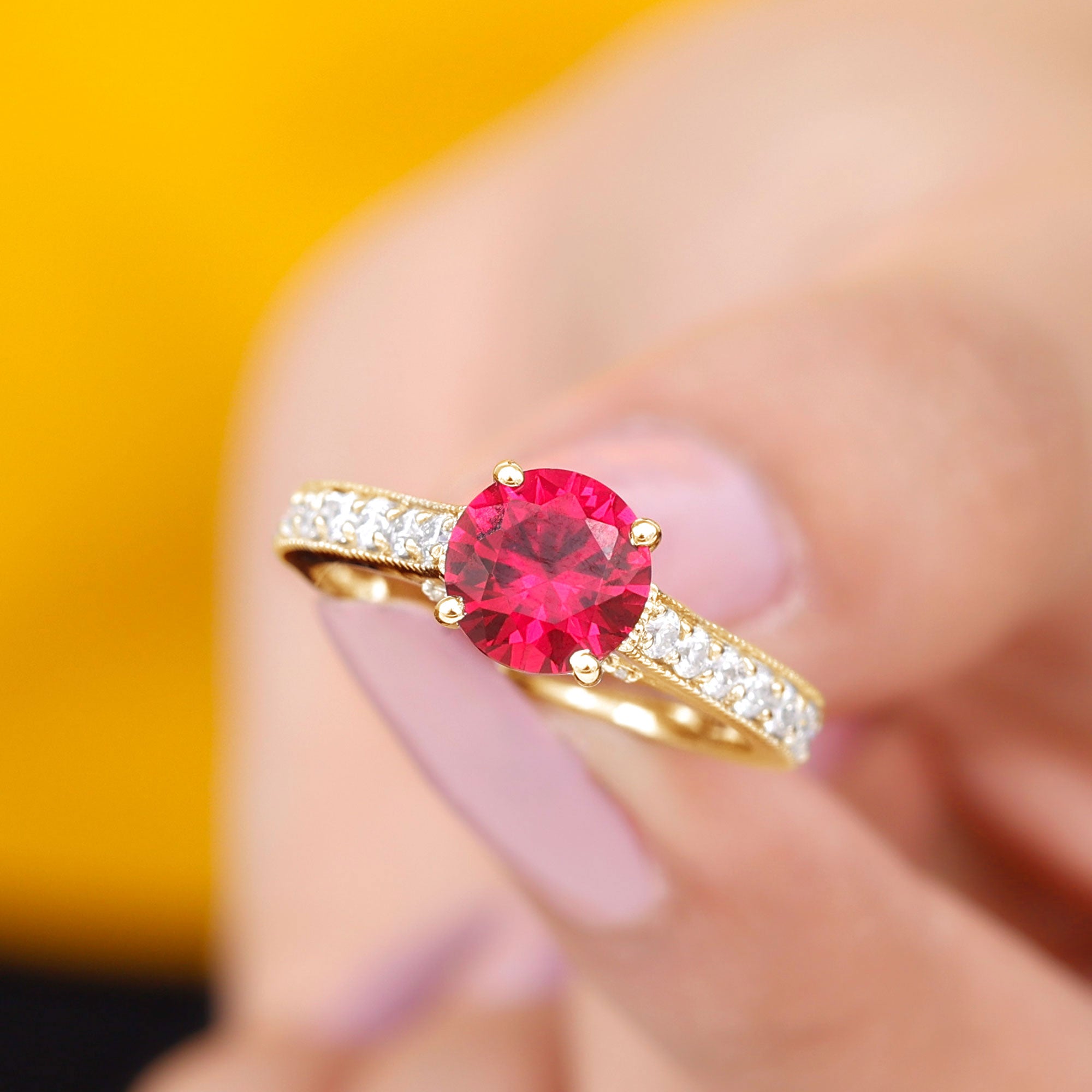 Vintage-Inspired Created Ruby Rings: Inspired by the designs of bygone eras featuring intricate designs and milgrain patterns, these rings are for classic lovers. Timeless look with a stylish twist makes vintage lab created ruby rings a trending choice among modern couples.