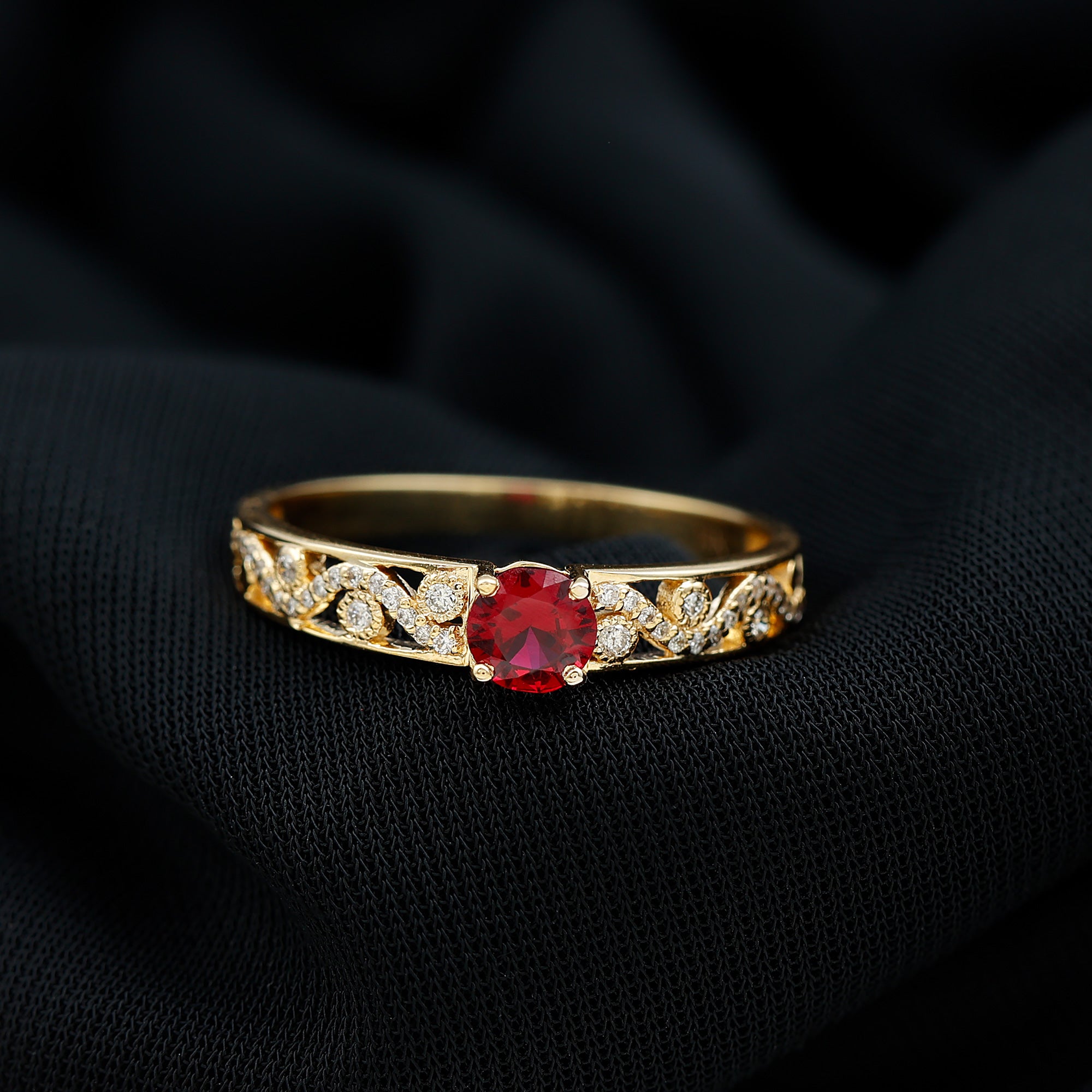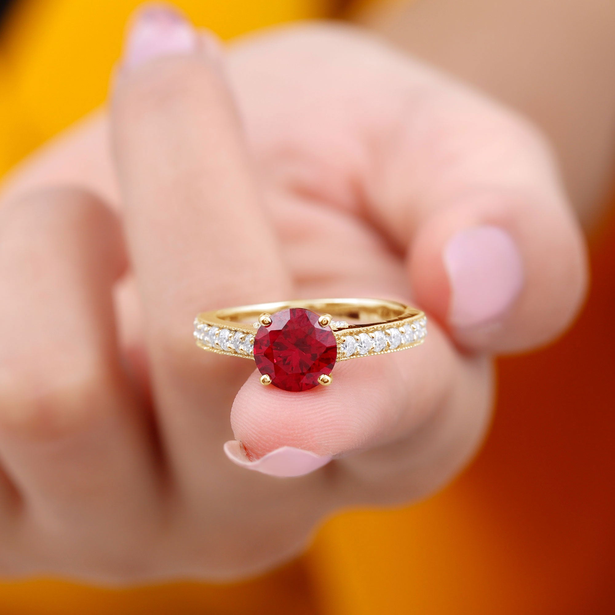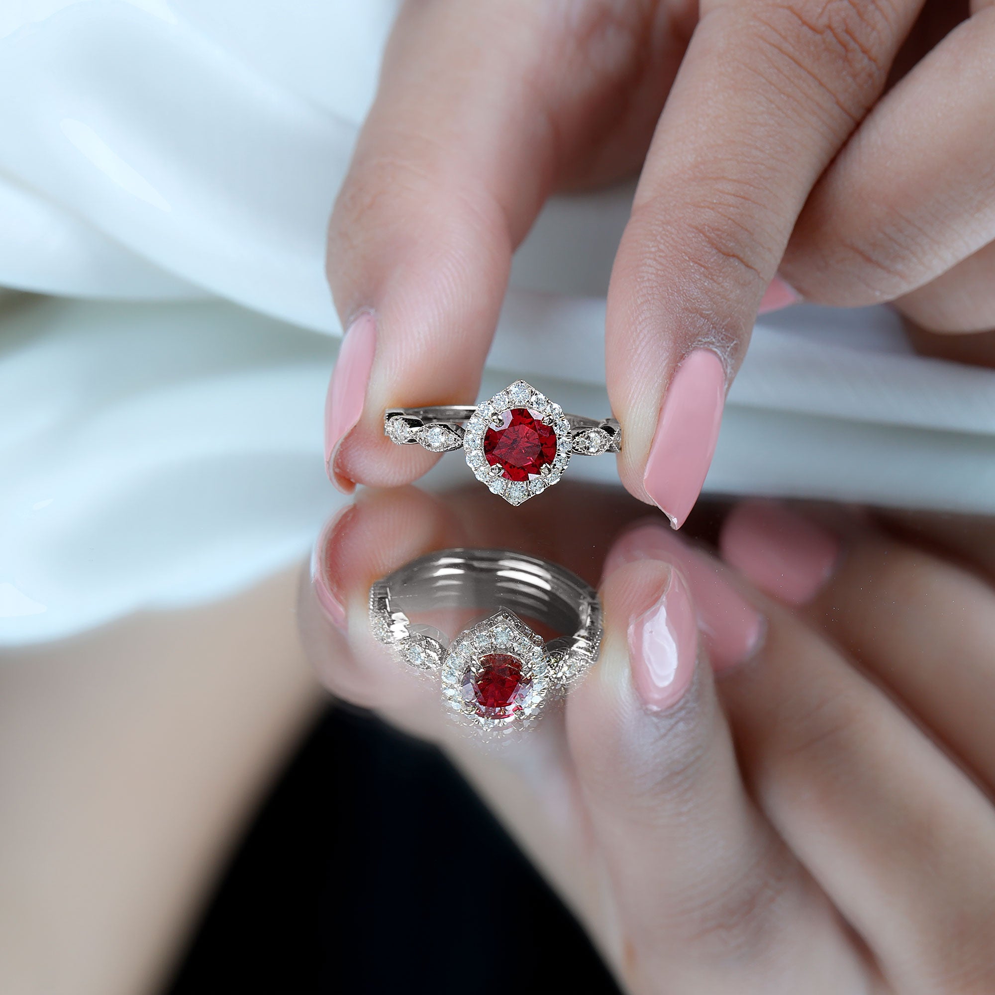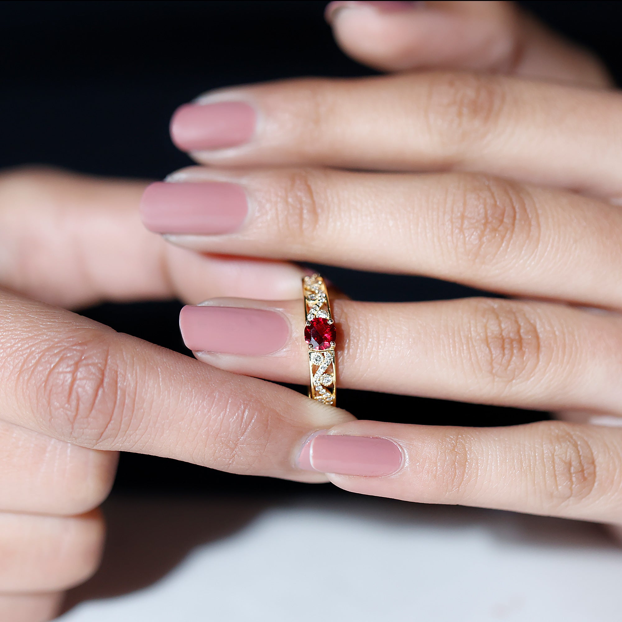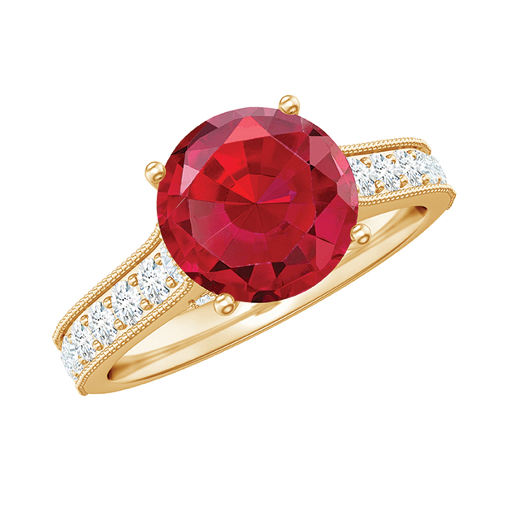 Vintage-Inspired Created Ruby Rings: Inspired by the designs of bygone eras featuring intricate designs and milgrain patterns, these rings are for classic lovers. Timeless look with a stylish twist makes vintage lab created ruby rings a trending choice among modern couples.