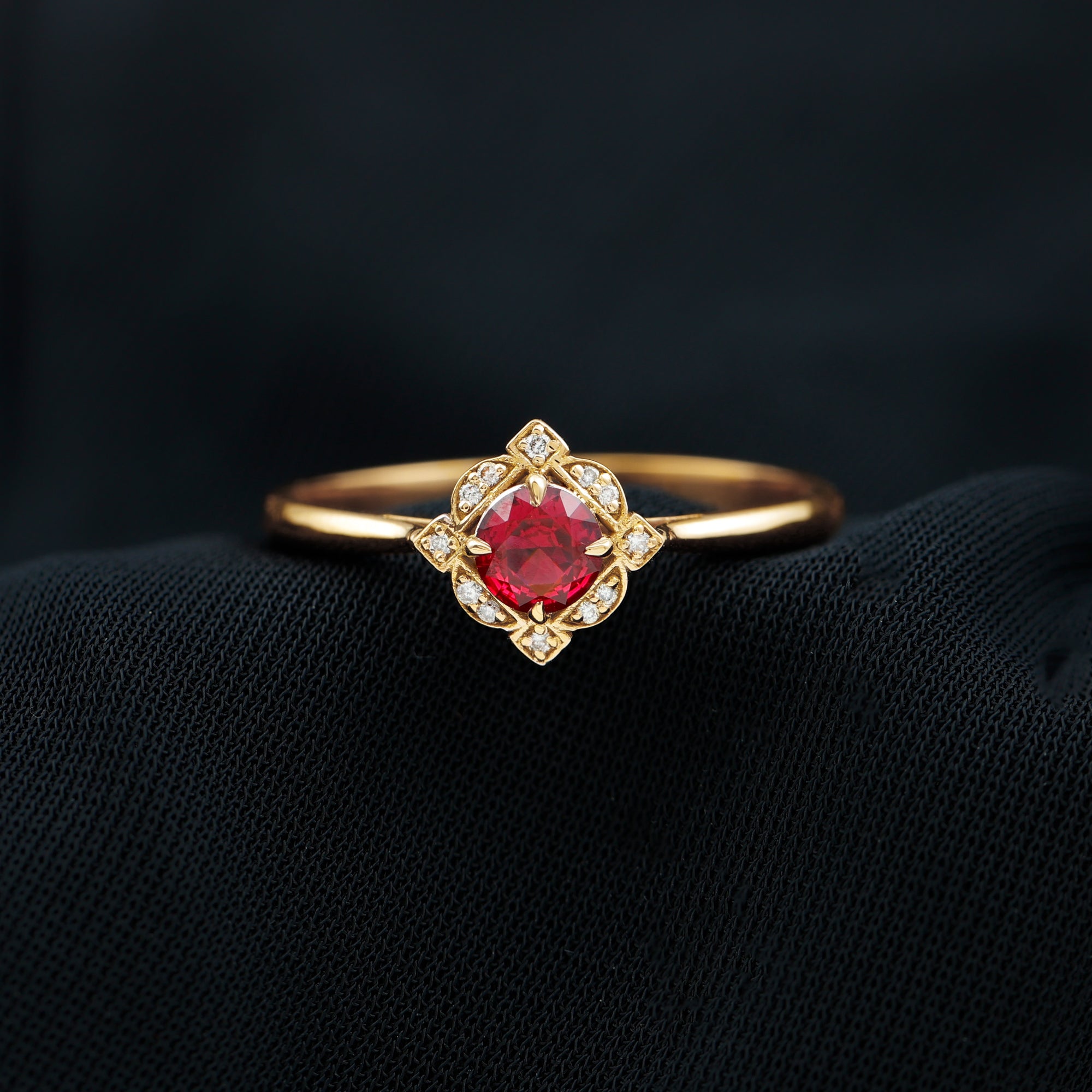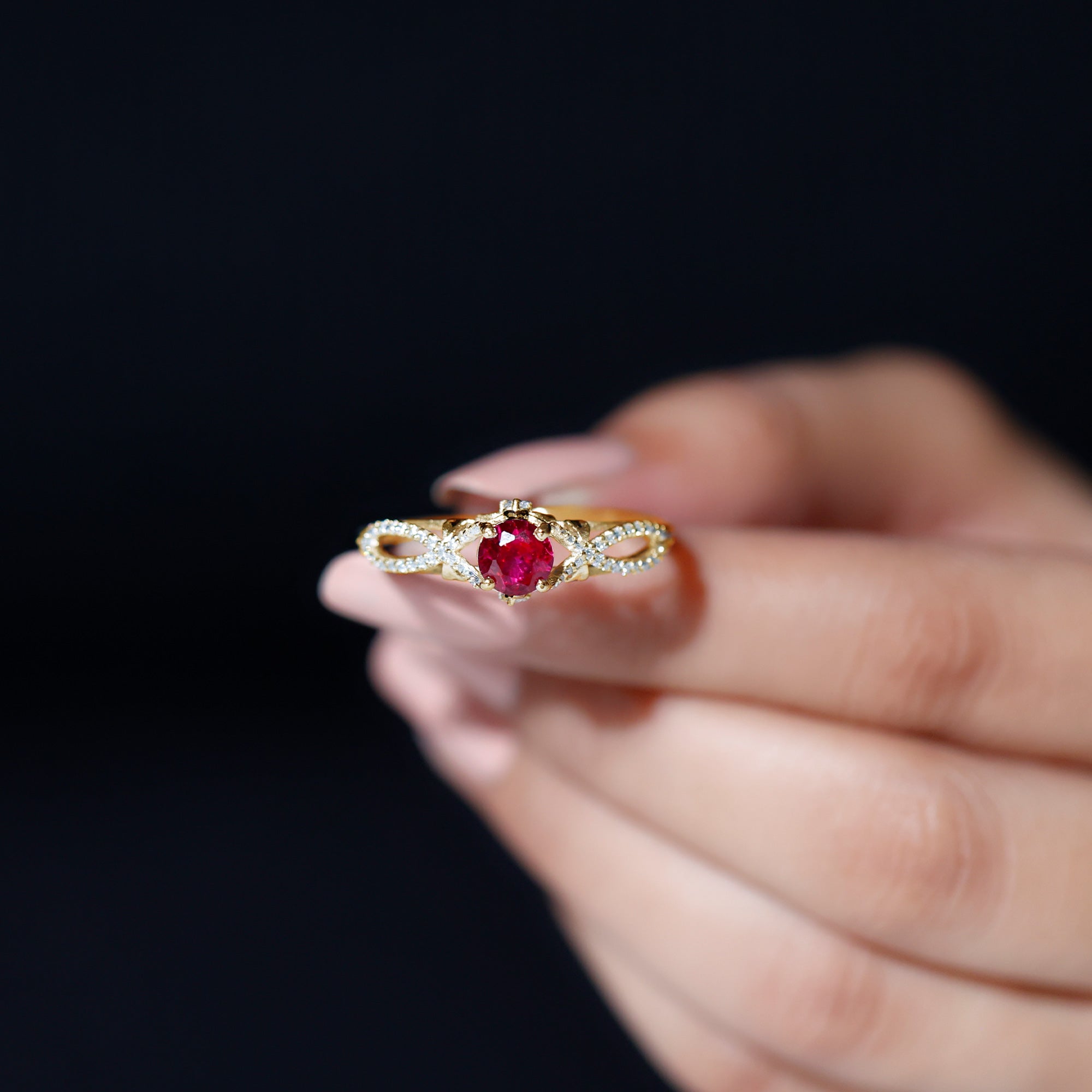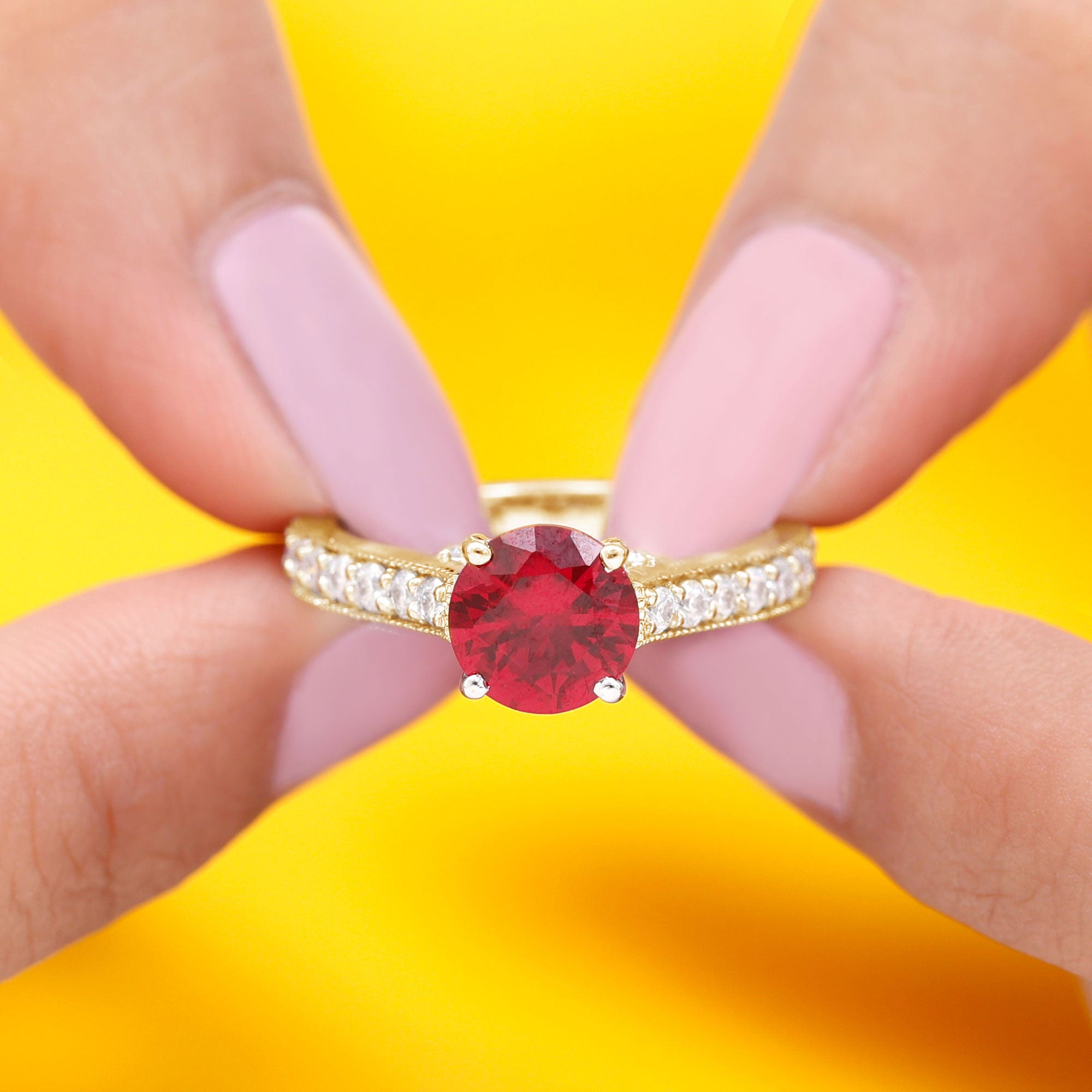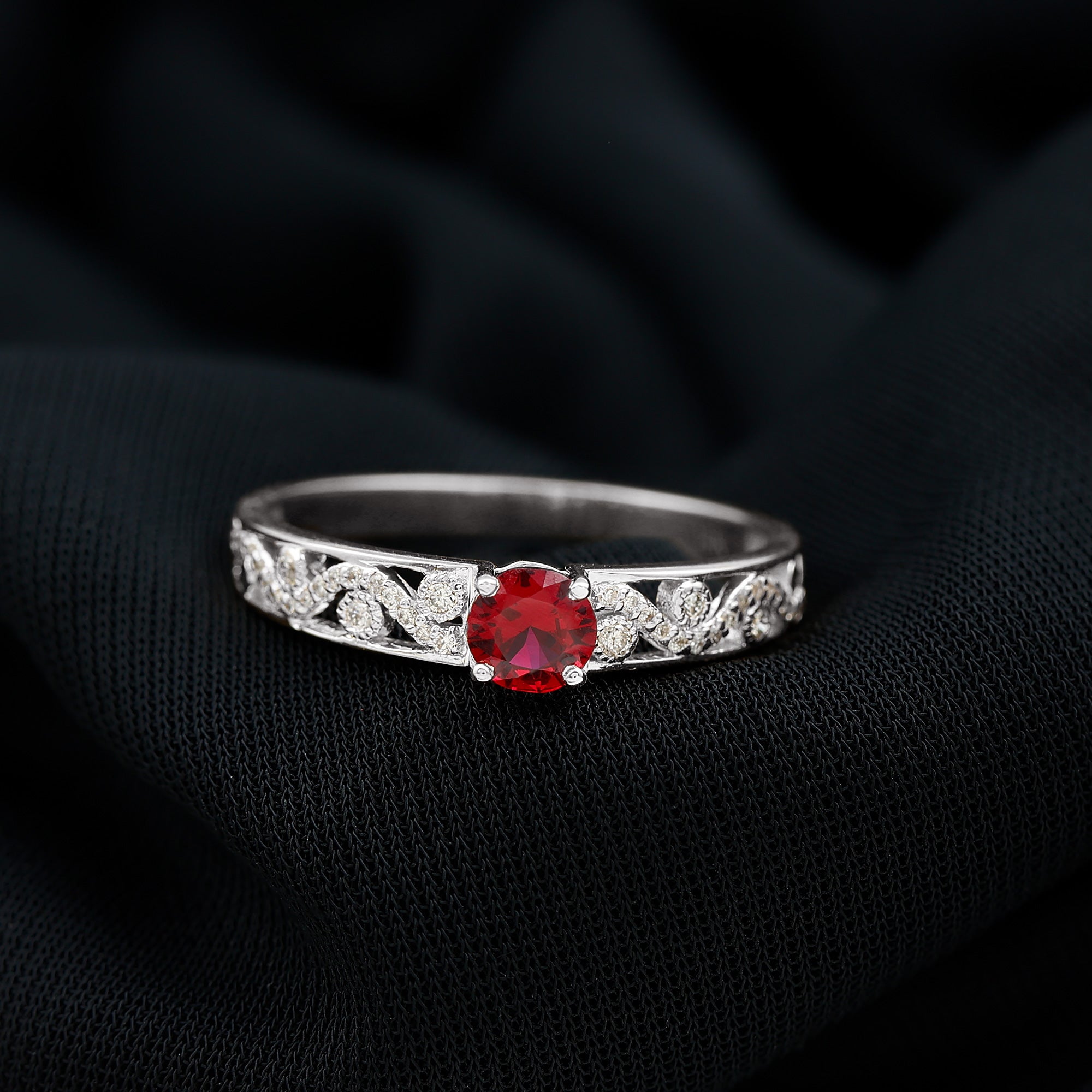 Vintage-Inspired Created Ruby Rings: Inspired by the designs of bygone eras featuring intricate designs and milgrain patterns, these rings are for classic lovers. Timeless look with a stylish twist makes vintage lab created ruby rings a trending choice among modern couples.