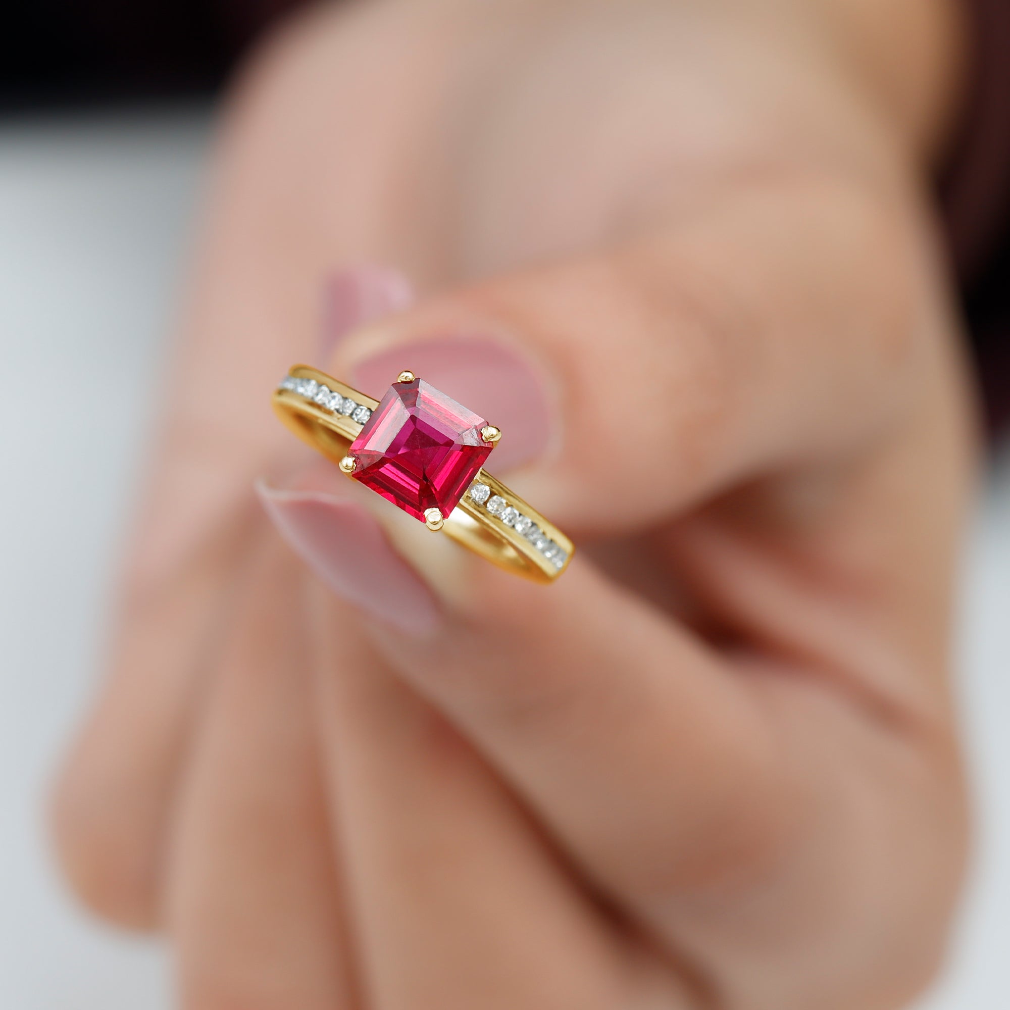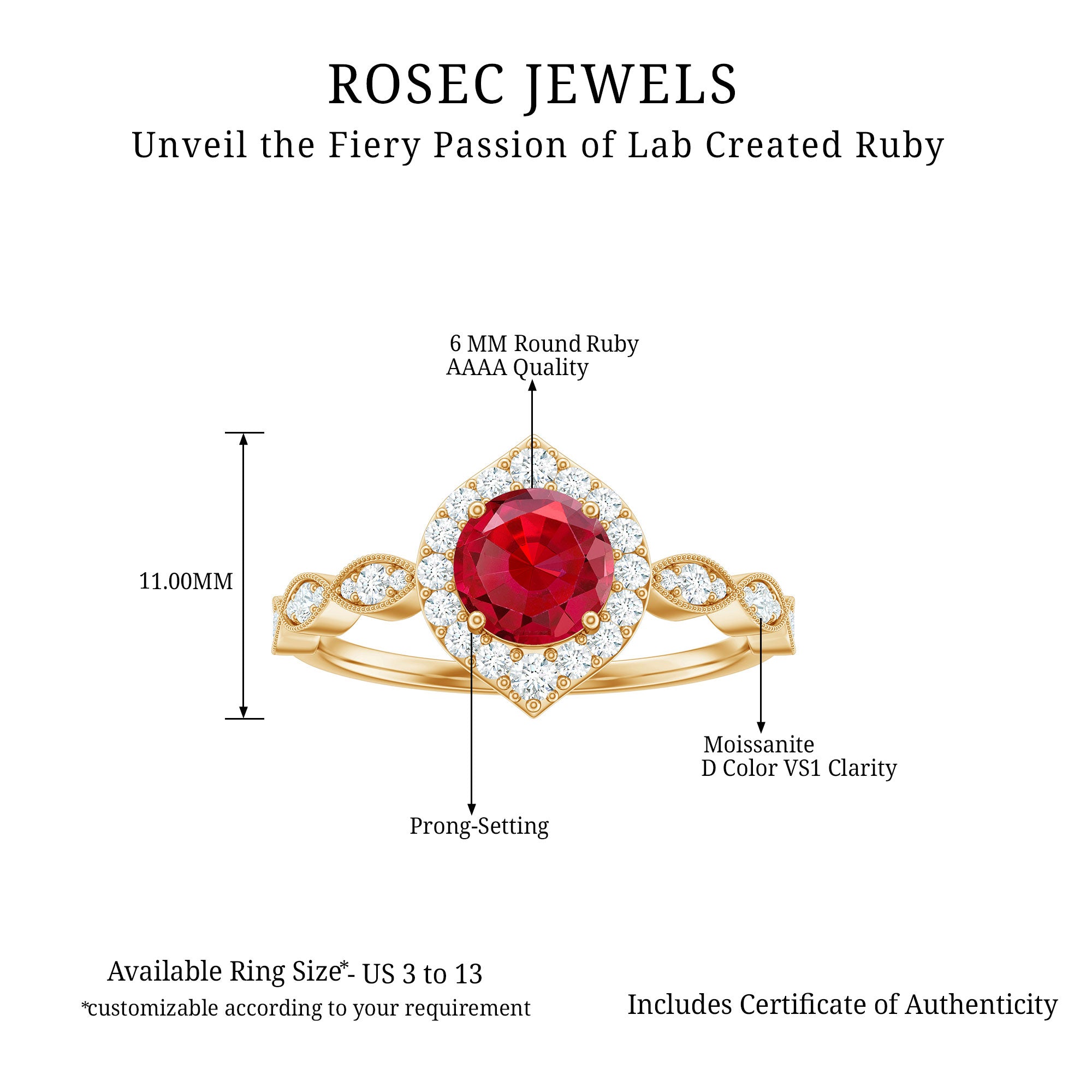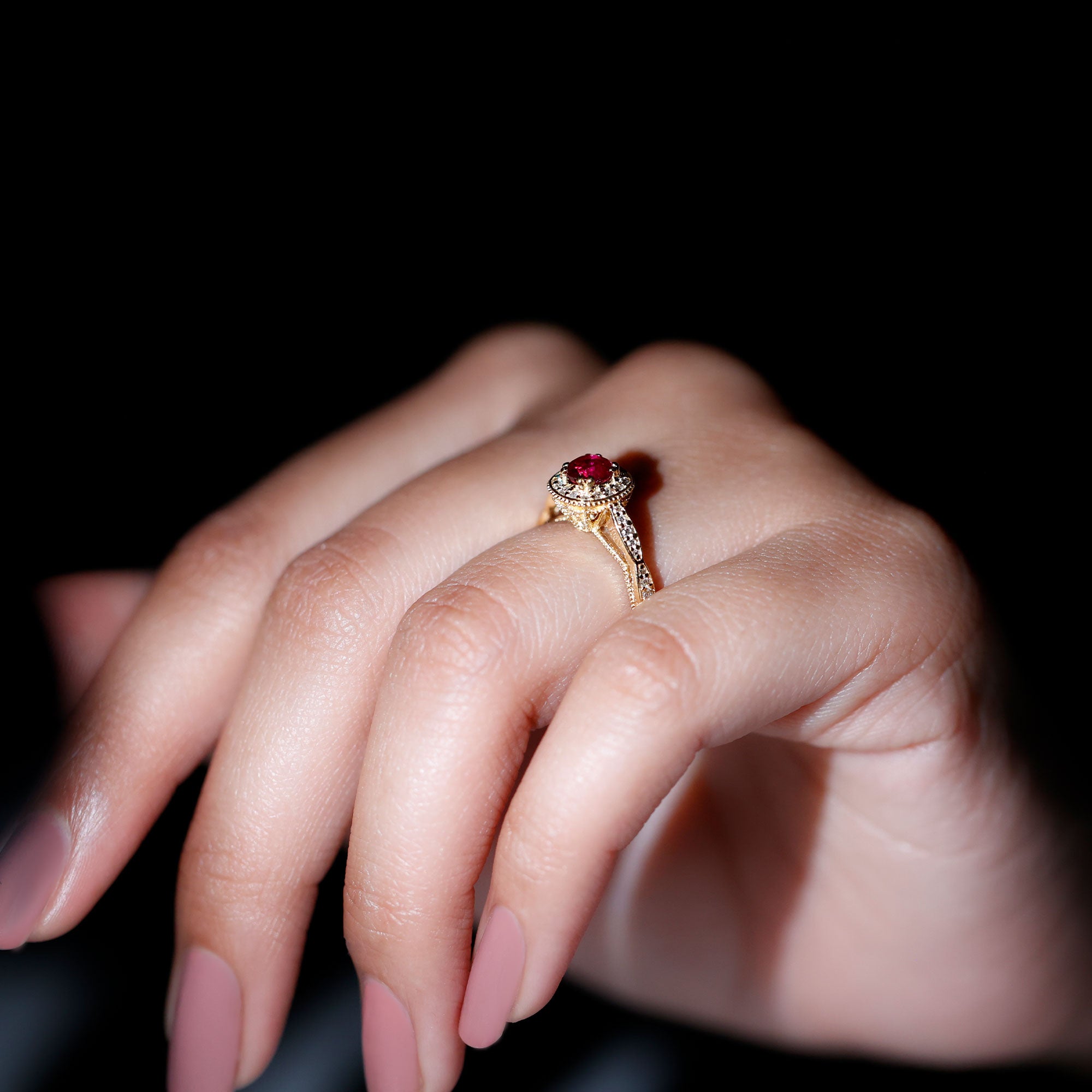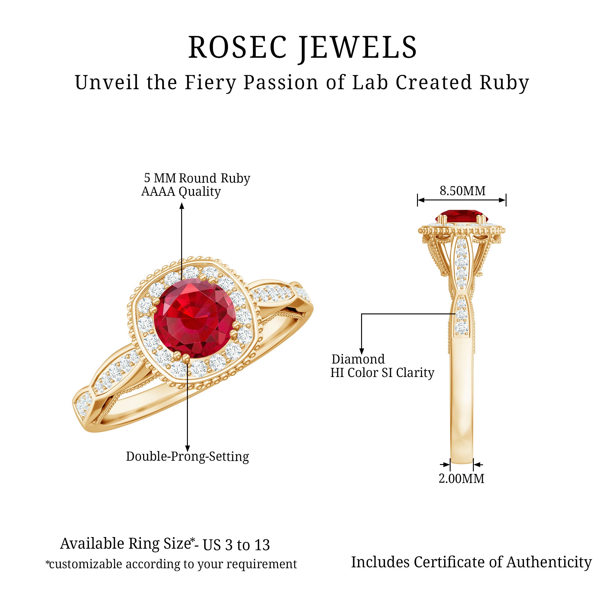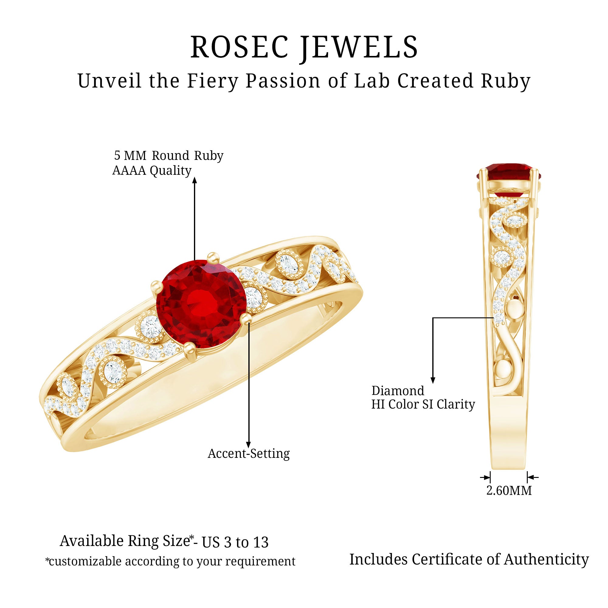 Vintage-Inspired Created Ruby Rings: Inspired by the designs of bygone eras featuring intricate designs and milgrain patterns, these rings are for classic lovers. Timeless look with a stylish twist makes vintage lab created ruby rings a trending choice among modern couples.