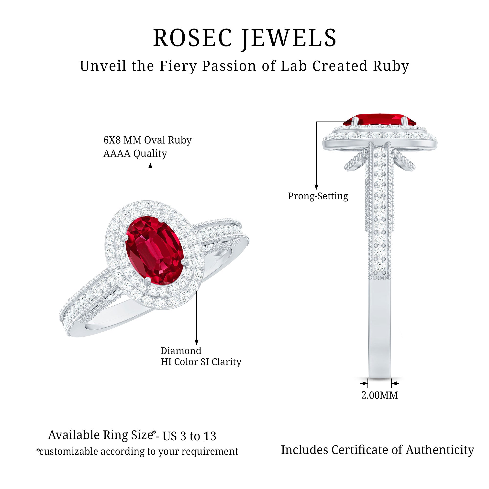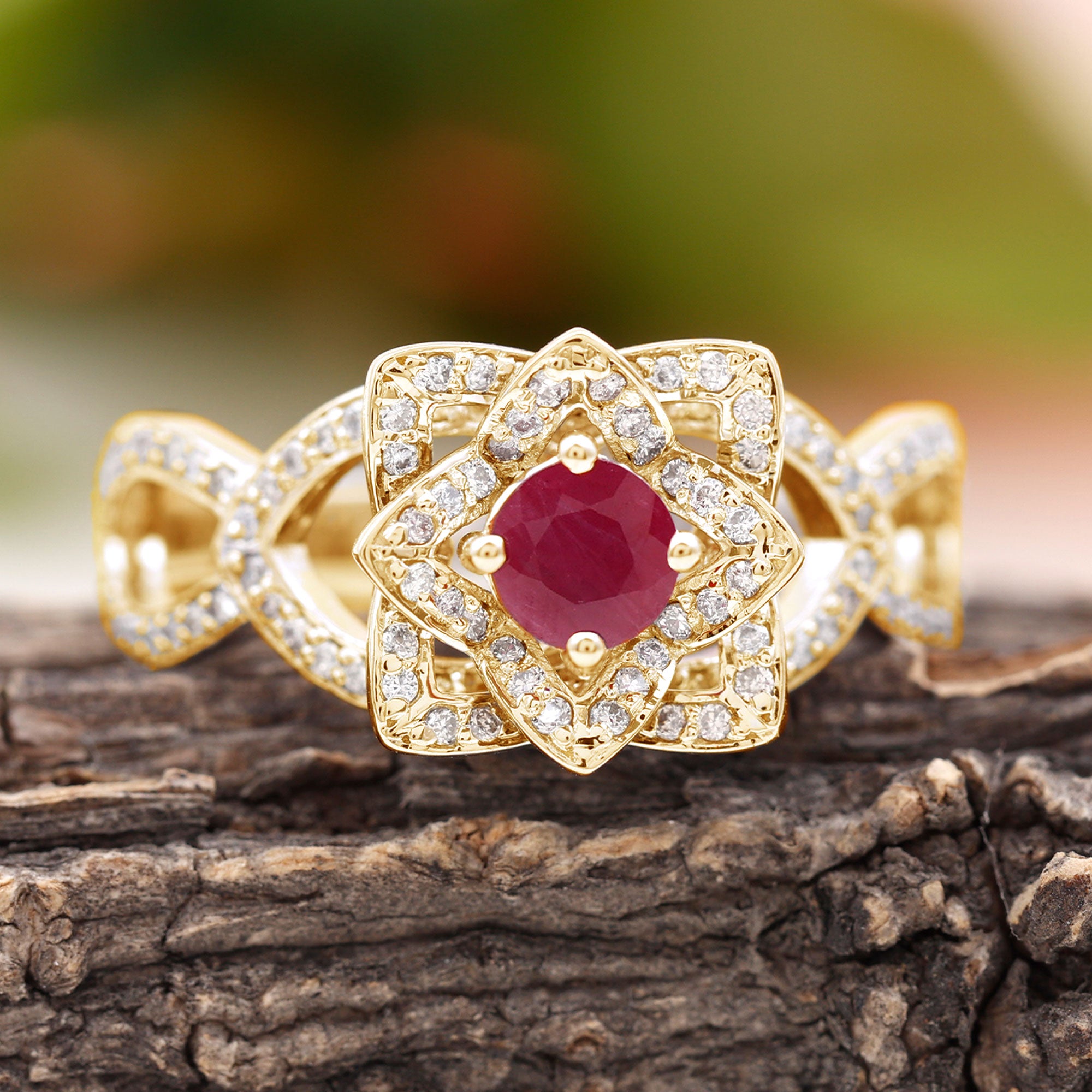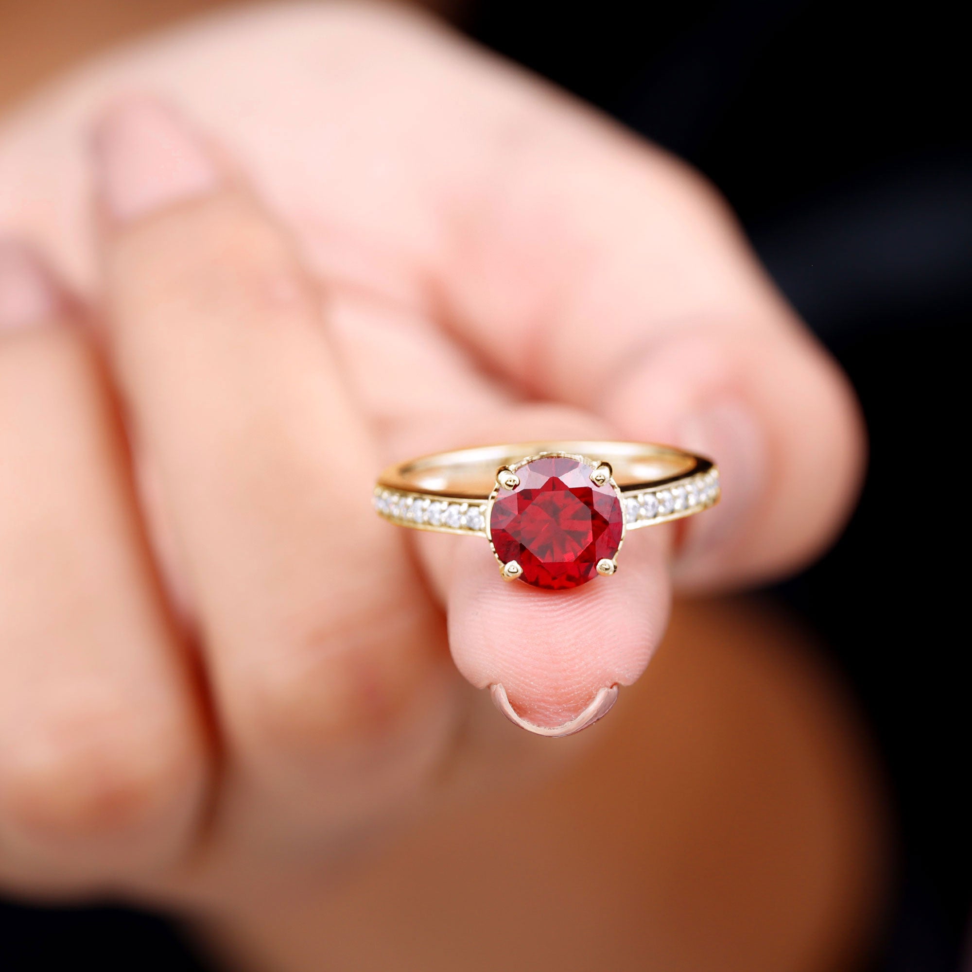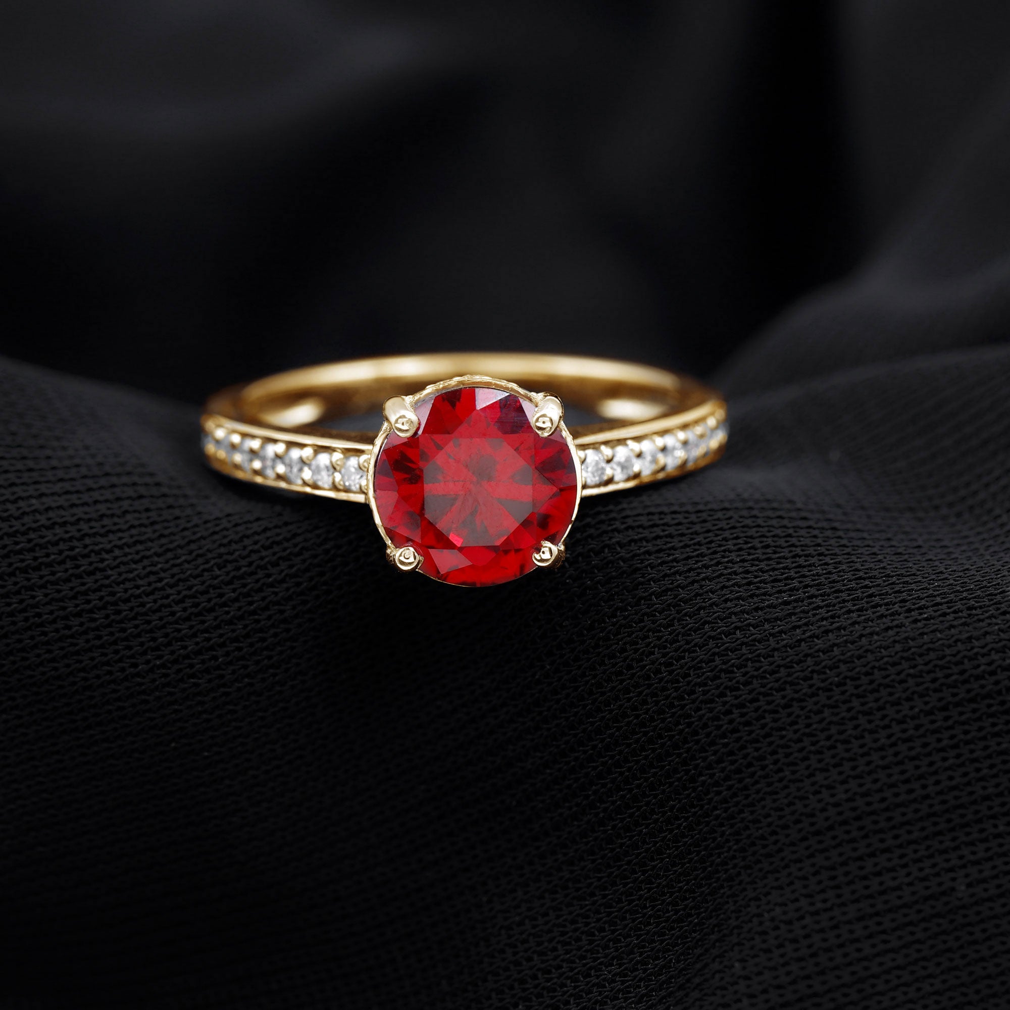 Vintage-Inspired Created Ruby Rings: Inspired by the designs of bygone eras featuring intricate designs and milgrain patterns, these rings are for classic lovers. Timeless look with a stylish twist makes vintage lab created ruby rings a trending choice among modern couples.
