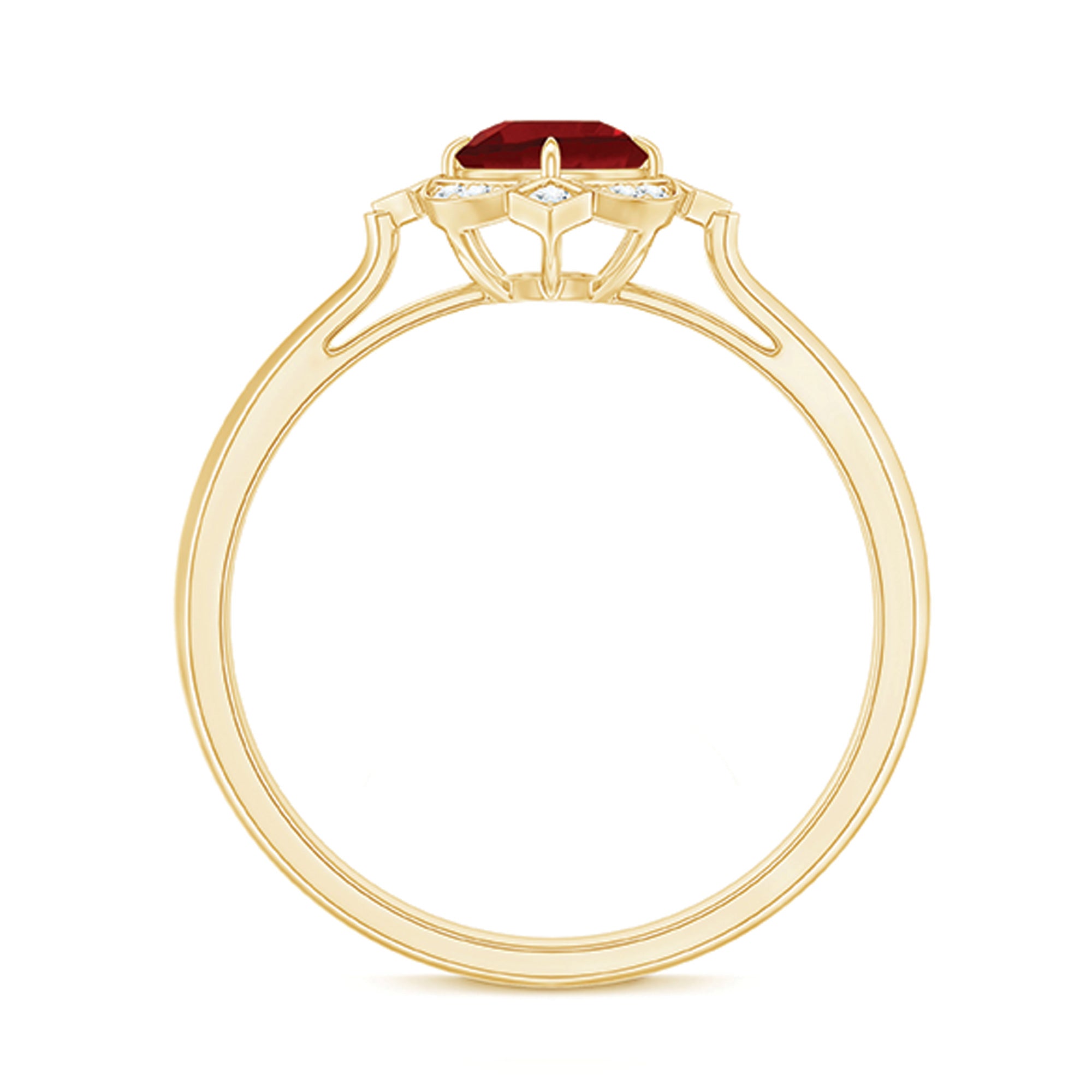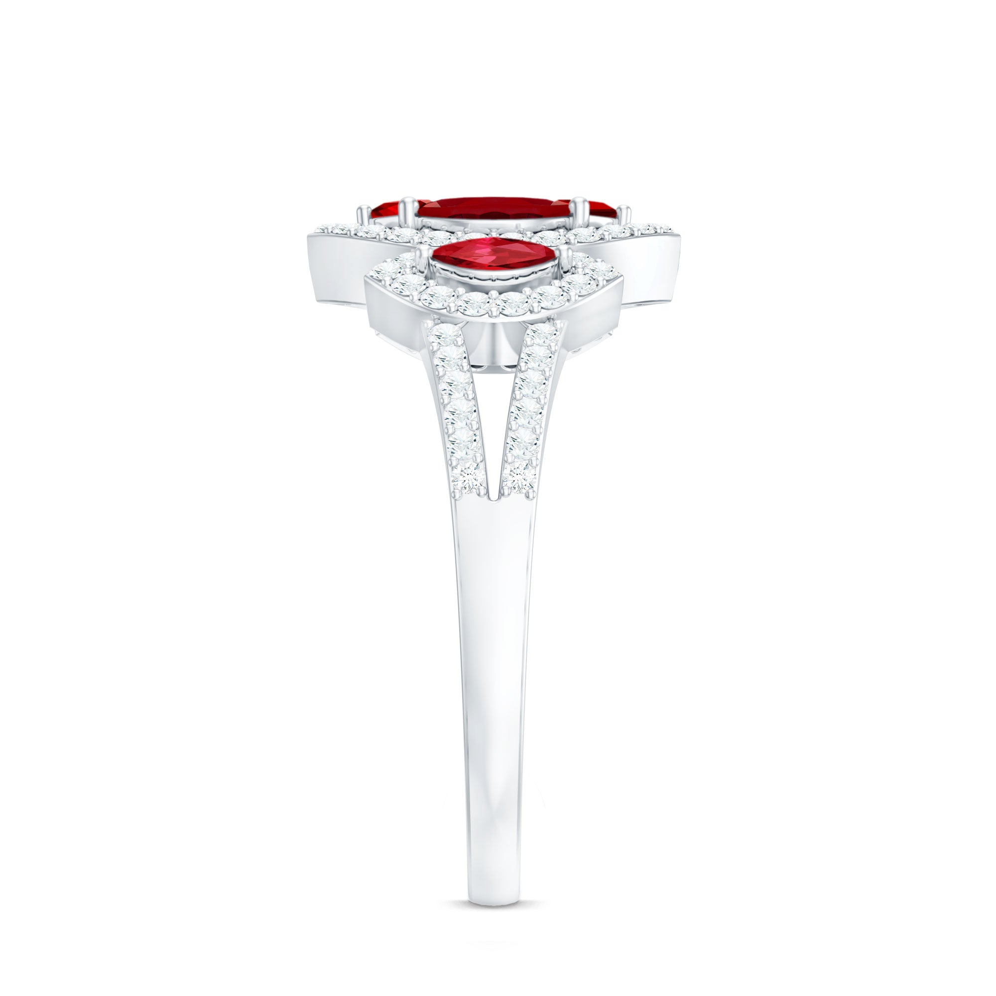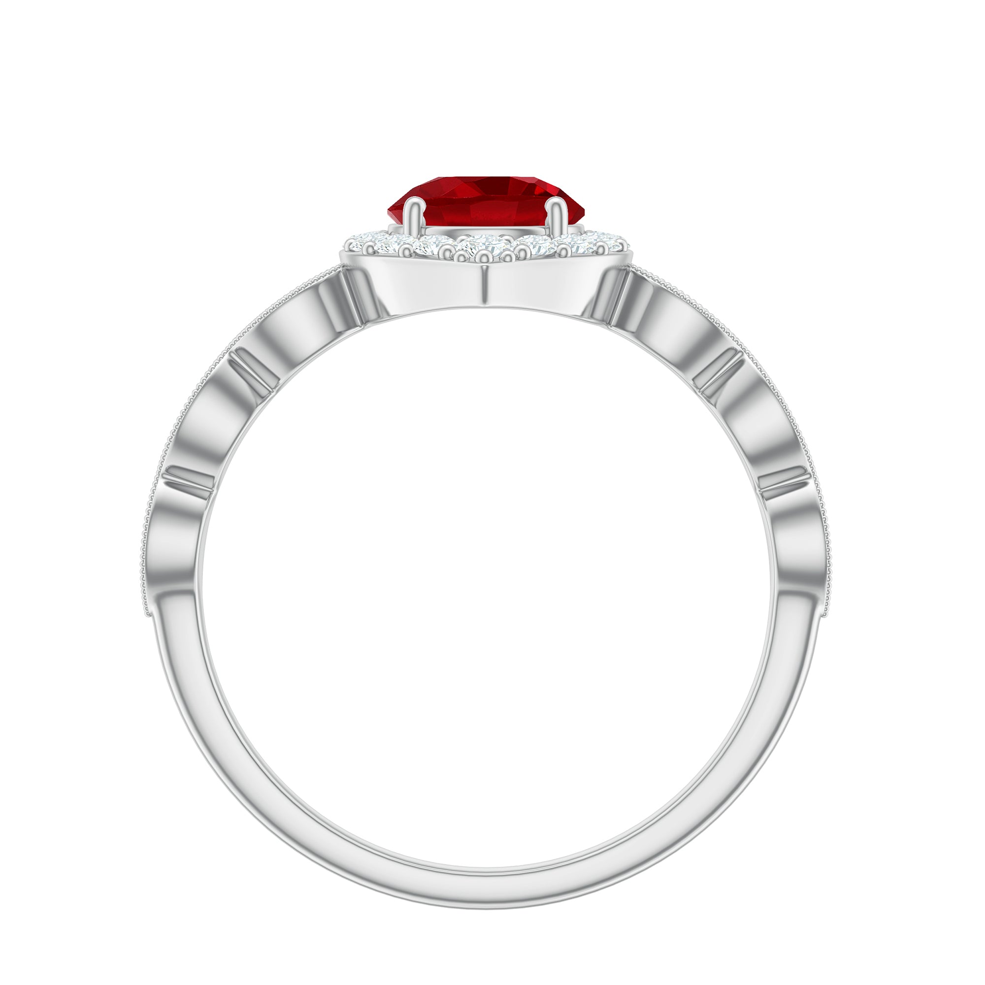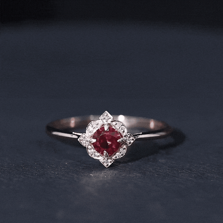 Halo Ruby Rings: A lab ruby surrounded by a circle of smaller diamonds or other colored gemstones for adding sparkle and brilliance. The halo makes the ruby gemstone stone appear larger and dazzling in a lab created ruby and diamond ring.