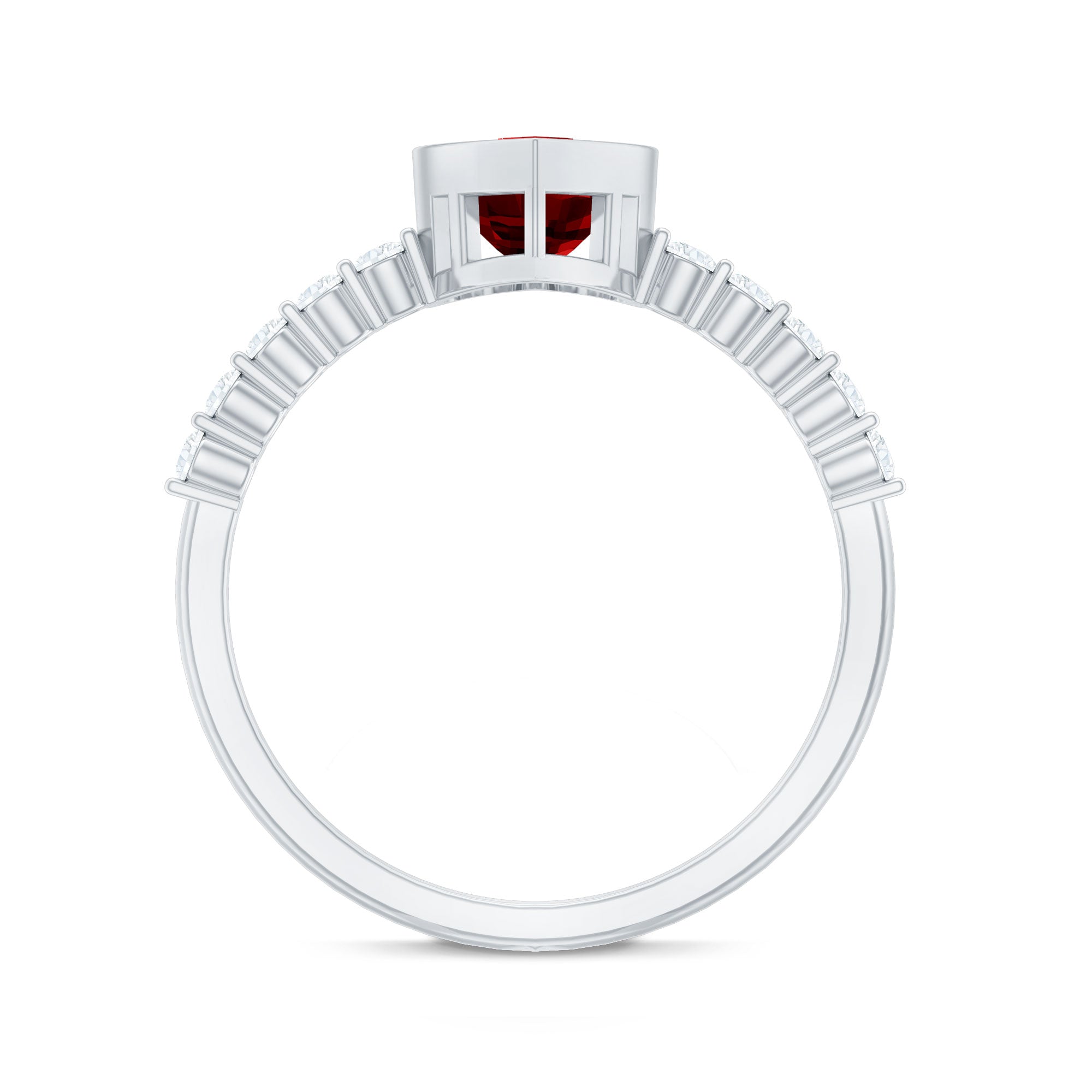 Heart Ruby Engagement Rings: Heart shaped ruby rings express your deep love and emotional connection. Crafted with prongs or protected by halo, your heart in ruby rings shines at its best with romance in every glance.
