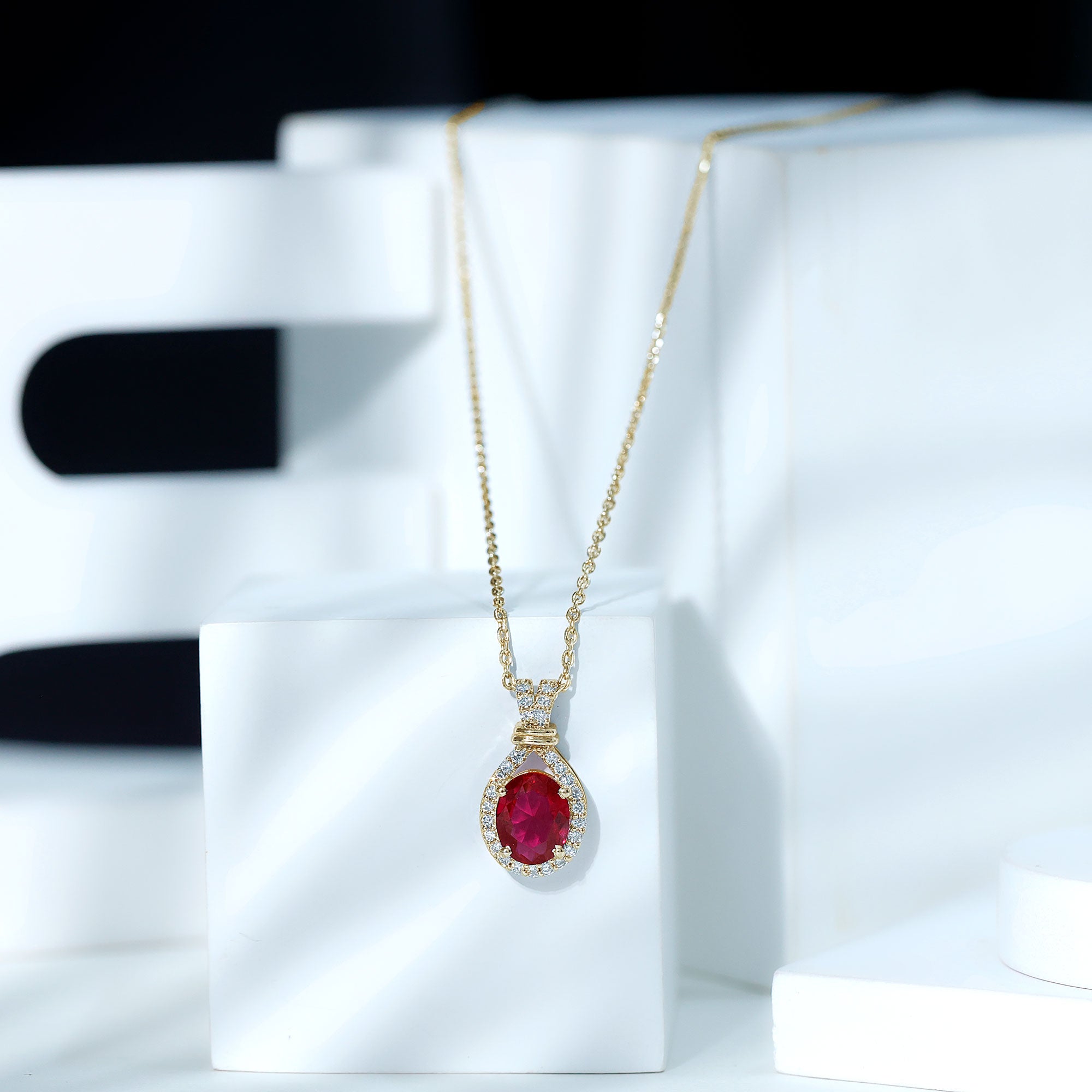 Shop lab grown ruby necklaces crafted for everyday wear and gifting—featuring the rich red look of ruby with a smarter, more consistent value than mined stones. This collection includes pendants, station styles, halos, solitaires, and sets designed to layer beautifully.