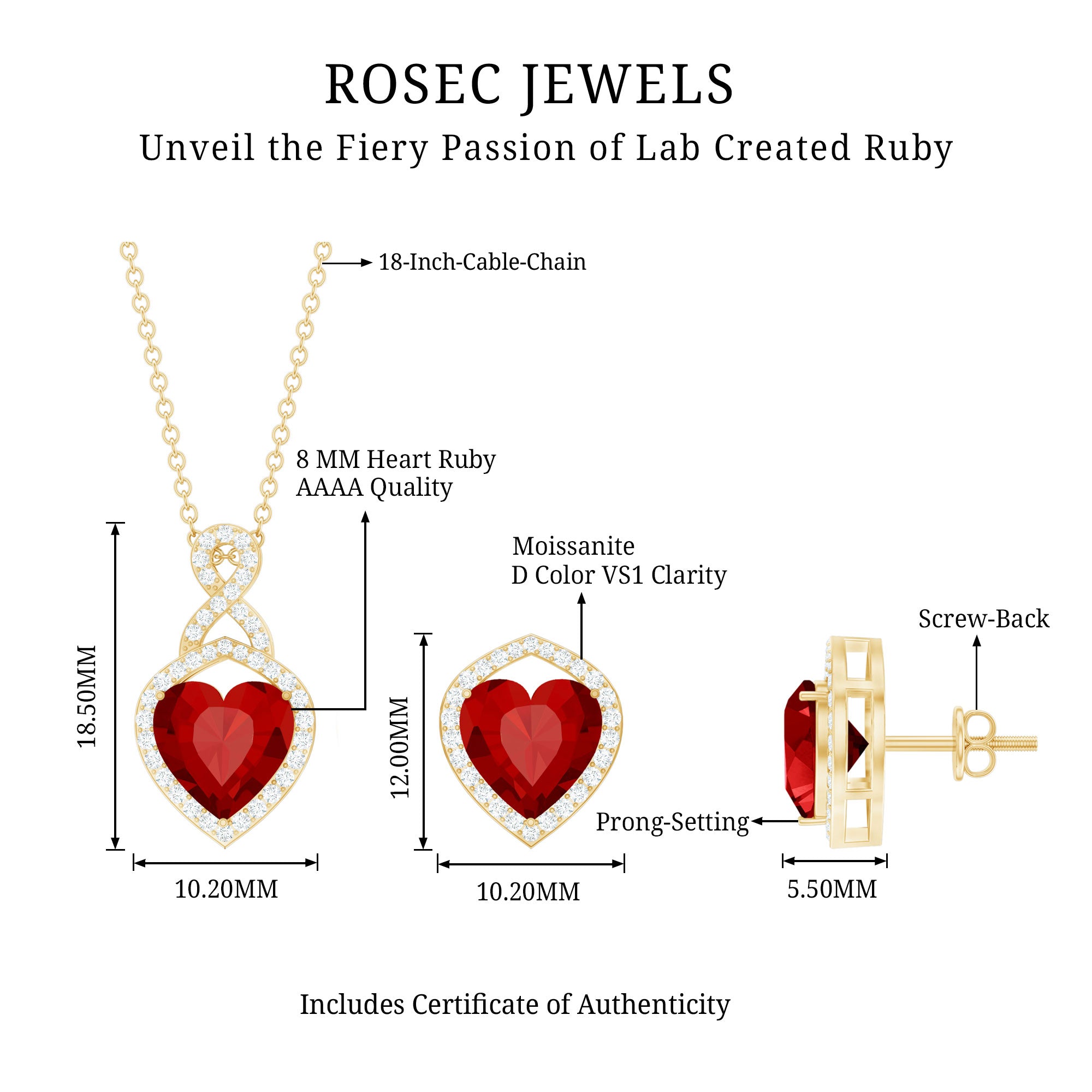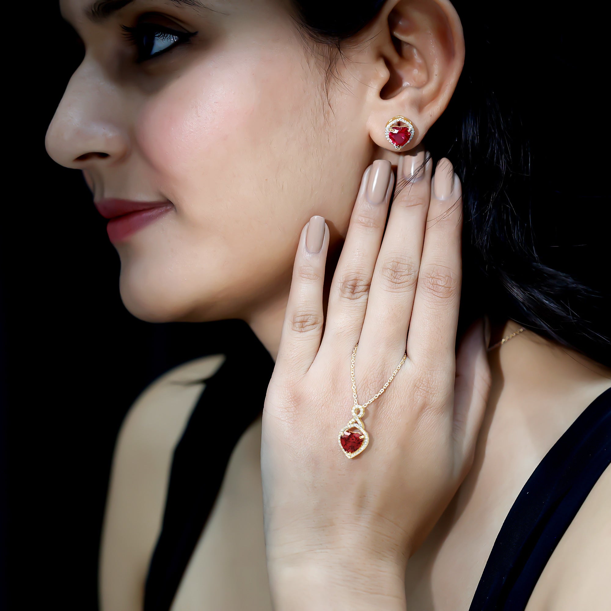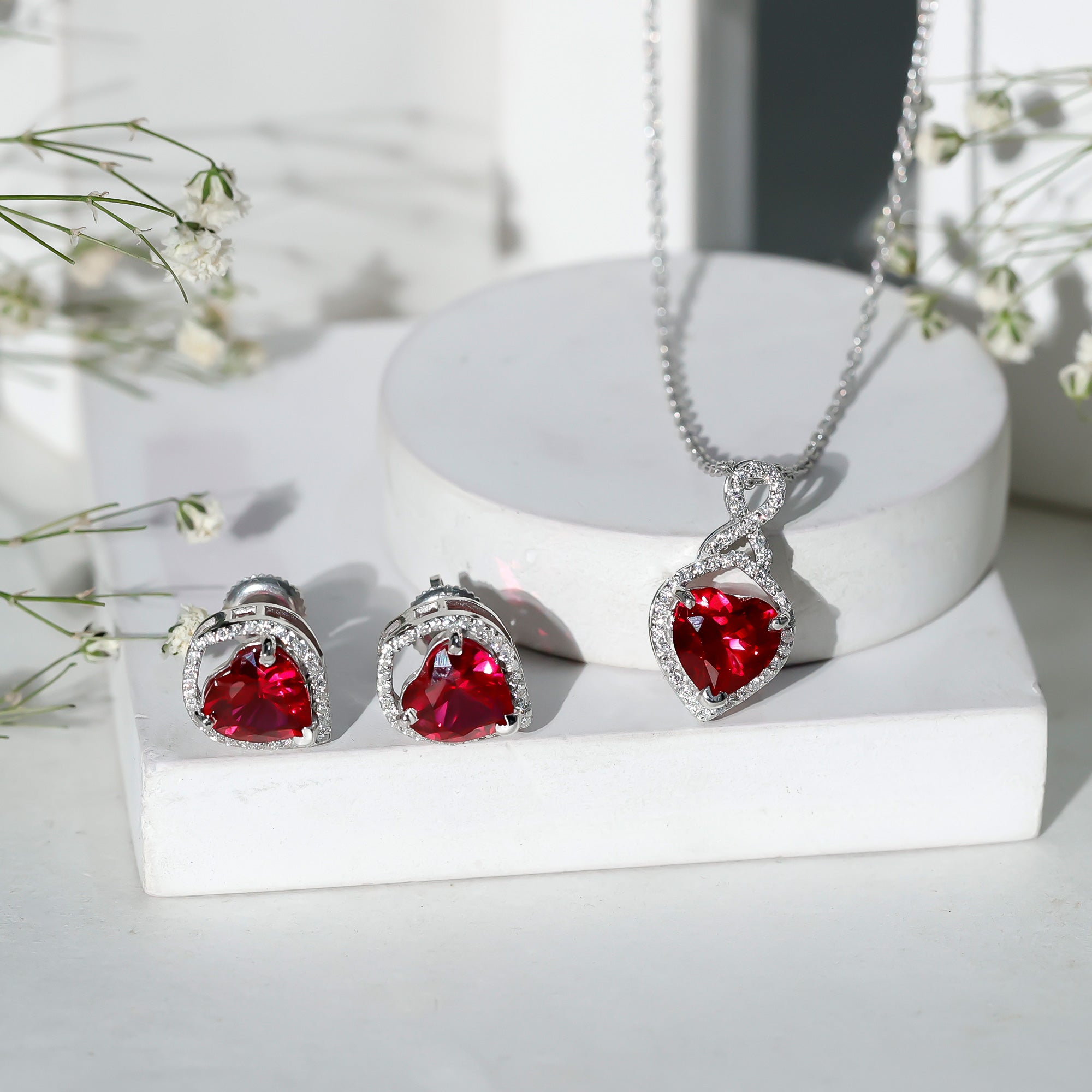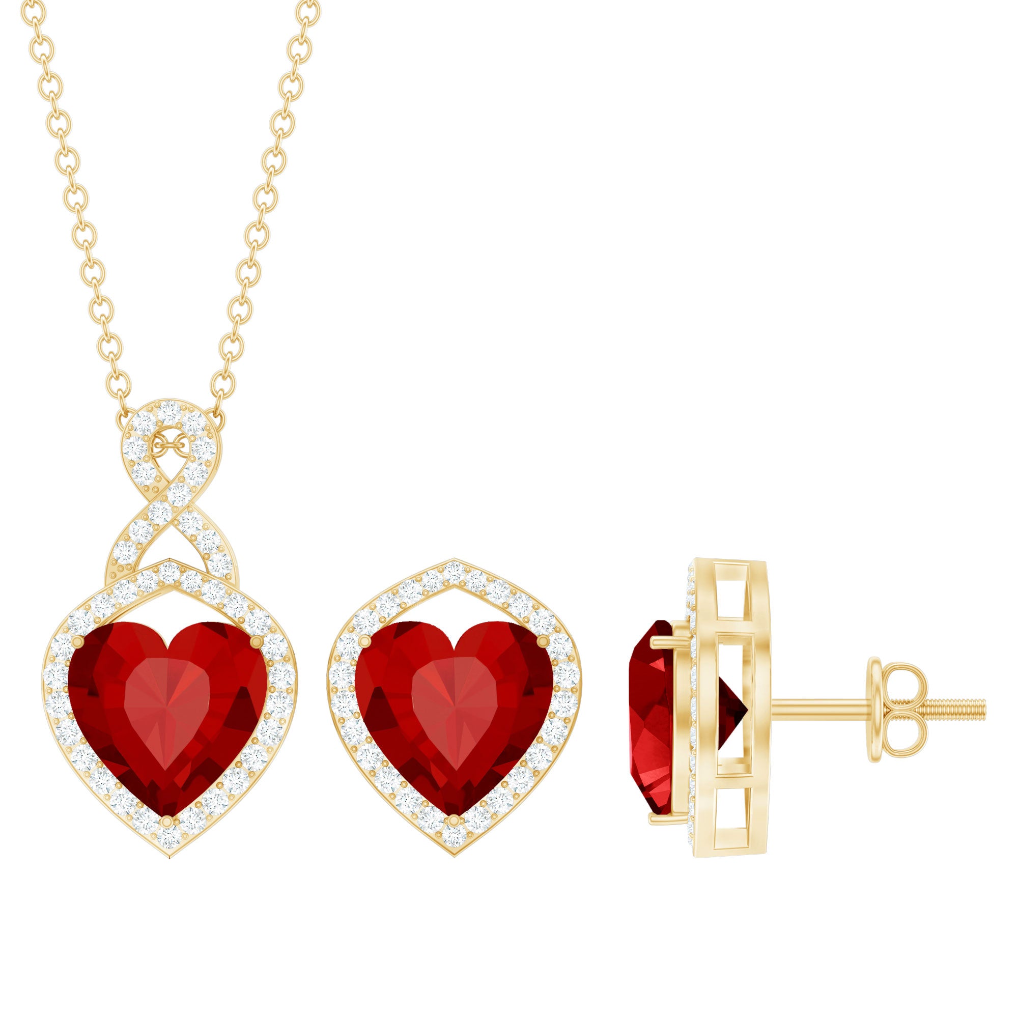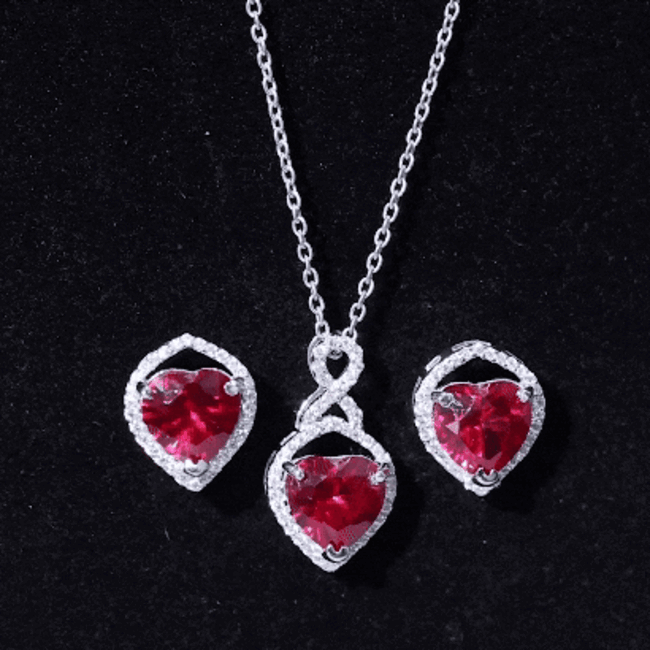Many shoppers choose lab rubies for consistent red color in pendants and matching sets. Natural rubies can vary more in tone and inclusions.