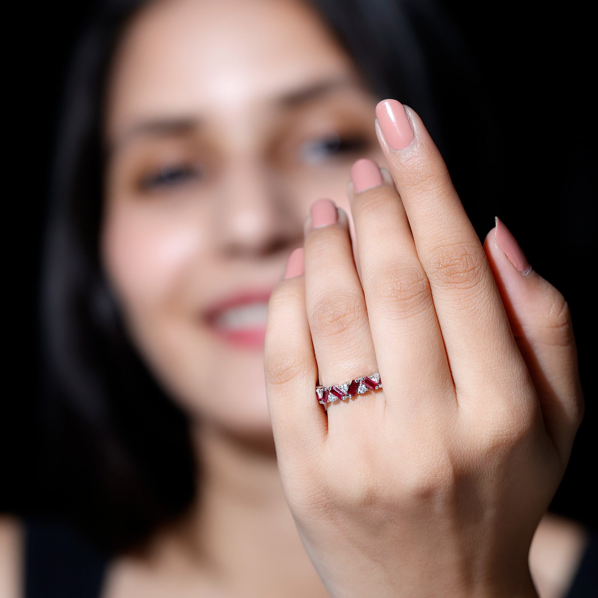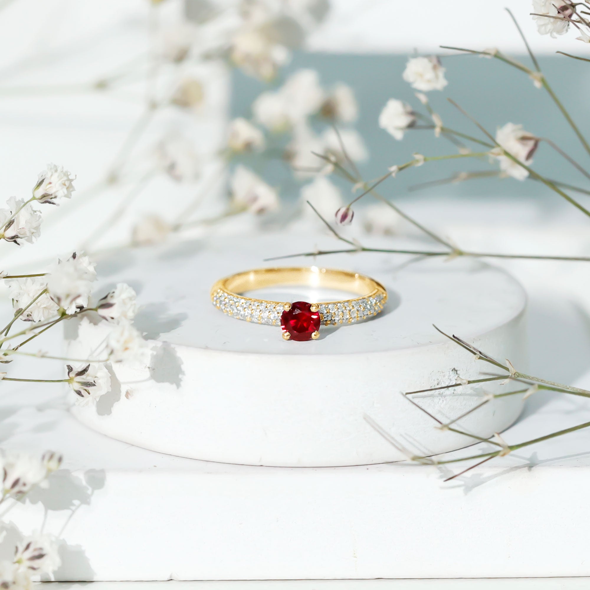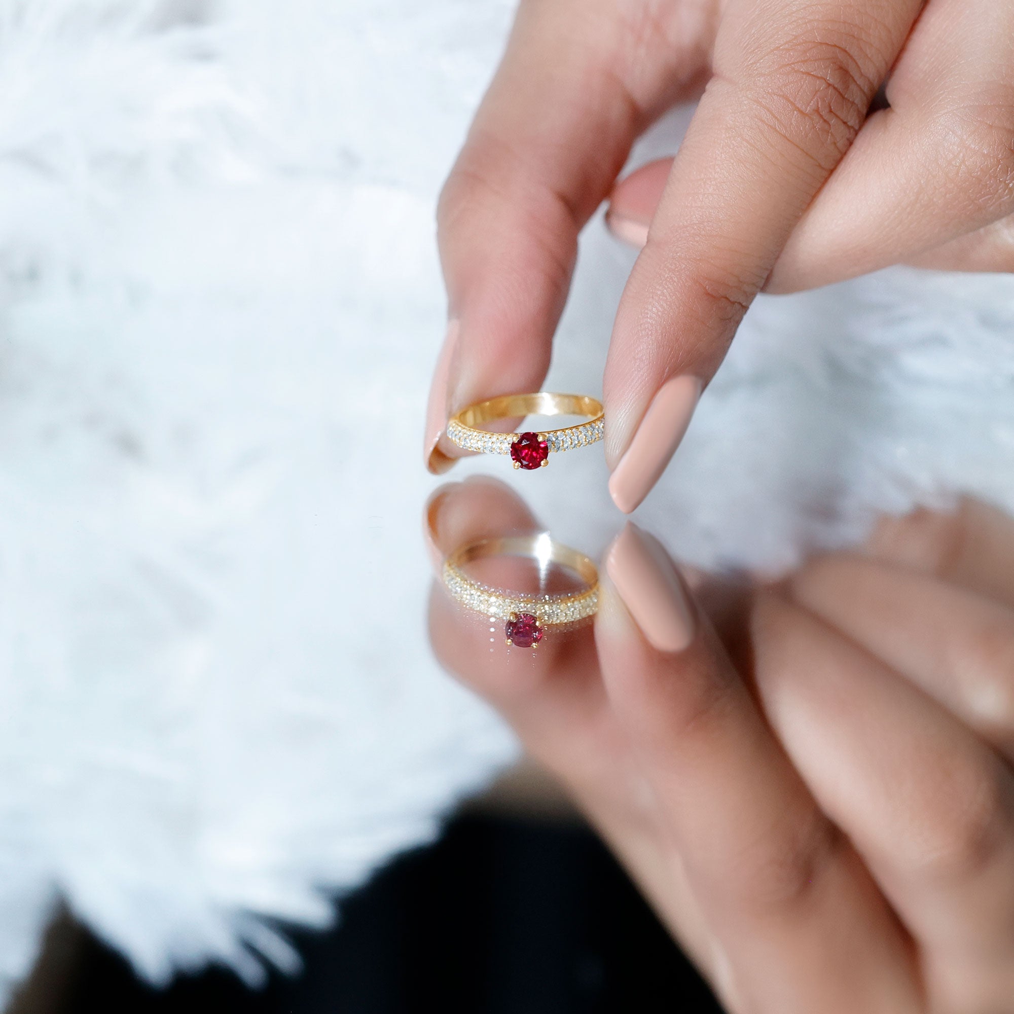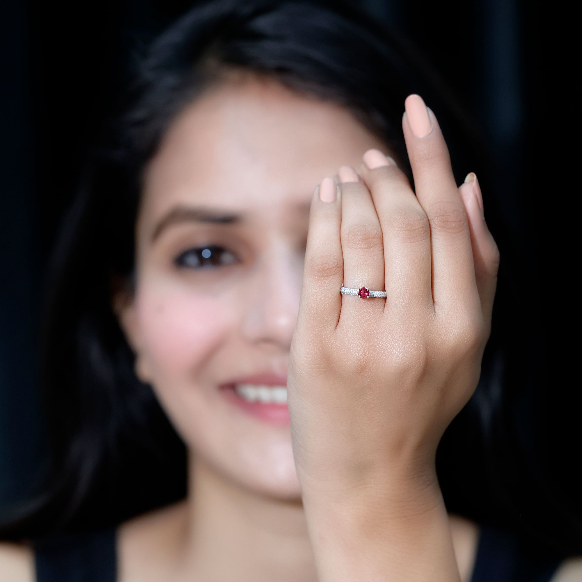 Stackable Rings: Mix and match lab-grown ruby rings to create a personalized and versatile look. The best way to make your ring stack on your own is by adding a touch of color with gemstone stacking rings. Available in vibrant hues of red, a lot of personality to any ring stack. Well, who doesn’t love the stacked wedding ring with romantic rubies over it?