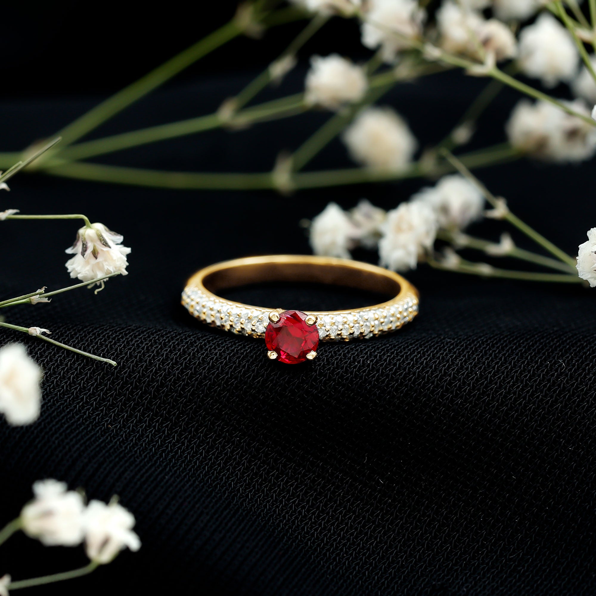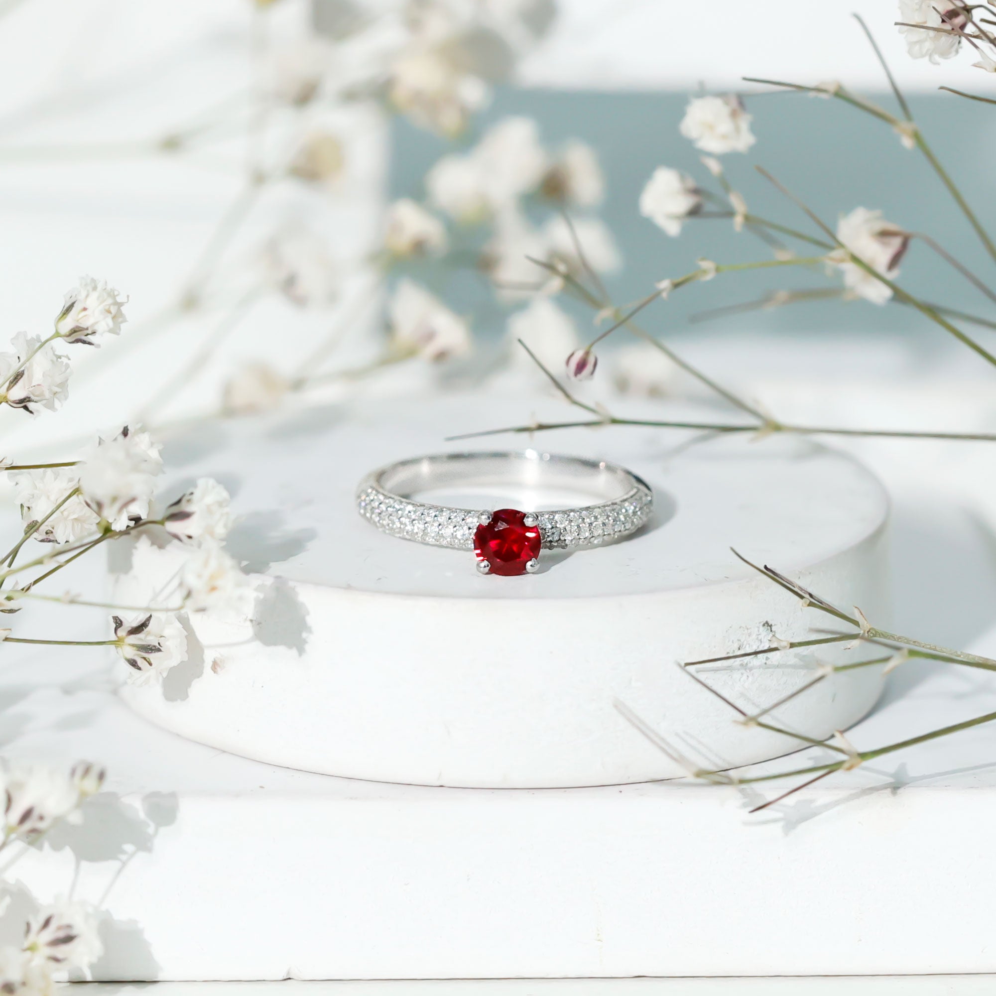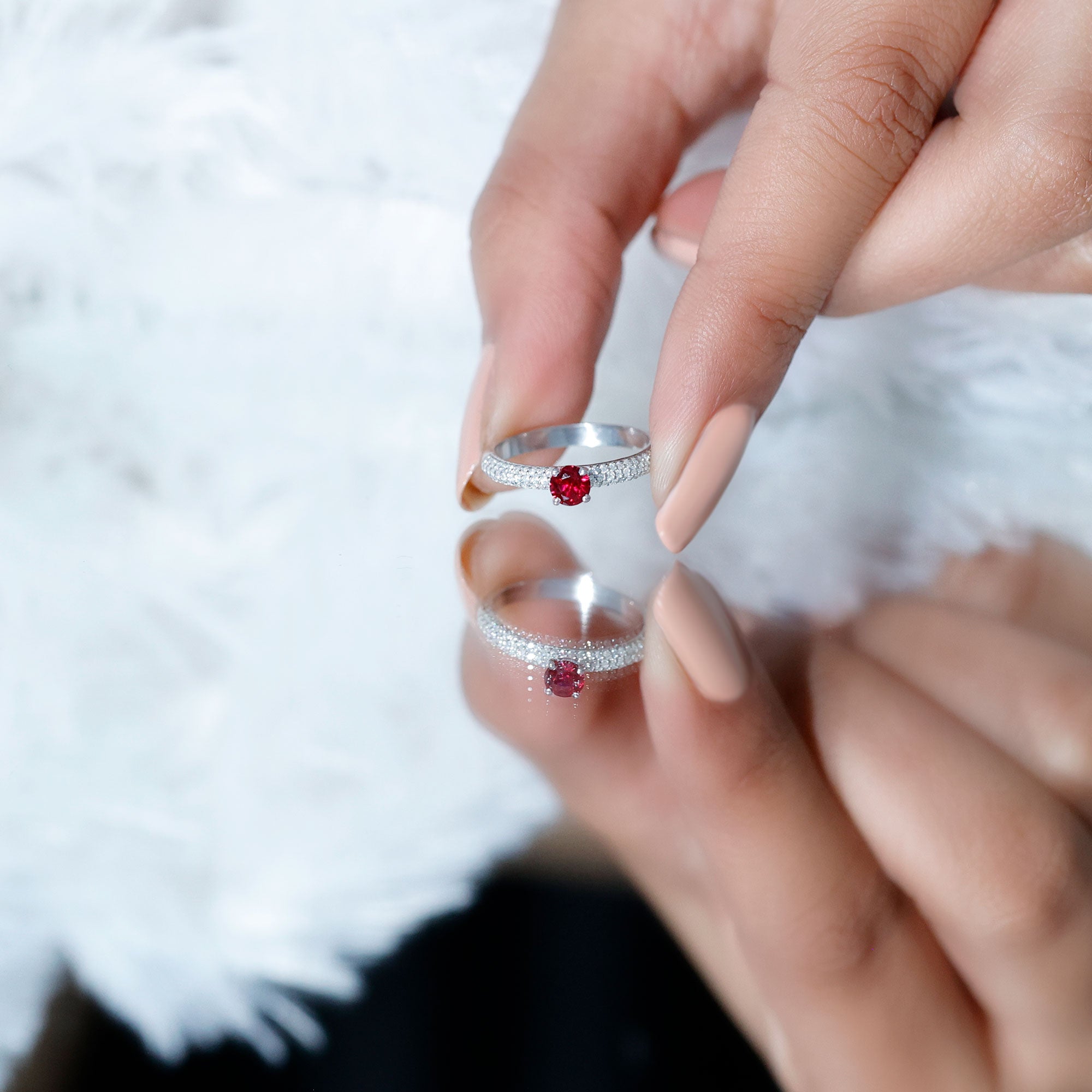 Lab-grown ruby rings available online at Rosec Jewels are high quality and come with a certificate. Explore the unique designs of simulated ruby rings online at Rosec Jewels. Our lab-grown ruby prices are affordable with premium metals like white gold, yellow gold, and sterling silver. Read more about designs in below sections: